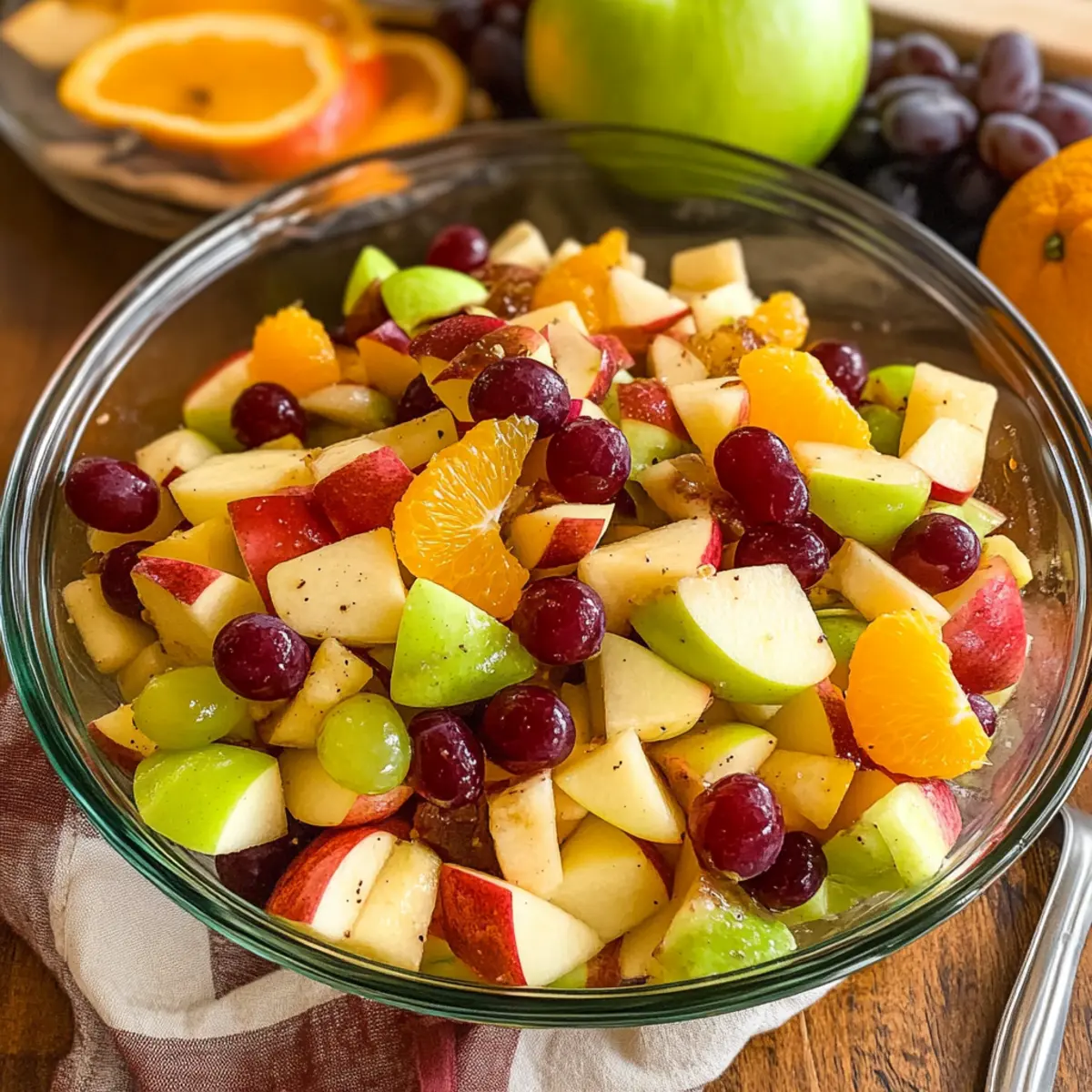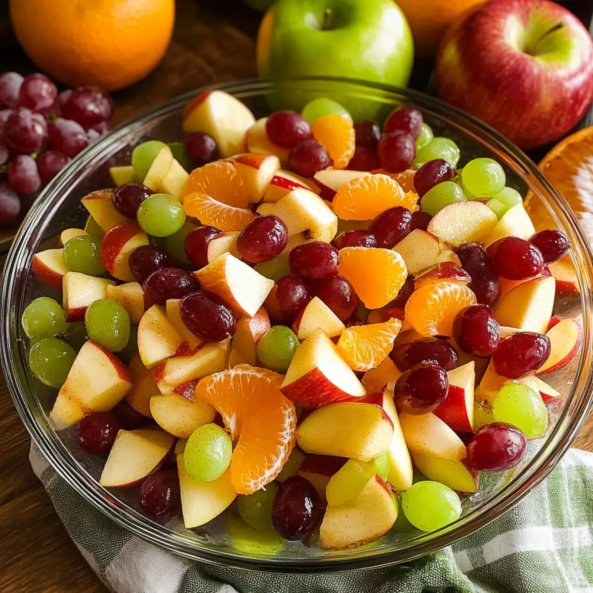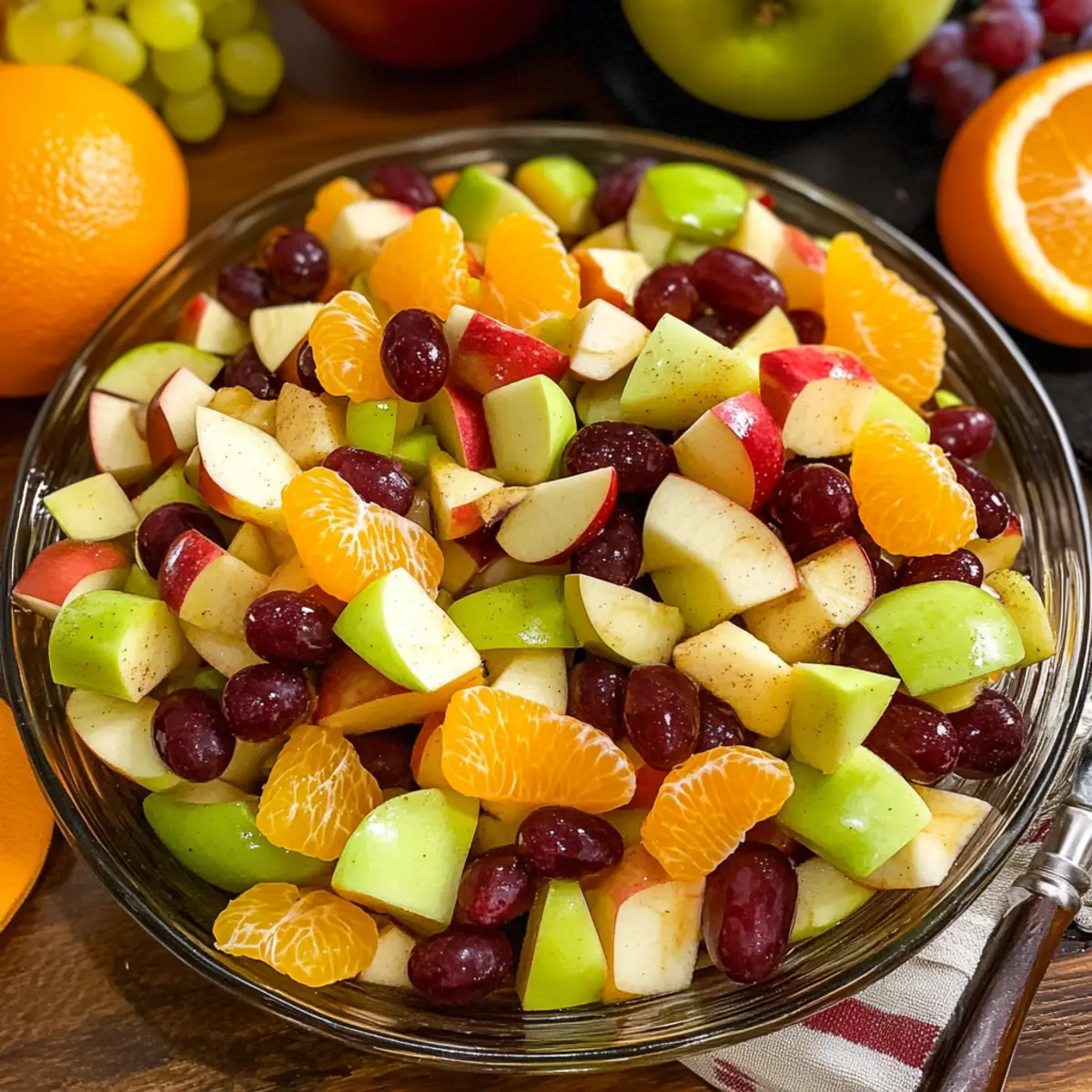 Wenn ich an die bevorstehenden Feiertage denke, kommt mir sofort der fröhliche Anblick eines bunten Herbstfruchtsalats in den Sinn. Dieser Thanksgiving Fruit Salad mit einem würzigen Zitrusdressing vereint knackige Äpfel, süße Trauben, herbe Orangen und chewy getrocknete Cranberries zu einem erfrischenden und farbenfrohen Gericht, das in nur 10 Minuten zubereitet ist. Dieses Rezept bietet nicht nur eine gesunde, leichte Beilage für Ihre Festtafel, sondern kann auch als köstliches Dessert mit einer Kugel Eis serviert werden. Egal, ob Sie ein leidenschaftlicher Hobbykoch sind oder einfach eine Abwechslung zum Fast Food suchen – dieser Herbstfruchtsalat ist die perfekte Wahl. Sind Sie bereit, Ihre Gäste mit dieser farbenfrohen Köstlichkeit zu begeistern? Warum sollten Sie diesen Herbstfruchtsalat lieben? Frische und Farben: Dieser Herbstfruchtsalat ist nicht nur ein Fest für die Augen, sondern auch ein kulinarischer Hochgenuss. Einfache Zubereitung: In nur 10 Minuten sind Sie bereit, diese köstliche Beilage zu servieren. Gesund und leicht: Mit frischen Früchten und weniger Kalorien bietet er eine gesunde Alternative zu schweren Festtagsgerichten. Vielseitig: Er lässt sich auch wunderbar variieren – fügen Sie z. B. Granatapfelkerne hinzu oder ersetzen Sie die Pekannüsse durch Mandeln. Traditionell und modern: Dieser Salat vereint klassische Aromen und bringt frischen Wind auf Ihre Festtafel. Genießen Sie ihn als erfrischenden Beilagensalat oder als leckeres Dessert mit Eis! Herbstfruchtsalat Zutaten • Für den frischen Genuss: Grüne Äpfel – sorgen für Knackigkeit und einen säuerlichen Geschmack, ideal für die Balance im Salat. Rote Äpfel – bringen Süße ins Spiel, nutzen Sie Fuji oder Honeycrisp für zusätzliche Geschmackstiefe. Getrocknete Cranberries – liefern die perfekte chewy Textur und eine süß-säuerliche Note; verwenden Sie Rosinen als milderen Ersatz. Pekannüsse – geben dem Salat eine nussige Note und zusätzlichen Crunch; alternativ können Sie Walnüsse verwenden. Trauben – bieten Süße und Saftigkeit; wählen Sie eine beliebige kernefreie Sorte für die beste Textur. Navel-Orangen – sorgen für den frischen Zitrusgeschmack und eine angenehme Säure; Blutorangen sind eine einzigartige Variante. Zitronensaft – verhindert das Braunwerden der Äpfel und ergänzt die Aromen; frischer Limettensaft ist eine gute Alternative. Orangensaft – bildet die Basis für das Dressing; frisch gepresst ist ideal für den besten Geschmack. Zucker – balanciert die Säure im Dressing; als natürliche Süßstoffe eignen sich Honig oder Ahornsirup. Apfelkuchengewürz – bringt warme Gewürze ins Dressing; nutzen Sie im Notfall rein Zimt. Zitronenschale – verstärkt die Zitrusfrische im Dressing; verwenden Sie einen Sparschäler, wenn Ihnen ein Zester fehlt. Orangenschale – verstärkt das gesamte Zitrusaroma und sorgt für zusätzlichen Geschmack. Dieser Herbstfruchtsalat ist die perfekte Ergänzung zu Ihrer Festtafel und lässt sich in nur wenigen Minuten zubereiten! Schritt-für-Schritt-Anleitungen für Herbstfruchtsalat mit würzigem Citrus-Dressing Schritt 1: Pekannüsse rösten Heizen Sie Ihren Ofen auf 175 °C vor. Verteilen Sie die Pekannüsse gleichmäßig auf einem Backblech und rösten Sie sie etwa 5-7 Minuten lang, bis sie aromatisch sind. Achten Sie darauf, dass sie nicht verbrennen. Nach dem Rösten lassen Sie die Nüsse abkühlen und bereiten das Dressing vor. Schritt 2: Dressing zubereiten Nehmen Sie einen kleinen Topf und geben Sie den frisch gepressten Orangensaft, Zucker, Apfelkuchengewürz, Zitronen- und Orangenschale hinein. Erhitzen Sie die Mischung bei mittlerer Hitze, bis sie leicht köchelt, was ungefähr 3-4 Minuten dauert. Danach durch ein feines Sieb gießen und abkühlen lassen, während Sie die Früchte vorbereiten. Schritt 3: Früchte vorbereiten Kern und schneiden Sie die grünen und roten Äpfel in mundgerechte Stücke und werfen Sie sie sofort in eine Schüssel mit Zitronensaft, um das Braunwerden zu verhindern. Schälen und schneiden Sie die Navel-Orangen ebenfalls in kleine Stücke. Stellen Sie sicher, dass alle Früchte gleichmäßig geschnitten sind, um eine ansprechende Präsentation zu gewährleisten. Schritt 4: Zutaten kombinieren Nehmen Sie eine große Schüssel und geben Sie die vorbereiteten Äpfel, getrocknete Cranberries, geröstete Pekannüsse, Trauben und die geschnittenen Orangen hinein. Mit einem großen Löffel vorsichtig umrühren, damit alles gut vermischt ist und die verschiedenen Aromen des Herbstfruchtsalats zur Geltung kommen. Schritt 5: Salat vollenden Gießen Sie das abgekühlte Dressing über den herbstlichen Fruchtsalat und mischen Sie alles vorsichtig, sodass die Früchte gleichmäßig mit dem Dressing überzogen sind. Servieren Sie den Salat sofort oder stellen Sie ihn für eine Weile in den Kühlschrank, um ihn gut gekühlt zu genießen. Lagerungstipps für Herbstfruchtsalat Raumtemperatur: Am besten frisch serviert; vermeiden Sie die Lagerung bei Raumtemperatur, um die Frische der Früchte zu erhalten. Kühlschrank: Lagern Sie den herbstlichen Fruchtsalat in einem luftdichten Behälter im Kühlschrank, um die Frische bis zu 1-2 Tage zu bewahren. Einfrieren: Es wird nicht empfohlen, den Herbstfruchtsalat einzufrieren, da die Textur der Früchte nach dem Auftauen beeinträchtigt wird. Wiedererwärmen: Salad serve am besten kalt und sollte nicht wiedererwärmt werden, um die knackige Konsistenz zu bewahren. Tipps für den besten Herbstfruchtsalat Früchte frisch halten: Tossen Sie die geschnittenen Äpfel sofort in Zitronensaft, um das Braunwerden zu verhindern und die Frische zu bewahren. Nüsse richtig rösten: Rösten Sie die Pekannüsse nur bis sie aromatisch sind, etwa 5-7 Minuten, um ihren Geschmack zu intensivieren, aber nicht zu verbrennen. Dressing abkühlen lassen: Lassen Sie das Dressing ganz abkühlen, bevor Sie es über den Salat gießen. Dies verhindert, dass die Früchte war