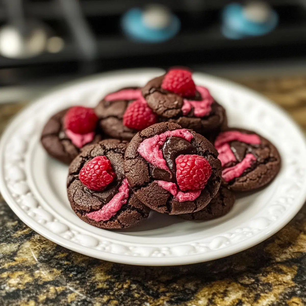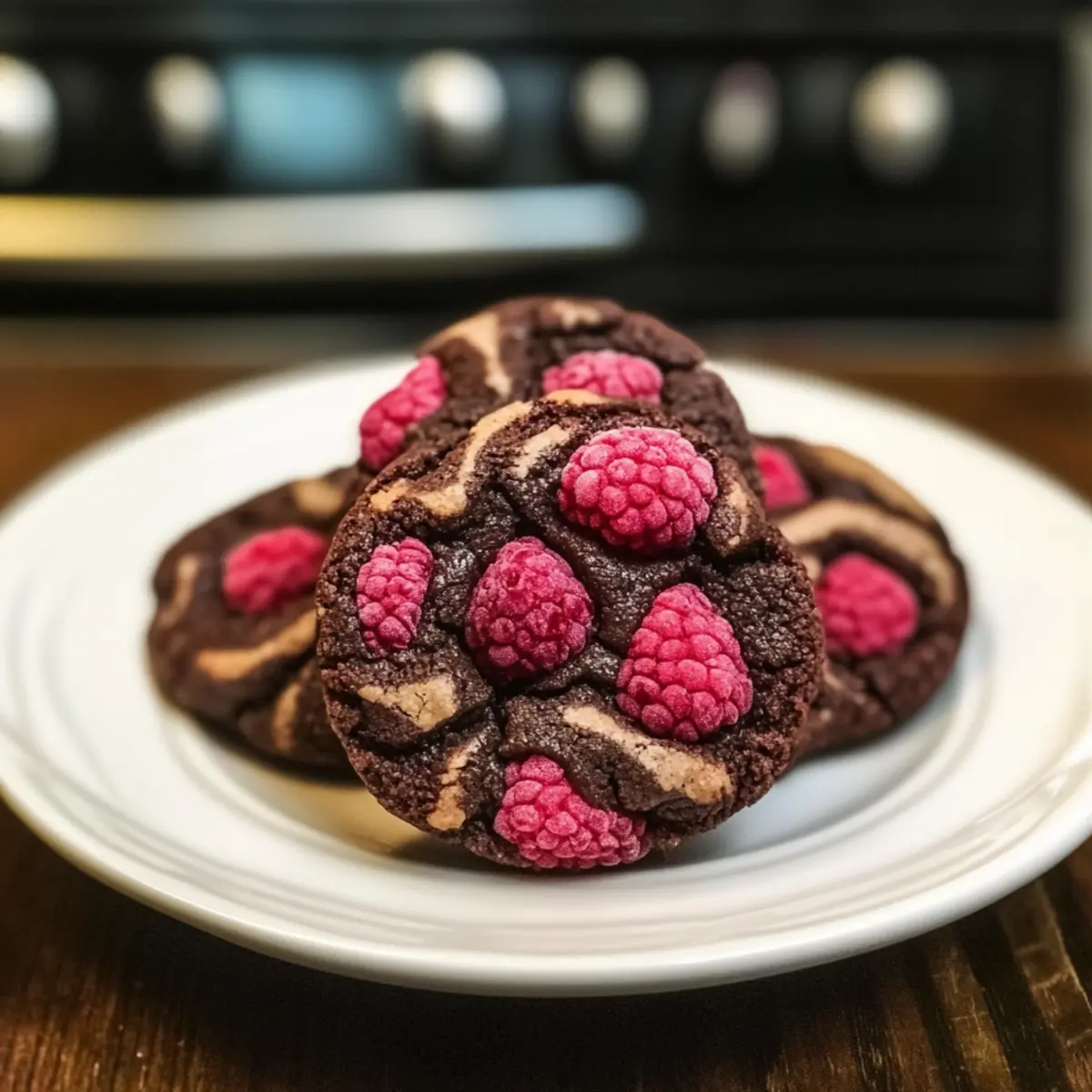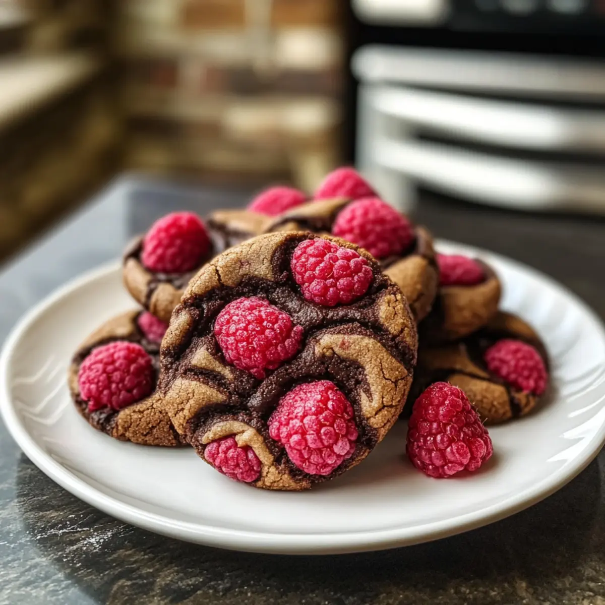 Die nächste Kaffeepause steht bevor, und ich kann kaum warten, um meine neuesten Kreationen zu teilen: Himbeer-Dunkle-Schokoladenkekse. Diese Kekse vereinen das Beste aus zwei Welten – die fruchtige Frische von saftigen Himbeeren und die reichhaltige Intensität dunkler Schokolade. Sie sind nicht nur einfach zuzubereiten, sondern auch die perfekte Versuchung für Gäste oder einen gemütlichen Abend zu Hause. Was ich besonders liebe, ist die Vielseitigkeit dieses Rezepts; es ist kinderleicht anzupassen, ob für eine glutenfreie Diät oder einfach nur für diejenigen, die die besten Zutaten verwenden möchten. Nehmen Sie sich einen Moment Zeit, um sich in diese köstlichen Kekse zu verlieben – wer kann dieser Kombination aus Süße und Säure schon widerstehen? Warum sind Himbeer-Dunkle-Schokoladenkekse so besonders? Einzigartig und lecker: Diese Kekse kombinieren den süßen Geschmack von Himbeeren mit der Intensität dunkler Schokolade, was ein unvergessliches Geschmackserlebnis schafft. Vielseitig einsetzbar: Ob als Snack für die Kaffeepause oder als Dessert für Gäste, sie sind die ideale Wahl für jeden Anlass. Einfach zuzubereiten: Mit nur wenigen Zutaten und einfachen Schritten gelingen sie jedem, ob Anfänger oder Backprofi. Gesunde Anpassungen: Sie können das Rezept leicht glutenfrei gestalten oder gesunde Zutaten verwenden, ohne auf Geschmack zu verzichten. Köstlicher Genuss: Der perfekte Mix aus knusprigen und chewy Konsistenzen wird Ihre Geschmacksknospen verwöhnen. Lassen Sie sich von diesen Keksen begeistern und entdecken Sie ihre Vielseitigkeit! Himbeer-Dunkle-Schokoladenkekse Zutaten • Diese köstlichen Kekse sind leicht zuzubereiten und können nach Belieben angepasst werden. Für den Teig • Weißes Mehl – sorgt für die Struktur der Kekse; kann durch glutenfreies Mehl ersetzt werden. • Backpulver – ein wichtiges Treibmittel, das die Kekse locker macht; achten Sie darauf, dass es frisch ist. • Salz – hebt die Süße der anderen Zutaten hervor; verwenden Sie Meersalz für einen besonderen Geschmack. • Ungesalzene Butter – fügt Feuchtigkeit und Geschmack hinzu; kann durch Kokosöl für eine milchfreie Option ersetzt werden. • Brauner Zucker – sorgt für eine schöne Süße und eine zähe Textur; kann mit Kokoszucker für eine gesündere Variante getauscht werden. • Zucker – verstärkt die Süße und hilft beim Ausbreiten der Kekse; die Menge kann nach Geschmack angepasst werden. • Ei – bindet die Zutaten; für vegane Varianten verwenden Sie ein Flax-Ei (1 EL gemahlene Leinsamen + 2,5 EL Wasser). • Vanilleextrakt – verleiht ein wunderbares Aroma; verwenden Sie reinen Vanilleextrakt für den besten Geschmack. • Dunkle Schokolade (70 % Kakao oder mehr) – bringt einen intensiven Schokoladengeschmack, der gut zu den Früchten passt; Vollmilchschokolade kann für süßere Kekse verwendet werden. • Frische Himbeeren – sorgen für die fruchtige Note und Feuchtigkeit; nach dem Waschen gut abtrocknen, um einen matschigen Teig zu vermeiden; für den Notfall können getrocknete Cranberries oder Kirschen verwendet werden. Optional • Nüsse oder Samen – für zusätzlichen Crunch und Nährstoffe; passen Sie die Mischung nach Ihrem Geschmack an. Schritt-für-Schritt-Anleitung für Himbeer-Dunkle-Schokoladenkekse Step 1: Ofen vorheizen Heizen Sie Ihren Ofen auf 175 °C (350 °F) vor und bereiten Sie zwei Backbleche mit Backpapier vor. Es ist wichtig, die Backbleche gut vorzubereiten, um ein Ankleben der Kekse zu verhindern. Während der Ofen vorheizt, können Sie bereits alle Zutaten bereitstellen, um den Bakprozess zu optimieren. Step 2: Trockene Zutaten vermengen In einer Schüssel vermengen Sie das weiße Mehl, Backpulver und Salz gründlich mit einem Schneebesen. Diese Mischung sorgt für eine gleichmäßige Verteilung der Trockenstoffe und erleichtert das spätere Vermengen mit den feuchten Zutaten. Halten Sie die Mischung in Sichtweite, während Sie die feuchten Zutaten bearbeiten. Step 3: Butter und Zucker cremen In einer separaten Schüssel die ungesalzene Butter, braunen Zucker und Zucker mit einem Handmixer oder einer Küchenmaschine leicht und cremig schlagen. Dies dauert etwa 2-3 Minuten, oder bis die Masse hell und fluffig aussieht. Achten Sie darauf, die Seiten der Schüssel abzukratzen, um alles gleichmäßig zu vermengen. Step 4: Ei und Vanille hinzufügen Fügen Sie nun das Ei und den Vanilleextrakt zur Buttermischung hinzu und schlagen Sie alles gut durch, bis die Zutaten gut kombiniert sind. Dies sollte weitere 1-2 Minuten dauern. Die Mischung sollte eine cremige Konsistenz haben. Dieser Schritt sorgt für zusätzliche Feuchtigkeit und Geschmack in Ihren Himbeer-Dunkle-Schokoladenkeksen. Step 5: Trockene und feuchte Zutaten kombinieren Geben Sie die trockenen Zutaten in die feuchte Mischung und rühren Sie vorsichtig, bis alles gerade so vermischt ist. Vermeiden Sie es, zu lange zu rühren, um die Luftigkeit zu erhalten, die die Kekse leicht und luftig macht. Sie werden sehen, dass die Zutaten gerade so zusammenkommen, ohne Klumpen zu bleiben. Step 6: Schokolade und Himbeeren einarbeiten Falten Sie die gehackte dunkle Schokolade und die frisch gewaschenen sowie gut abgetrockneten Himbeeren vorsichtig in den Keksteig ein. So bleibt die Struktur der Himbeeren erhalten, und sie geben den Keksen eine fruchtige Note. Seien Sie sanft, um die Himbeeren nicht zu zerdrücken und die Konsistenz Ihres Teigs beizubehalten. Step 7: Kekse portionieren Verwenden Sie einen Esslöffel oder einen Eisportionierer, um den Keksteig in gleichmäßige Portionen von etwa 2 EL auf die vorbereiteten Backbleche zu setzen. Achten Sie darauf, die Kekse mindestens 5 cm (2 Zoll) Abstand zueinander zu lassen, damit sie beim Backen genügend Platz haben, sich auszubreiten und schön zu wachsen. Step 8: Backen Backen Sie die Kekse im vorgeheizten Ofen für 10-12 Minuten oder bis die Ränder goldbraun sind und die Mitte noch leicht weich erscheint. E