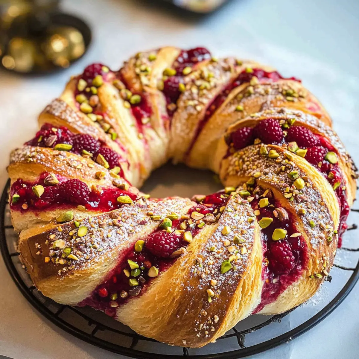 Ein zarter Duft von frisch gebackenem Brot durchzieht die Küche, während ich mich auf die Zubereitung meines Himbeer- und Pistazienkranzes Rezept vorbereite. Diese festliche Leckerei bringt nicht nur Freude auf den Tisch, sondern begeistert auch durch ihre Einfachheit und verwandelt jede Zusammenkunft in ein stilvolles Ereignis. Mit einem weichen, angereicherten Teig, der mit süßer Himbeermarmelade gefüllt und mit knusprigen Pistazien garniert ist, wird dieser Kranz nicht nur ein Hingucker, sondern überzeugt auch in Geschmack und Textur. Ideal für Feiertagsbrunchs oder als liebevolles Geschenk, wird er garantiert zum Star jeder Feier. Bereit, sich in diese herzliche Kreation zu verlieren? Warum wird dieses Rezept ein Hit? Einfachheit: Die Zubereitung dieses Himbeer- und Pistazienkranzes ist kinderleicht und erfordert nur grundlegende Backfähigkeiten. Festlicher Geschmack: Die perfekte Kombination aus süßer Himbeermarmelade und nussigen Pistazien sorgt für einen unvergleichlichen Genuss, der jeden Gaumen verwöhnt. Vielseitigkeit: Ob als elegantes Frühstück oder als besonderes Geschenk, dieser Kranz ist für jede Gelegenheit geeignet und zieht garantiert alle an. Zeitersparnis: Mit nur wenigen Handgriffen und kurzer Backzeit kannst du ein beeindruckendes Ergebnis erzielen, das deine Gäste beeindrucken wird. Wunderbare Textur: Die weich-knusprige Konsistenz, kombiniert mit fruchtiger Süße, macht jeden Bissen zu einem festlichen Erlebnis. Himbeer- und Pistazienkranz Zutaten • Verwöhnen Sie Ihre Gäste mit diesem einfachen und köstlichen Rezept. Für den Teig Mehl – gibt dem Kranz seine Struktur; nutzen Sie gegebenenfalls mehr, je nach Teigkonsistenz. Butter – sorgt für einen weichen und zarten Teig; Raumtemperatur erleichtert das Mischen. Zucker – süßt den Teig; versuchen Sie auch Kokosblütenzucker für einen anderen Geschmack. Eier – binden die Zutaten; sie sollten Zimmertemperatur haben für ein besseres Ergebnis. Backpulver – lässt den Kranz aufgehen; ausreichend für lockeren Teig. Salz – hebt den Geschmack; besonders wichtig, wenn keine gesalzene Butter verwendet wird. Für die Füllung und Dekoration Himbeeren – bringen Fruchtigkeit und Süße; frisch oder gefroren verwenden, je nach Verfügbarkeit. Gemahlene Pistazien – fügen nussigen Geschmack und Textur hinzu; perfekt für einen festlichen Anblick. Puderzucker – für die kreative Prise zum Bestäuben; macht den Kranz besonders ansprechend. Die Kombination dieser Zutaten macht das Himbeer- und Pistazienkranz Rezept zu einer verlockenden Wahl für Ihre festlichen Anlässe! Schritt-für-Schritt-Anleitung für Himbeer- und Pistazienkranz Rezept Step 1: Ofen vorheizen Heize deinen Ofen auf 180°C vor. Diese Temperatur ist ideal, um den Himbeer- und Pistazienkranz gleichmäßig goldbraun zu backen und zugleich die köstlichen Aromen zu entwickeln. Stelle sicher, dass du ein Backblech mit Backpapier auslegst, damit der Kranz nach dem Backen leicht abgenommen werden kann. Step 2: Trockene Zutaten vermengen Vermische das Mehl, Backpulver und eine Prise Salz in einer großen Schüssel. Verwende einen Schneebesen oder eine Gabel, um Luft in die Mischung zu bringen und Klumpen zu vermeiden. Diese Grundlage ist entscheidend, um die perfekte Konsistenz für deinen Himbeer- und Pistazienkranz zu erreichen, damit er beim Backen gut aufgeht. Step 3: Butter und Zucker cremig schlagen In einer separaten Schüssel schlägst du die weiche Butter zusammen mit dem Zucker cremig. Dies dauert etwa 3-5 Minuten. Du kannst hierfür einen Handmixer oder eine Küchenmaschine benutzen. Achte darauf, dass die Mischung hell und fluffig wird, da dies eine der Schlüsseltechniken für einen angenehmen Teig ist. Step 4: Eier hinzufügen Füge nun die Eier einzeln hinzu und rühre gut um. Achte darauf, dass jedes Ei vollständig im Teig integriert ist, bevor du das nächste hinzufügst. Dieser Schritt sorgt dafür, dass der Himbeer- und Pistazienkranz eine schöne, gleichmäßige Textur erhält und gut aufgeht. Step 5: Pistazien einarbeiten Gib die gemahlenen Pistazien zu der Buttermischung und rühre alles gut durch. Die Pistazien sorgen nicht nur für eine lecker nussige Note, sondern tragen auch zur Festlichkeit des Kranzes bei. Achte darauf, keine Stückchen zu übersehen, damit jeder Bissen den köstlichen Geschmack entfaltet. Step 6: Mehlmischung zugeben Füge die zuvor vermischte Mehlmischung zur Butter-Ei-Mischung hinzu. Verwende einen großen Holzlöffel oder eine Teigkarte, um alles gründlich zu verrühren, bis ein homogener Teig entsteht. Vermeide übermäßiges Rühren, damit der Teig nicht zäh wird. Step 7: Himbeeren unterheben Hebe vorsichtig die frischen Himbeeren unter den Teig. Sei dabei behutsam, damit sie nicht zerdrückt werden, und die saftigen Stückchen gleichmäßig im Teig verteilt sind. Diese fruchtige Füllung ist ein Highlight des Himbeer- und Pistazienkranzes, das den gesamten Teig aufregend macht. Step 8: Kranz formen Forme den Teig zu einem Kranz und lege ihn vorsichtig auf das Backblech. Stelle sicher, dass du den Kranz schön rund und gleichmäßig formst. In dieser Phase kannst du auch die Form perfekt anpassen, um eine ansprechende Präsentation zu gewährleisten und die Gäste zu beeindrucken. Step 9: Backen Backe den Himbeer- und Pistazienkranz für etwa 25-30 Minuten im vorgeheizten Ofen. Achte darauf, dass die Oberfläche goldbraun ist und bei leichtem Druck zurückspringt. Dies zeigt, dass der Kranz durchgebacken ist und eine herrliche, fluffige Textur hat. Step 10: Abkühlen und bestäuben Lass den Kranz nach dem Backen auf dem Blech etwa 10 Minuten abkühlen. Bestäube ihn anschließend großzügig mit Puderzucker, um ihm ein festliches Aussehen zu verleihen. Diese süße Note rundet das Geschmackserlebnis perfekt ab und macht deinen Himbeer- und Pistazienkranz zu einem echten Hingucker. Praktische Vorbereitungen für deinen Himbeer- und Pistazienkranz Rezept Die Zubereitung des Hi