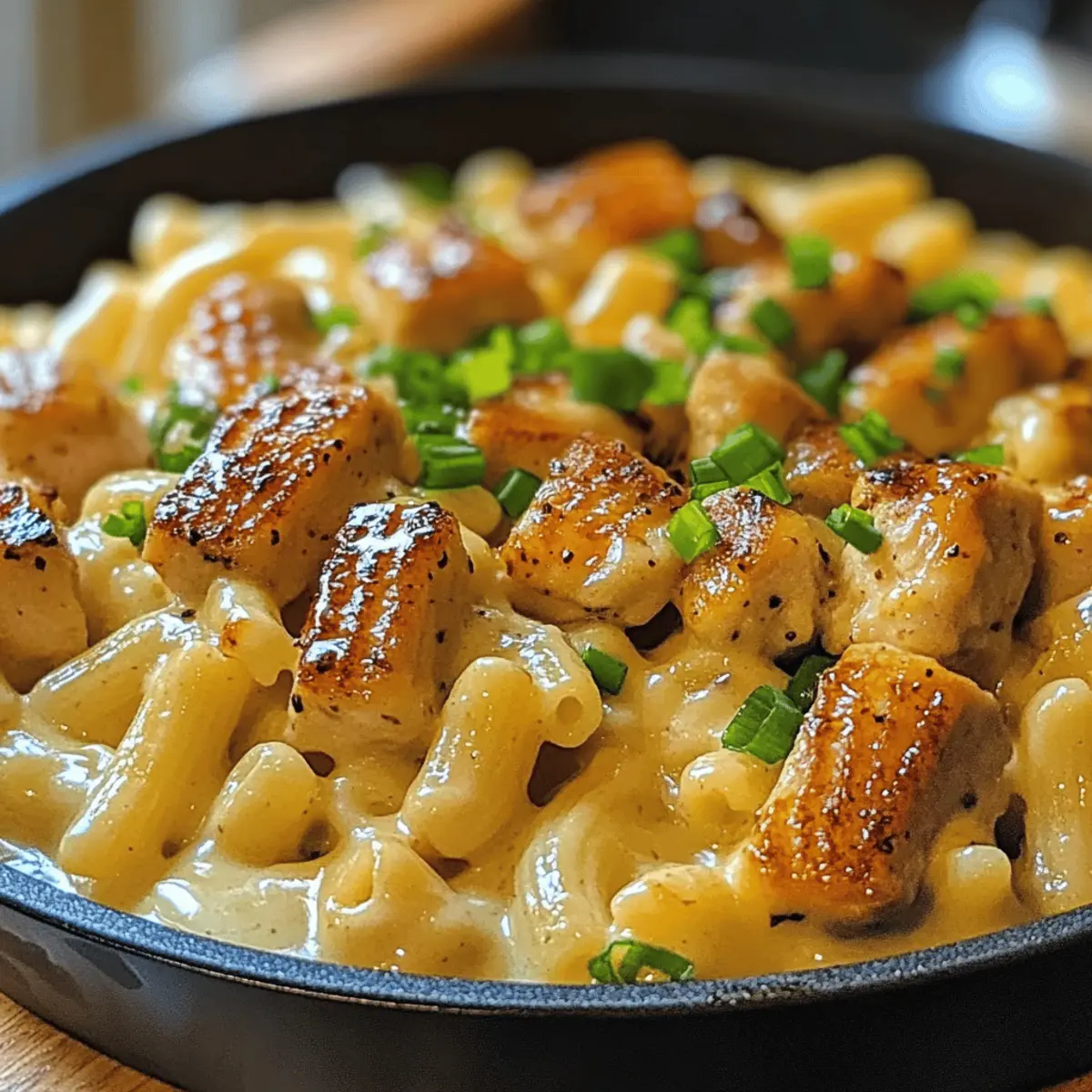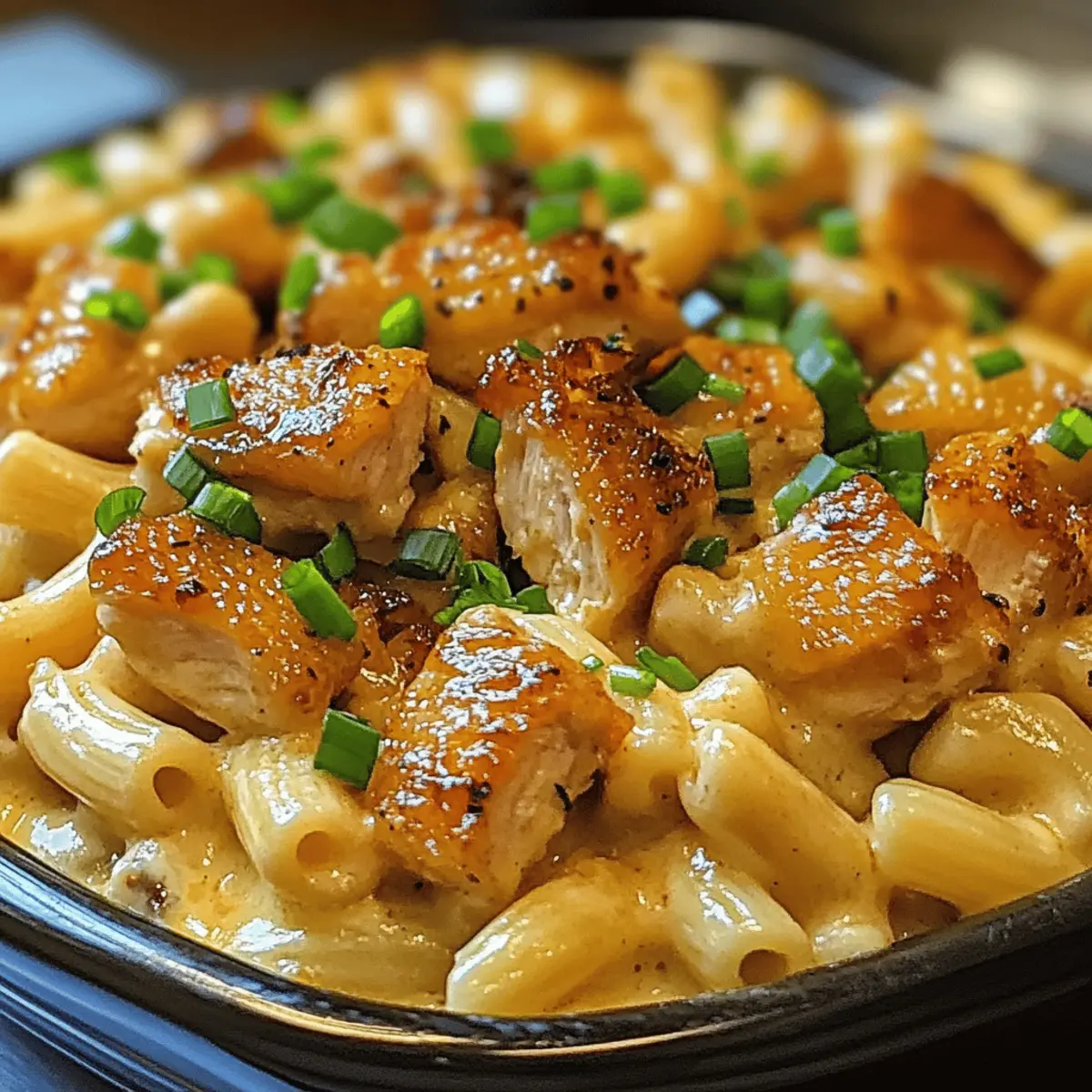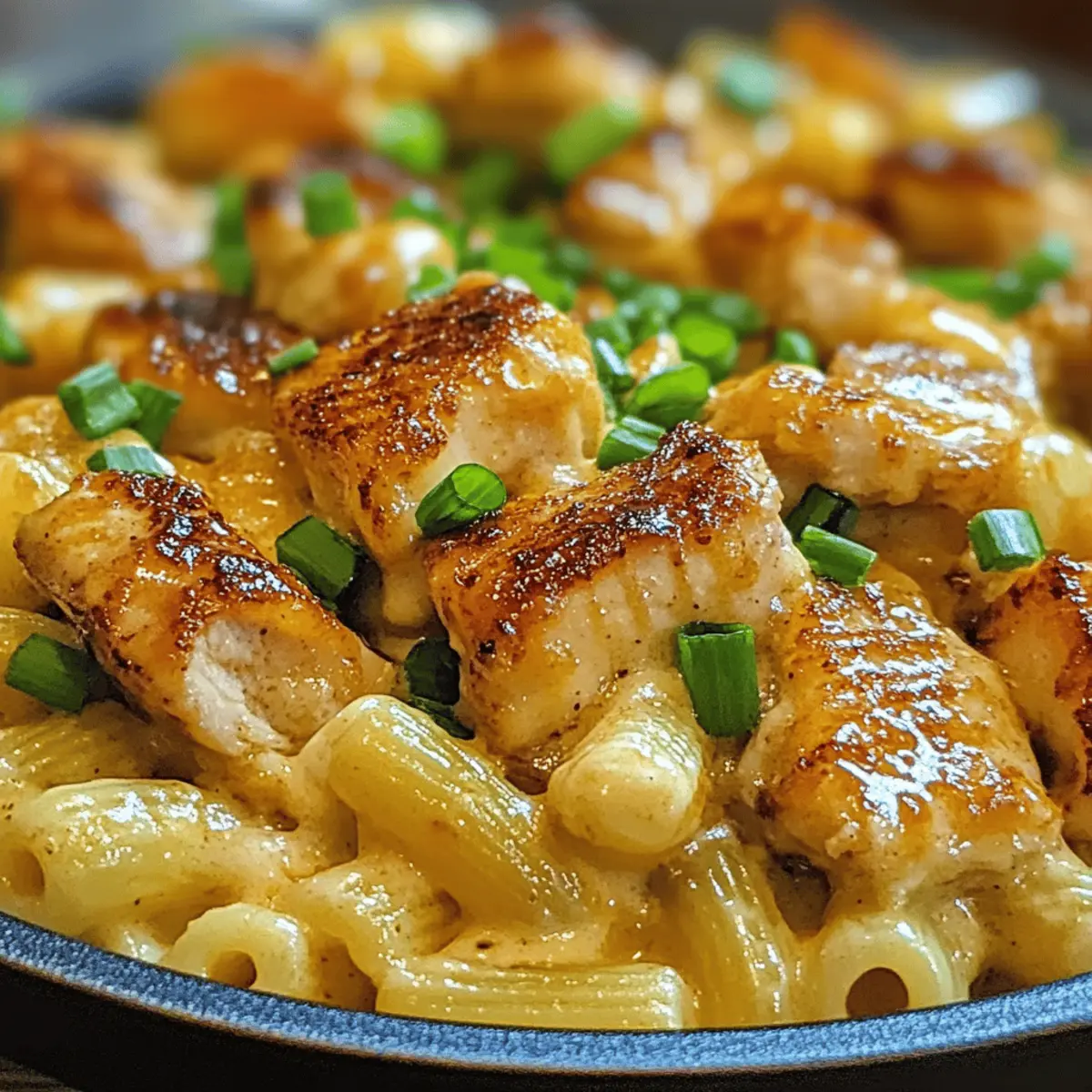 In der lebhaften Küche eines Freundes hörte ich, wie er begeistert erzählte: „Es gibt nichts Besseres als Honig-Knoblauch-Butter-Hühnchen Mac n Cheese!“ Dieses Gericht ist nicht nur ein Fest für die Sinne, sondern verbindet auch die herzliche Nostalgie eines klassischen Comfort Foods mit einem modernen, proteinreichen Twist. Die Kombination aus zartem Hühnchen, süßem Honig und cremigem Käse sorgt für ein unvergessliches Geschmackserlebnis, das perfekt für stressige Wochentage oder das nächste Familientreffen ist. Schnell zubereitet und vollgepackt mit Nährstoffen, wird dieses Gericht Ihre Lieben begeistern und den Verzehr von Fertigessen in den Hintergrund drängen. Neugierig, wie Sie diesen köstlichen Klassiker zu Hause nachkochen können? Lassen Sie uns gleich loslegen! Warum ist dieses Rezept so besonders? Einzigartiger Geschmack: Die Kombination aus Honig und Knoblauch bietet eine harmonische Balance aus Süße und Würze, die Ihre Geschmacksknospen verzaubern wird. Hoher Proteingehalt: Mit einer großzügigen Portion Hühnchen und proteinreichen Zutaten wie Cottage Cheese und Griechischem Joghurt ist dieses Gericht perfekt für Fitnessliebhaber. Schnelle Zubereitung: Ideal für geschäftige Wochentage, da die Zubereitung schnell geht und nur wenige Schritte erfordert. Vielfältige Variationen: Experimentieren Sie mit verschiedenen Käsesorten oder Gemüse wie Brokkoli für zusätzliche Nährstoffe und Abwechslung. Klassischer Komfort: Dieses Gericht kombiniert die traditionelle Mac n Cheese-Textur mit neuen Geschmäckern und wird sicher auch Ihre Liebsten überzeugen. Honig-Knoblauch-Butter-Hühnchen Mac n Cheese Zutaten • Wenn Sie sich fragen, was dieses Rezept so köstlich macht, schauen Sie sich die Zutatenliste an. Für die Pasta • 225 g Ellenbogen-Makkaroni – Die Basis des Gerichts, ideal zum Halten der cremigen Sauce; glutenfreie Pasta eignet sich für eine glutenfreie Variante. Für das Hühnchen • 450 g Hühnerbrust, gewürfelt – Hauptquelle für Protein; verwenden Sie Bio- oder Freilandhühnchen für die beste Qualität. Für die Sauce • 2 Esslöffel Honig – Fügt eine süße Note hinzu, die das würzige Hühnchen ausgleicht; kann für eine vegane Option durch Ahornsirup ersetzt werden. • 60 g ungesalzene Butter – Sorgt für Cremigkeit und Reichtum; pflanzliche Margarine kann für eine vegane Version verwendet werden. • 4 Knoblauchzehen, fein gehackt – Bringt ein aromatisches Aroma; frischer Knoblauch wird für den besten Geschmack empfohlen. • 1 Teelöffel Sojasauce (oder Tamari für glutenfrei) – Fügt Umami hinzu und verstärkt den Gesamteindruck. • 1/2 Teelöffel geräuchertes Paprikapulver – Sorgen für eine subtile Rauchnote; normales Paprikapulver kann verwendet werden, wenn gewünscht. • Salz und Pfeffer nach Geschmack – Essenziell zum Verstärken der Aromen. Für die Käsesauce • 200 g geriebener scharfer Cheddar – Hauptkäse für reichen Geschmack und Cremigkeit; versuchen Sie scharfen oder gereiften Cheddar für einen tieferen Geschmack. • 240 g Cottage Cheese – Fügt Cremigkeit hinzu und erhöht den Proteingehalt. • 120 g Griechischer Joghurt – Verleiht eine frische Note und zusätzliche Cremigkeit; kann durch Sauerrahm für einen anderen Geschmack ersetzt werden. Für das Topping • 1/4 Tasse gehackte Frühlingszwiebeln (optionale Garnitur) – Fügt Frische und Farbe hinzu. Jetzt sind Sie bereit, Ihr eigenes Honig-Knoblauch-Butter-Hühnchen Mac n Cheese zuzubereiten! Schritt-für-Schritt-Anleitung für Honig-Knoblauch-Butter-Hühnchen Mac n Cheese Schritt 1: Makkaroni kochen Bringen Sie einen großen Topf mit gesalzenem Wasser zum Kochen. Fügen Sie die Ellenbogen-Makkaroni hinzu und kochen Sie sie gemäß den Packungsanweisungen al dente, in der Regel etwa 8-10 Minuten. Nachdem sie fertig sind, gießen Sie die Makkaroni in ein Sieb ab und stellen Sie sie beiseite, während Sie die anderen Komponenten vorbereiten. Schritt 2: Hühnchen zubereiten Erhitzen Sie eine große Pfanne bei mittlerer Hitze und geben Sie 1 Esslöffel Butter hinzu. Nach dem Schmelzen das gewürfelte Hühnchen in die Pfanne geben, salzen und pfeffern. Braten Sie das Hühnchen für 5-7 Minuten an, bis es goldbraun ist und kein rosa Fleisch mehr sichtbar ist. Nehmen Sie das Hühnchen aus der Pfanne und stellen Sie es zur Seite. Schritt 3: Honig-Knoblauch-Sauce herstellen In derselben Pfanne die Hitze reduzieren und die restliche Butter sowie den fein gehackten Knoblauch hinzufügen. Sauté für etwa 1 Minute, bis der Knoblauch duftet, aber nicht verbrannt ist. Dann den Honig und die Sojasauce einrühren und die Mischung 2-3 Minuten sanft köcheln lassen, bis sie leicht eingedickt ist. Schritt 4: Hühnchen und Makkaroni kombinieren Das angebratene Hühnchen zurück in die Pfanne zur Honig-Knoblauch-Sauce geben. Gut vermengen, sodass das Hühnchen vollständig mit der Sauce überzogen ist. Fügen Sie die abgetropften Makkaroni hinzu und rühren Sie sorgfältig um, damit die Makkaroni gleichmäßig mit der Sauce bedeckt sind. Schritt 5: Käsesauce vorbereiten In einer separaten Schüssel den geriebenen Cheddar, den Cottage Cheese und den griechischen Joghurt zusammenfügen. Alles gut vermengen, bis die Mischung cremig und glatt ist. Wenn die Sauce zu dick ist, können Sie einen Schuss Milch hinzufügen, um die Konsistenz zu verbessern. Schritt 6: Endgültige Zusammenstellung Die Käsesauce über die Mischung aus Hühnchen und Makkaroni in der Pfanne gießen. Gut durchmischen und bei niedriger Hitze 3-4 Minuten lang erwärmen, bis der Käse schön geschmolzen ist und die gesamte Mischung gleichmäßig cremig ist. Schritt 7: Servieren Die fertige Honig-Knoblauch-Butter-Hühnchen Mac n Cheese in Schalen anrichten. Nach Belieben mit gehackten Frühlingszwiebeln garnieren und sofort servieren. Genießen Sie dieses köstliche Comfort-Food! Meal Prep für Honig-Knoblauch-Butter-Hühnchen Mac n Cheese Die Zubereitung des Honig-Knoblauch-B