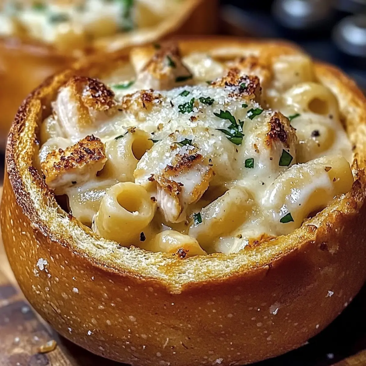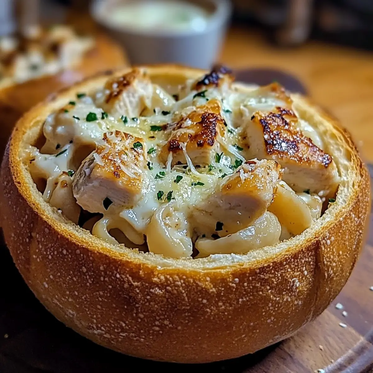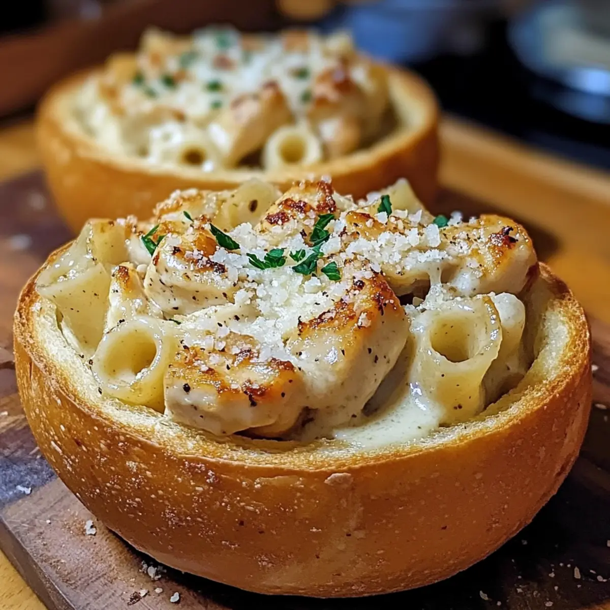 Die warme, einladende Atmosphäre einer Küche, in der köstliche Düfte durch den Raum ziehen, ist für mich unvergesslich. Heute lade ich euch ein, eine wunderbar cremige und zugleich knusprige Köstlichkeit zu entdecken: Hühnchen Alfredo Knoblauchbrot Schalen! Dieses einfache Rezept ist nicht nur ein echter Familienliebling, sondern auch ideal für stressige Wochentage, wenn man schnell etwas Warmes zaubern möchte. Die Kombination aus zartem Hühnchen, reichhaltiger Alfredo-Soße und einem knusprigen, mit Knoblauchbutter bestrichenen Brötchen sorgt für ein harmonisches Geschmackserlebnis, das die Herzen höher schlagen lässt. Und das Beste daran? Ihr könnt es ganz nach Belieben anpassen, sei es mit vegetarischen Alternativen oder dem beliebten Rotisserie-Hühnchen. Neugierig, wie ihr dieses genussvolle Gericht zubereiten könnt? Lasst uns gleich loslegen! Warum werden Sie dieses Rezept lieben? Einfachheit: Die Zubereitung ist kinderleicht und benötigt nur grundlegende Kochfähigkeiten. Mit wenigen Zutaten könnt ihr im Handumdrehen ein köstliches Gericht zaubern. Vielfalt: Ob mit Hühnchen, Gemüse oder sogar mit Rotisserie-Hühnchen, dieses Rezept lässt sich ganz nach eurem Geschmack anpassen. Festmahl für die Familie: Ideal für Feste oder entspannte Familienessen – die Hühnchen Alfredo Knoblauchbrot Schalen sind ein Hit bei Groß und Klein! Wohlfühl-Essen: Die Kombination aus cremiger Alfredo-Soße und knusprigen Brötchen sorgt für ein unvergessliches Geschmackserlebnis, das Erinnerungen weckt. Wenn ihr weitere leckere Ideen sucht, schaut euch unsere Pasta Primavera Alfredo oder würzige Puten Brokkoli Rezepte an! Zutaten für Hühnchen Alfredo Knoblauchbrot Schalen Für das Hühnchen • Hühnchenbrust – liefert Protein und Fülle; in Würfel schneiden für gleichmäßiges Garen. • Olivenöl – zum Anbraten des Hühnchens; verhindert das Ankleben. • Salz und Pfeffer – Grundgewürze, um den Geschmack zu verstärken; nach Geschmack hinzufügen. Für die Pasta • Pasta (Penne, Fettuccine oder nach Wahl) – dient als herzhafter Grundpfeiler des Gerichts; al dente für die beste Textur kochen. Für die Schalen • Kaiserbrötchen – fungiert als essbarer Behälter; oben aufschneiden und aushöhlen, um die Füllung zu halten. • Ungesalzene Butter – für das Bestreichen der Brötchen mit Knoblauchbutter; ungesalzen gibt mehr Kontrolle über die Würze. • Knoblauch- und Kräutersalz – verleiht dem Hühnchen und den Brot-Schalen zusätzlichen Geschmack; kann nach Geschmack variiert werden. Für die Soße • Alfredo-Soße – sorgt für cremige Fülle; selbstgemacht schmeckt am besten, aber auch gekaufte ist in Ordnung. Für die Garnierung • Geriebener Parmesan – bietet eine herzhafte Krönung, die schön schmilzt; kann durch andere Käsesorten ersetzt werden. Genießt das Zubereiten eurer Hühnchen Alfredo Knoblauchbrot Schalen und lasst euch von dem einzigartigen Geschmackserlebnis verzaubern! Schritt-für-Schritt-Anleitung für Hühnchen Alfredo Knoblauchbrot Schalen Step 1: Hühnchen anbraten Würze die gewürfelten Hühnchenbrüste mit Knoblauch- und Kräutersalz, Salz und Pfeffer. Erhitze in einer großen Pfanne etwas Olivenöl bei mittlerer Hitze und brate das Hühnchen für 6–8 Minuten, bis es goldbraun und durchgegart ist. Achte darauf, dass das Hühnchen schön gleichmäßig bräunt. Step 2: Pasta kochen Bringe in einem großen Topf Wasser mit etwas Salz zum Kochen. Gib die Pasta deiner Wahl, wie Penne oder Fettuccine, in das sprudelnde Wasser und koche sie nach Packungsanweisung bis sie al dente ist. Sobald die Pasta fertig ist, gieße sie ab und gib sie zurück in den Topf, um die Füllung für die Hühnchen Alfredo Knoblauchbrot Schalen vorzubereiten. Step 3: Brötchen aushöhlen Schneide die Oberseite der Kaiserbrötchen ab und höhle die Innenseiten vorsichtig aus. Achte darauf, eine ausreichend dicke Wand zu lassen, damit die Brötchen ihre Form behalten. Die ausgehöhlten Brötchen werden später die leckere Füllung für die Hühnchen Alfredo Knoblauchbrot Schalen halten. Step 4: Knoblauchbutter vorbereiten Schmelze die ungesalzene Butter in einem kleinen Topf. Mische die geschmolzene Butter mit zusätzlichem Knoblauch- und Kräutersalz. Bestreiche mit einem Backpinsel die Innenseiten und Ränder der ausgehöhlten Brötchen großzügig mit dieser aromatischen Knoblauchbutter, um den Geschmack zu intensivieren. Step 5: Brot-Schalen toasten Heize den Ofen auf 190°C vor. Lege die vorbereiteten und butterbeschichteten Brötchen auf ein Backblech und backe sie für 4–5 Minuten im Ofen, bis sie goldbraun und leicht knusprig sind. Dies sorgt dafür, dass die Brot-Schalen beim Befüllen nicht durchweichen. Step 6: Zutaten kombinieren Sobald das Hühnchen fertig angebraten ist, füge die abgegossene Pasta und die Alfredo-Soße in die Pfanne hinzu. Vermische alles gut miteinander, sodass die Pasta gleichmäßig mit der cremigen Soße überzogen ist. Dies ist die köstliche Füllung für deine Hühnchen Alfredo Knoblauchbrot Schalen. Step 7: Schalen füllen Spoon die Mischung aus Hühnchen und Alfredo großzügig in jede ofenfrische Brot-Schale. Achte darauf, dass jede Brötchenhälfte gut gefüllt ist, um dem Geschmackserlebnis gerecht zu werden. Ein exquisiter Anblick, der bereits Lust auf mehr macht! Step 8: Finales Backen Setze die gefüllten Brötchen wieder in den Ofen und backe sie für weitere 4–5 Minuten, bis der geriebene Parmesan oben geschmolzen und leicht goldbraun ist. Dies sorgt für eine appetitliche Kruste und verstärkt das Aroma der Hühnchen Alfredo Knoblauchbrot Schalen. Step 9: Servieren Nimm die Hühnchen Alfredo Knoblauchbrot Schalen aus dem Ofen und genieße sie heiß. Du kannst sie optional mit frisch gehackter Petersilie oder einer Prise rotem Pfefferfleisch garnieren, um zusätzliche Farbe und Geschmack hinzuzufügen. Ein vollendetes, herzhaftes Gericht wartet auf dich! Expertentipps für Hühnchen Alfredo Kn