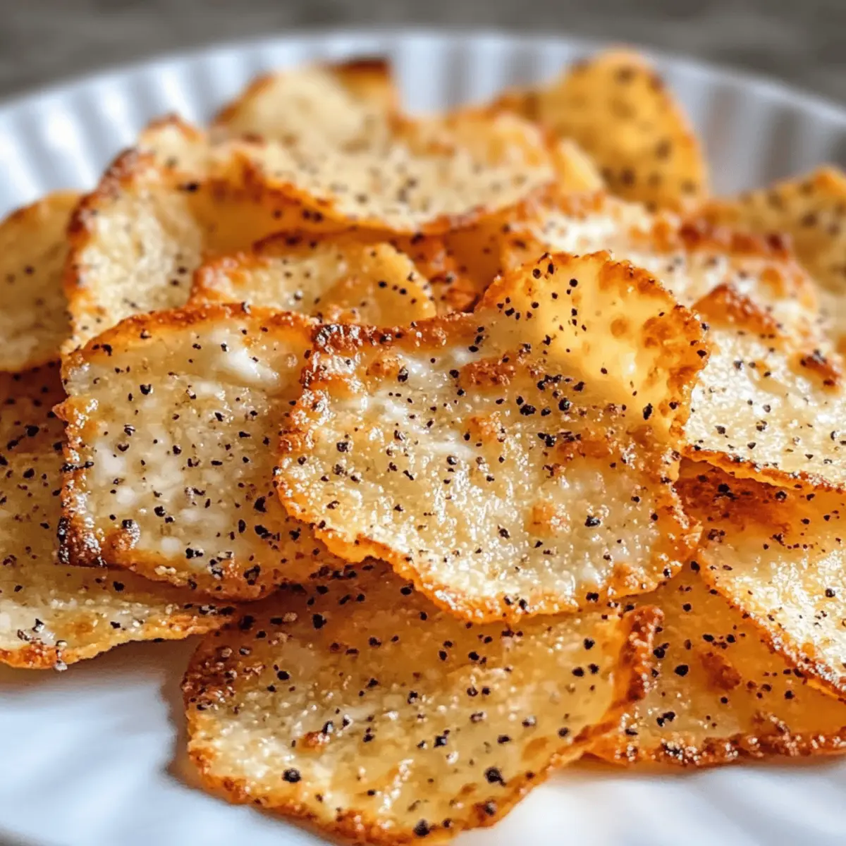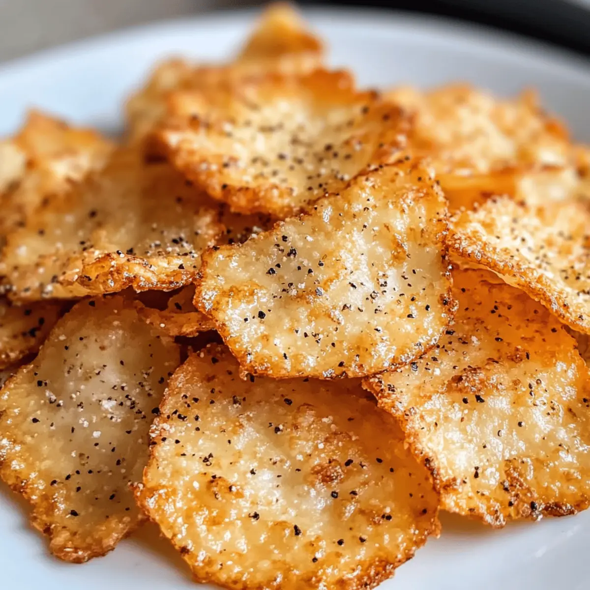 Ich kann es kaum fassen, wie einfach es ist, köstliche Hüttenkäse Chips zuzubereiten! Diese kleinen Knusperwunder sind nicht nur eine aufregende Abwechslung zu klassischen Snacks, sondern überzeugen auch mit ihrem hohen Proteingehalt – perfekt für alle, die sich gesund ernähren und gleichzeitig auf Kohlenhydrate verzichten möchten. Hüttenkäse Chips sind super schnell zubereitet und bieten eine gesunde Snack-Option, die jedem Gaumen schmeichelt. Ob beim gemütlichen Filmabend oder als knuspriger Topping für Salate, diese Chips können überall glänzen. Glaubst du, dass du sie resistent gegen die Versuchung von Junk Food machen kannst? Lass uns gemeinsam entdecken, wie sie entstehen! Warum werden Sie diese Hüttenkäse Chips lieben? Einfachheit: Die Zubereitung ist kinderleicht und erfordert nur wenige Schritte – perfekt für vielbeschäftigte Menschen! Hoher Proteingehalt: Mit etwa 2g Protein pro Chip sind sie eine großartige Snack-Option für Fitness-Enthusiasten. Vielseitig: Ob als gesunder Snack für zwischendurch oder als knuspriges Topping für Salate, die Einsatzmöglichkeiten sind grenzenlos. Gesund und Lecker: Hüttenkäse Chips sind kalorienarm und machen nicht nur satt, sondern schmecken auch köstlich – ideal für eine gesunde Ernährung. Schnell und unkompliziert: In weniger als einer Stunde können Sie diese leckeren Chips frisch aus dem Ofen genießen! Hüttenkäse Chips Zutaten • Entdecke die einfache Zusammensetzung dieser gesunden Snacks! Für den Teig Hüttenkäse – Der Hauptbestandteil sorgt für den hohen Proteingehalt und eine hervorragende Konsistenz. Verwende am besten Hüttenkäse aus Vollmilch für optimale Ergebnisse. Gewürze – Füge nach Geschmack Salz, Pfeffer, Knoblauchpulver oder deine Lieblingsgewürze hinzu, um den Chips mehr Aroma zu verleihen. Parmesan kann obenauf gestreut werden, um zusätzlichen Geschmack zu bieten. Für das Backen Backpapier – Zum Auslegen des Backblechs, damit die Chips nicht ankleben. Dies erleichtert auch das Reinigen nach dem Backen. Sprühlösung (optional) – Ein leichter Sprühnebel auf dem Backpapier kann helfen, die Chips noch knuspriger zu machen und verhindert das Ankleben. Mit diesen Zutaten bist du bestens gerüstet, um deine eigenen köstlichen Hüttenkäse Chips zuzubereiten! Step-by-Step Instructions für Hüttenkäse Chips Step 1: Ofen vorheizen Heize deinen Ofen auf 175°C vor und lege ein Backblech mit Backpapier aus. Um ein Ankleben zu verhindern und für eine zusätzliche Knusprigkeit zu sorgen, sprühe das Backpapier leicht mit einer Sprühlösung ein. Dies sorgt dafür, dass deine Hüttenkäse Chips gleichmäßig und knusprig backen. Step 2: Hüttenkäse vorbereiten Überprüfe den Hüttenkäse und lasse überschüssige Flüssigkeit ablaufen, um eine bessere Textur zu erzielen. Dies ist entscheidend für das Gelingen deiner Hüttenkäse Chips, da eine zu feuchte Basis dazu führen kann, dass sie nicht richtig knusprig werden. Nach dem Abtropfen ist der Hüttenkäse bereit für die nächste Phase. Step 3: Portionieren und formen Nimm mit einem Esslöffel 1-Tischlöffel große Portionen Hüttenkäse und platziere sie mit genügend Abstand (ca. 5 cm) auf deinem vorbereiteten Backblech. Drücke jede Portion vorsichtig zu flachen Mounds von etwa 0,6 cm Dicke. Diese Form gibt den Chips die Möglichkeit, gleichmäßig zu backen und eine schöne Knusprigkeit zu erreichen. Step 4: Würzen Streue nach Belieben Gewürze über die flachgedrückten Hüttenkäse Mounds. Du kannst Salz, Pfeffer oder Knoblauchpulver verwenden, um zusätzlichen Geschmack zu verleihen. Eine Prise Parmesan obendrauf sorgt für eine interessante Geschmacksdimension und macht deine Hüttenkäse Chips zu einem ganz besonderen Snack. Step 5: Backen Schiebe das Backblech in den vorgeheizten Ofen und backe die Hüttenkäse Chips 40 bis 50 Minuten lang. Beobachte die Chips besonders ab der 20. Minute, um sicherzustellen, dass sie nicht verbrennen. Die Chips sind fertig, wenn die Ränder dunkelbraun sind und die Oberfläche goldgelb leuchtet. Step 6: Abkühlen lassen Nimm das Backblech aus dem Ofen und lasse die Hüttenkäse Chips vollständig darauf abkühlen. Dies ist ein wichtiger Schritt, da die Chips beim Abkühlen weiter knusprig werden. Geduld ist gefragt, aber die leckeren Snacks sind es wert! Nach dem Abkühlen kannst du sie direkt genießen oder für später aufbewahren. Was passt zu Hüttenkäse Chips? Umgeben von einem köstlichen Aroma und knackiger Frische, sind diese Hüttenkäse Chips der ideale Snack für jede Gelegenheit. Frische Guacamole: Diese cremige Avocado-Dip ergänzt die knusprigen Chips perfekt und bietet einen interessanten Kontrast. Milde Salsa: Eine frische Salsa fügt eine fruchtige Note hinzu, die wunderbar mit der herzhaften Basis der Chips harmoniert. Cremiger Joghurt-Dip: Ein dip aus griechischem Joghurt mit Kräutern sorgt für eine erfrischende Ergänzung und ist besonders gesund. Gemüsesticks: Karotten, Sellerie oder Paprika bringen zusätzliche Frische und Crunch in dein Snack-Erlebnis und harmonieren wunderbar mit den Chips. Knuspriger Salat: Über einen Salat gestreut, verleihen die Hüttenkäse Chips eine knusprige Textur, die das Gericht aufwertet. Eisgekühltes Mineralwasser: Perfekt für einen erfrischenden Genuss, während du mit Freunden einen Filmabend genießt – ganz ohne künstliche Zusätze. Schokoladenmousse: Als süßes Dessert nach diesen herzhaften Snacks, bringt ein Schokoladenmousse die Geschmacksrichtungen zum perfekten Schluss. Aufbewahrungstipps für Hüttenkäse Chips Zimmertemperatur:: Bewahre die abgekühlten Hüttenkäse Chips in einem luftdichten Behälter bei Raumtemperatur für bis zu 2 Tage auf, um ihre Knusprigkeit zu erhalten. Kühlschrank:: Sollten sie länger halten, kannst du die Chips bis zu 4 Tage im Kühlschrank lagern. Lege Backpapier zwischen die Schichten, um ein Aneinanderkleben zu vermeiden. Gefrierschrank:: Für eine längere Lagerung kannst du