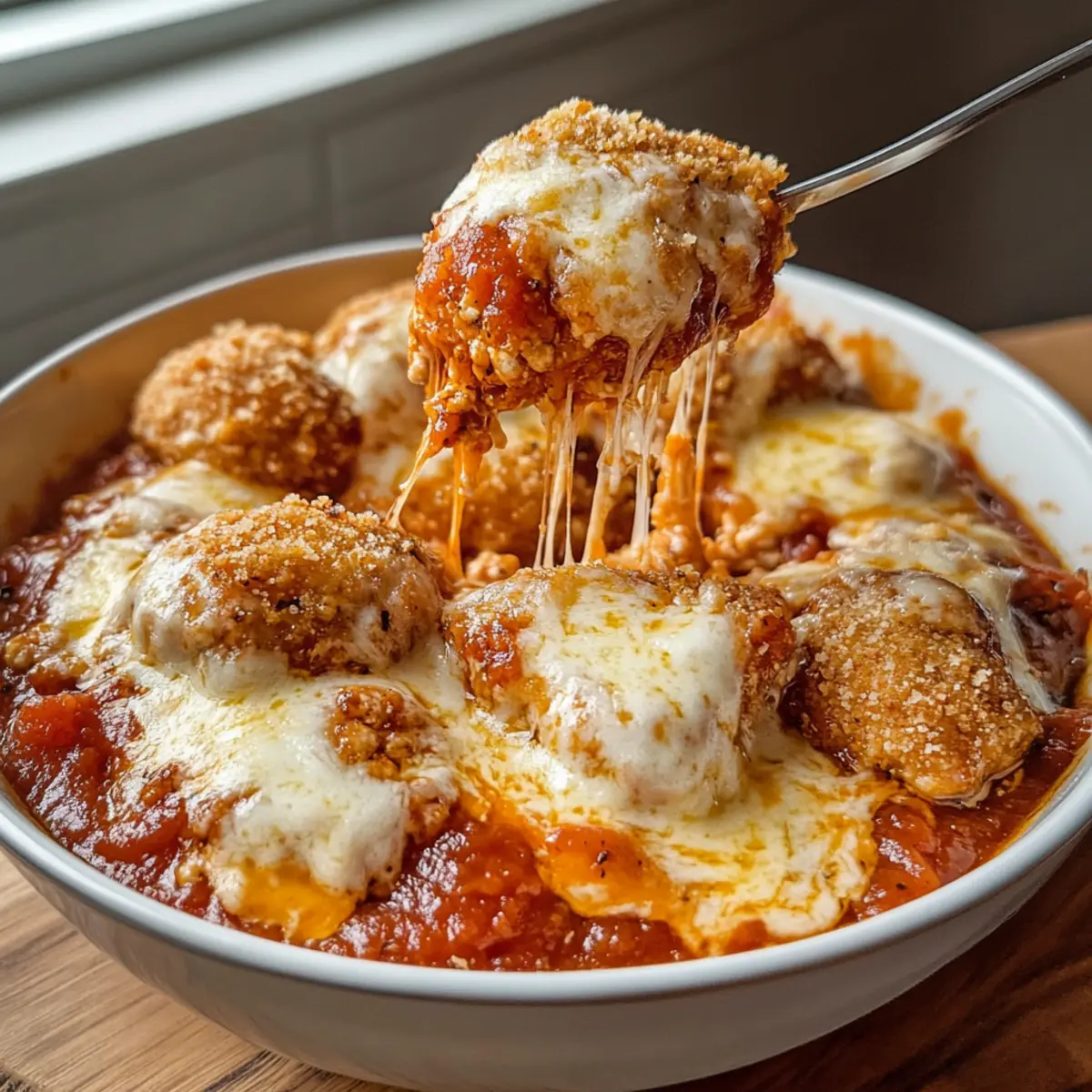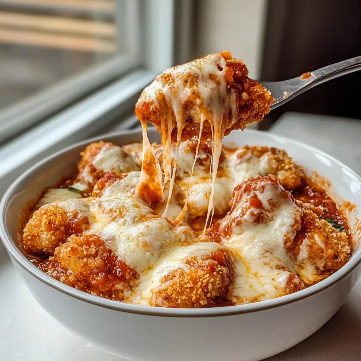 Hast du schon einmal in der Hektik eines Wochentags nach einer schnellen, aber leckeren Mahlzeit gesucht? Genau in solchen Momenten greife ich gerne zu meinem Hüttenkäse Hähnchen Parm Bowl, einem Gericht, das sich blitzschnell zubereiten lässt und gleichzeitig den Heißhunger stillt. Diese proteinreiche, gesunde Variante des klassischen Chicken Parmesan vereint zarte Hähnchenstücke mit cremigem Hüttenkäse und würziger Marinara-Soße, gekrönt von geschmolzenem Mozzarella. Es ist nicht nur eine köstliche Option für mich, sondern auch ein echter Publikumsliebling, der die ganze Familie begeistert. Mit nur wenigen Zutaten ist dieses Gericht perfekt für stressige Abende, an denen du etwas Gutes auf den Tisch bringen möchtest. Bereit, etwas Neues auszuprobieren? Lass uns gemeinsam in die Zubereitung dieses leckeren Bowls eintauchen! Warum wirst du dieses Rezept lieben? Einfachheit: Die Zubereitung ist kinderleicht und erfordert keine besonderen Kochkünste. In nur wenigen Minuten zauberst du ein köstliches Gericht. Hoher Proteingehalt: Diese Hüttenkäse Hähnchen Parm Bowl ist ein nährstoffreicher Genuss, der ideal für alle ist, die auf eine proteinhaltige Ernährung achten. Familienfreundlich: Die Kombination aus Hähnchen, Hüttenkäse und würziger Soße beeindruckt Groß und Klein gleichermaßen. Vielseitigkeit: Du kannst das Gericht nach Belieben anpassen, indem du zum Beispiel zarte Rinderbissen Rezept oder frisches Gemüse hinzufügst, um extra Nährstoffe hinzuzufügen. Diese Bowl ist die perfekte Lösung für stressige Abende, wenn der Hunger groß ist und die Zeit knapp ist! Hüttenkäse Hähnchen Parme Bowl Zutaten Für die Basis Hüttenkäse – Die cremige Basis sorgt für einen hohen Proteingehalt und eine angenehme Textur. Hähnchen Nuggets – Diese Hauptzutat ist einfach zubereitbar und liefert die nötige Proteindosis. Achte darauf, die Nuggets nach Anleitung zu garen. Marinara-Soße – Sie hebt den Geschmack und bringt eine würzige Note ins Gericht. Fast jede fertige Variante passt hervorragend. Mozzarella-Käse – Der geschmolzene Käse verleiht der Bowl eine köstlich zarte Kruste. Verwende frischen Mozzarella für das beste Ergebnis. Für den Geschmack Italienische Gewürzmischung – Diese Mischung aus getrockneten Kräutern intensiviert den Geschmack; kannst sie durch gemischte Kräuter ersetzen, falls nicht vorhanden. Knoblauchpulver – sorgt für ein herzhaftes Aroma und einen kräftigen Geschmack. Frischer Knoblauch kann für mehr Intensität verwendet werden. Diese Hüttenkäse Hähnchen Parm Bowl ist nicht nur lecker, sondern auch gesund und einfach zuzubereiten! Schritt-für-Schritt-Anleitung für Hüttenkäse Hähnchen Parm Bowl Schritt 1: Zutaten vorbereiten Zuerst nimmst du eine mikrowellengeeignete Schüssel und gibst den Hüttenkäse, die Marinara-Soße, den Mozzarella, die italienische Gewürzmischung und das Knoblauchpulver hinein. Rühre alles gut um, bis eine homogene Masse entsteht. Achte darauf, dass alles gleichmäßig verteilt ist, um ein volleres Geschmackserlebnis zu erzielen. Schritt 2: Erwärmen Erhitze die Mischung in der Mikrowelle bei hoher Leistung für 1 Minute. Nach 30 Sekunden nimm die Schüssel heraus und rühre die Zutaten erneut um. Dies hilft, die Mischung gleichmäßig zu erwärmen. Achte darauf, dass die Soße heiß ist, aber der Hüttenkäse nicht zu stark ausflockt. Schritt 3: Hähnchen Nuggets vorbereiten Während die Basis erwärmt wird, schneide die Luftfritteuse Hähnchen Nuggets in kleine Stücke. Die Schnitte sollten gleichmäßig sein, damit sie gut in die Bowl passen. Achte darauf, dass die Nuggets goldbraun sind und saftig bleiben, um die Textur der Bowl zu verbessern. Schritt 4: Hähnchen hinzufügen Füge die geschnittenen Hähnchen Nuggets der erhitzten Mischung in der Schüssel hinzu. Rühre alles gut durch, sodass sich die Nuggets gleichmäßig mit der Hüttenkäse-Mischung verbinden. Dies sorgt dafür, dass jeder Bissen die Aromen der Hüttenkäse Hähnchen Parm Bowl aufnimmt. Schritt 5: Erneut erwärmen Stelle die Schüssel wieder in die Mikrowelle und erhitze alles für weitere 30 Sekunden. Achte darauf, dass der Mozzarella vollständig schmilzt und eine cremige Konsistenz erreicht wird. Die Mischung sollte warm und die Oberseite schön blinkend sein, was anzeigt, dass sie bereit zum Servieren ist. Schritt 6: Anrichten und Servieren Nimm die Schüssel aus der Mikrowelle und serviere die Hüttenkäse Hähnchen Parm Bowl sofort. Du kannst das Gericht nach Belieben auf einem Bett aus Pasta oder Reis anrichten. Damit es noch leckerer wird, garniere es mit frischen Kräutern wie Basilikum oder Petersilie für einen zusätzlichen Frischekick. Expert Tips für Hüttenkäse Hähnchen Parm Bowl Hähnchen zart halten: Überprüfe die Garzeit der Hähnchen Nuggets in der Luftfritteuse, um zu verhindern, dass sie austrocknen. Vorsicht mit Hüttenkäse: Lass den Hüttenkäse vor dem Mischen leicht erwärmen, um ein Ausflocken zu vermeiden. Vorbereitung ist alles: Würze den Hüttenkäse, bevor du ihn mit den anderen Zutaten vermischst, da er sonst geschmacklich blass bleibt. Mozzarella richtig einsetzen: Füge den Mozzarella erst kurz vor dem Servieren hinzu, um eine gummiartige Konsistenz zu vermeiden. Schnell und köstlich: Verarbeite die einzelnen Zutaten zügig, um die Frische und den Geschmack der Hüttenkäse Hähnchen Parm Bowl optimal zu bewahren. Was passt gut zu Hüttenkäse Hähnchen Parm Bowl? Diese schmackhafte Bowl ist perfekt für ein ausgewogenes Abendessen, das die Sinne verwöhnt und die Familie zusammenbringt. Cremige Pasta: Eine Portion Butter- oder Sahnesauce bringt eine herrlich samtige Textur ins Spiel und macht die Mahlzeit noch sättigender. Frischer grüner Salat: Knackiges Gemüse mit einem leichten Dressing sorgt für frische Akzente und ergänzt die reichhaltigen Aromen der Bowl wunderbar. Knoblauchbrot: Dieses einfache, aber köstliche Brot ist perfekt, um die köstlichen Sauce