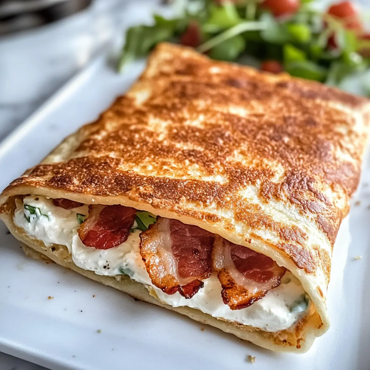 Es gibt Momente in der Küche, die einfach leichten, aber köstlichen Genuss versprechen. Wenn ich an Hüttenkäse Wraps denke, sprudeln die Erinnerungen an schnelle Mittagessen und kreative Frühstücksideen in meinem Kopf. Diese Wraps sind eine wahre Proteinbombe, da sie über 21 g pro Portion liefern, und sie sind dabei auch noch glutenfrei und low-carb. Die Zubereitung ist kinderleicht: Einfach mixen, backen und rollen – das macht sie nicht nur perfekt für Meal Prep, sondern auch zu einer spannenden Möglichkeit, tägliche Mahlzeiten aufzupeppen. Ob gefüllt mit frischem Gemüse, herzhaftem Fleisch oder cremigem Käse, sie lassen sich ganz nach Ihrem Geschmack anpassen. Neugierig geworden, welche köstlichen Füllungen Sie ausprobieren können? Lassen Sie uns gemeinsam in diese Welt des gesunden Genusses eintauchen! Warum sind Hüttenkäse Wraps so besonders? Vielseitigkeit: Diese Wraps sind ein leeres Blatt, das Sie ganz nach Ihrem Geschmack gestalten können. Von frischem Gemüse bis zu käsehaltigen Füllungen ist alles möglich! Einfachheit: Mit nur wenigen Zutaten zaubern Sie im Handumdrehen eine gesunde Mahlzeit, die keine komplizierten Schritte erfordert. Perfekt für stressige Tage! Gesundheitsbewusst: Mit über 21g Protein pro Portion sind sie eine ideale Bereicherung für Ihre Diät – ob low-carb oder glutenfrei. Sättigend: Die weiche und dennoch feste Textur dieser Wraps sorgt dafür, dass sie sättigend sind und Ihnen helfen, den Hunger zu stillen – ganz ohne schweres Fast Food. Meal Prep Freu(n)de: Bereiten Sie sie im Voraus zu und genießen Sie diese praktischen Wraps überall, ob in der Schule oder im Büro! Genießen Sie diese köstlichen Hüttenkäse Wraps und entdecken Sie die Schönheit einfacher, gesunder Küche! Hüttenkäse Wraps Zutaten Für den Teig Vollfetter Hüttenkäse – sorgt für Feuchtigkeit und bietet eine reichhaltige Proteinquelle; verwenden Sie fettarmen Hüttenkäse, wenn Sie Kalorien reduzieren möchten, achten Sie jedoch auf die Textur. Eier – wirken als Bindemittel und verleihen den Wraps eine reichhaltige Note; für eine vegane Option kann Aquafaba als Ersatz verwendet werden. Geriebener Parmesan – verstärkt den Geschmack und hilft, eine goldbraune Oberfläche zu erreichen; jeder fein geriebene Käse wie Mozzarella kann als Ersatz dienen. Knoblauchpulver – bringt eine herzhafte Note ins Spiel; kann weggelassen oder durch frischen, gehackten Knoblauch ersetzt werden. Italienische Gewürzmischung – fügt eine Vielzahl an Aromen hinzu; bei Bedarf können getrockneter Basilikum oder Oregano verwendet werden. Für die Füllung Frisches Gemüse – bringt Crunch und Frische; beliebige saisonale Zutaten können verwendet werden. Käse – für noch mehr Geschmack; probieren Sie Frischkäse oder Cheddar für eine cremige Füllung. Gekochtes Fleisch – wie Hühnchen oder Schinken; verleiht zusätzliche Proteine und bleibt dabei lecker. Avocado – ideal für eine cremige, gesunde Füllung; ein toller Fettlieferant für zusätzliche Sättigung. Die Zubereitung Ihrer Hüttenkäse Wraps war noch nie so einfach! Nutzen Sie die Vielseitigkeit und experimentieren Sie mit verschiedenen Füllungen, um Ihren ganz persönlichen Geschmack zu finden. Schritt-für-Schritt-Anleitung für Hüttenkäse Wraps Step 1: Ofen vorheizen Heizen Sie den Ofen auf 175 °C (350 °F) vor und legen Sie ein großes Backblech mit Backpapier aus. Fetten Sie das Backpapier leicht ein, um ein Ankleben der Hüttenkäse Wraps zu verhindern. Achten Sie darauf, dass die Temperatur gleichmäßig erreicht wird, während Sie die Teigmischung zubereiten. Step 2: Teig zubereiten Geben Sie den Vollfett-Hüttenkäse, die Eier, den geriebenen Parmesan, das Knoblauchpulver und die italienische Gewürzmischung in einen Mixer. Mixen Sie alles für etwa eine Minute, bis die Mischung vollständig glatt und cremig ist. Achten Sie darauf, dass keine Klumpen zurückbleiben, um eine gleichmäßige Textur der Hüttenkäse Wraps zu gewährleisten. Step 3: Teig auf das Backblech geben Gießen Sie die glatte Teigmischung auf das vorbereitete Backblech und verwenden Sie einen Spatel, um sie gleichmäßig zu einem dünnen Rechteck zu verteilen. Stellen Sie sicher, dass die Schicht nicht dicker als 1 cm ist, damit die Wraps gleichmäßig backen und eine zarte, aber feste Textur entwickeln. Step 4: Backen Backen Sie die Mischung im vorgeheizten Ofen für 30-35 Minuten, bis die Oberfläche leicht golden ist und der Wrap fest anfühlt. Schauen Sie gegen Ende der Backzeit nach der Oberfläche; in einigen Öfen kann es bis zu 40 Minuten dauern, bis die Hüttenkäse Wraps perfekt gebacken sind. Step 5: Abkühlen lassen Lassen Sie die Wraps vollständig auf dem Blech abkühlen, um ein Reißen der empfindlichen Struktur zu vermeiden. Lassen Sie sie an einem kühlen Ort stehen, bis sie handwarm sind, bevor Sie sie vorsichtig vom Backpapier abziehen, um Beschädigungen zu vermeiden. Step 6: Wraps schneiden und füllen Nachdem die Hüttenkäse Wraps abgekühlt sind, schneiden Sie sie in gleichmäßige Abschnitte. Füllen Sie die Wraps nach Belieben mit frischem Gemüse, Käse oder gekochtem Fleisch. Lassen Sie Ihrer Kreativität freien Lauf und genießen Sie die vielseitige Geschmackswelt, die Ihnen diese Wraps bieten! Lagerungstipps für Hüttenkäse Wraps Raumtemperatur: Hüttenkäse Wraps sollten nicht länger als 2 Stunden bei Raumtemperatur gelagert werden, um die Frische zu erhalten und eine mögliche Bakterienbildung zu vermeiden. Kühlschrank: Bewahren Sie die Wraps in einem luftdichten Behälter im Kühlschrank auf, wo sie bis zu 5 Tage haltbar sind. So bleiben sie weich und schmackhaft. Gefrierschrank: Für eine längere Lagerung legen Sie die Wraps in Schichten mit Backpapier zwischen die einzelnen Wraps und frieren sie bis zu 2 Monate ein. Zum Auftauen stellen Sie sie über Nacht in den Kühlschrank. Wiedererwärmung: Um die Hüttenkäse Wraps wieder herzurichten, erwärmen Sie sie in der Mikr