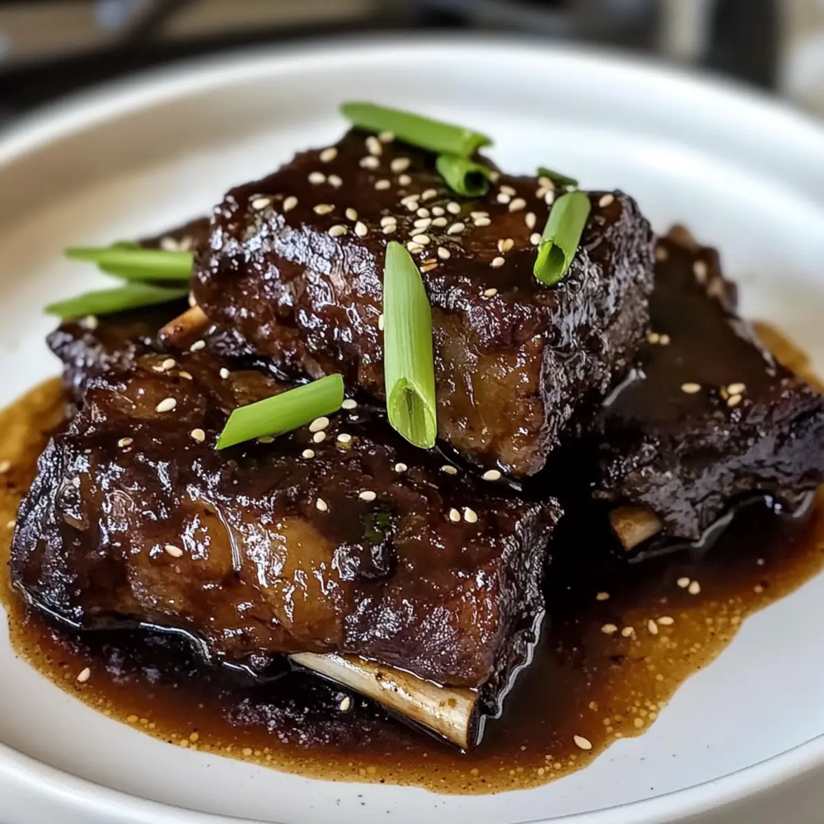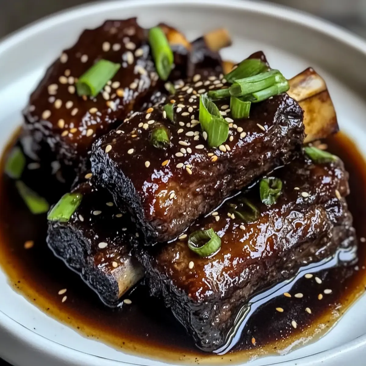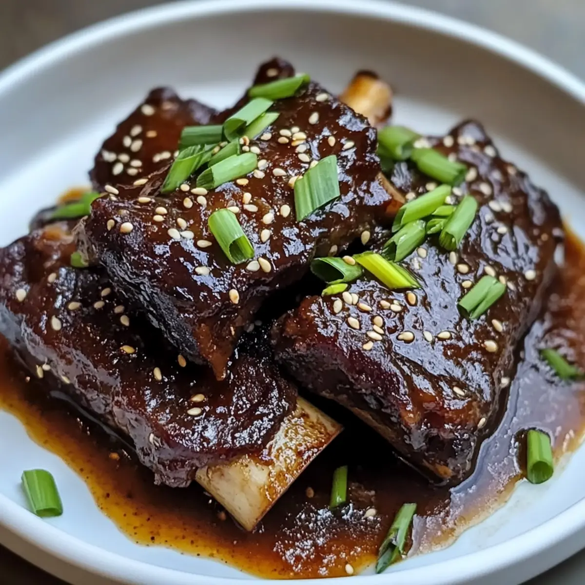 Ich stand neulich in meiner Küche, umgeben von den betörenden Düften von frischem Ingwer und aromatischer Miso-Paste. Wenn die kalten Tage anbrechen, gibt es kaum etwas Beruhigenderes als Ingwer-Miso geschmorte Rinderkurzbraten – ein Gericht, das herzliche Umarmungen auf den Teller bringt. Diese zarten Rinderknochen, liebevoll in einer würzigen Miso-Sauce geschmort, sind nicht nur eine Freude fürs Auge, sondern auch eine wahre Geschmacksexplosion. Zudem sind sie schnell zubereitet und eignen sich hervorragend für Familienessen oder gesellige Abende. Lassen Sie sich von dieser Kombination aus umami und Wärme verführen und machen Sie sich bereit, Ihre Liebsten mit einem unwiderstehlichen Komfortgericht zu begeistern. Worauf warten wir also? Tauchen wir ein in die verführerische Welt der asiatisch inspirierten Küche! Warum werden Sie dieses Rezept lieben? Einfachheit: Die Zubereitung ist unkompliziert und erfordert nur grundlegende Kochkenntnisse. Zartes Fleisch: Die Rinderknochen werden schmelzend zart, perfekt für ein herzhaftes Familienessen. Umami-Geschmack: Die Kombination aus Ingwer und Miso bringt eine Geschmacksintensität, die Sie nie vergessen werden. Vielseitig: Variieren Sie das Rezept mit Gemüse wie Karotten oder Bok Choy für mehr Nährstoffe. Wenig Aufwand: Ideal für gesellige Abende, da es im Ofen schmort und Sie Zeit für Ihre Gäste haben. Entdecken Sie auch unser Rezept für Zart Geschmortes Hähnchen, das genauso unkompliziert und köstlich ist! Ingwer-Miso geschmorte Rinderkurzbraten Zutaten • Die perfekte Mischung für ein herzhaftes Gericht! Für die Rinderkurzbraten Rinderknochen – Wählen Sie gut marmorierte Stücke für besonders zartes Fleisch. Miso-Paste – Sorgt für die umami Geschmacksbasis; weiße oder gelbe Miso sind milder. Sojasauce – Verleiht Tiefe und Salz; verwenden Sie Tamari für eine glutenfreie Variante. Reisessig – Bringt eine ausgewogene Süße und Säure; Apfelessig kann ebenfalls verwendet werden. Brauner Zucker – Fügt eine süße Note hinzu; Honig oder Ahornsirup sorgen für eine andere Geschmacksrichtung. Frischer Ingwer – Verleiht einen würzigen Kick; frisch gerieben ist am besten. Knoblauch – Gibt Aroma und Tiefe; frisch gehackt ist empfehlenswert. Sesamöl – Ideal zum Anbraten und für mehr Geschmack; geröstetes Sesamöl bringt einen intensiveren Geschmack. Rinderbrühe – Hält das Fleisch saftig; hausgemachte oder natriumarme Varianten sind ideal. Maisstärke – Optional zum Andicken der Sauce; mit Wasser anrühren für eine Slurry. Für die Garnitur Frühlingszwiebeln & Sesamkörner – Frische und einen knusprigen Kick für das fertige Gericht. Genießen Sie die Aromen des Ingwer-Miso geschmorten Rinderkurzbratens und machen Sie diesen köstlichen Klassiker zum Höhepunkt Ihres nächsten Familienessens! Step-by-Step Instructions für Ingwer-Miso geschmorte Rinderkurzbraten Step 1: Ofen vorheizen Heizen Sie Ihren Ofen auf 150 °C (300 °F) vor. Dies ist die ideale Temperatur, um das zarte Fleisch langsam zu schmoren und die Aromen der Ingwer-Miso-Sauce voll zur Geltung zu bringen. Ein vorgeheizter Ofen sorgt für eine gleichmäßige Garung der Rinderknochen, damit sie bei perfekter Temperatur zart und saftig werden. Step 2: Rinderknochen anbraten Erhitzen Sie in einem großen Bräter bei mittlerer bis hoher Hitze einen Esslöffel Sesamöl. Würzen Sie die Rinderknochen großzügig mit Salz und Pfeffer und braten Sie sie für 4-5 Minuten pro Seite an, bis sie schön goldbraun sind. Achten Sie darauf, sie nicht zu überladen, damit sie gleichmäßig bräunen können. Nehmen Sie die Rinderknochen anschließend aus der Pfanne und stellen Sie sie beiseite. Step 3: Sauce vorbereiten In einer Schüssel mischen Sie die Miso-Paste, Sojasauce, Reisessig, braunen Zucker, geriebenen Ingwer und den gehackten Knoblauch zu einer glatten Mischung. Diese aromatische Sauce wird den Ingwer-Miso geschmorten Rinderkurzbraten perfekt abrunden und eine köstliche Glasur bilden. Mischen Sie gründlich, damit sich alle Zutaten gut verbinden und die Aromen entfalten können. Step 4: Pfanne ablöschen Gießen Sie eine kleine Menge Rinderbrühe in den Bräter, in dem Sie die Rinderknochen angebraten haben. Schaben Sie mit einem Holzlöffel die angebrannten Reste vom Boden ab, um den vollen Geschmack freizusetzen. Diese Aromen werden Ihr Gericht aufwerten und eine geschmackvolle Basis für das Schmoren der Rinderknochen bilden. Step 5: Zutaten kombinieren Legen Sie die Rinderknochen zurück in den Bräter und gießen Sie die vorbereitete Miso-Mischung sowie die restliche Rinderbrühe darüber. Stellen Sie sicher, dass die Rinderknochen gut bedeckt sind, damit sie beim Schmoren saftig bleiben. Dieses Zusammenspiel von Brühe und Miso wird für eine köstliche, würzige Soße sorgen, die das Fleisch durchdringt. Step 6: Schmoren Decken Sie den Bräter mit einem Deckel ab und stellen Sie ihn in den vorgeheizten Ofen. Lassen Sie die Rinderknochen 3 Stunden lang schmoren, bis sie zart sind und sich leicht mit einer Gabel zerteilen lassen. Diese langsame Garzeit hilft, das Fleisch wunderbar saftig zu halten und die Aromen der Ingwer-Miso-Sauce perfekt zu integrieren. Step 7: Sauce andicken (optional) Nehmen Sie die Rinderknochen nach der Garzeit aus dem Bräter und stellen Sie sie beiseite. Bringen Sie die Sauce im Bräter zum Kochen und rühren Sie die mit Wasser vermischte Maisstärke ein, um die Sauce nach Wunsch zu verdicken. Die Sauce sollte glänzend und dickflüssig sein, sodass sie perfekt an den Rinderknochen haftet. Step 8: Servieren Legen Sie die Rinderknochen erneut in die Sauce und lassen Sie sie kurz erhitzen, bevor Sie sie heiß servieren. Garnieren Sie Ihr Gericht mit frisch gehackten Frühlingszwiebeln und Sesamkörnern für zusätzliche Frische und einen knusprigen Biss. Der Ingwer-Miso geschmorte Rinderkurzbraten ist nun bereit, Ihre Gäste zu begeistern! Meal Prep für Ingwer-Miso geschmorte Rinderkurzbraten Die Ing