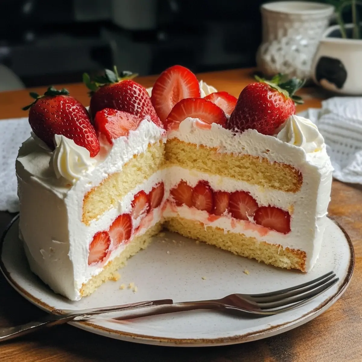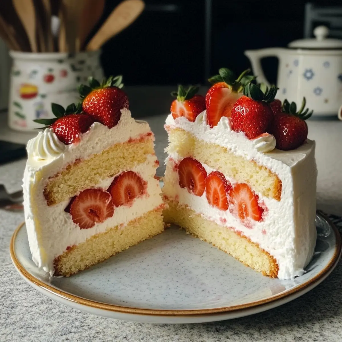 Hast du jemals von einem Dessert geträumt, das nicht nur die Sinne verführt, sondern auch wie eine zarte Wolke auf der Zunge schmilzt? Der japanische Erdbeerkuchen wird genau das für dich sein – eine himmlische Kreation, die mit frischen Erdbeeren und einer luftig-leichten Sahnefüllung begeistert. Dieser Kuchen ist nicht nur ein echter Hingucker, sondern auch erstaunlich einfach zuzubereiten und perfekt für jedes Fest oder einfach nur für einen süßen Genuss zwischendurch. Lass dich von seiner Fluffigkeit und der perfekten Balance zwischen Süße und Frische verführen – was könnte besser sein, um deine Liebe zum Backen zu entfachen? Bist du bereit, in die zarte Kunst des japanischen Backens einzutauchen? Warum ist dieser Kuchen so besonders? Leichtigkeit, die begeistert: Der japanische Erdbeerkuchen ist nicht nur fluffig, sondern auch ein wahres Geschmackserlebnis mit seiner leichten Textur. Frische Erdbeeren sorgen für eine fruchtige Note, die das Dessert aufwertet. Einfache Zubereitung: Mit nur wenigen Schritten zauberst du dieses Meisterwerk in deiner eigenen Küche. Vielseitigkeit: Egal, ob für besondere Anlässe oder als süßer Snack – dieser Kuchen lässt sich wunderbar variieren. Du kannst sogar saisonale Früchte oder verschiedene Geschmäcker für die Sahnefüllung ausprobieren. Perfekte Präsentation: Mit einem Hauch von Puderzucker und frischen Erdbeeren sieht er einfach traumhaft aus und zieht alle Blicke auf sich! Japanischer Erdbeerkuchen Zutaten • Die perfekten Zutaten für einen himmlischen Genuss! Für den Kuchen Vollmilch – sorgt für Feuchtigkeit und Reichhaltigkeit. Ersatz: Mandelmilch für eine milchfreie Option. Ungesalzene Butter – verstärkt den Geschmack und trägt zur Feuchtigkeit bei. Ersatz: Kokosöl für eine milchfreie Variante. Kuchenmehl – sorgt für eine leichte, luftige Textur. Ersatz: Allzweckmehl gemischt mit Maisstärke. Eigelb – gibt dem Teig Reichhaltigkeit und hilft bei der Emulgierung. Keine Ersatzstoffe empfohlen für die strukturelle Integrität. Eiweiße – sorgen für einen fluffigen Auftrieb, wenn sie geschlagen werden. Vermeide Ersatzstoffe, da sie entscheidend für die Struktur sind. Feinzucker – süßt den Kuchen und unterstützt den Cremungsprozess. Ersatz: Kristallzucker, aber die Textur kann abweichen. Erdbeeren – frisches Obst für Geschmack und Dekoration. Ersatz: Andere Beeren wie Himbeeren oder Heidelbeeren. Für die Sahnefüllung Schlagsahne – dient als Basis für die Füllung und verleiht Cremigkeit. Keine geeigneten milchfreien Ersatzstoffe empfohlen. Puderzucker – süßt die Schlagsahne. Kann fein gemahlener Kristallzucker verwendet werden. Gelatine (optional) – stabilisiert die Schlagsahne für eine langanhaltende Dekoration. Weglassen für normale Füllung. Kaltes Wasser (optional) – dient zur Hydratation der Gelatine. Keine Ersatzstoffe nötig. Für den Sirup Zucker (für Sirup) – süßt die Kuchenschichten und verstärkt den Erdbeergeschmack. Keine Ersatzstoffe empfohlen. Heißes Wasser – hilft, den Zucker aufzulösen. Keine Ersatzstoffe erforderlich. Schritt-für-Schritt-Anleitung für Japanischer Erdbeerkuchen Step 1: Backform vorbereiten Heize den Ofen auf 160°C (325°F) vor und lege eine 20 cm (8 Zoll) runde Kuchenform mit Backpapier aus. Achte darauf, dass das Backpapier die Form gut auskleidet, damit der Kuchen später leicht herausgenommen werden kann. Diese Vorbereitung ist entscheidend für einen gleichmäßigen Backprozess des Japanischen Erdbeerkuchens. Step 2: Nasse Zutaten vermischen Gib die Vollmilch und die ungesalzene Butter in eine mikrowellengeeignete Schüssel. Erhitze die Mischung in der Mikrowelle, bis die Butter geschmolzen ist; dies dauert etwa 1–2 Minuten. Rühre dann das gesiebte Kuchenmehl unter, bis eine glatte Masse entstanden ist, die gut miteinander verbunden ist. Step 3: Eier vorbereiten Trenne die Eigelbe von den Eiweißen und füge die Eigelbe zur Mischung aus der vorherigen Phase hinzu. In einer sauberen Schüssel die Eiweiße schaumig schlagen, bis sie etwas an Volumen zunehmen. Füge nach und nach den Feinzucker hinzu und schlage weiter, bis sich mittelhohe Spitzen bilden. Diese fluffige Textur sorgt für die luftige Konsistenz des Japanischen Erdbeerkuchens. Step 4: Mischung zusammenfügen Nimm ein Viertel der geschlagenen Eiweiße und falte es vorsichtig unter die Eigelb-Teigmischung, um diese aufzulockern. Sobald das gut vermischt ist, füge die restlichen Eiweiße hinzu und hebe alles sanft unter, bis keine weißen Streifen mehr sichtbar sind. Achte darauf, die Luftigkeit der Eiweiße nicht zu verlieren. Step 5: Backen Gieße den Teig in die vorbereitete Kuchenform. Um Luftblasen zu entfernen, lasse die Form leicht auf die Arbeitsfläche fallen. Stelle die Form in ein Wasserbad, um beim Backen zusätzliche Feuchtigkeit bereitzustellen. Backe den Kuchen für etwa 1,5 Stunden oder bis er fest und goldbraun oben ist. Verwende einen Zahnstocher, um die Garzeit zu überprüfen. Step 6: Kuchen abkühlen lassen Lass den Kuchen nach dem Backen vollständig in der Form abkühlen. Platziere ihn nach dem Abkühlen vorsichtig auf einem Kuchengitter, um weitere Feuchtigkeit zu entziehen. Dieser Schritt ist wichtig, damit der Japanische Erdbeerkuchen die perfekte Konsistenz erhält und später leichter geschnitten werden kann. Step 7: Erdbeeren vorbereiten Während der Kuchen abkühlt, wasche die Erdbeeren gründlich und schneide sie in Scheiben. Mische die geschnittenen Erdbeeren mit etwas Zucker in einer Schüssel und lass sie etwa 15–20 Minuten stehen. So entsteht ein köstlicher Erdbeersirup, der dem Kuchen einen zusätzlichen Fruchtgeschmack verleiht. Step 8: Sahnefüllung zubereiten Schlage die Schlagsahne zusammen mit dem Puderzucker in einer großen Schüssel auf, bis sie das gewünschte Volumen erreicht hat. Wenn du Gelatine für Stabilität verwenden möchtest, folge den Anweisungen auf der Verpackung und füge sie zur Sahne hinzu. Diese Sc