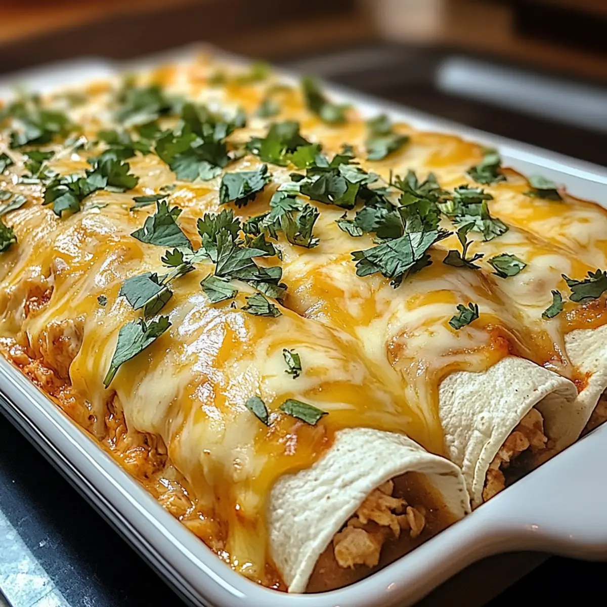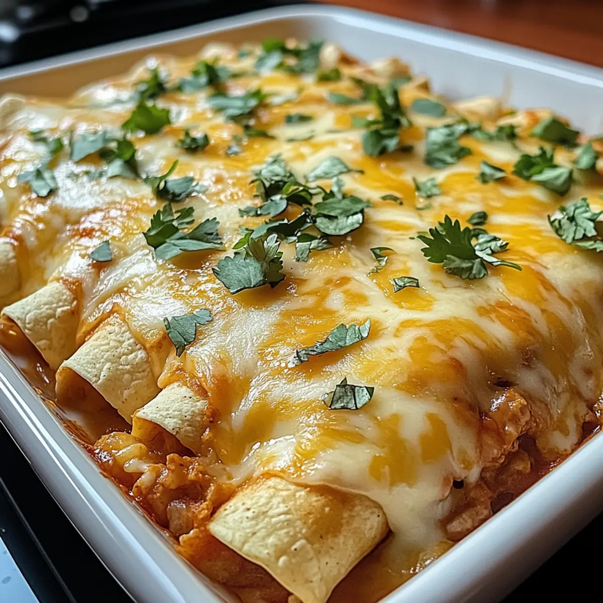 Wenn der Duft von geschmolzenem Käse und würzigem Hühnchen durch die Küche zieht, weiß ich, dass es Zeit für meine köstlichen Käse-Hühnchen-Enchiladas ist. In nur zehn Minuten zubereitet, sind diese Enchiladas nicht nur ein wahrer Genuss für die Sinne, sondern auch ein Familienliebling, der perfekt für hektische Wochentage geeignet ist. Mit einer cremigen Queso-Sauce, die das zarte Hühnchen umhüllt, bieten sie unzählige Anpassungsmöglichkeiten – ganz gleich, ob ihr es vegetarisch, scharf oder nach Saison variieren möchtet. Stellt euch vor, wie eure Lieben um den Tisch versammelt sind, während diese herzhaften Köstlichkeiten serviert werden. Seid ihr bereit, eure nächsten Dinner-Pläne aufzupeppen? Warum sind diese Enchiladas so besonders? Vielseitigkeit: Diese Käse-Hühnchen-Enchiladas lassen sich ganz nach deinem Geschmack anpassen. Ob mit schwarzem Bohnenfüllung für die vegetarische Option oder scharfen Jalapeños für den gewürzten Kick, deiner Kreativität sind keine Grenzen gesetzt. Schnelle Zubereitung: In nur zehn Minuten Vorbereitung kannst du ein schmackhaftes Gericht zaubern, das deine Familie begeistern wird. Ideal für beschäftigte Wochentage oder ungeplante Besuche! Käseliebe: Die liebevolle Mischung aus schmelzendem Käse und saftigem Hühnchen sorgt für ein Geschmackserlebnis, das einfach glücklich macht. Familienfreundlich: Dieses Rezept spricht Groß und Klein an. Mit der Möglichkeit, die Schärfe und die Füllungen anzupassen, trifft jeder etwas nach seinem Geschmack. Comfort Food pur: Diese Enchiladas sind der Inbegriff von Komfortessen – perfekt für gemütliche Abende zu Hause. Jedem wird die Kombination aus weichen Tortillas und cremiger Sauce gefallen! Für weitere schnelle Rezepte, die den Abend aufpeppen, schau dir auch unsere schnellen Salate an! Käse-Hühnchen-Enchiladas Zutaten • Hochwertige Zutaten für perfekten Genuss! Für die Füllung Zerfleddertes Hühnchen – Verwende für Bequemlichkeit Rotisserie-Hühnchen. Taco-Gewürz – Gibt Geschmack und Würze; homemade für mildere Variante. Sauerrahm – Sorgt für Cremigkeit; griechischer Joghurt ist eine gesunde Alternative. Geriebener Cheddar-Käse – Verleiht eine köstliche Käsetextur; ersetze durch Monterey Jack oder Pepper Jack für Abwechslung. Gehackte grüne Chile – Fügt milde Schärfe und Geschmack hinzu; für eine mildere Version weglassen oder Jalapeños verwenden. Für die Queso-Sauce Velveeta-Käse – Kreiert eine glatte, cremige Käsesauce; reduzierten Fettkäse für eine leichtere Option wählen. Diced Tomaten mit grünen Chilis – Verleiht der Sauce zusätzlichen Geschmack; ungedrinnt für mehr Feuchtigkeit verwenden. Für die Tortillas Tortillas – Wickeln die Füllung ein; wähle Mais-, Weizen- oder Vollkorn-Tortillas je nach Vorliebe. Diese Käse-Hühnchen-Enchiladas sind nicht nur köstlich, sondern auch vielseitig und anpassbar – ideal für jeden Anlass! Schritt-für-Schritt-Anleitung für Käse-Hühnchen-Enchiladas Step 1: Ofen vorheizen Heize deinen Ofen auf 175 °C (350 °F) vor, damit die Käse-Hühnchen-Enchiladas gleichmäßig backen. Während der Ofen aufgeheizt wird, kannst du die anderen Zutaten vorbereiten. Eine gute Vorheizzeit sorgt dafür, dass die Enchiladas am Ende schön heiß und köstlich sind. Step 2: Füllung vorbereiten In einer großen Rührschüssel vermenge das zerfledderte Hühnchen, Taco-Gewürz, Sauerrahm, geriebenen Cheddar-Käse und die gehackten grünen Chilis. Mische alles gut, bis die Zutaten gleichmäßig verteilt sind. Diese Füllung ist die Basis deiner Käse-Hühnchen-Enchiladas und sorgt für Geschmack und Cremigkeit. Step 3: Queso-Sauce zubereiten Nimm einen kleinen Topf und erhitze bei mittlerer bis hoher Temperatur die Velveeta-Käsewürfel zusammen mit den Diced Tomaten und grünen Chilis. Rühre ständig, bis die Mischung weich und cremig ist. Diese Queso-Sauce wird über die Enchiladas gegossen und verleiht ihnen eine unverwechselbare Geschmacksnote. Step 4: Tortillas füllen Lege je eine Tortilla auf eine saubere Arbeitsfläche und fülle sie mit ½ bis ¾ Tasse der Hühnchenmischung. Rolle die Tortilla dann burritoartig auf, um die Füllung gut zu umschließen. Achte darauf, die Tortillas nicht zu überfüllen, damit sie sich leicht rollen lassen. Step 5: Enchiladas anrichten Nehme eine gefettete Auflaufform (ca. 23×33 cm) und lege die gefüllten Tortillas mit der Nahtseite nach unten hinein. Achte darauf, dass die Enchiladas leicht dicht beieinanderliegen. Diese Anordnung sorgt dafür, dass sie gleichmäßig garen und beim Backen zusammenhalten. Step 6: Queso-Sauce über gießen Verteile die zubereitete Queso-Sauce gleichmäßig über die gefüllten Enchiladas in der Auflaufform. Die sämige Sauce umhüllt die Tortillas und sorgt für eine herrlich cremige Konsistenz. Diese Schicht verhindert auch, dass die Enchiladas austrocknen und gleichzeitig einen reichen Käsegeschmack entfalten. Step 7: Enchiladas backen Schiebe die Auflaufform in den vorgeheizten Ofen und lasse die Enchiladas 20-25 Minuten backen. Achte darauf, dass die Enchiladas heiß und blubbernd sind, und die Oberseite goldbraun wird. Dies ist das Zeichen dafür, dass sie perfekt gegart sind und die Käse-Hühnchen-Enchiladas bereit zum Servieren sind. Step 8: Servieren und garnieren Nehme die Auflaufform aus dem Ofen und lasse die Enchiladas kurz abkühlen. Serviere sie sofort und garniere sie falls gewünscht mit frischem Koriander oder Avocado. Diese köstlichen Käse-Hühnchen-Enchiladas bringen nicht nur Freude auf den Tisch, sondern auch ein Lächeln auf die Gesichter deiner Liebsten! Tipps zur Lagerung von Käse-Hühnchen-Enchiladas Zimmertemperatur:: Käse-Hühnchen-Enchiladas sollten nicht länger als 2 Stunden bei Zimmertemperatur stehen, um Lebensmittelvergiftungen zu vermeiden. Kühlschrank:: Im Kühlschrank sind die Enchiladas bis zu 3 Tage haltbar. Bewahre sie in einem luftdichten Behälter oder gut verpackt auf, um Aus