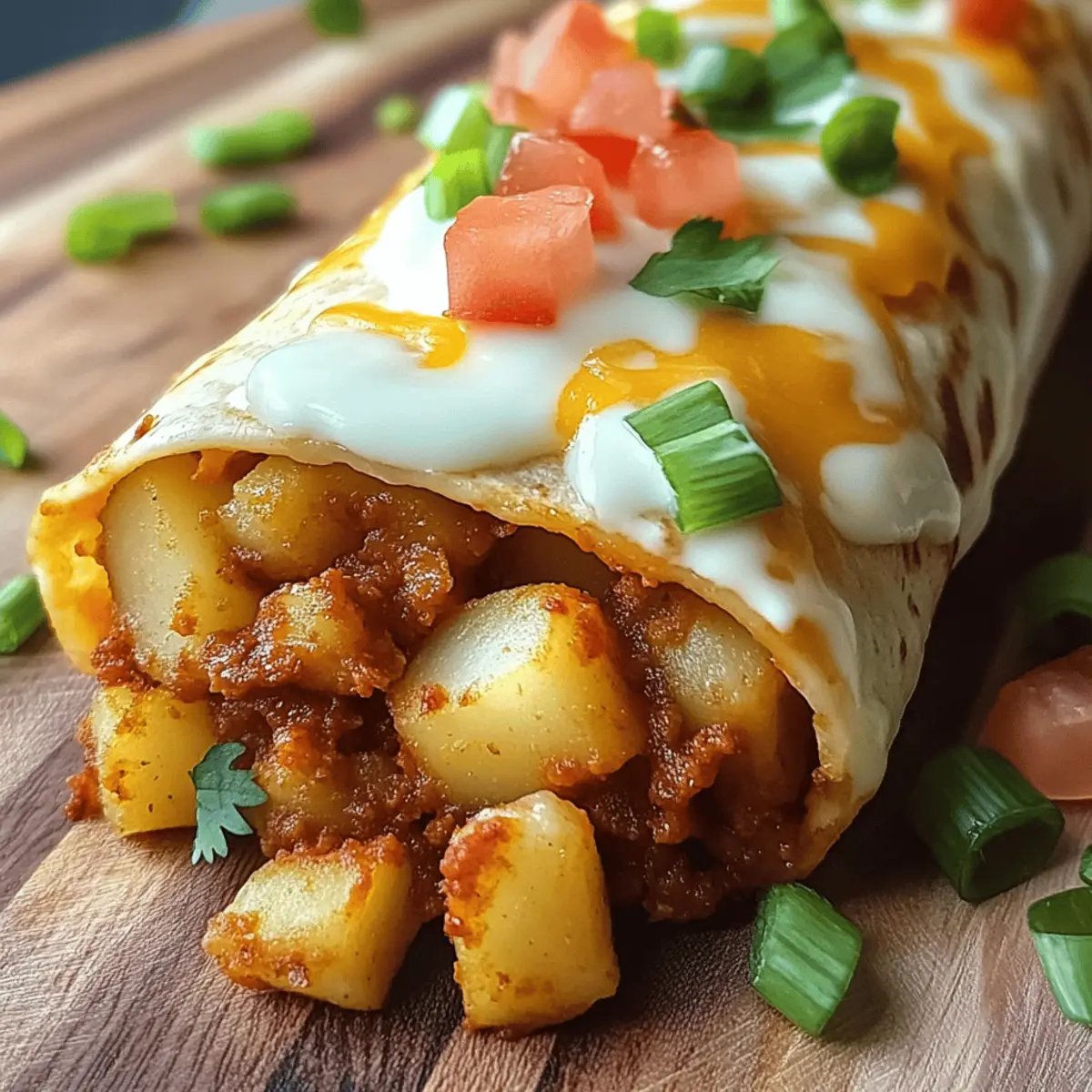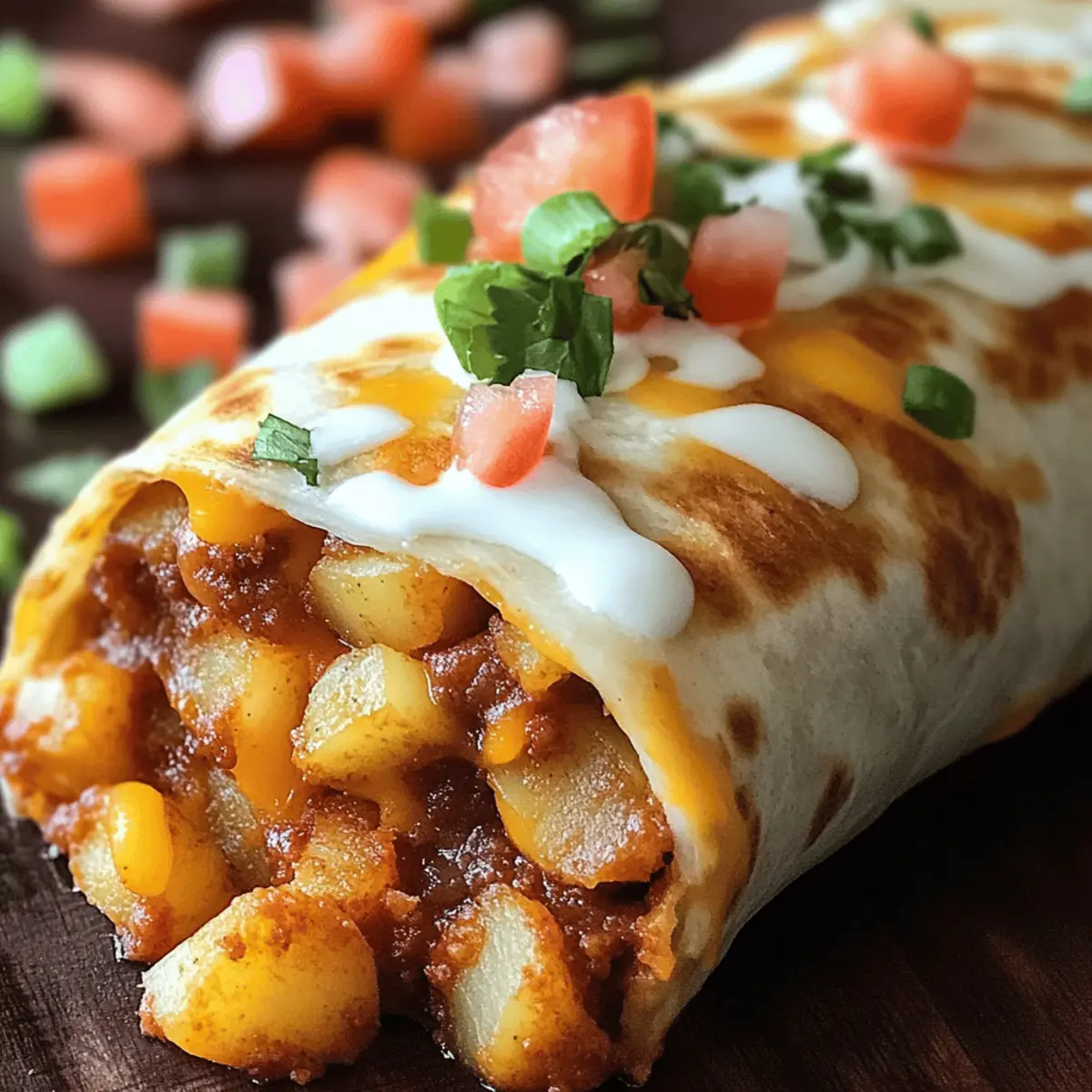 „Hast du jemals das Verlangen nach einem Gericht, das die Seele umarmt und gleichzeitig den Gaumen verwöhnt?“ Genau so fühlen sich meine Käse-Kartoffel-Burritos an! Diese unwiderstehlichen Burritos vereinen herrlich schmelzenden Käse, würziges Rinderhack und knusprige Tater Tots, alles liebevoll in ein warmes Tortilla gewickelt. Sie sind nicht nur äußerst anpassbar, sodass jeder seine Lieblingszutaten verwenden kann, sondern auch ein echter Hit bei Familienabenden oder entspannenden Treffen mit Freunden. Mit ihrer Kombination aus rauchiger Chipotle-Note und herzhaftem Crunch sind sie der perfekte Ersatz für schnelles Essen, und sie zaubern selbst an hektischen Tagen ein Lächeln auf dein Gesicht. Bist du bereit, in die köstliche Welt der Käse-Kartoffel-Burritos einzutauchen? Warum sind Käse-Kartoffel-Burritos so beliebt? Vielfältig und anpassbar: Jeder kann seine Lieblingszutaten wählen, von vegetarischen Optionen bis zu verschiedenen Käsesorten. Unübertroffene Kombination: Die Fusion aus schmelzendem Käse, würzigem Rinderhack und knusprigen Tater Tots sorgt für ein wahres Geschmackserlebnis. Schnell zubereitet: Ideal für hektische Wochentage, da sie im Handumdrehen fertig sind. Familienfreundlich: Ein Gericht, das Groß und Klein begeistert – perfekt für gesellige Abende! Wenn du nach einer weiteren köstlichen Abwechslung suchst, probiere zum Beispiel auch die Herzhafter Kartoffel Wurst oder die Türkische Süßkartoffel Pfanne. Käse-Kartoffel-Burritos Zutaten Für die Füllung Rinderhack – sorgt für Protein und würzigen Geschmack; kannst du durch pflanzliches Hack ersetzen, um die Burritos vegetarisch zu gestalten. Tater Tots – verleihen eine knusprige Textur; backe sie bis sie goldbraun sind, um das beste Ergebnis zu erzielen. Cheddar Käse – sorgt für einen reichen, scharfen Geschmack; du kannst ihn gegen deinen Lieblingskäse (z.B. Gouda oder Monterey Jack) austauschen. Monterey Jack Käse – trägt zur Cremigkeit bei; lässt sich auch durch einen ähnlichen schmelzenden Käse ersetzen. Sauerrahm – fügt Cremigkeit und einen leichten Säurekick hinzu; griechischer Joghurt kann als gesündere Alternative verwendet werden. Chipotle Sauce – bringt Würze und einen rauchigen Geschmack; ersetze sie durch deine Lieblingssauce, um ein anderes Geschmacksprofil zu kreieren. Mehl-Tortillas – umwickeln die Füllung; Vollkorn-Tortillas sind eine gesündere Option. Für die Garnitur Würfeln von Tomaten – bringt Frische und Farbe; du kannst auch Salsa verwenden, um zusätzlichen Geschmack hinzuzufügen. Frühlingszwiebeln – sorgen für einen knackigen und würzigen Geschmack; reguläre Zwiebeln können in einem Notfall genutzt werden. Koriander – verleiht ein frisches Aroma und Geschmack; lasse ihn weg, wenn du den Geschmack nicht magst. Schritt-für-Schritt-Anleitung für Käse-Kartoffel-Burritos Schritt 1: Tater Tots vorbereiten Heize den Ofen auf 200°C vor. Lege die Tater Tots auf ein Backblech und backe sie für etwa 20 Minuten, bis sie goldbraun und knusprig sind. Achte darauf, sie während des Backens einmal zu wenden, damit sie gleichmäßig gebräunt werden. Während die Tater Tots backen, kannst du die nächste Zutat vorbereiten. Schritt 2: Rinderhack anbraten Erhitze eine große Pfanne bei mittlerer Hitze und füge das Rinderhack hinzu. Brate es für etwa 5-7 Minuten an, bis es braun und durchgegart ist. Während des Bratens mit Salz und Pfeffer würzen. Lass überschüssiges Fett abtropfen, damit die Füllung nicht zu fettig wird. Jetzt sind deine Tater Tots fertig – mische sie gleich mit dem Hack. Schritt 3: Füllung kombinieren In einer großen Schüssel kombinierst du die frisch gebackenen Tater Tots, das angebratene Rinderhack sowie den Cheddar- und Monterey Jack Käse. Rühre gut um, bis alles gleichmäßig verteilt ist und der Käse leicht zu schmelzen beginnt. Diese Mischung wird die köstliche Füllung für deine Käse-Kartoffel-Burritos. Schritt 4: Tortillas erwärmen Erwärme die Mehl-Tortillas in einer Pfanne oder Mikrowelle für 15-30 Sekunden, bis sie warm und geschmeidig sind. Durch das Erwärmen behalten die Tortillas ihre Form und reißen nicht beim Falten. Lege die warmen Tortillas auf eine Arbeitsfläche bereit für die Füllung. Schritt 5: Burritos füllen und rollen Nimm eine Tortilla und löffle eine großzügige Portion der Füllung in die Mitte. Beträufle sie mit Chipotle-Sauce und füge einen Klecks Sauerrahm hinzu. Falte die Seiten der Tortilla ein und rolle sie dann von unten nach oben fest auf, um die Füllung einzuschließen. Wiederhole das mit den restlichen Tortillas. Schritt 6: Burritos backen Lege die gefüllten Burritos mit der Nahtseite nach unten in eine Auflaufform. Bestreue sie mit zusätzlichem Käse und backe sie im vorgeheizten Ofen bei 180°C für etwa 15 Minuten, bis der Käse geschmolzen und goldbraun ist. Die Kombination aus geschmolzenem Käse und der knusprigen Tortilla wird verlockend duften! Schritt 7: Garnieren und Servieren Nimm die Burritos aus dem Ofen und lass sie kurz abkühlen. Garniere sie anschließend mit den gewürfelten Tomaten, gehackten Frühlingszwiebeln und frischem Koriander. Diese frischen Zutaten bringen Farbe und Geschmack auf deinen Teller. Jetzt sind deine Käse-Kartoffel-Burritos bereit, serviert zu werden! Expert Tips für Käse-Kartoffel-Burritos • Tater Tots optimal backen: Achte darauf, dass die Tater Tots vollständig knusprig sind, damit die Textur im Burrito perfekt wird. • Käse warm vermischen: Mische die Käsesorten in die Füllung, solange sie noch warm sind. So schmelzen sie gleichmäßig und sorgen für cremigen Genuss. • Tortillas richtig erwärmen: Erwärme die Tortillas, um Risse beim Falten zu verhindern. Das macht das Ausrollen einfacher und hält die Füllung besser. • Chipotle-Sauce anpassen: Stelle die Menge der Chipotle-Sauce nach deinem Geschmack ein. So kannst du die Schärfe der Käse-Kartoffel-Burritos perfekt auf deinen Gaumen 