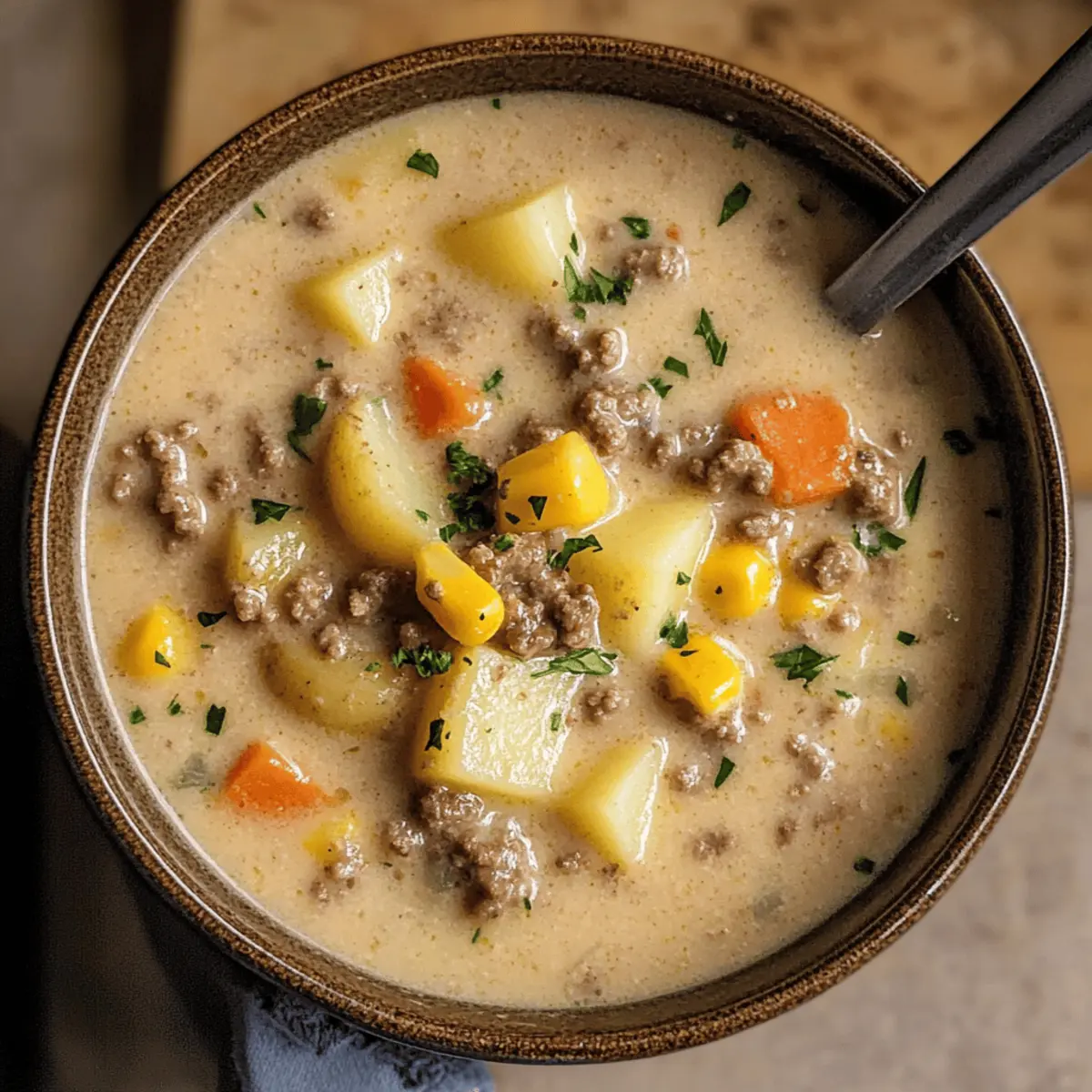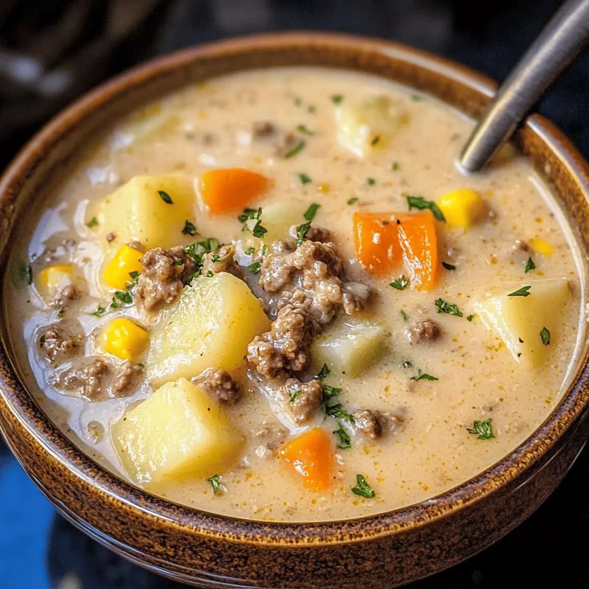 Es war ein kalter Abend, als ich mich in die Küche begab und eine herrlich duftende Käse-Rindfleisch- und Kartoffelsuppe zubereitete. Während das Wasser auf dem Herd zu köcheln begann, wurde mir sofort warm ums Herz, denn dieser Komfortgericht ist genau das, was sie verspricht: eine herzliche Umarmung im Schalenformat. Diese cremige Suppe vereint zarte, buttrige Kartoffeln mit herzhaftem Rindfleisch und einem bunten Gemüse-Mix in einer geschmackvollen Brühe. Ideal für lange, kalte Tage, ist sie nicht nur einfach und schnell zuzubereiten, sondern auch ein echter Familientraum, der alle um den Tisch versammelt. Wer könnte da widerstehen? Glaubst du, dass du deiner Familie eine ebenso liebevolle Mahlzeit zaubern kannst? Warum wirst du diese Suppe lieben? Herzhaft und cremig: Diese Käse-Rindfleisch- und Kartoffelsuppe ist der Inbegriff von Komfortessen, das deine Seele wärmt und dein Herz erfreut. Einfache Zubereitung: Mit nur wenigen Handgriffen zauberst du ein Gericht, das auch nach einem langen Tag schnell zubereitet ist. Familienfreundlich: Ideal für die ganze Familie, wird diese Suppe kleine und große Esser gleichermaßen begeistern. Vielseitige Anpassung: Du kannst Zutaten nach Lust und Laune variieren, wie zum Beispiel mit Rigatoni Mit Spinat oder statt Rinders mit Huhn experimentieren. Perfekt für jede Jahreszeit: Diese Suppe gibt es nicht nur im Winter – sie schmeckt zu jeder Jahreszeit, besonders mit einem Stück frischem Brot dazu. Käse-Rindfleisch- und Kartoffelsuppe Zutaten Für die Suppe Rinderhackfleisch – deine Hauptproteinquelle; wähle eine magere Variante für weniger Fett. Olivenöl – sorgt für Geschmack beim Anbraten; kann durch Pflanzenöl ersetzt werden. Butter – fügt eine cremige Note hinzu; für eine milchfreie Variante kannst du nur Olivenöl nutzen. Zwiebel – bringt Süße und Tiefe; gelbe oder weiße Zwiebeln verleihen den besten Geschmack. Karotten – bringen Süße und eine schöne Farbe; frisch ist ideal, gefrorene sind in der Not auch okay. Sellerie – fügt eine knusprige Textur hinzu; du kannst ihn durch Paprika ersetzen, um einen anderen Geschmack zu erzielen. Knoblauch – sorgt für ein aromatisches Erlebnis; frisch ist immer besser, aber Knoblauchpulver kann als Ersatz dienen. Italienische Gewürzmischung – sorgt für eine harmonische Kräutermischung; frisch ist immer optimal, wie Basilikum und Oregano. Mehl – dickt die Brühe ein und verleiht Cremigkeit; ersetze es durch Speisestärke für eine glutenfreie Option. Hühner- oder Rinderbrühe – bildet die Basis der Suppe; selbstgemacht ist am besten, aber auch Fertigbrühe tut ihren Dienst. Worcestershiresauce – bringt eine herzhafte Note und Umami; Sojasauce kann alternativ verwendet werden. Schlagsahne – sorgt für die cremige Konsistenz; vermeide die Verwendung von Milch, da sie gerinnen könnte. Für eine milchfreie Option kannst du Kokoscreme verwenden. Russische Kartoffeln – die Quelle der Herzhaftigkeit; Yukon Gold kann auch verwendet werden, verwende jedoch keine wachsartige Sorte. Mais – gibt zusätzliche Süße und Farbe; verwende frischen, gefrorenen oder Dosenmais je nach Verfügbarkeit. Salz und Pfeffer – verstärkt den Geschmack; passe die Mengen deinem persönlichen Geschmack an, sei aber großzügig, um die Suppe nicht fade zu lassen. Tipp: Diese Käse-Rindfleisch- und Kartoffelsuppe wird zum perfekten Wohlfühlessen! Schritt-für-Schritt-Anleitung für Käse-Rindfleisch- und Kartoffelsuppe Step 1: Rindfleisch braten Erhitze einen großen Topf bei mittlerer bis hoher Temperatur und gib das Rinderhackfleisch hinein. Brate es für etwa 8-10 Minuten, bis es gut durchgegart und braun ist. Rühre dabei regelmäßig um, um ein Anbrennen zu vermeiden. Nach dem Anbraten das Fleisch herausnehmen und überschüssiges Fett abtropfen lassen. Step 2: Gemüse anbraten Füge im selben Topf etwas Olivenöl und Butter hinzu und lasse es bei mittlerer Hitze schmelzen. Gebe Zwiebel, Karotten und Sellerie hinein und sautieren sie für 5-7 Minuten, bis sie weich und aromatisch sind. Achte darauf, dass das Gemüse nicht ansetzt; rühre regelmäßig um. Step 3: Gewürze und Mehl hinzufügen Streue den frisch gehackten Knoblauch, die italienische Gewürzmischung und das Mehl über das Gemüse und rühre alles gut um. Koche die Mischung für etwa 1 Minute, bis das Mehl leicht geröstet ist und die Aromen sich gut vermischen. Dies gibt der Käse-Rindfleisch- und Kartoffelsuppe eine schöne Konsistenz. Step 4: Brühe hinzufügen Gieße nun die Hühner- oder Rinderbrühe in den Topf und kratzen die braunen Röstreste vom Boden mit einem Holzlöffel ab. Rühre kräftig um, bis das Mehl vollständig aufgelöst ist und die Brühe schön einmal aufkocht. Dies sorgt für einen reichhaltigen Geschmack in deiner Suppe. Step 5: Restliche Zutaten kombinieren Füge die Worcestershiresauce, die Schlagsahne, die gewürfelten Kartoffeln und den Mais sowie das gebratene Rinderhackfleisch in den Topf. Rühre alles gut durch, um die Zutaten gleichmäßig zu verteilen, und bereite dich darauf vor, die Käse-Rindfleisch- und Kartoffelsuppe weiter zu köcheln. Step 6: Suppe köcheln lassen Bring die Suppe zum Kochen und reduziere dann die Hitze, um sie sanft köcheln zu lassen. Lass sie etwa 20 Minuten lang weitergaren, bis die Kartoffeln weich sind. Rühre gelegentlich um, damit nichts am Boden kleben bleibt und sich die Aromen gut entfalten können. Step 7: Würzen und Servieren Schmecke die Suppe mit Salz und Pfeffer ab, um den von dir gewünschten Geschmack zu erreichen. Sei dabei großzügig mit den Gewürzen, um ein köstliches Ergebnis zu erzielen. Serviere die Käse-Rindfleisch- und Kartoffelsuppe heiß, idealerweise mit frischem Brot oder einem kleinen Salat. Expertentipps für Käse-Rindfleisch- und Kartoffelsuppe Fleisch richtig anbraten: Achte darauf, das Rinderhackfleisch gut anzubraten, um einen vollen Geschmack zu erzielen. Verwende eine große Pfanne und lasse genug Platz fü