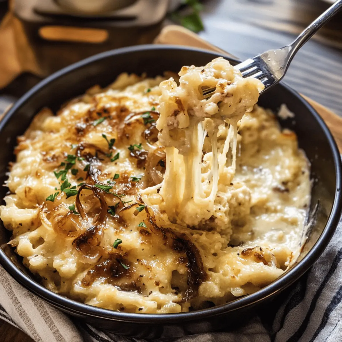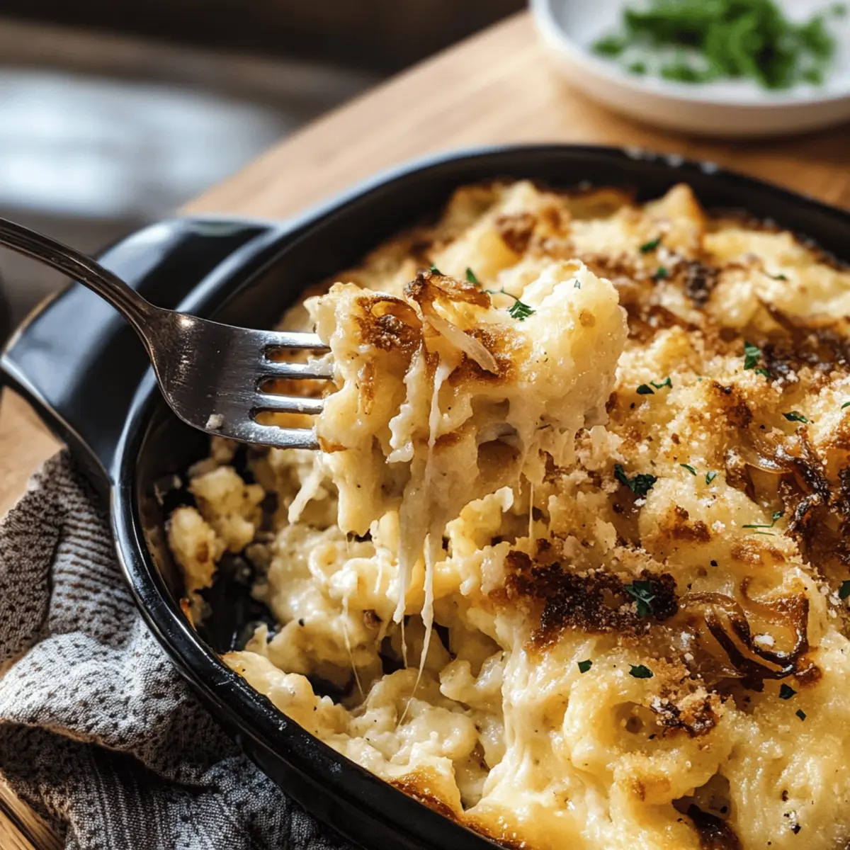 Wenn ich an Herbstabende denke, kommen mir sofort die Aromen von Käsespätzle in den Sinn. Diese traditionelle deutsche Köstlichkeit vereint zarte, handgemachte Nudelklöße mit schmelzendem Käse und süßen, karamellisierten Zwiebeln, die zusammen im Ofen zu einem unwiderstehlichen Genuss gebacken werden. Die Käsespätzle sind nicht nur eine perfekte Alternative zu herkömmlichem Mac and Cheese, sondern auch ein echtes Comfort Food, das Herzen erwärmt und Gaumen erfreut. Sie sind schnell zubereitet, ideal für gesellige Abende und lassen sich wunderbar im Voraus zubereiten. Neugierig, wie du dieses köstliche Gericht in deiner Küche zaubern kannst? Lass uns direkt in die Zubereitung einsteigen! Warum wirst du Käsespätzle lieben? Herzhaft und wohltuend: Dieses Gericht ist ein Fest für die Sinne und bringt das Gemüt zum Strahlen. Einfache Zubereitung: Mit nur wenigen Grundzutaten und vielen Variationen, wie zum Beispiel mit Speck oder Pilzen, bleibt die Zubereitung unkompliziert. Perfekte Komfortküche: Käsespätzle sind ideal für gesellige Abende oder als bequeme Mahlzeit an stressigen Tagen. Vielseitigkeit garantiert: Ob als Beilage oder Hauptgericht, es passt zu verschiedenen Anlässen. Für eine noch größere Gaumenfreude, kannst du den Käse nach deinem Geschmack variieren! Schau dir auch unsere Empfehlungen für Käseauswahl an, um den perfekten Geschmack zu finden. Käsespätzle Zutaten Kötter dasBeste für deine Käsespätzle: • Käsespätzle ist ein Klassiker, der mit diesen Zutaten besonders gut gelingt! Für die Spätzle: • Eier – Die Basis der Spätzle, geben Struktur und Geschmack. • Weizenmehl – Am besten eignet sich Type 405 für die perfekte Konsistenz. • Salz – Würzt die Teigmischung und hebt den Geschmack hervor. • Wasser – Gibt dem Teig die richtige Feuchtigkeit; kann bei Bedarf angepasst werden. Für die Füllung: • Große Zwiebeln – Karamellisiert für eine süße und aromatische Note. Zusätzliche Zwiebeln können für mehr Geschmack hinzugefügt werden. • Butter (¼ Tasse) – Verleiht dem Gericht Fülle und Geschmeidigkeit. Butter erzielt das beste Aroma. • Emmentaler Käse (2 Tassen) – Schmilzt schön und sorgt für den typischen Geschmack. Alternativ andere, gut schmelzende Käse verwenden. • Gruyere Käse (2 Tassen) – Bringt eine cremige, reichhaltige Note ein. Ähnliche Schweizer Käsesorten sind ebenfalls geeignet. • Petersilie (1 Esslöffel) – Als dekoratives Element und für einen frischen Farbtupfer bei der Servierung. Mit diesen Zutaten bereitest du die perfekte Käsespätzle zu, die für jedes Herz und jeden Gaumen ein wahres Fest ist! Schritt-für-Schritt-Anleitung für Käsespätzle Step 1: Zwiebeln karamellisieren Schneide die großen Zwiebeln in dünne Ringe und erhitze die Butter in einer großen Pfanne bei niedriger Hitze. Lass die Zwiebeln etwa 45 Minuten lang sanft schmoren und rühre regelmäßig um, bis sie tief goldbraun und süß sind. Achte darauf, dass die Hitze nicht zu hoch ist, um ein Anbrennen zu vermeiden. Step 2: Spätzle herstellen Während die Zwiebeln karamellisieren, bereite die Spätzle zu. Mische in einer Schüssel die Eier, Weizenmehl, Salz und Wasser zu einem glatten Teig. Koche den Teig in einem großen Topf mit sprudelndem Salzwasser. Die Spätzle sind fertig, wenn sie an die Oberfläche steigen. Dies dauert etwa 2-3 Minuten. Step 3: Zutaten kombinieren Nehme eine große Auflaufform zur Hand und gib die gekochten Spätzle hinein. Füge einige Butterflocken hinzu und vermische die Spätzle gründlich. Teile die geriebenen Käsesorten gleichmäßig auf die Spätzle auf und streue die karamellisierten Zwiebeln als oberste Schicht darauf. Step 4: Backen Heize den Ofen auf 180 Grad Celsius vor. Stelle die vorbereitete Auflaufform in den heißen Ofen und backe die Mischung etwa 10-15 Minuten lang, bis der Käse geschmolzen und blubbernd ist. Achte darauf, dass der Käse eine goldene Farbe annimmt. Step 5: Rasten lassen & servieren Nehme die Käsespätzle aus dem Ofen und lasse sie für 3-5 Minuten ruhen, damit sich die Aromen setzen können. Vor dem Servieren kannst du die Käsespätzle optional mit frisch gehackter Petersilie garnieren, um einen Farbtupfer hinzuzufügen. Käsespätzle Variationen & Substitute Möchtest du deine Käsespätzle noch mehr anpassen? Hier sind einige lecker-sinnliche Ideen, die deinen Gaumen erfreuen werden! Bacon: Füge während des Karamellisierens der Zwiebeln gewürfelten Speck hinzu, um eine köstliche rauchige Note zu erzielen. Die Kombination aus süßen Zwiebeln und salzigem Speck ist einfach unwiderstehlich. Pilze: Integriere sautierte Champignons für eine herzhaftere Jägerspätzle-Variante. Die Pilze bringen eine erdige Tiefe, die besonders gut mit dem Käse harmoniert. Gemüse: Experimentiere mit Gemüse wie Spinat oder Brokkoli. Einfach bei den Zwiebeln mitgarend, um Farbe und zusätzliche Nährstoffe zu integrieren. Scharfe Note: Für eine zusätzliche Schärfe füge eine Prise Cayennepfeffer oder frische Chilis hinzu. So wird das Gericht für Liebhaber von schärferen Speisen noch aufregender. Knoblauch: Brate eine oder zwei Zehen Knoblauch mit den Zwiebeln an, um ihr Aroma zu intensivieren. Der Duft und Geschmack von geröstetem Knoblauch ist himmlisch! Sahnige Konsistenz: Ein Schuss Sahne vor dem Backen macht die Käsespätzle besonders cremig. Das gibt dem Gericht eine luxuriöse Textur, die du lieben wirst. Käse-Mix: Variiere die Käsesorten! Probiere eine Kombination aus Bergkäse oder Fontina zu Emmentaler und Gruyere für ein noch komplexeres Geschmacksprofil. Ein bisschen Experimentieren lohnt sich! Vegan: Ersetze Käse und Butter durch pflanzliche Alternativen und koche die Spätzle mit Wasser oder pflanzlicher Milch, um eine vegane Version zuzubereiten. Was passt zu Käsespätzle? Den perfekten Begleiter zu diesem herzhaften Gericht zu finden, macht das Essen zu einem festlichen Erlebnis. Frischer Feldsalat: Ein knackiger Feld