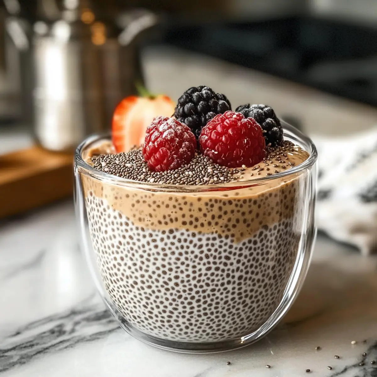 Eines der besten Frühstückserlebnisse, die ich entdeckt habe, ist der Kaffee Chia Samen Pudding. Diese köstliche Mischung aus erdigem Kaffeeschmack und der cremigen Textur pflanzlicher Milch sorgt dafür, dass ich jeden Morgen mit einem Glücksgefühl starte. In nur 10 Minuten zubereitet, ist dieses Rezept nicht nur perfekt für hektische Morgenstunden, sondern auch eine wunderbare Option für entspannte Brunches mit Freunden oder Familie. Zudem ist dieser Pudding glutenfrei, vegan und steckt voller Nährstoffe, darunter gesunde Omega-3-Fettsäuren und Ballaststoffe. Warum sich also mit schnellen Snacks begnügen, wenn man mit so wenig Aufwand ein wahres Geschmackserlebnis zaubern kann? Neugierig, wie einfach es ist, diesen gesunden Frühstücksgenuss zuzubereiten? Lass uns gleich starten! Warum ist dieser Pudding so besonders? Einfachheit: In nur 10 Minuten zubereitet, ist dieser Kaffee Chia Samen Pudding perfekt für alle, die im stressigen Alltag gesunde Mahlzeiten suchen. Vielseitigkeit: Ob für ein schnelles Frühstück oder einen gemütlichen Brunch, dieser Pudding kann einfach nach deinem Geschmack variiert werden. Füge deine Lieblingsfrüchte oder Nüsse hinzu, um ihn lecker und nahrhaft zu gestalten! Nährstoffreich: Vollgepackt mit Ballaststoffen und Omega-3-Fettsäuren ist dieser Pudding nicht nur schmackhaft, sondern auch eine gesunde Wahl, die deinem Körper gut tut. Kaffee-Liebhaber: Wenn du ein Fan von Kaffee bist, wirst du die köstliche Kombination aus erdigem Kaffee und cremiger Konsistenz lieben, die dir Energie für den Tag gibt. Crowd-Pleaser: Dieser Pudding ist nicht nur für dich, sondern wird auch deine Familie und Freunde begeistern. Er ist der ideale gesunde Genuss für alle, die frische und selbstgemachte Küche zu schätzen wissen. Kaffee Chia Samen Pudding Zutaten • Für den Pudding Chia Samen – Liefert eine hervorragende Textur und viele Nährstoffe. Du kannst sie auch durch Leinsamen ersetzen, wenn du magst. Gekühlter Kaffee – Dient als geschmackliche Basis. Verwende entkoffeinierten Kaffee für weniger Koffein. Pflanzenbasierte Milch (z.B. Kokos- oder Mandelmilch) – Sorgt für Reichhaltigkeit. Normale Milch oder Sahne können für einen cremigeren Geschmack verwendet werden. Süßungsmittel – Fügt nach persönlichem Geschmack Süße hinzu. Beliebte Optionen sind Honig, Ahornsirup oder Stevia. Nach Belieben anpassen. Vanilleextrakt – Verstärkt den Geschmack. Du kannst auch Mandelessenz verwenden, um einen anderen Akzent zu setzen. • Für die Garnitur (optional) Frische Früchte – Fügen eine natürliche Süße und Farbe hinzu. Bananen oder Beeren sind perfekt dafür. Nüsse – Sorgen für zusätzlichen Crunch und gesunde Fette, perfekt als Topping für den Pudding. Mit diesen Zutaten bereitest du im Handumdrehen einen Kaffee Chia Samen Pudding zu, der sowohl lecker als auch nahrhaft ist! Schritt-für-Schritt-Anleitung für Kaffee Chia Samen Pudding Step 1: Chia Samen vorbereiten Messe 6 Esslöffel Chia Samen ab und gib sie in eine Schüssel oder ein Glas. Achte darauf, dass der Behälter genügend Platz hat, damit sich die Samen beim Quellen ausdehnen können. Diese nahrhaften Samen bilden die Basis für deinen Kaffee Chia Samen Pudding. Step 2: Kaffee abkühlen lassen Bereite 1 Tasse frisch gebrühten Kaffee zu und lasse ihn vollständig abkühlen. Um die cremige Konsistenz des Puddings zu gewährleisten, ist es wichtig, dass der Kaffee Raumtemperatur erreicht, bevor du ihn weiterverarbeitest. Du kannst auch entkoffeinierten Kaffee verwenden, um den Koffeingehalt zu reduzieren. Step 3: Kaffee und Chia Samen kombinieren Gieße den abgekühlten Kaffee über die vorbereiteten Chia Samen in der Schüssel oder dem Glas. Rühre die Mischung gründlich um, sodass sich die Samen gleichmäßig im Kaffee verteilen. Dies sorgt dafür, dass die Samen auch gleichmäßig quellen und die perfekte Textur für deinen Kaffee Chia Samen Pudding erhalten bleibt. Step 4: Pflanzenmilch und Süßungsmittel hinzufügen Füge nun 1 Tasse der gewählten pflanzenbasierten Milch, wie zum Beispiel Kokos- oder Mandelmilch, hinzu. Nach deinem Geschmack kannst du auch 2 Esslöffel eines Süßungsmittels wie Honig oder Ahornsirup hinzufügen. Rühre alles gut um, bis die Mischung gleichmäßig und cremig ist. Step 5: Vanilleextrakt einrühren Gib 2 Teelöffel Vanilleextrakt zu deinem Puddingmix hinzu und rühre erneut gut um. Der Vanilleextrakt verstärkt das Aroma deines Kaffee Chia Samen Puddings und sorgt für eine angenehme Geschmackstiefe, die perfekt mit dem Kaffee harmoniert. Step 6: Mischung ruhen lassen Lasse die Mischung für einige Minuten stehen, damit die Chia Samen etwas quellen können. Rühre in dieser Zeit gelegentlich um, um Klumpenbildung zu vermeiden. Du wirst feststellen, dass die Konsistenz bereits beginnt, dicker zu werden, was ein gutes Zeichen ist. Step 7: Kühlen und festigen Bedecke die Schüssel oder das Glas mit Frischhaltefolie und stelle es für mindestens 4 Stunden, idealerweise über Nacht, in den Kühlschrank. Während dieser Zeit dickt der Kaffee Chia Samen Pudding weiter ein und entwickelt seine köstliche cremige Textur. Step 8: Servieren und Garnieren Serviere den Kaffee Chia Samen Pudding kalt, idealerweise mit frischen Früchten oder Nüssen als Topping. Diese zusätzlichen Zutaten verleihen nicht nur Farbe, sondern auch eine angenehme Textur. Lass deiner Kreativität freien Lauf und genieße deinen selbstgemachten Kaffee Chia Samen Pudding! Aufbewahrungstipps für Kaffee Chia Samen Pudding Kühlschrank: Bewahre den Pudding in einem luftdichten Behälter auf, um seine Frische zu erhalten. Er bleibt bis zu 5 Tage im Kühlschrank haltbar. Gefrierer: Du kannst den Kaffee Chia Samen Pudding bis zu 3 Monate im Gefrierer aufbewahren. Fülle ihn in einen gefriersicheren Behälter und lasse Platz für die Ausdehnung beim Gefrieren. Auftauen: Zum Auftauen lege den gefrorenen Pudding einfach über Nacht in den Kühlschrank. Rühre ihn 
