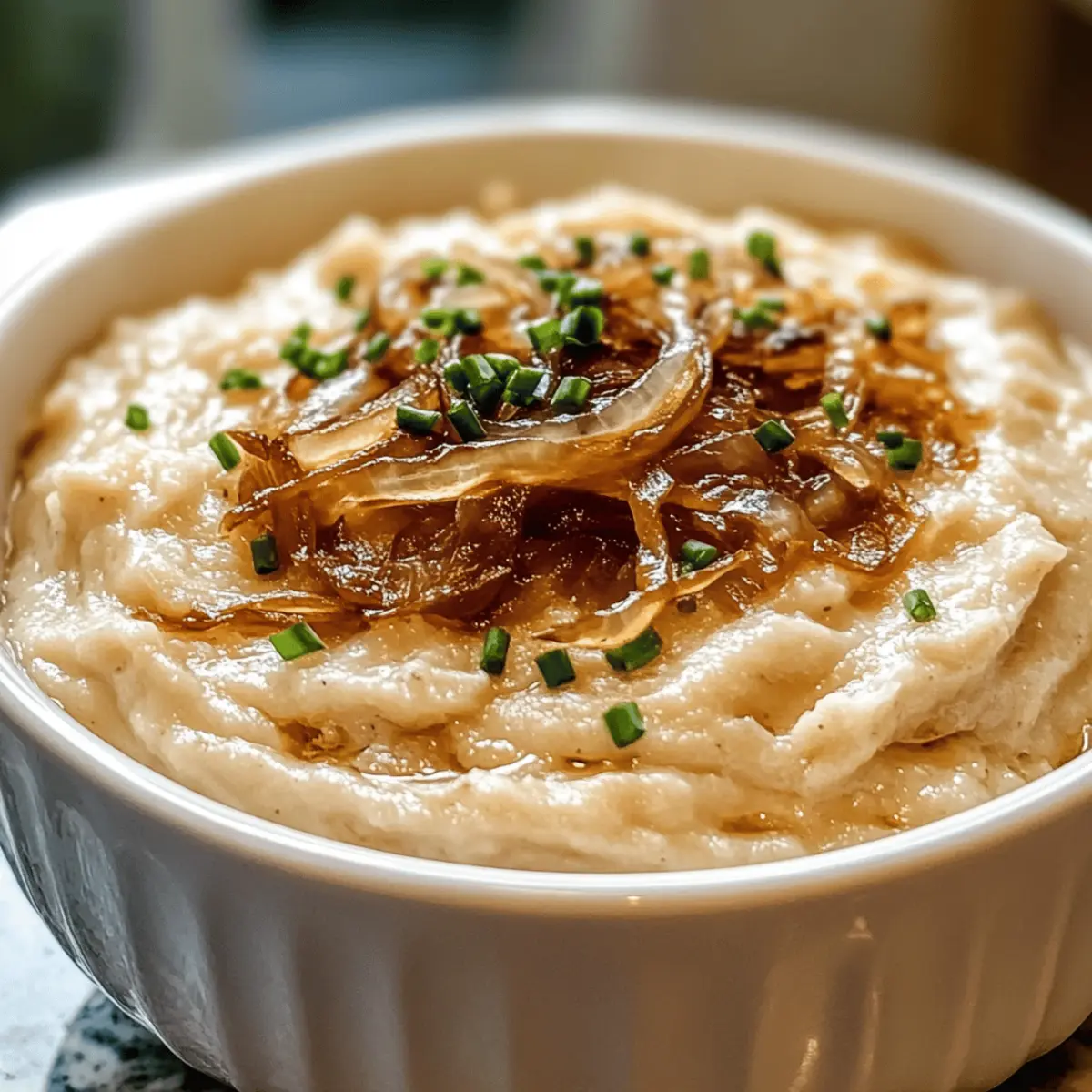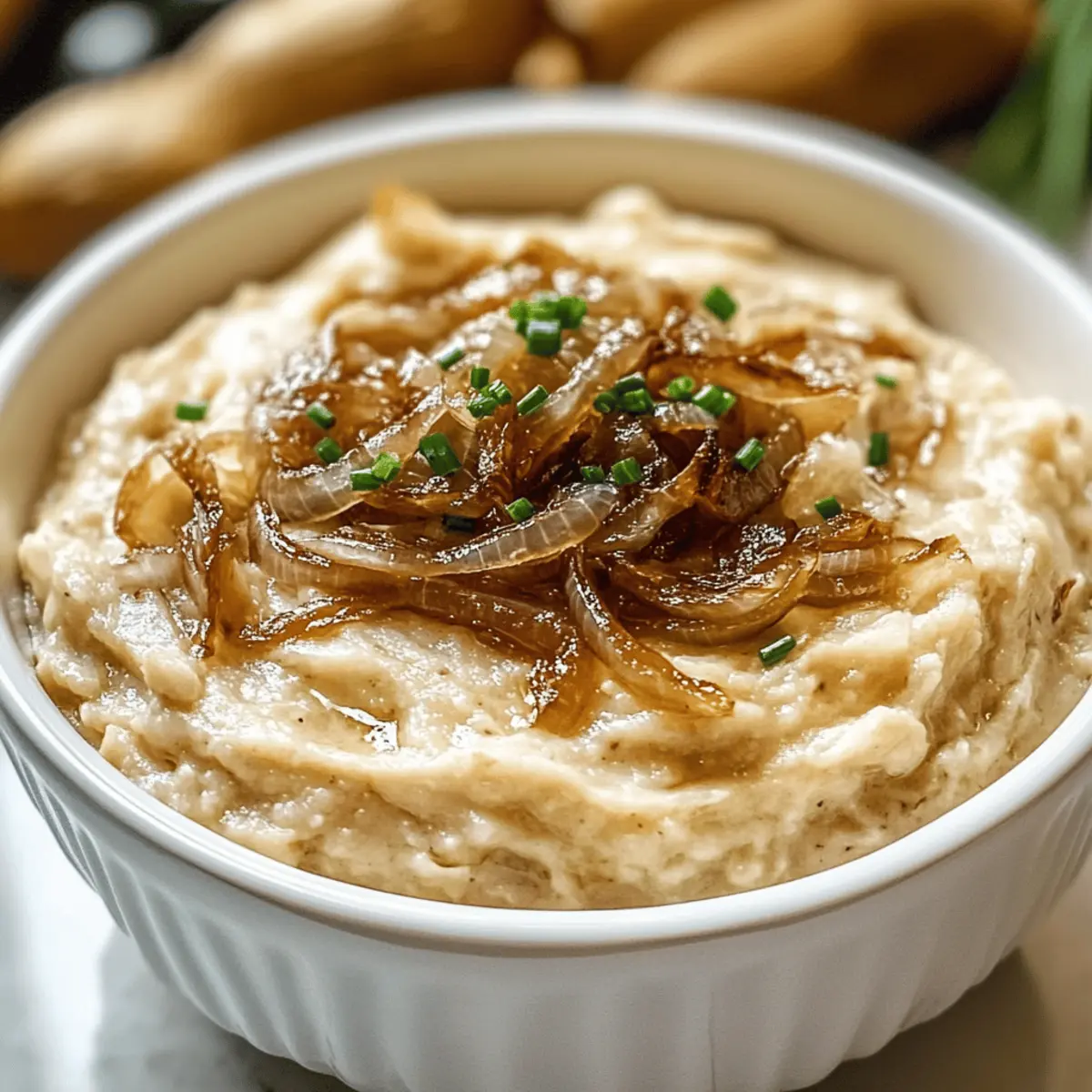 „Wusstest du, dass karamellisierte Zwiebeln aus einer einfachen Zutat so viel Geschmack zaubern können? Gordon Ramsay’s Karamellisierte Zwiebel Dip vereint süße, langsam gegarte Zwiebeln mit einer cremigen Basis aus saurer Sahne und Mayonnaise zu einem perfekten Snack, der jede Zusammenkunft aufwertet. Dieser Dip ist nicht nur unglaublich einfach zuzubereiten, sondern auch vielseitig und lässt sich problemlos an verschiedene Vorlieben anpassen – ob für deine nächste Party oder einen entspannten Abend zu Hause. Was könnte besser sein, als beim nächsten Filmabend oder der Grillparty mit einer köstlichen, selbstgemachten Delikatesse zu beeindrucken? Lass uns gemeinsam entdecken, wie du diesen unwiderstehlichen Dip zubereiten kannst!“ Warum ist dieser Dip so besonders? Einzigartiger Geschmack: Die Kombination aus süßen Zwiebeln und einer cremigen Basis macht diesen Dip einfach unwiderstehlich. Einfache Zubereitung: Du benötigst nur wenige Zutaten und einfachste Kochtechniken, um ein köstliches Ergebnis zu erzielen. Vielseitig einsetzbar: Genieß ihn als Snack, als tolle Beilage zu Gemüse oder sogar als Aufstrich für Sandwiches. Perfekt für jede Gelegenheit: Egal ob Party oder Filmabend, dieser Dip wird deine Gäste immer begeistern. Lass dich von unseren Variationen inspirieren und kreiere deinen eigenen Twist! Schnelligkeit: In nur wenigen Schritten und ohne großen Aufwand hast du einen Dip, der gut im Voraus zubereitet werden kann – so bleibt dir mehr Zeit, um das Zusammensein zu genießen. Karamellisierte Zwiebel Dip Zutaten Für den Dip Süße Zwiebeln – sorgen für eine köstliche Süße und das Herz dieses Rezepts; ersetze sie durch gelbe oder rote Zwiebeln für unterschiedliche Geschmäcker. Butter – verleiht den karamellisierten Zwiebeln eine tiefe, reichhaltige Note; nutze Olivenöl als milchfreie Alternative. Olivenöl – sorgt dafür, dass die Zwiebeln gleichmäßig gegart werden und verhindert das Anbrennen; kann durch ein neutrales Öl ersetzt werden. Knoblauch – bringt eine aromatische Tiefe hinzu; frischer, gehackter Knoblauch sorgt für das beste Ergebnis. Frischer Thymian – verleiht dem Dip eine herbale Note; getrockneter Thymian funktioniert ebenfalls, falls frisch nicht verfügbar ist. Saure Sahne – bildet die cremige Grundlage des Dips; für eine pflanzliche Version kannst du vegane saure Sahne verwenden. Mayonnaise – sorgt für Cremigkeit und einen leicht säuerlichen Geschmack; ersetze sie durch vegane Mayonnaise, um es milchfrei zu halten. Frisch gemahlener schwarzer Pfeffer – sorgt für eine perfekte Würze; nach Belieben anpassen. Schnittlauch/Petersilie – für die Garnitur, die Frische und Farbe bringt. Dieser Karamellisierte Zwiebel Dip ist nicht nur lecker, sondern auch einfach zuzubereiten und perfekt für jede Gelegenheit! Schritt-für-Schritt-Anleitung für Karamellisierte Zwiebel Dip Step 1: Zwiebeln vorbereiten Schäle die süßen Zwiebeln und schneide sie in dünne Scheiben. Achte darauf, dass die Stücke gleichmäßig sind, um eine gleichmäßige Karamellisierung zu gewährleisten. Lege die geschnittenen Zwiebeln beiseite, während du die Pfanne vorbereitest. Step 2: Zwiebeln karamellisieren Erhitze bei mittlerer bis niedriger Temperatur eine große Pfanne und füge die Butter sowie das Olivenöl hinzu. Sobald die Butter geschmolzen ist, gib die geschnittenen Zwiebeln und eine Prise Salz dazu. Koche die Zwiebeln 30-40 Minuten lang, rühre gelegentlich um, bis sie tiefgoldbraun und aromatisch sind. Step 3: Aromatische Zutaten hinzufügen Füge den gehackten Knoblauch und die frischen Thymianblätter zu den karamellisierten Zwiebeln hinzu. Lass die Mischung für 1-2 Minuten weiterkochen, damit sich die Aromen entfalten und der Knoblauch leicht goldbraun wird. Rühre dabei gut um, um ein Anbrennen zu vermeiden. Step 4: Basis mischen In einer separaten Schüssel vermische die saure Sahne und die Mayonnaise, bis die Mischung schön glatt ist. Diese cremige Basis wird der Schlüssel zu deinem Karamellisierten Zwiebel Dip sein. Achte darauf, alle Klumpen zu entfernen, um eine gleichmäßige Konsistenz zu erreichen. Step 5: Zutaten kombinieren Lass die karamellisierten Zwiebeln etwas abkühlen, bevor du sie vorsichtig in die Schüssel mit der sauren Sahne und Mayonnaise gibst. Mische alles gut durch, bis die Zwiebeln gleichmäßig verteilt sind, und schmecke mit frisch gemahlenem schwarzem Pfeffer und eventuell etwas Salz ab. Step 6: Abkühlen lassen Decke die Schüssel mit dem Karamellisierten Zwiebel Dip ab und stelle sie für mindestens 1 Stunde in den Kühlschrank. Dies ermöglicht es, dass sich die Aromen wunderbar vermischen und intensivieren, was den Geschmack erheblich verbessert. Step 7: Garnieren und Servieren Vor dem Servieren den Dip mit frisch gehacktem Schnittlauch oder Petersilie garnieren. Für das gewisse Extra kannst du einen kleinen Schuss hochwertiges Olivenöl darüberträufeln. Serviere deinen köstlichen Karamellisierten Zwiebel Dip zusammen mit Kartoffelchips, Gemüsesticks oder auf geröstetem Brot. Vorbereitung für den Karamellisierten Zwiebel Dip Dieser Karamellisierte Zwiebel Dip ist ideal für die Vorausplanung! Du kannst die süßen Zwiebeln bis zu 3 Tage im Voraus karamellisieren und im Kühlschrank aufbewahren, dadurch sparst du wertvolle Zeit. Beginne damit, die Zwiebeln zu schälen und dicke Scheiben zu schneiden, und karamellisiere sie dann wie gewohnt. Lasse die Mischung vollständig abkühlen, bevor du sie in einem luftdichten Behälter lagerst, um die Frische zu bewahren. Am Serviertag rührst du die abgekühlten Zwiebeln einfach in die vorbereitete saure Sahne und Mayonnaise, würzt nach Geschmack mit Pfeffer und Salz und lässt den Dip für mindestens 1 Stunde im Kühlschrank ziehen, um die Aromen gut miteinander zu vermischen. So hast du einen köstlichen, jederzeit einsatzbereiten Snack, der deine Gäste begeistern wird! Karamellisierte Zwiebel Dip Variationen Lass deiner Kreativ