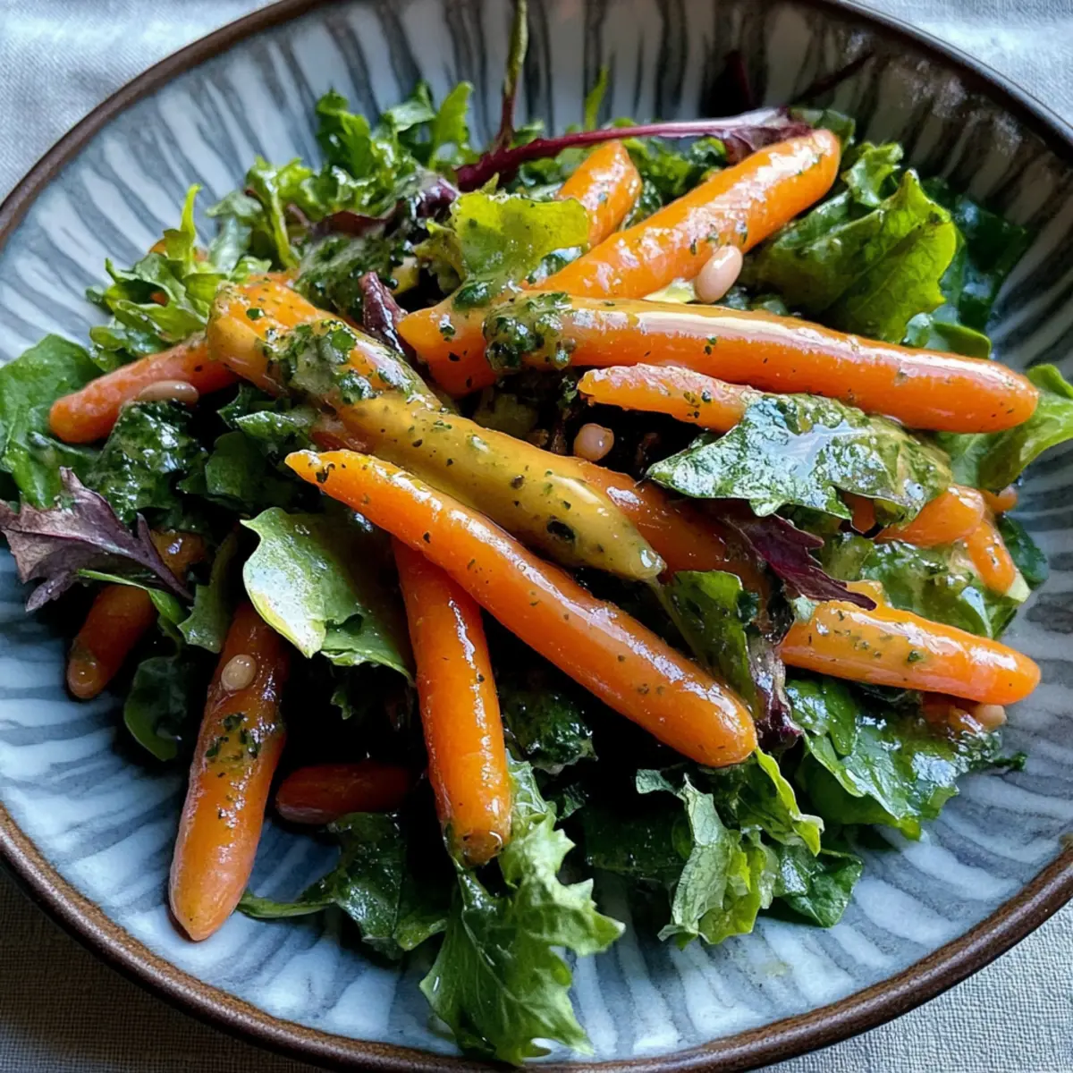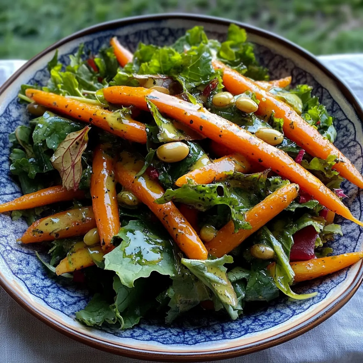 Während der ersten Sonnenstrahlen des Frühjahrs sorgt das knackige, farbenfrohe Rennen der frisch geernteten Karotten sofort für gute Laune. Heute teile ich mit euch ein Rezept für einen erfrischenden Salat aus Karotten und Gemüse mit Dilly-Bohnen-Vinaigrette. Dieser Salat bringt nicht nur eine Vielzahl an frischen Aromen auf euren Teller, sondern ist auch schnell zubereitet – perfekt für eine gesunde Mittagspause oder als Beilage zu großen Zusammenkünften. Mit dem herb-würzigen Dressing hebt sich die natürliche Süße der Karotten hervor und verwandelt jede Mahlzeit in ein kleines Fest. Lust auf eine aromatische Erneuerung eurer Salat-Routine? Lasst uns gemeinsam in die bunten Geschmäcker eintauchen! Warum werden Sie diesen Salat lieben? Frische Aromen: Dieser Salat kombiniert knackige Karotten und zarte Blätter mit einer einzigartigen Dilly-Bohnen-Vinaigrette, die jedem Bissen eine elegante Note verleiht. Schnelle Zubereitung: In nur wenigen Minuten haben Sie eine köstliche Mahlzeit, perfekt für hektische Tage. Vielfältige Anpassungsmöglichkeiten: Fügen Sie Nüsse oder Käse hinzu, um neue Texturen zu entdecken. Gesunde Wahl: Vollgepackt mit Vitaminen und nährstoffreichen Zutaten, ist dieser Salat leicht und nahrhaft. Vegetarische Freude: Ideal für alle, die pflanzenbasierte Gerichte lieben und ihre Essgewohnheiten aufpeppen möchten – ein echter Publikumsliebling zum Teilen! Karotten und Gemüse Zutaten • Für den Salat Karotten – bringen eine süße und knackige Textur; verwenden Sie Babykarren für eine einfache Präsentation. Gemischte Grüns – bieten eine Vielfalt an Texturen und Aromen; ersetzen Sie sie durch Rucola oder Spinat, wenn gewünscht. • Für die Dilly-Bohnen-Vinaigrette Dilly-Bohnen – sorgen für ein einzigartiges Geschmacksprofil mit einer würzigen und aromatischen Note; servieren Sie das Dressing warm, um die Emulgierung zu gewährleisten. Butter – verleiht der Vinaigrette Reichtum; kann durch Olivenöl für eine milchfreie Option ersetzt werden. Dieser Salat mit Karotten und Gemüse ist nicht nur frisch und gesund, sondern auch eine fabelhafte Möglichkeit, saisonale Zutaten zu genießen! Schritt-für-Schritt-Anleitungen für Karotten und Gemüse mit Dilly-Bohnen-Vinaigrette Step 1: Dilly-Bohnen-Vinaigrette zubereiten In einer kleinen Pfanne bei niedriger Hitze die Zutaten für die Dilly-Bohnen-Vinaigrette vermengen und sanft erhitzen. Dabei regelmäßig umrühren, bis die Butter vollständig geschmolzen ist und die Aromen gut miteinander verbunden sind. Diese Emulsion sollte warm verwendet werden, um die richtige Konsistenz zu bewahren. Step 2: Gemüse vorbereiten Während die Vinaigrette erhitzt wird, die Karotten gründlich waschen und, wenn nötig, schälen. Bei Verwendung von größeren Karotten diese in dünne Scheiben oder Stifte schneiden, um sie leichter mit den grünen Blättern kombinieren zu können. Die gemischten Grünen ebenfalls waschen und grob zerkleinern. Step 3: Salat kombinieren In einer großen Schüssel die vorbereiteten Karotten und gemischten Grünen zusammengeben. Die warme Dilly-Bohnen-Vinaigrette gleichmäßig über das Gemüse gießen. Mit sauberen Händen oder einer großen Zange die Zutaten sanft vermengen, bis alles gleichmäßig mit der Vinaigrette überzogen ist. Step 4: Sofort servieren Achten Sie darauf, dass der Salat gut vermischt und ansprechend aussieht, bevor Sie ihn servieren. Der knackige Karottensalat mit Dilly-Bohnen-Vinaigrette sollte sofort verzehrt werden, um die Frische der Zutaten zu genießen und die Empfindung der Aromen zu bewahren. Was passt gut zu Karotten und Gemüse mit Dilly-Bohnen-Vinaigrette? Ein frischer, bunter Salat kann jede Mahlzeit aufhellen und harmonisch mit verschiedenen Beilagen kombiniert werden. Knusprige Brotstangen: Ergänzen Sie die Textur des Salats mit diesen köstlichen Snacks. Ideal, um das aromatische Dressing aufzusaugen! Gegrilltes Hähnchen: Die Herbe des Hähnchens harmoniert hervorragend mit der frischen Vinaigrette und dem süßlichen Karottengeschmack. Perfekt für ein leichtes Abendessen. Quinoa-Salat: Ein proteinreicher Begleiter, der eine nussige Textur hinzufügt und die Aromen des Dilly-Bohnen-Dressings wunderbar ergänzt. Aperol Spritz: Ein spritziger, erfrischender Cocktail, der die leichten Aromen des Salats komplettiert und eine sommerliche Atmosphäre schafft. Gebratene Zucchini: Diese weichen Beilagen bieten einen leckeren Kontrast zur Knackigkeit der Karotten und bringen eine neue Dimension des Geschmacks. Zitronensorbet: Ein erfrischendes Dessert, das den Gaumen reinigt und eine süß-säuerliche Frische bietet, die perfekt zu diesem Salat passt. Expertentipps für Karotten und Gemüse mit Dilly-Bohnen-Vinaigrette Dressing warm halten: Servieren Sie die Dilly-Bohnen-Vinaigrette warm, um die Emulgierung zu gewährleisten und ein Trennen zu verhindern. Frische Zutaten: Verwenden Sie saisonale Karotten und frische Grüns für optimale Aromen. Verpassen Sie nicht die Vielfalt, die frisches Gemüse bietet. Richtige Mischung: Mischen Sie den Salat sofort nach dem Tossen gut durch, um sicherzustellen, dass die Aromen gleichmäßig verteilt sind und das Dressing gleichmäßig haftet. Variationen nutzen: Experimentieren Sie mit anderen Gemüsearten wie Paprika oder Feta, um neue Geschmackserlebnisse in Ihren Karotten und Gemüse mit Dilly-Bohnen-Vinaigrette zu schaffen. Aufbewahrungstipps: Lagern Sie Reste in einem luftdichten Behälter im Kühlschrank, gönnen Sie sich aber unbedingt frische Portionen für den besten Geschmack. Aufbewahrungstipps für Karotten und Gemüse mit Dilly-Bohnen-Vinaigrette Raumtemperatur: Lassen Sie den Salat nicht länger als 2 Stunden bei Raumtemperatur stehen, um die Frische der Zutaten zu bewahren. Kühlschrank: Bewahren Sie Reste in einem luftdichten Behälter im Kühlschrank auf. So bleiben Karotten und Gemüse bis zu 2 Tage frisch, wobei die Aromen am besten an Tag 1 genossen werden sollten. Gefrierer: Es 