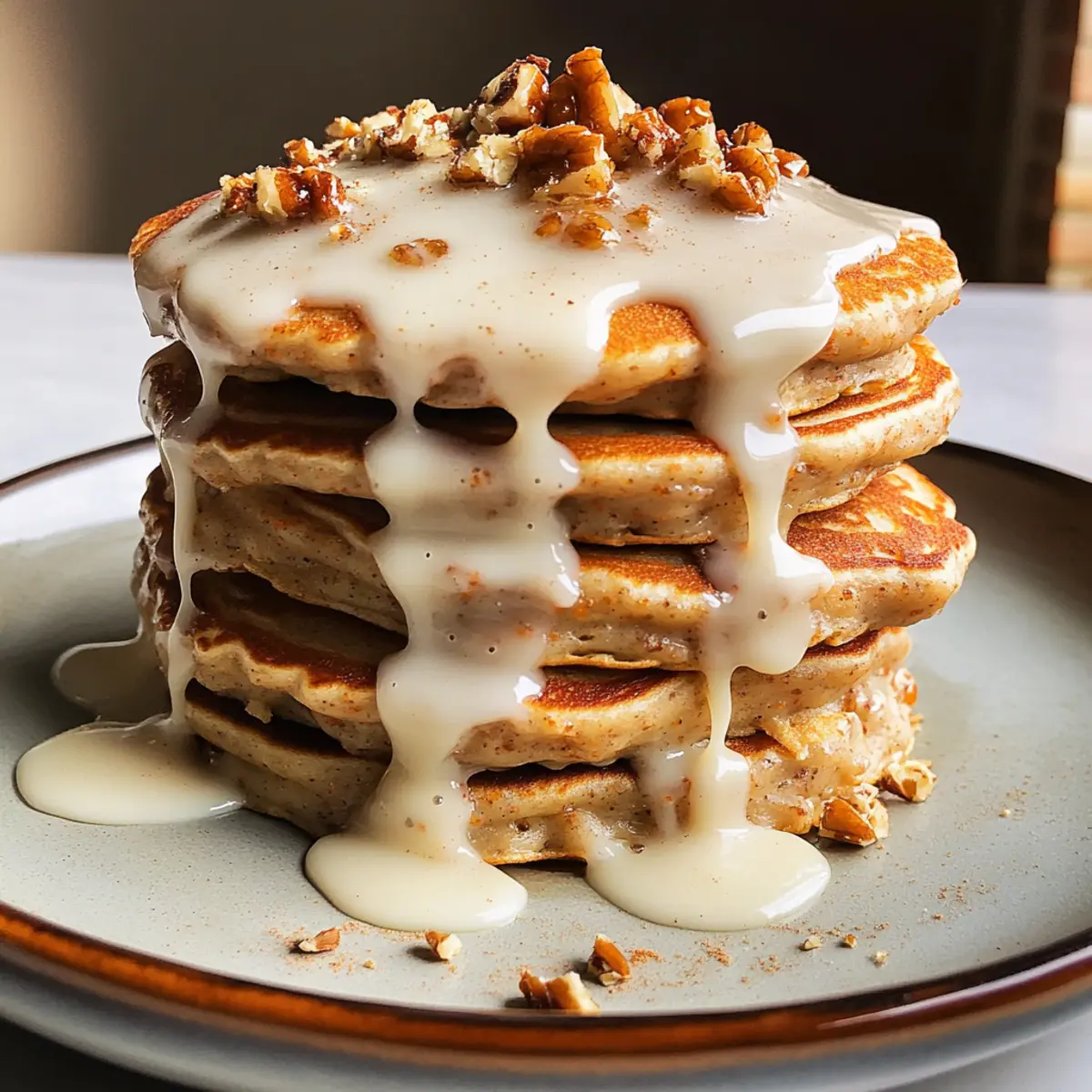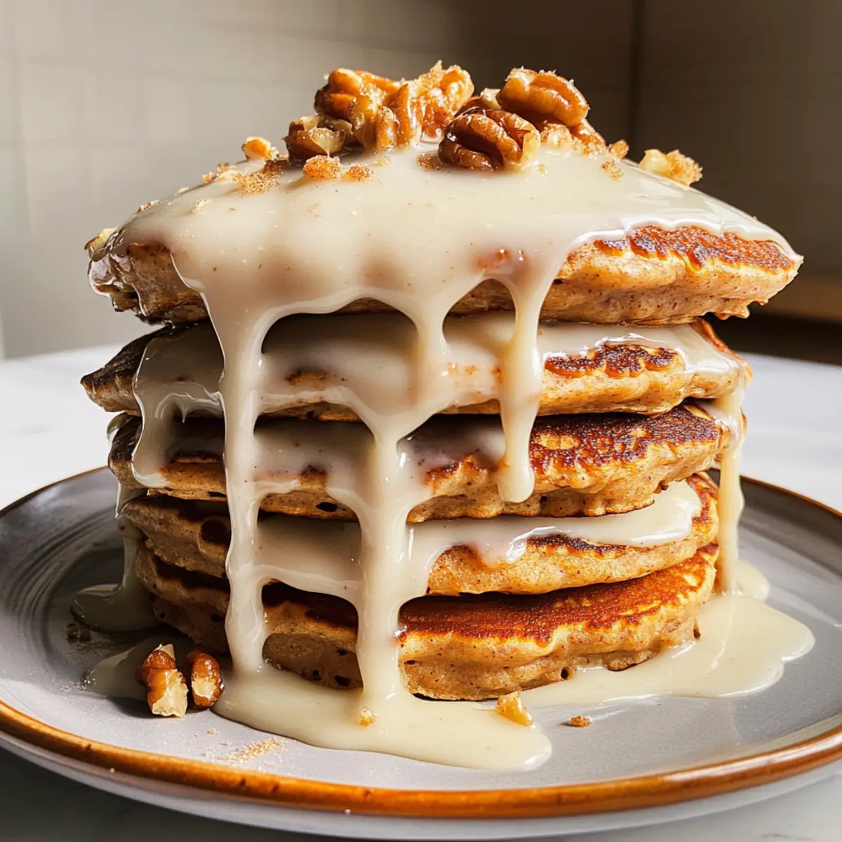 Als ich das erste Mal den Duft von frisch gebackenen Karottenkuchen-Pfannkuchen in meiner Küche wahrnahm, fühlte ich mich sofort in die gemütlichsten Brunches meiner Kindheit zurückversetzt. Diese fluffigen Pfannkuchen vereinen das Beste aus zwei Welten: Die liebevolle Würze eines klassischen Karottenkuchens gepaart mit der praktischen Schnelligkeit eines Frühstücksgerichts. Mit einem Hauch von Zimt und einer köstlichen Frischkäseglasur sind sie nicht nur ein geschmacklicher Hochgenuss, sondern auch perfekt, um deinen Morgen zu verschönern. Ob du sie zum Frühstück, Brunch oder als süßen Snack genießt, diese Karottenkuchen-Pfannkuchen sind ein wahres Comfort Food und lassen sich schnell zubereiten. Bist du bereit, deine zurückhaltenden Frühstücksgewohnheiten zu revolutionieren? Lass uns gemeinsam in die Welt dieser köstlichen Pfannkuchen eintauchen! Warum wirst du diese Pfannkuchen lieben? Einfachheit: Das Rezept erfordert nur grundlegende Kochfähigkeiten und ist perfekt für jedem, derdie ein schnelles, schmackhaftes Frühstück zubereiten möchte. Reichhaltiger Geschmack: Die Kombination aus Gewürzen und Frischkäseglasur zaubert einen unverwechselbaren Geschmack auf deinen Teller. Vielseitigkeit: Diese Karottenkuchen-Pfannkuchen eignen sich ideal für verschiedene Anlässe – ob Frühstück, Brunch oder als süßer Snack zwischendurch. Zeitersparnis: Mit nur wenigen einfachen Schritten sind deine Pfannkuchen im Handumdrehen fertig, sodass du mehr Zeit für die wichtigen Dinge im Leben hast. Köstlicher Genuss: Kombiniere sie mit frischen Früchten oder Nüssen für das perfekte Comfort Food-Erlebnis! Wenn du bereits von diesem tollen Rezept begeistert bist, könntest du auch unsere anderen frühstücksfreundlichen Rezepte lieben. Karottenkuchen-Pfannkuchen Zutaten Für die Glasur Frischkäse – Sorgt für einen cremigen, herben Geschmack in der Glasur; Mascarpone kann als Alternative verwendet werden. Ahornsirup – Fügt Süße und Tiefe hinzu; Honig oder Agavendicksaft sind tolle Ersatzmöglichkeiten. Puderzucker – Für die Süße in der Glasur; normaler Zucker kann verwendet werden, verändert jedoch die Textur. Schlagsahne – Macht die Glasur glatt; für eine leichtere Variante kann Milch oder Halbfettcreme verwendet werden. Für die Pfannkuchen Allzweckmehl – Gibt den Pfannkuchen Struktur; glutenfreie Mehlmischungen sind ein guter Ersatz. Brauner Zucker – Sorgt für Feuchtigkeit und einen Hauch von Karamellgeschmack; weißer Zucker kann im Notfall verwendet werden. Backpulver – Macht die Pfannkuchen fluffig; achte darauf, dass es frisch ist. Natron – Hilft ebenfalls beim Aufgehen der Pfannkuchen und sorgt für eine leichte Textur. Zimt – Das Gewürz, das Karottenkuchen seinen Charakter verleiht; kannst du durch Pumpkin Pie Spice ersetzen. Kümmelsalz – Balanciert die Süße und hebt den Geschmack hervor; normales Salz kann verwendet werden. Muskatnuss – Warmer Geschmack, der den Zimt ergänzt; Piment kann als Alternative dienen. Vollmilch – Fügt Feuchtigkeit hinzu; kann durch pflanzliche Milch für eine laktosefreie Option ersetzt werden. Sauerrahm – Trägt zur Reichtum bei; griechischer Joghurt ist ein guter Ersatz. Eier – Binden die Zutaten zusammen; Leinsamen-Eier sind eine vegane Alternative. Butter, geschmolzen – Sorgt für Reichhaltigkeit; Kokosöl oder Pflanzenöl sind für eine milchfreie Variante geeignet. Vanilleextrakt – Verstärkt den Gesamtgeschmack; Imitationsvanille kann verwendet werden, aber der Geschmack variiert. Geriebene Karotten – Hauptgeschmacksträger; kann durch fein geriebene Zucchini ersetzt werden. Gehackte, geröstete Walnüsse – Für Knusprigkeit und Geschmack; Pekannüsse oder Mandeln können als Ersatz dienen oder ganz weggelassen werden. Diese Karottenkuchen-Pfannkuchen sind nicht nur ein wahrer Genuss, sondern auch eine praktische Möglichkeit, dein Frühstück aufzupeppen! Schritt-für-Schritt-Anleitung für Karottenkuchen-Pfannkuchen Step 1: Frischkäseglasur vorbereiten In einer Schüssel den Frischkäse, Ahornsirup, Puderzucker und die Schlagsahne gut miteinander vermengen. Mische alles mit einem Handmixer oder einem Schneebesen, bis die Glasur schön glatt und cremig ist. Stelle sie beiseite, damit die Aromen sich entfalten können, während du die Karottenkuchen-Pfannkuchen zubereitest. Step 2: Trockenzutaten mischen In einer großen Rührschüssel das Allzweckmehl, den braunen Zucker, das Backpulver, Natron, Zimt, Kümmelsalz und Muskatnuss sorgfältig vermengen. Rühre die Mischung mindestens eine Minute lang, bis alle Zutaten gut kombiniert sind und keine Klumpen mehr vorhanden sind. Diese Mischung bildet die Grundlage für deine fluffigen Karottenkuchen-Pfannkuchen. Step 3: Nasszutaten kombinieren In einer separaten Schüssel die Vollmilch, den Sauerrahm, die Eier, die geschmolzene Butter und den Vanilleextrakt gut vermischen. Schlage die Zutaten mit einem Schneebesen oder einer Gabel, bis alles gut verbunden ist. Achte darauf, dass die feuchten Zutaten gleichmäßig verteilt sind, bevor du sie mit der trockenen Mischung kombinierst. Step 4: Mischungen kombinieren Füge die nassen Zutaten langsam zu den trockenen Zutaten in der großen Rührschüssel hinzu. Mische alles sanft mit einem Spatel oder Löffel, bis gerade so ein homogener Teig entsteht. Achte darauf, nicht zu viel zu rühren, um die fluffige Textur der Karottenkuchen-Pfannkuchen zu erhalten. Klappe die geriebenen Karotten und die gehackten Walnüsse zum Schluss vorsichtig unter. Step 5: Pfannkuchen kochen Erhitze eine große Pfanne oder eine beschichtete Bratpfanne bei mittlerer Hitze und füge etwas Butter hinzu, um die Pfanne zu fetten. Gieße eine Portion des Teigs in die Pfanne, etwa 1/4 Tasse pro Pfannkuchen. Koche die Pfannkuchen für 2–3 Minuten, bis sich Blasen auf der Oberfläche bilden und die Ränder fest aussehen. Drehe sie um und brate sie weitere 1–2 Minuten, bis sie goldbraun sind. Step 6: Servieren Neh