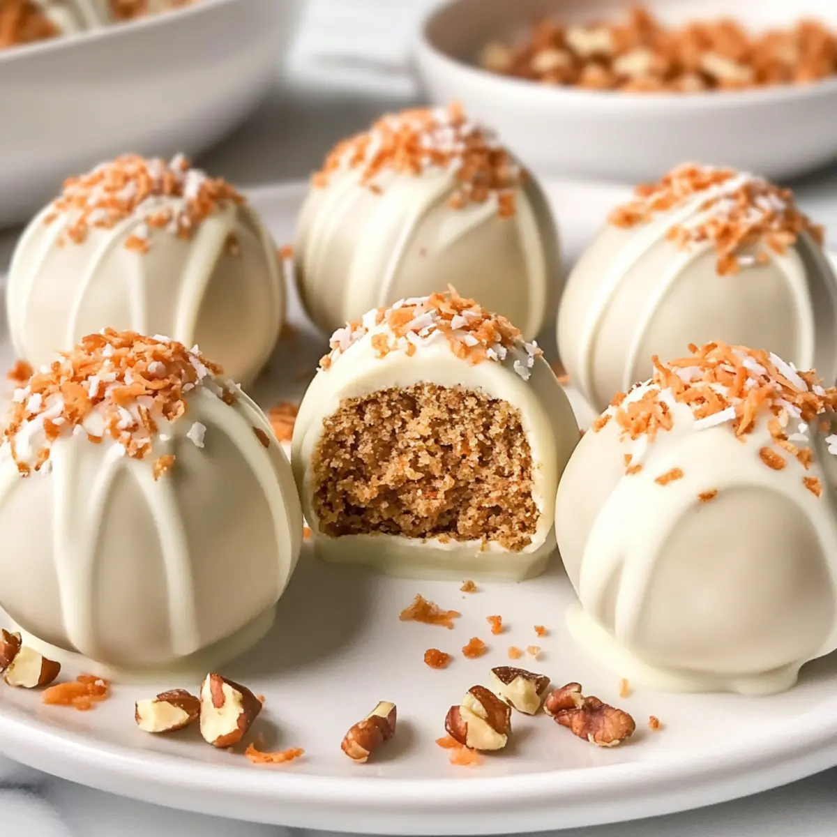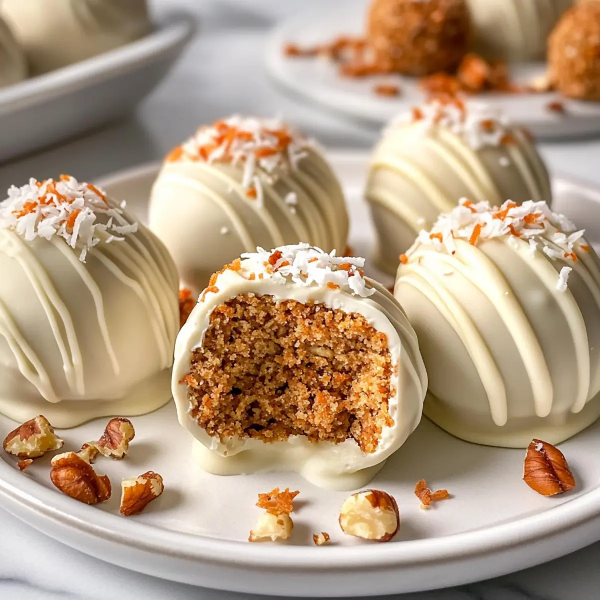 Inmitten von verführerischem Duft und süßer Vorfreude entdecke ich gerade meine neueste Schöpfung: Karottenkuchen-Trüffel! Diese kleinen Leckerbissen sind eine spannende Abwandlung des klassischen Karottenkuchens, die ich einfach nicht widerstehen konnte. Zarte, gewürzte Texturen kombiniert mit einer cremigen Käsefüllung, alles umhüllt von einer glatten weißen Schokolade – das ist purer Genuss! Das Beste daran? Sie sind kinderleicht zuzubereiten und benötigen kein Backen, zudem lassen sie sich nach Belieben anpassen, sei es für einen festlichen Anlass oder einfach als süßer Snack für zwischendurch. Wer kann da schon widerstehen? Möchtest du wissen, wie einfach es ist, diese himmlischen Trüffel selbst zu machen? Warum wirst du diese Trüffel lieben? Einfachheit ist der Schlüssel: Mit nur wenigen Zutaten und ganz ohne Backen kannst du diese köstlichen Karottenkuchen-Trüffel im Handumdrehen zubereiten. Vielfalt pur: Du kannst sie ganz nach deinem Geschmack anpassen, sei es mit Nüssen, Schokolade oder verschiedenen Toppings. Perfekte Konsistenz: Die zarte, gewürzte Füllung harmoniert perfekt mit der knusprigen Schokolade. Unwiderstehlicher Geschmack: Sie sind süß, cremig und bieten das ultimative Geschmackserlebnis eines Karottenkuchens. Ideal für jede Gelegenheit: Ob für Feiern, als Geschenk oder einfach als Belohnung für dich selbst – diese Trüffel sind immer ein Hit! Karottenkuchen-Trüffel Zutaten Entdecke die köstlichen Zutaten, die diese Trüffel zu einem unwiderstehlichen Genuss machen! Für die Trüffel-Füllung Fein geriebene Karotten – Sorgt für Feuchtigkeit und natürliche Süße; frisch und gut abgetropft verwenden, um Sumpf zu vermeiden. Frischkäse – Dient als cremige Basis und bringt Würze sowie Reichhaltigkeit; sollte weich sein für einfaches Mischen. Zerbröselte Vanillekekse oder Graham Cracker – Fügt Süße und Struktur hinzu; glutenfreie Optionen können nach Belieben verwendet werden. Puderzucker – Steigert die Süße und hilft, die Mischung zu festigen; kann reduziert werden, wenn weniger Süße gewünscht ist. Vanilleextrakt – Verleiht eine tiefere Geschmacksnote; echtes Vanillearoma ist für intensiveren Geschmack empfehlenswert. Gemahlener Zimt – Sorgt für die warmen Gewürznoten des klassischen Karottenkuchens. Gemahlene Muskatnuss – Fügt eine subtile Erdigkeit hinzu; frisch gerieben für intensiveren Geschmack verwenden. Salz – Balanciert die Süße und hebt den Gesamteindruck hervor. Gehackte Walnüsse oder Pekannüsse (optional) – Bringt Crunch und Nussigkeit; kann für eine nussfreie Variante weggelassen werden. Für die Schokoladenglasur Weiße Schokolade oder Vanille-Schmelzwalzen – Ideal für die Versiegelung; hochwertige Schokolade für beste Ergebnisse verwenden. Kokosöl oder neutrales Öl (optional) – Verdünnt die Schokoladenglasur für ein glatteres Eintauchen. Für die Dekoration Kokosraspeln, zerdrückte Nüsse oder Zimt-Zucker (optional) – Fügen visuelle und geschmackliche Akzente hinzu. Diese Karottenkuchen-Trüffel sind nicht nur ein leckeres Dessert, sondern lassen sich außerdem leicht anpassen, um deinen Vorlieben gerecht zu werden! Step-by-Step Instructions für Karottenkuchen-Trüffel Step 1: Karotten vorbereiten Reibe die Karotten fein und lege sie auf ein Küchentuch, um überschüssige Feuchtigkeit auszudrücken. Dies ist wichtig, damit die Trüffel nicht zu matschig werden. Sorgfältig verarbeitet, sollten die Karotten glänzend orange und gut abgetropft sein, bevor du mit dem nächsten Schritt fortfährst. Step 2: Basis zubereiten In einer großen Schüssel den Frischkäse, Puderzucker, Vanilleextrakt, Zimt, Muskatnuss und Salz mit einem Handmixer auf mittlerer Stufe schlagen, bis die Mischung glatt und cremig ist. Achte darauf, dass keine Klumpen mehr vorhanden sind und die Farben gleichmäßig verteilt sind, was etwa 2–3 Minuten dauert. Step 3: Zutaten vermengen Falte die geriebenen Karotten sowie die zerbröselten Kekse oder Graham Cracker vorsichtig unter die Käsemasse. Rühre, bis alles gut vermischt ist und eine feste, formbare Konsistenz erreicht ist. Dies sollte etwa 1–2 Minuten in Anspruch nehmen, und du siehst, wie die einzelnen Komponenten harmonisch zusammenkommen. Step 4: Mischung kühlen Decke die Schüssel mit Frischhaltefolie ab und stelle sie für 30–45 Minuten in den Kühlschrank. Dies hilft der Mischung, fester zu werden, sodass du sie später einfach in kleine Bällchen formen kannst. Die Kühle sorgt auch dafür, dass sich die Aromen besser entfalten. Step 5: Trüffel formen Nehme die gekühlte Mischung aus dem Kühlschrank und verwende einen Esslöffel, um Portionen (ca. 1 Esslöffel) abzustechen. Rolle diese Portionen zwischen deinen Händen zu glatten Bällen und lege sie auf ein mit Backpapier ausgelegtes Backblech. Achte darauf, dass die Trüffel gleichmäßig geformt sind, da dies die Präsentation verbessert. Step 6: Trüffel einfrieren Stelle das Blech mit den geformten Trüffeln für etwa 20 Minuten in den Gefrierschrank. Dies sorgt dafür, dass sie ihre Form während des Eintauchens in die Schokolade behalten. Achte darauf, die Trüffel nicht zu lange einzufrieren, damit sie nicht zu hart werden. Step 7: Glasur schmelzen Bereite eine mikrowellenfeste Schüssel vor und gebe die weiße Schokolade hinein. Schmelze die Schokolade in Intervallen von 20–30 Sekunden in der Mikrowelle, rühre nach jeder Runde um. Füge nach Bedarf etwas Kokosöl hinzu, um eine glattere Konsistenz zu erreichen, bis die Schokolade vollständig geschmolzen und glänzend ist. Step 8: Trüffel eintauchen Nehme eine gefrorene Trüffel und tauche sie mit einer Gabel in die geschmolzene Schokolade. Lass die überschüssige Schokolade abtropfen, bevor du sie vorsichtig zurück auf das Backpapier legst. Achte darauf, dass jede Trüffel gut umhüllt ist und glänzend aussieht, was etwa 1 Minute pro Stück in Anspruch nehmen kann. Step 9: Dekorieren Bevor die Schokolade a