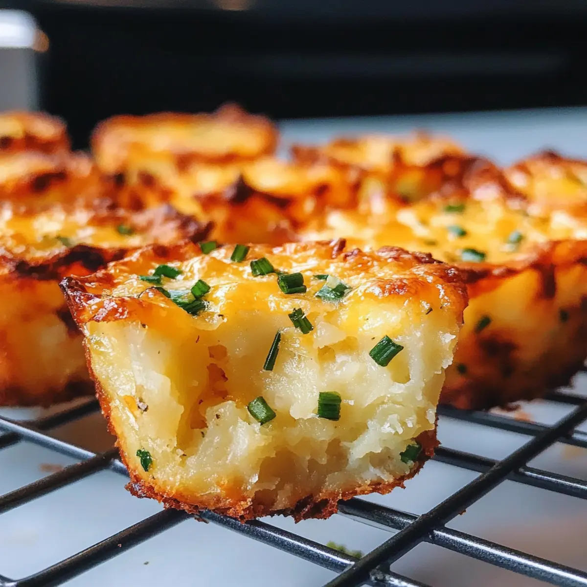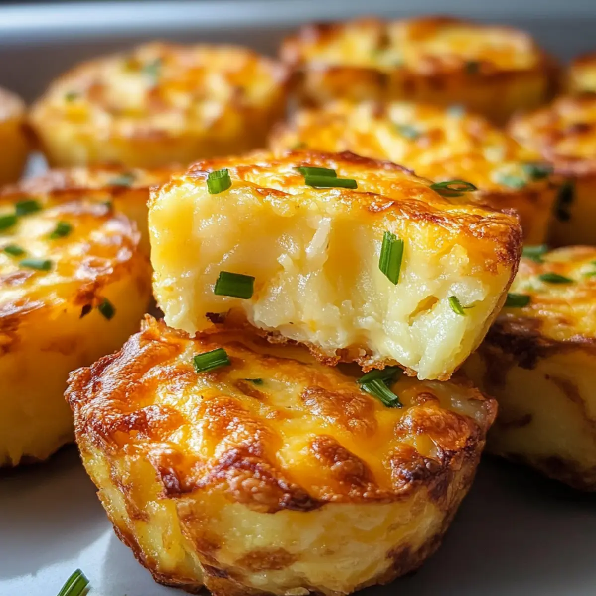 Leckere Kartoffel Cheddar und Schnittlauch Aufläufe, ideal als vielseitiger Snack oder herzhaftes Frühstück.