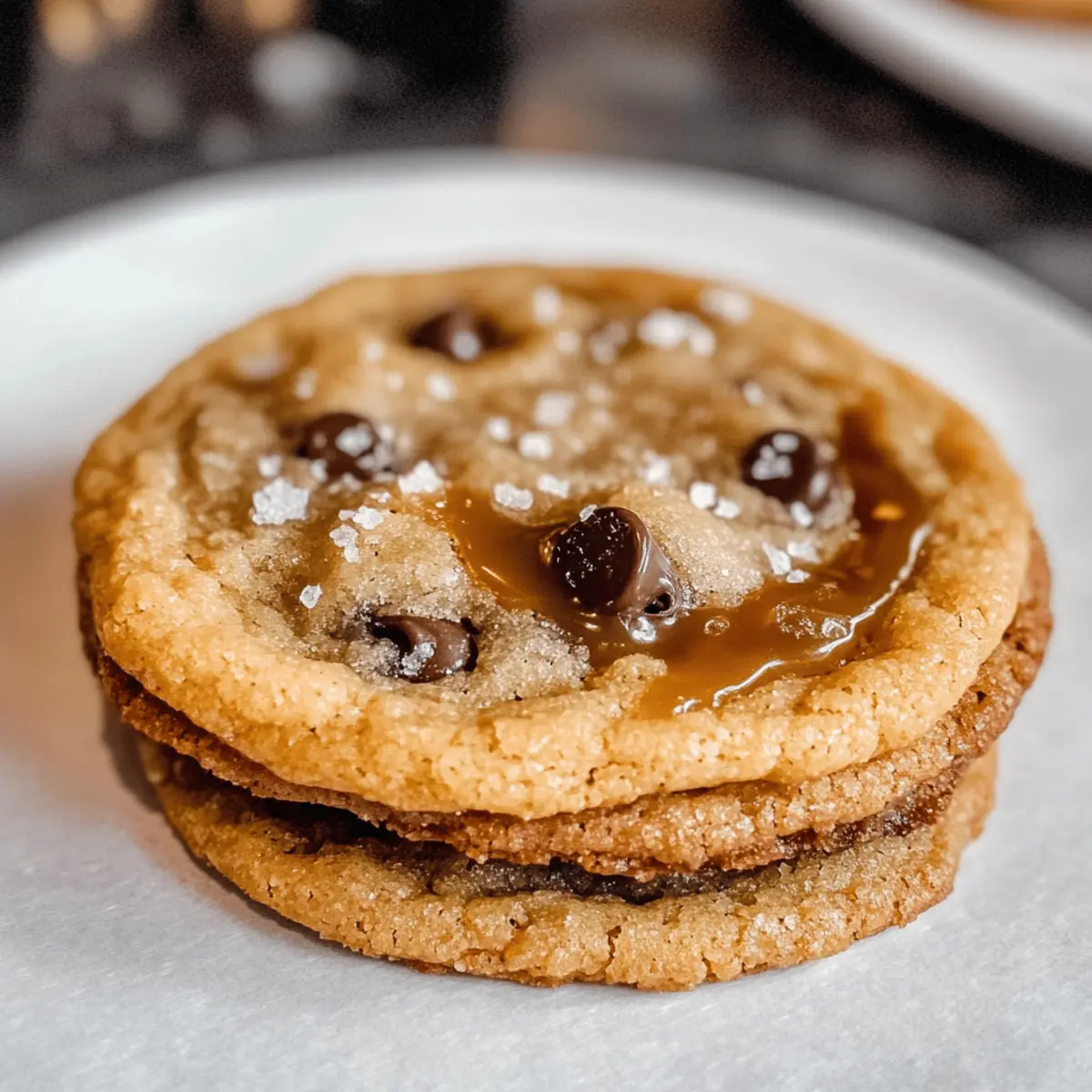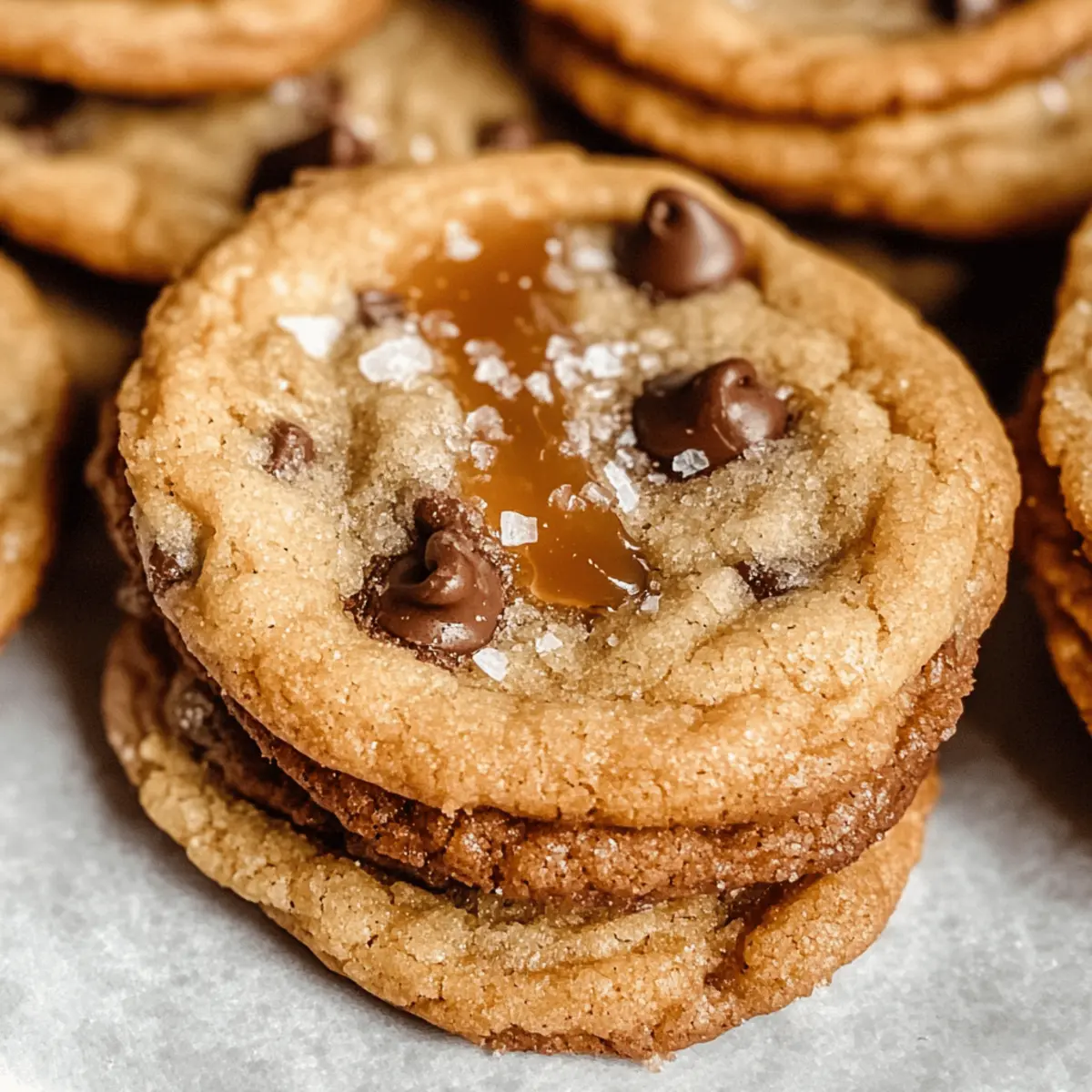 Als ich letztens in der Küche stand, um ein neues Rezept auszuprobieren, kam mir der Gedanke, wie schön es ist, etwas selbst zu schaffen, das so richtig glücklich macht. Heute teile ich mit euch das Rezept für meine kauweichen gesalzenen Karamell-Schokoladenkekse. Diese Köstlichkeiten vereinen eine knusprige Außenschicht mit einem wunderbar zähen Kern, gefüllt mit schmelzenden Schokoladenstückchen und göttlichen Karamellbits. Sie sind nicht nur super einfach zuzubereiten, sondern auch ein echter Publikumsmagnet – perfekt, um Freunde und Familie zu begeistern oder einfach nur die eigene Seele zu verwöhnen. Wer könnte widerstehen, während die Kekse im Ofen backen und der verführerische Duft durch die Wohnung zieht? Seid ihr bereit für einen süßen Genuss? Warum werden diese Kekse dein Favorit? Einfachheit: Das Rezept ist unkompliziert und benötigt nur grundlegende Backfähigkeiten, ideal für Anfänger. Reicher Geschmack: Die Kombination aus Schokolade und gesalzenem Karamell sorgt für ein unvergleichliches Geschmackserlebnis. Vielseitigkeit: Du kannst die Schokoladenstückchen variieren oder Nüsse hinzufügen, um deinen eigenen Twist zu kreieren. Tolle Abwechslung: Perfekt für jedes Treffen, sei es ein gemütlicher Abend mit Freunden oder ein Familienessen. Wunderbare Textur: Die knusprigen Ränder im Kontrast zum zähen Kern lassen die Kekse unwiderstehlich werden! Um mehr köstliche Rezepte zu entdecken, schau dir auch unsere Kekse und Süßes an! Kauweiche gesalzene Karamell-Schokoladenkekse Zutaten Für den Teig: Weizenmehl – sorgt für die Struktur der Kekse. Backpulver – lässt die Kekse leicht aufgehen und sorgt für eine luftige Textur. Natron – hilft beim Bräunen und verleiht eine zähe Konsistenz. Salz – hebt den Geschmack hervor und balanciert die Süße. Ungesalzene Butter – verleiht den Keksen einen reichhaltigen Geschmack; idealerweise zimmerwarm verwenden. Brauner Zucker – sorgt für Feuchtigkeit und eine tiefere Geschmacksnote. Zucker – süßt die Kekse und trägt zur perfekten Textur bei. Ei – bindet die Zutaten; ebenfalls zimmerwarm für bessere Emulgierung verwenden. Vanilleextrakt – fügt Wärme und mehr Geschmacksdimension hinzu. Halbbitterschokoladenstückchen – bieten eine köstliche Süße und Genuss. Karamellbits – bringen köstliche, salzige Taschen; alternativ kannst du Karamellbonbons verwenden, die in Stücke geschnitten sind. Grobes Salz oder Flor de Sal – wird nach dem Backen auf die Kekse gestreut für den extra Kick. Diese kauweichen gesalzenen Karamell-Schokoladenkekse sind eine großartige Möglichkeit, um die Küche mit einem unwiderstehlichen Duft zu füllen und alle glücklich zu machen! Schritt-für-Schritt-Anleitung für Kauweiche gesalzene Karamell-Schokoladenkekse Step 1: Ofen vorheizen Heize deinen Ofen auf 175°C (350°F) vor. Diese Temperatur ist ideal, um die kauweichen gesalzenen Karamell-Schokoladenkekse gleichmäßig zu backen. Während der Ofen vorheizt, kannst du dich auf die Vorbereitung der weiteren Zutaten konzentrieren. Step 2: Trockene Zutaten vermischen In einer mittelgroßen Schüssel mische Weizenmehl, Backpulver, Natron und Salz gut miteinander. Nutze einen Schneebesen, um sicherzustellen, dass die trockenen Zutaten gleichmäßig verteilt sind. Diese Mischung bildet die Basis für den perfekten Keks und sorgt für die nötige Struktur. Step 3: Butter und Zucker cremig schlagen Verwende einen elektrischen Mixer, um die zimmerwarme ungesalzene Butter zusammen mit dem braunen Zucker und dem Zucker cremig zu schlagen. Mixe die Mischung für etwa 2-3 Minuten, bis sie leicht und fluffig ist. Dabei entstehen die köstlichen Aromen, die die kauweichen gesalzenen Karamell-Schokoladenkekse so verlockend machen. Step 4: Ei und Vanille hinzufügen Füge nun das zimmerwarme Ei und den Vanilleextrakt zu der Butter-Zucker-Mischung hinzu. Schlage die Zutaten für etwa 1-2 Minuten, bis sie gut vermischt sind und eine homogene Masse entsteht. Dieser Schritt sorgt für zusätzliche Feuchtigkeit und Geschmack in den Keksen. Step 5: Trockene Zutaten einmischen Gib die zuvor gemischten trockenen Zutaten vorsichtig in die Rührschüssel. Mische alles mit einem Holzlöffel oder einem Teigschaber, bis die trockenen Zutaten gerade so eingearbeitet sind. Der Teig wird relativ dick sein, was typisch für die kauweichen gesalzenen Karamell-Schokoladenkekse ist. Step 6: Schokoladenstückchen und Karamellbits unterheben Falte nun die halbbittersüßen Schokoladenstückchen und die Karamellbits in den Teig. Mische sanft, damit die Schokolade und das Karamell gleichmäßig verteilt sind. Achte darauf, dass du die Karamellbits nicht zu sehr zerdrückst, um schöne schmelzende Stückchen zu erhalten. Step 7: Kekse formen und auf das Backblech legen Mit einem Esslöffel formst du große Portionen des Keksdeegs und setzt sie mit genügend Abstand (ca. 5 cm) auf ein mit Backpapier ausgelegtes Backblech. Die Kekse laufen beim Backen auseinander, daher ist es wichtig, ausreichend Platz zu lassen, um ein Zusammenbacken zu vermeiden. Step 8: Karamellbits oben auf die Kekse setzen Drücke 4-5 Karamellbits in die Mitte jedes Keksballens. Dies sorgt dafür, dass die Kekse beim Backen die köstlichen schmelzenden Karamellflecken erhalten. Diese kleinen Extras sind der Schlüssel zu den unverwechselbaren kauweichen gesalzenen Karamell-Schokoladenkeksen. Step 9: Backen Backe die Kekse im vorgeheizten Ofen für 12-14 Minuten, bis die Unterseite goldbraun ist und die Karamellbits schön blubbern. Achte darauf, die Kekse nicht zu lange im Ofen zu lassen, da sie beim Abkühlen weiter härter werden. Step 10: Salz auf die Kekse streuen Nimm die Kekse nach dem Backen sofort aus dem Ofen und streue eine Prise grobes Salz über jedes Stück. Dies verstärkt den Geschmackskontrast und macht die kauweichen gesalzenen Karamell-Schokoladenkekse noch köstlicher! Step 11: Abkühlen lassen Lass die Kekse für einige Minuten auf dem Backblech ab
