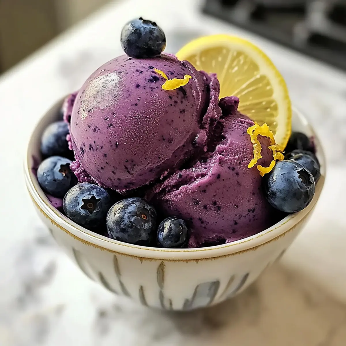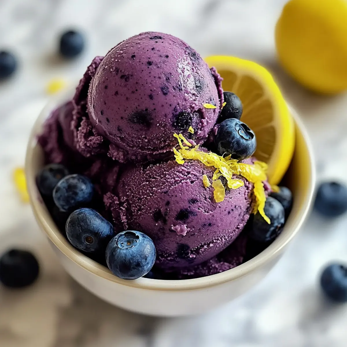 Es gibt nichts Erfrischenderes an einem heißen Sommertag als ein selbstgemachtes Sorbet, das in wenigen Minuten zubereitet ist. Der brillante Mix aus süßen Blauenbeeren und spritziger Zitrone in meinem Rezept für kein Churn Blaubeer-Zitronen-Sorbet wird euch umhauen! Ganz ohne Eismaschine zaubert dieses köstliche Dessert mit nur fünf Zutaten blitzschnell eine erfrischende Leckerei, die nicht nur glutenfrei und milchfrei ist, sondern auch auf natürliche Weise gesüßt wird. Perfekt, um die Familie zu begeistern oder einfach eine köstliche Erfrischung im Alltag zu genießen. Wie wäre es, diese sommerliche Versuchung gleich auszuprobieren? Warum wirst du dieses Sorbet lieben? Einfachheit: Die Zubereitung ist unkompliziert und benötigt keine Eismaschine, perfekt für spontane Gelüste. Frische Aromen: Die Kombination aus süßen Blaubeeren und säuerlicher Zitrone sorgt für ein Geschmackserlebnis, das Deine Sinne belebt. Gesundheitsbewusst: Mit nur fünf Zutaten ist es nicht nur lecker, sondern auch eine gesunde Wahl, die glutenfrei und milchfrei ist. Vielfältig: Experimentiere mit verschiedenen Obstsorten oder füge frische Minze hinzu, um Deinem Sorbet eine persönliche Note zu verleihen. Familienfreundlich: Ein Hit bei Groß und Klein, ideal für Gartenpartys oder als erfrischender Snack nach dem Sport. Hol dir auch Inspiration für andere erfrischende Rezepte wie den Bunten Kinder Nudelsalat oder die Zarten Rinderbissen Mit. Kein Churn Blaubeer-Zitronen-Sorbet Zutaten • Entdecke die fünf Zutaten für dieses erfrischende Sorbet! Für das Sorbet Gefrorene Blaubeeren – Sie sind die Hauptgeschmacksquelle; wähle reife und süße Beeren für das beste Aroma. Wasser – Dies hilft, die Zutaten glatt zu mischen; passe die Menge an, um die gewünschte Konsistenz zu erreichen. Frischer Zitronensaft – Bringt einen spritzigen Geschmack; frisch gepresst ist am besten für Intensität und Frische. Zitronenschale – Verstärkt das Zitronenaroma und verleiht eine angenehme, frische Note. Honig – Dient als natürlicher Süßstoff; kann für eine vegane Option durch Agavensirup oder Kokosnusscreme ersetzt werden. Hol dir den Sommergeschmack mit diesem Kein Churn Blaubeer-Zitronen-Sorbet! Schritt-für-Schritt-Anleitung für Kein Churn Blaubeer-Zitronen-Sorbet Schritt 1: Zutaten vorbereiten Zuerst alle Zutaten für das Kein Churn Blaubeer-Zitronen-Sorbet vorbereiten. Nimm eine Schüssel und messe gefrorene Blaubeeren, Wasser, frisch gepressten Zitronensaft, Zitronenschale und Honig ab. Stelle sicher, dass die Blaubeeren gut gefroren sind, damit das Sorbet die richtige Konsistenz erhält, und lege die Zutaten bereit für die nächste Zubereitungsphase. Schritt 2: Zutaten mixen Gib die vorbereiteten Zutaten in eine Küchenmaschine oder einen Hochgeschwindigkeitsmixer. Mixe alles für etwa 30 Sekunden, bis die Mischung vollkommen glatt und cremig ist. Achte darauf, dass keine Stückchen zurückbleiben, um eine feine Textur des Sorbets zu erreichen. Bei Bedarf kannst du die Konsistenz durch Hinzufügen von etwas Wasser anpassen. Schritt 3: Mischung in die Form geben Übertrage die glatte Mischung in eine Kastenform oder einen tiefen Glasbehälter. Verteile das Sorbet gleichmäßig, um ein schnelleres Gefrieren zu gewährleisten. Klopfe die Form leicht auf die Arbeitsfläche, um Luftblasen zu entfernen und eine schöne, glatte Oberfläche zu schaffen. Schritt 4: Sorbet gefrieren Decke die Form mit Frischhaltefolie oder einem Deckel ab und stelle sie für mindestens eine Stunde in den Gefrierschrank. Nach dem Erreichen dieser Zeit solltest du die Konsistenz des Sorbets überprüfen. Es sollte fest, aber nicht zu hart sein, um die gewünschte Textur zu erzielen. Schritt 5: Sorbet servieren Nach dem Gefrieren nimm das Sorbet aus dem Gefrierschrank und lasse es für 5-10 Minuten bei Raumtemperatur stehen, um es leicht anzutauen. Verwende einen Eiskugel-Ausstecher oder einen Löffel, um das Sorbet in Schalen zu portionieren. Garniere es nach Belieben mit frischen Blaubeeren oder etwas Zitronenschale für einen zusätzlichen Farbtupfer und Geschmack. Lagerungstipps für Kein Churn Blaubeer-Zitronen-Sorbet Raumtemperatur: Das Sorbet sollte nicht bei Raumtemperatur gelagert werden, um die beste Konsistenz zu bewahren. Gefrierschrank: Bewahre das Kein Churn Blaubeer-Zitronen-Sorbet in einem luftdichten Behälter auf, um die Bildung von Eiskristallen zu vermeiden. So bleibt es bis zu 2 Wochen frisch. Wiedereinfrieren: Wenn du Reste hast, die bereits etwas an Textur verloren haben, kannst du sie kurz pürieren, um das Sorbet wieder cremiger zu machen. Vorbereitung: Du kannst das Sorbet bis zu 24 Stunden im Voraus zubereiten, aber lasse es vor dem Servieren etwas bei Raumtemperatur stehen, um das Portionieren zu erleichtern. Bereite dein Kein Churn Blaubeer-Zitronen-Sorbet im Voraus vor! Das Kein Churn Blaubeer-Zitronen-Sorbet lässt sich hervorragend für die meal-prep nutzen! Du kannst die Zutaten (gefrorene Blaubeeren, Wasser, frischen Zitronensaft, Zitronenschale und Honig) bis zu 24 Stunden im Voraus vorbereiten, indem du sie einfach in einem luftdichten Behälter im Kühlschrank aufbewahrst. Wenn du bereit bist, das Sorbet zuzubereiten, mixe die vorbereiteten Zutaten in einer Küchenmaschine, bis die Mischung cremig ist. Übertrage sie dann in eine Kastenform, decke sie ab und friere sie für mindestens eine Stunde ein. Um die beste Konsistenz zu gewährleisten, lasse das Sorbet vor dem Servieren 5-10 Minuten bei Raumtemperatur stehen. So hast du ein erfrischendes Dessert, das nicht nur lecker, sondern auch zeitsparend ist! Was passt gut zum Kein Churn Blaubeer-Zitronen-Sorbet? Genieße dieses erfrischende Dessert mit sorgfältig ausgewählten Begleitgerichten, die den Geschmack deines Sorbets perfekt ergänzen. Cremige Kokosnuss-Panna Cotta: Die sanfte Süße und der cremige Geschmack bieten einen schönen Kontrast zum fruchtigen Sorbet. Frisches Minzsalat: Der knackige, erfrischende Salat brin