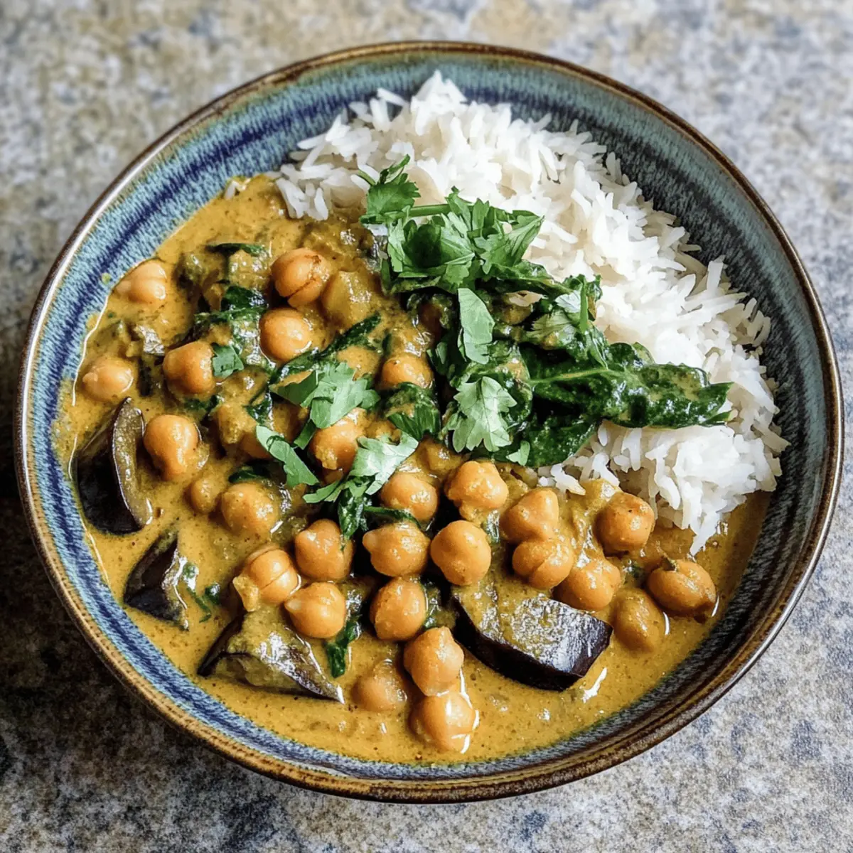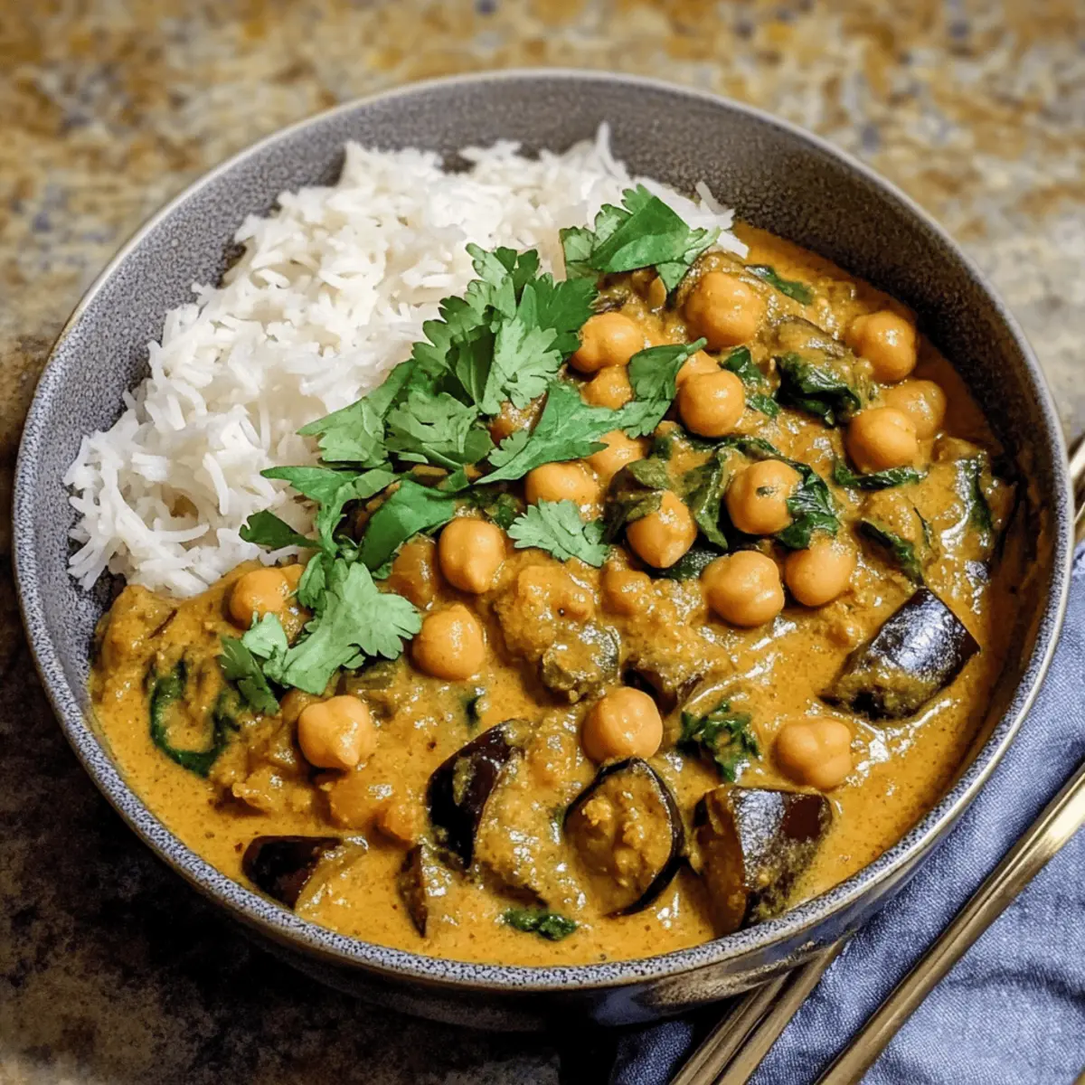 Ein ganz besonderer Moment in der Küche kommt, wenn ich die Zutaten für mein Kichererbsen-Curry mit Auberginen vorbereite. Dieser duftende Eintopf verleiht meiner Woche nicht nur eine gesunde Note, sondern bringt auch Farbe und Freude auf den Tisch. In weniger als 30 Minuten entsteht ein veganer Traum, der garantiert nicht nur den Gaumen, sondern auch das Herz erwärmt. Dieses Gericht ist perfekt für alle, die eine schnelle, glutenfreie Mahlzeit suchen und Lust auf eine köstliche Komfortspeise haben. Mit proteinreichen Kichererbsen und zarten Auberginen hast du bereits die Basis für ein unvergessliches Dinner geschaffen. Welche spannenden Variationen wird es bei dir geben? Lass dich inspirieren und finde heraus, wie einfach es ist, mit frischen Zutaten kreative Köstlichkeiten zu zaubern! Warum ist Kichererbsen-Curry so beliebt? Einfachheit: Die Zubereitung ist unkompliziert und erfordert keine besonderen Kochkünste, sodass jeder schnell in den Genuss dieses Gerichts kommt. Vielseitigkeit: Experimentiere mit verschiedenen Gemüsesorten oder pflanzlichen Sahnealternativen für abenteuerliche Variationen. Das zeigt die Flexibilität dieses Rezeptes! Verlockender Geschmack: Mit einer Kombination aus Gewürzen und der cremigen Kokosmilch wird jeder Biss zu einem Geschmackserlebnis. Gesundheitlich wertvoll: Die proteinreichen Kichererbsen und zarten Auberginen machen es zu einer nährstoffreichen Wahl – perfekt für eine ausgewogene Ernährung. Wenn du mehr über die gesundheitlichen Vorteile von Kichererbsen erfahren möchtest, schau dir unseren Artikel über gesunde Hülsenfrüchte an. Schnell und Einfach: Fast in weniger als 30 Minuten zubereitet, ist dieses Gericht ideal für hektische Wochentage. Crowd-Pleasing: Perfekt, um Familie und Freunde zu beeindrucken – so einfach, aber voller Aromen! Kichererbsen-Curry-Aubergine Zutaten • Um die Vorfreude zu wecken, hier die wunderbaren Zutaten für dein Kichererbsen-Curry mit Auberginen: Für die Basis Kichererbsen – reich an Proteinen und Ballaststoffen; verwende für mehr Bequemlichkeit Dosenkichererbsen. Auberginen – sorgen für eine zarte Textur; kleinere Sorten sind ideal, um eine matschige Konsistenz zu vermeiden. Zwiebel – für einen tiefen Geschmack; kann durch Schalotten oder Frühlingszwiebeln ersetzt werden. Knoblauch – verleiht Duft und Geschmack; passe die Menge je nach gewünschter Intensität an. Für die Sauce Kokosmilch – sorgt für Cremigkeit und Reichhaltigkeit; du kannst auch Kokoscreme verwenden, um eine dickere Konsistenz zu erreichen. Currypulver – das Hauptgewürz für den Geschmack; die Menge je nach Schärfevorliebe anpassen. Kreuzkümmel – für wohltuende Wärme; nach Geschmack anpassen. Chilipulver – optional; sorgt für zusätzliche Schärfe. Salz und Pfeffer – nach Geschmack. Für das Topping und die Beilage Gekochter Reis – ideal zum Servieren; Jasminreis wird empfohlen. Frischer Koriander oder Spinat – für die Garnierung; bringt frische Farbe und zusätzlichen Geschmack. Die Zubereitung deines Kichererbsen-Curry mit Auberginen wird so zu einem wahren Fest für die Sinne! Schritt-für-Schritt-Anleitung für Kichererbsen-Curry-Aubergine Step 1: Gemüse vorbereiten Schneide die Auberginen und Zwiebeln in kleine Würfel. Du solltest etwa 1 cm große Stücke erhalten, damit sie gleichmäßig garen. Bereite eine große Pfanne oder einen Wok vor und erhitze etwas Öl oder Wasser bei mittlerer Hitze. Dies dauert etwa 2 Minuten, bis das Öl heiß ist. Step 2: Gemüse anbraten Füge die gewürfelten Auberginen und Zwiebeln in die Pfanne hinzu und brate sie für etwa 10 Minuten an. Rühre gelegentlich um, bis die Auberginen weich und goldbraun sind. Achte darauf, dass sie nicht anbrennen – sie sollten schön glänzend und zart sein. Step 3: Knoblauch hinzufügen Gebe den fein gehackten Knoblauch in die Pfanne und brate ihn für weitere 1-2 Minuten mit, bis er aromatisch ist. Rühre gut um, damit der Knoblauch gleichmäßig verteilt wird. Du wirst einen köstlichen Duft wahrnehmen, der deine Küche erfüllt. Step 4: Kichererbsen und Gewürze einmischen Füge die abgetropften Kichererbsen sowie die Kokosmilch in die Pfanne hinzu. Streue nun Currypulver, Kreuzkümmel, Salz und Pfeffer darüber. Rühre die Mischung gut durch, sodass die Gewürze gleichmäßig verteilt sind. Lass sie etwa 3-5 Minuten bei mittlerer Hitze köcheln, bis alles gut erhitzt ist. Step 5: Fertigstellen und Anrichten Lass das Kichererbsen-Curry-Aubergine für weitere 2 Minuten sanft köcheln, während du regelmäßig umrührst. Achte darauf, dass die Sauce dickflüssig und cremig wird. Wenn alles gut vermischt ist und die Aromen sich entfaltet haben, bist du bereit, das Gericht zu servieren. Step 6: Servieren Serviere das Kichererbsen-Curry-Aubergine heiß zusammen mit gekochtem Jasminreis oder warmem Naanbrot. Garniere es optional mit frischem Koriander oder Spinat, um zusätzliche Frische und Farbe hinzuzufügen. Genieße dieses köstliche und nahrhafte Gericht! Vorbereitungen für dein Kichererbsen-Curry-Aubergine Die Vorbereitung deines Kichererbsen-Curry mit Auberginen kann dir wertvolle Zeit sparen! Du kannst die gewürfelten Auberginen und Zwiebeln bis zu 24 Stunden im Voraus schneiden und in einem luftdichten Behälter im Kühlschrank aufbewahren, um ihre Frische zu bewahren. Auch die Kichererbsen kannst du bereits am Vortag abtropfen lassen oder, falls du getrocknete verwendest, gekocht aufbewahren. Wenn du bereit bist zu kochen, erhitze das Öl, füge das vorbereitete Gemüse hinzu und verfahren wie im Rezept beschrieben. So erhältst du dein köstliches Kichererbsen-Curry-Aubergine unkompliziert und in kürzester Zeit – perfekt für vielbeschäftigte Wochentage! Expertentipps für Kichererbsen-Curry Auberginenwahl: Kleine Auberginen verwenden, um eine matschige Konsistenz zu vermeiden. Größere Sorten neigen dazu, mehr Wasser aufzusaugen. Kokosmilch ersetzen: Ist Kokosmilch nicht verfügbar, kann pflanzl