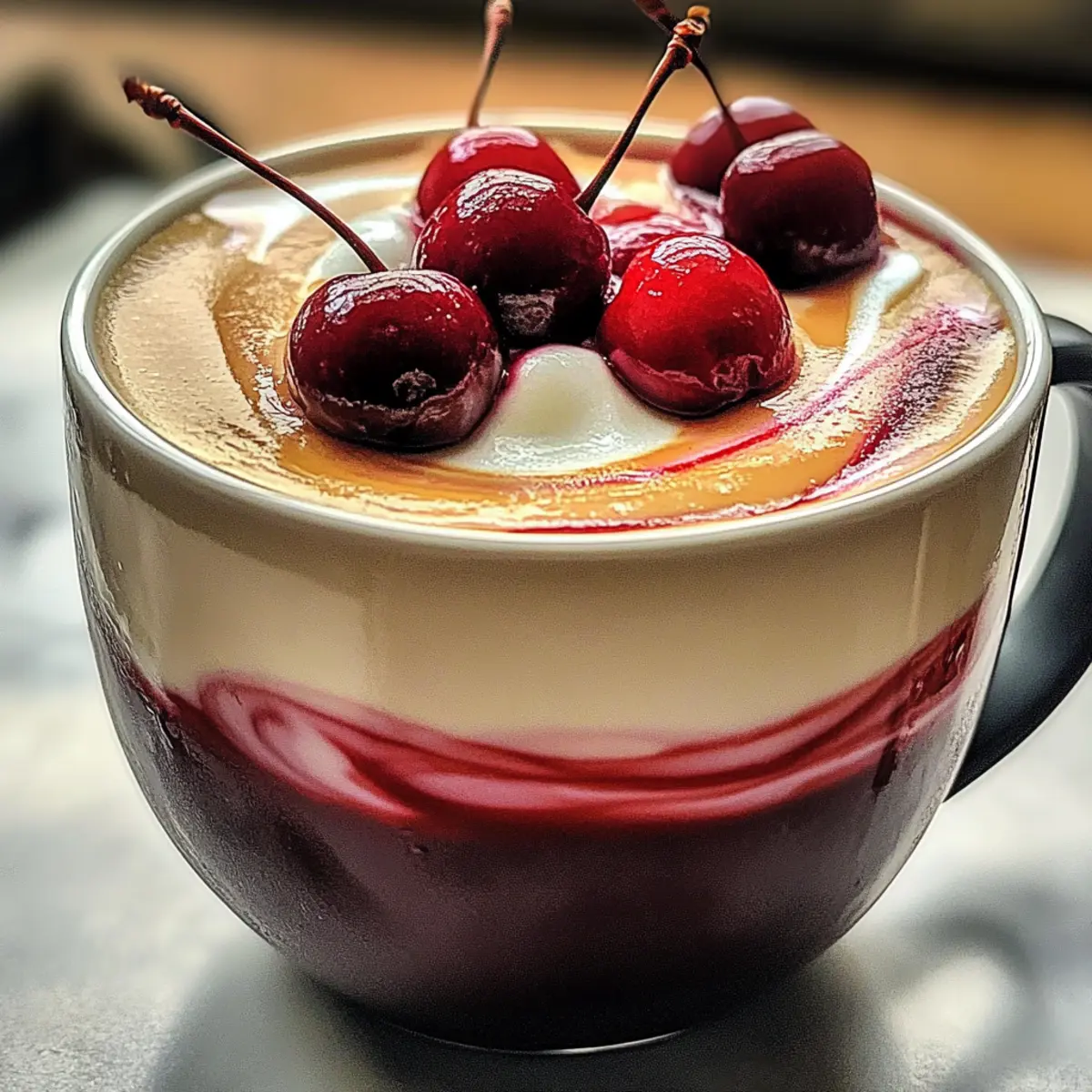 Als ich das letzte Mal in einem gemütlichen Café saß und meinen ersten Schluck eines Kirsche Vanille Latte nahm, fühlte es sich an wie eine Umarmung in einer Tasse. Die süßen Aromen reifer Kirschen tanzten im perfekten Zusammenspiel mit der sanften Vanille und dem kräftigen Espresso – ein kleines Stückchen Glück, das ich nun selbst zubereiten möchte! Diese schnelle und anpassbare Rezeptur ist nicht nur ideal für ein entspanntes Brunch, sondern lässt sich auch ganz nach deinem Geschmack variieren – befühl die Freiheit, Kokosmilch hinzuzufügen oder eine erfrischende Eisebversion zu kreieren. Lass uns gemeinsam in die Welt des köstlichen Kirsche Vanille Latte eintauchen, und herausfinden, wie du dir dieses besondere Getränk zuhause zaubern kannst! Warum wirst du dieses Rezept lieben? Einfache Zubereitung: Mit nur wenigen Zutaten und minimalem Aufwand zauberst du dir im Handumdrehen einen köstlichen Kirsche Vanille Latte. Vielseitigkeit: Anpassbar an deine Vorlieben – ob vegan oder mit deiner Lieblingsmilch, die Variationsmöglichkeiten sind endlos! Intensive Aromen: Die Kombination aus süßen Kirschen und cremiger Vanille bringt deinen Gaumen zum Tanzen. Perfektes Getränk: Egal, ob zum Brunch mit Freunden oder als entspannende Auszeit – dieser Latte ist immer ein Hit! Probiere auch unseren Erdbeerkuchen Mit Vanillecreme für eine leckere Begleitung dazu! Kirsche Vanille Latte Zutaten • Für die Basis Frische Kirschen – Sie sind die süße und geschmackliche Grundlage; gefrorene Kirschen sind eine gute Alternative. Vanilleextrakt – Fügt Tiefe und Reichtum hinzu; Vanillesirup kann für zusätzliche Süße verwendet werden. Espresso – Das Herzstück des Latte; kalter Brühkaffee kann für eine leichtere Variante verwendet werden. • Für die Süße Zucker oder Honig – Süße nach Geschmack anpassen; wähle je nach Vorliebe die Menge aus. • Für die Cremigkeit Milch (oder pflanzliche Alternative) – Sorgt für eine cremige Textur; Optionen sind Mandel-, Hafer- oder Kokosmilch. Schlagsahne (optional) – Ein luxuriöser Topping; verwende Kokossahne für eine milchfreie Option. Verliebe dich in diesen Kirsche Vanille Latte und genieße die Vielfalt der Variationsmöglichkeiten! Schritt-für-Schritt-Anleitung für Kirsche Vanille Latte Schritt 1: Espresso zubereiten Bereite einen starken Espresso mit einer Espressomaschine oder French Press zu. Dies dauert etwa 25-30 Sekunden. Achte darauf, dass der Espresso eine reichhaltige, tiefbraune Farbe hat, um die Basis für deinen köstlichen Kirsche Vanille Latte zu bilden. Schritt 2: Kirschen pürieren Gib ½ Tasse entsteinte Kirschen und 1 Esslöffel Vanilleextrakt in einen Mixer. Püriere die Mischung 30-45 Sekunden lang, bis sie glatt und cremig ist. Du solltest eine lebhafte, rot leuchtende Masse erhalten, die dem Latte eine fruchtige Note verleiht. Schritt 3: Milch erhitzen Erhitze 1 Tasse Milch (oder deine pflanzliche Alternative) in einem kleinen Topf bei mittlerer Hitze. Achte darauf, dass die Milch dampft, aber nicht kocht, was etwa 3-5 Minuten dauert. Die Milch sollte eine angenehme Temperatur erreichen und eine leichte Schaumigkeit entwickeln. Schritt 4: Mischen Gib den frisch gebrühten Espresso in eine große Tasse. Füge die pürierten Kirschen hinzu und rühre um, um die Aromen zu kombinieren. Gieße dann die dampfende Milch langsam über die Mischung und beobachte, wie die Farben sanft miteinander verschmelzen. Schritt 5: Süßen Füge nach Geschmack Zucker oder Honig hinzu, um die Süße deines Kirsche Vanille Latte anzupassen. Rühre die Süße ein, bis sie vollständig aufgelöst ist und die Aromen harmonisch miteinander vermischen. Schritt 6: Servieren Garnieren deinen Kirsche Vanille Latte mit frischen Kirschen oder einem Klecks Schlagsahne, um ihm einen extra Hauch von Luxus zu verleihen. Serviere ihn sofort und genieße dieses köstliche, cremige Getränk! Perfekte Vorbereitung für deinen Kirsche Vanille Latte Die Zubereitung deines Kirsche Vanille Latte kann so einfach sein, dass du ihn im Voraus planen kannst! Du kannst die Kirsch-Vanille-Basis bis zu 24 Stunden im Voraus zubereiten; püriere dafür ½ Tasse entsteinte Kirschen mit 1 Esslöffel Vanilleextrakt und bewahre die Mischung in einem luftdichten Behälter im Kühlschrank auf. Zudem kannst du den Espresso ebenfalls vorab brühen, dieser hält sich bis zu 3 Tage im Kühlschrank, ohne an Qualität zu verlieren. So hast du die Basis für dein Getränk schnell griffbereit. Wenn du bereit bist, deinen Kirsche Vanille Latte zu genießen, erhitze einfach die Milch und kombiniere alle Bestandteile in einer Tasse für einen frisch zubereiteten Kaffeegenuss – perfekt auch für hektische Morgen! Was passt zum Kirsche Vanille Latte? Lass dich von köstlichen Begleitgerichten inspirieren, die deinen Kirsche Vanille Latte wunderbar ergänzen und ein vollendetes Geschmackserlebnis schaffen. Fluffige Pfannkuchen: Diese sind ein perfektes Frühstücks-Match! Ihre weiche Textur harmoniert ideal mit den fruchtigen Noten des Latte. Frischer Obstsalat: Ein bunter Mix aus saisonalen Früchten bringt Frische und Leichtigkeit in dein Brunch-Menü und ergänzt die Süße der Kirschen. Schokoladencroissants: Der reichhaltige, schokoladige Geschmack dieser zarten Teilchen schafft einen genussvollen Kontrast zu den fruchtigen und cremigen Komponenten des Latte. Mini-Käsekuchen: Diese kleinen Leckerbissen bieten eine köstliche Süße und Cremigkeit, die sich hervorragend mit dem Kirsche Vanille Latte kombinieren lässt. Gebrannte Mandeln: Knusprige und süße Mandeln bringen einen knackigen Biss in dein Getränk und ergänzen die Aromen perfekt. Eisgekühlter Limetten-Minztee: Der erfrischend herbe Geschmack des Tees bietet einen aufregenden Kontrast zum geschmeidigen Kirsche Vanille Latte, ideal für heiße Tage. Kirsche Vanille Latte Variationen Lass deiner Kreativität freien Lauf und verleih deinem Kirsche Vanille Latte eine persönliche Note! Hier 
