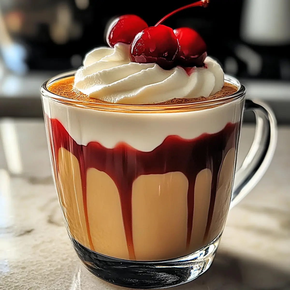 Mit einem frischen Hauch von Kirsche und dem einladenden Aroma von Vanille bringt der Kirsche Vanille Latte die Gemütlichkeit eines Cafés direkt in deine Küche. Diese einfache und anpassbare Kaffeekreation ist perfekt für entspannte Nachmittage oder brunchige Zusammenkünfte mit Freunden – sie wird die Herzen aller Kaffeeliebhaber erobern! Egal, ob du dich für die erfrischende Eistee-Variante entscheidest oder eine cremige, milchfreie Version ausprobieren möchtest, dieser Latte bietet zahlreiche Möglichkeiten, um deinem persönlichen Geschmack gerecht zu werden. Und das Beste daran? Du kannst gesunde Süßstoffe verwenden und mit frischen Zutaten experimentieren, um einen köstlichen Genuss zu zaubern, ohne dabei auf Geschmack verzichten zu müssen. Bereit, deine Kaffeeroutine aufzupeppen? Lass uns gemeinsam in die zarte Welt des Kirsche Vanille Latte eintauchen! Warum ist der Kirsche Vanille Latte so besonders? Einzigartig im Geschmack: Die Kombination aus frischen Kirschen und aromatischer Vanille sorgt für ein intensives Geschmackserlebnis. Flexibel einsetzbar: Egal, ob als Eisgetränk oder warme Variante, dieser Latte passt sich deinem Stil an. Gesundheitsbewusst genießen: Verwende gesunde Süßstoffe wie Honig oder Agavendicksaft. Einfache Zubereitung: Mit nur wenigen Zutaten und Schritten ist es ein kinderleichtes Rezept, das selbst Anfänger meistern können. Perfekt für alle, die sich eine Auszeit gönnen möchten – ideal für gemütliche Nachmittage oder besondere Brunchmomente. Mach deinen Kaffeegenuss aufregender mit diesem kreativen Rezept! Kirsche Vanille Latte Zutaten Für den Latte: • Frische Kirschen – liefern natürliche Süße und lebendigen Geschmack; gefrorene Kirschen können als Ersatz verwendet werden. • Vanilleextrakt – verstärkt die Reichhaltigkeit; kann durch Vanillesirup ersetzt werden, um zusätzliche Süße zu bieten. • Espresso – bildet die Basis für den Kaffee; kalter Brew eignet sich für eine leichtere Variante. • Zucker oder Honig – nach Geschmack anpassen; Alternativen wie Ahornsirup oder Agavendicksaft können ebenfalls verwendet werden. • Milch (oder milchfreie Alternative) – sorgt für Cremigkeit; Optionen wie Mandel-, Hafer- oder Kokosmilch sind alle veganfreundlich. • Schlagsahne (optional) – für ein luxuriöses Topping; Kokoswhip ist eine großartige milchfreie Wahl. Schritt-für-Schritt-Anleitung für den Kirsche Vanille Latte Schritt 1: Espresso zubereiten Bereite einen starken Espresso mit einer Espressomaschine oder einer French Press vor. Verwende dazu frisch gemahlene Kaffeebohnen und bringe das Wasser zum Kochen. Nach dem Brühen halte den Espresso bei niedriger Temperatur warm, während du die weiteren Zutaten vorbereitest. Ein gut zubereiteter Espresso ist die Basis für deinen köstlichen Kirsche Vanille Latte. Schritt 2: Kirsch-Vanille-Mischung herstellen Püriere ½ Tasse entsteinte frische Kirschen zusammen mit 1 Esslöffel Vanilleextrakt in einem Mixer, bis eine glatte Masse entsteht. Diese Mischung verleiht deinem Kirsche Vanille Latte ein intensives Aroma und eine natürliche Süße. Achte darauf, eine homogene Konsistenz zu erreichen, damit sich die Aromen gut vermischen. Schritt 3: Milch erwärmen Erwärme 1 Tasse Milch oder eine pflanzliche Alternative in einem kleinen Topf bei mittlerer Hitze. Rühre dabei ständig, um ein Anbrennen zu vermeiden, und achte darauf, dass die Milch nicht kocht. Die Milch sollte warm und schaumig werden, was der perfekte Abschluss für deinen Kirsche Vanille Latte ist. Schritt 4: Latte zusammenstellen Gib den warmen Espresso in eine große Tasse und füge die pürierte Kirsch-Vanille-Mischung hinzu. Mische alles gut durch, damit die Aromen gleichmäßig verteilt werden. Danach gieße die heiß geschäumte Milch über die Mischung und achte darauf, dass sich ein schöner Farbverlauf bildet. Schritt 5: Abschmecken und süßen Probier deinen Kirsche Vanille Latte und süße ihn nach Belieben mit Zucker oder Honig. Je nach persönlichem Geschmack kannst du auch Alternativen wie Ahornsirup oder Agavendicksaft verwenden, um die Süße anzupassen. Mische alles gründlich, damit sich der Sweetener gut auflöst. Schritt 6: Garnieren und servieren Garnier deinen Kirsche Vanille Latte nach Wunsch mit zusätzlichen Kirschen oder einem Klecks Schlagsahne. Du kannst auch Kokoswhip verwenden, wenn du eine milchfreie Variante bevorzugst. Serviere den Latte sofort und genieße die Kombination aus fruchtiger Süße und cremiger Konsistenz. Lagerung des Kirsche Vanille Latte Kühlschrank: Bewahre übrig gebliebenen Kirsche Vanille Latte in einem luftdichten Behälter im Kühlschrank auf. Er hält sich dort bis zu 2 Tage frisch. Wiederv erwärmen: Zum Wiedererwärmen einfach sanft in einem Topf oder in der Mikrowelle erhitzen. Füge einen Schuss Milch hinzu, um die cremige Konsistenz zu bewahren. Einfrieren: Du kannst den Latte auch einfrieren; fülle ihn dazu in einen geeigneten Behälter und lass dabei etwas Platz für die Ausdehnung. Genieße ihn innerhalb von 1-2 Monaten für besten Geschmack. Alternative Verwendung: Verwandle Reste in einen köstlichen Eiskaffee, indem du ihn in einer Eiswürfelform einfrierst und anschließend mit einem Espresso oder kaltem Kaffee mixt. Meal Prep für deinen Kirsche Vanille Latte Der Kirsche Vanille Latte lässt sich hervorragend im Voraus zubereiten, was ihn zu einer perfekten Wahl für vielbeschäftigte Kaffeeliebhaber macht! Du kannst die Kirsch-Vanille-Mischung bis zu 3 Tage im Voraus pürieren und in einem luftdichten Behälter im Kühlschrank aufbewahren, um die Frische zu erhalten. Der Espresso sollte frisch zubereitet werden, kann jedoch ebenfalls bis zu 24 Stunden vorher brühen. Beim Aufwärmen der Milch ist es wichtig, die Hitze niedrig zu halten, um ein Anbrennen zu vermeiden. Wenn es Zeit zum Servieren ist, kombiniere einfach die vorbereitete Mischung mit dem warmen Espresso und der geschäumten Milch für ein ebenso köstlic