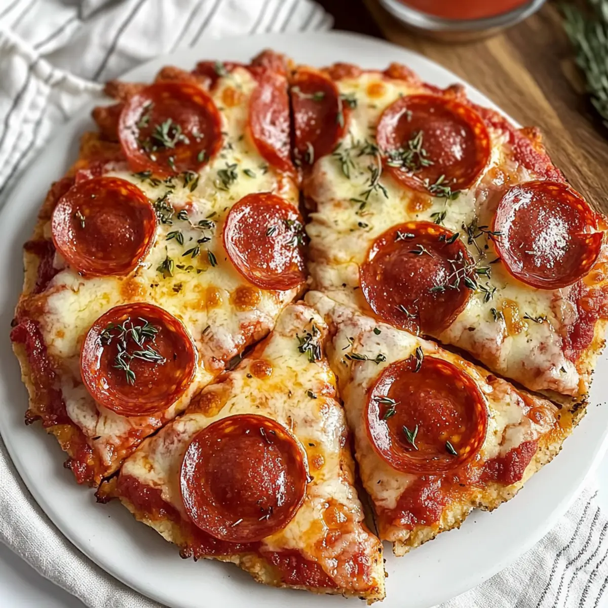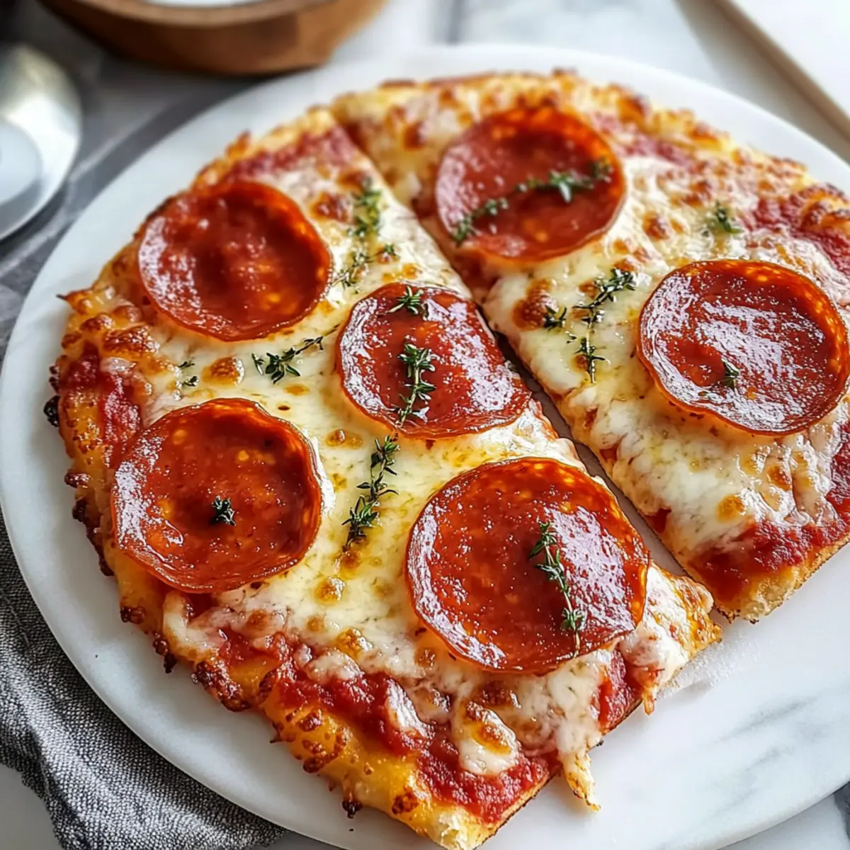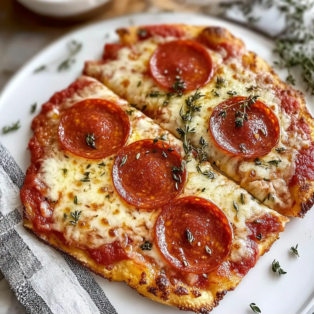 Eines Abends saß ich mit einer Gruppe von Freunden zusammen, hungrig nach etwas Leckerem, aber ohne die Zeit, um einen traditionellen Pizzateig vorzubereiten. Der Gedanke an einen Klassiker kam mir: Wie wäre es mit einem Klassischen Heißluftfritteusen-Hüttenkäse-Pizzateig? Diese geniale Kombination aus Hüttenkäse und Mehl wird im Handumdrehen zu einer knusprigen Pizza, die nicht nur schnell zubereitet ist, sondern auch jede Menge Protein bietet. Perfekt für spontane Dinnerpartys oder als schnelles Abendessen nach einem langen Tag – und das Beste daran? Du kannst die Beläge ganz nach deinem Geschmack anpassen. Neugierig geworden, wie dieses Rezept deinen Alltag in der Küche erleichtern kann? Lass uns gemeinsam loslegen! Warum ist dieser Pizzateig so besonders? Einfachheit: Der Rezeptprozess ist problemlos und benötigt nur grundlegende Kochfähigkeiten, sodass jeder sofort beginnen kann. Hoher Proteingehalt: Der Hüttenkäse verleiht der Pizza nicht nur Geschmack, sondern auch eine Extraportion Protein, was sie zu einer gesunden Wahl macht. Vielfältige Anpassungsmöglichkeiten: Ob mit klassischem Pepperoni oder einer bunten Gemüseauswahl – die Toppings lassen sich ganz nach deinem Belieben gestalten. Schnell und praktisch: Bereite deine Pizza in weniger als 30 Minuten zu – ideal für Abendessen unter der Woche. Knusprige Textur: Der Heißluftfrittierer sorgt dafür, dass der Boden wunderbar knusprig wird, während das Innere zart bleibt. Probiere auch unsere für mehr kreative Pizzabeläge aus! Klassischer Heißluftfritteusen-Hüttenkäse-Pizzateig Zutaten • Entdecke, welche Zutaten du benötigst, um diesen leckeren Pizzateig zuzubereiten! Für den Teig • Hüttenkäse – verleiht feuchte und proteinreiche Basis; verwende jede Art, wobei vollfett für mehr Geschmack sorgt. • Mehl – bildet die Struktur des Teigs; Allzweckmehl funktioniert am besten. • Backpulver – lässt den Teig leicht aufgehen und sorgt für eine luftige Textur. • Knoblauchpulver – fügt dem Teig zusätzlichen Geschmack hinzu, was das Gesamtprofil der Pizza verbessert. Für die Belag • Pizzasoße – dient als Grundlage für deine Beläge; Rao’s Homemade wird empfohlen, aber jede bevorzugte Marke ist in Ordnung. • Mozzarella-Käse – schmilzt wunderbar und sorgt für Cremigkeit; passe die Menge nach deinem Geschmack an. • Pepperoni – klassischer Belag für zusätzlichen Geschmack; kann gegen beliebige andere Beläge ausgetauscht werden. Mit diesem Klassischen Heißluftfritteusen-Hüttenkäse-Pizzateig bereitest du im Handumdrehen ein köstliches Essen zu! Schritt-für-Schritt-Anleitung für Klassischer Heißluftfritteusen-Hüttenkäse-Pizzateig Step 1: Hüttenkäse pürieren Beginne damit, 1 Tasse Hüttenkäse in einem Mixer zu pürieren, bis er eine glatte, einheitliche Konsistenz erreicht. Dies sollte etwa 30–60 Sekunden dauern. Achte darauf, dass keine Klumpen zurückbleiben, da dies die Textur des Klassischen Heißluftfritteusen-Hüttenkäse-Pizzateigs beeinträchtigen könnte. Step 2: Trockene Zutaten mischen In einer großen Schüssel vermischt du 1 1/4 Tassen Allzweckmehl, 1/2 Teelöffel Backpulver und 1/4 Teelöffel Knoblauchpulver. Rühre die Zutaten gut um, bis sie gleichmäßig verteilt sind. Diese Kombination sorgt für den perfekten Grundteig, der den knusprigen Charakter deiner Pizza ermöglicht. Step 3: Teig herstellen Integriere nun den pürierten Hüttenkäse in die trockenen Zutaten. Mische alles gut mit einem Löffel oder einem Teigschaber, bis ein lockerer, krümeliger Teig entsteht. Wenn er zu trocken erscheint, füge einen Spritzer Wasser hinzu, um die gewünschte Konsistenz zu erreichen. Step 4: Teig kneten Lege den Teig auf eine leicht bemehlte Arbeitsfläche und knete ihn für 1–2 Minuten. Du möchtest einen glatten, elastischen Teig erzielen. Achte darauf, dass er nicht zu trocken oder krümelig bleibt, um eine angenehme Textur beim Backen zu sichern. Step 5: Teig ausrollen Rolle den Teig oder forme ihn von Hand zu einem Kreis von etwa 15 cm Durchmesser. Diese Form wird in den Heißluftfritteusen-Korb passen und gleichmäßig garen. In der Zwischenzeit solltest du den Heißluftfritteus vorheizen auf 180 °C (360 °F), damit der Teig gleichmäßige Hitze erhält. Step 6: Teig in die Heißluftfritteuse legen Lege den geformten Teig vorsichtig in den Korb deiner Heißluftfritteuse. Verteile anschließend 3 Esslöffel Pizzasoße gleichmäßig über dem Teig. Es ist wichtig, die Soße gleichmäßig zu platzieren, um eine saftige Basis für deine Pizza zu schaffen. Step 7: Beläge hinzufügen Streue 4 Esslöffel Mozzarella-Schinken über die Pizzasoße und füge dann 5 Scheiben Pepperoni hinzu. Diese Kombination sorgt für ein klassisches Geschmacksprofil. Du kannst die Beläge je nach Vorliebe variieren, um deinem Klassischen Heißluftfritteusen-Hüttenkäse-Pizzateig deine persönliche Note zu verleihen. Step 8: Pizzateig backen Setze den Korb wieder in die Heißluftfritteuse ein und backe die Pizza bei 180 °C (360 °F) für 15–20 Minuten. Behalte die Pizza im Auge – sie sollte goldbraun und blubbernd aussehen, wenn sie fertig ist. Step 9: Abkühlen und Servieren Lass die Pizza nach dem Backen für 5–10 Minuten abkühlen. Dies hilft, die Slices einfacher zu schneiden und verhindert, dass sie auseinanderfallen. Nach dem Abkühlen kannst du deine köstliche Pizza in Stücke schneiden und sofort servieren. Variationen & Alternativen Personalisiere dein Pizzaerlebnis und entdecke die Vielfalt, die dir diese Rezeptvariationen bieten! Vegetarisch: Tausche Pepperoni gegen Zucchini und Paprika für einen bunten und gesunden Belag. Verwandle deine Pizza in eine geschmackvolle Gemüseeinheit – ein Genuss für alle Freunde der fleischfreien Küche! Laktosefrei: Ersetze Mozzarella durch eine pflanzliche Käsealternative. Dank dieser Umstellung kannst du trotzdem den schmelzenden Genuss genießen, ohne auf Laktose zu stoßen. Scharf: Füge einige Jalapeñ