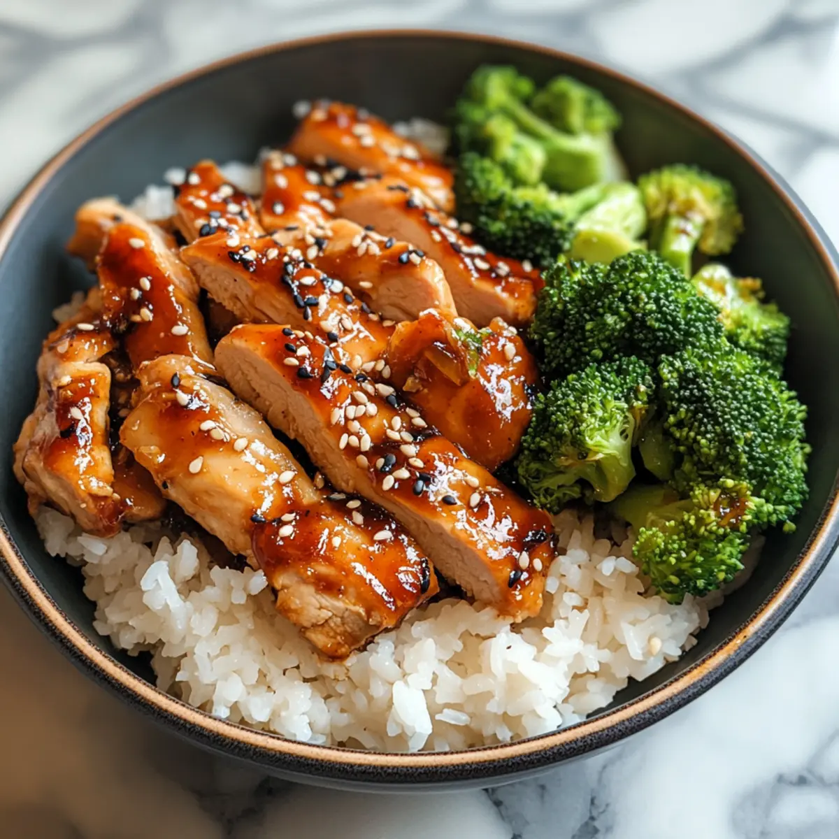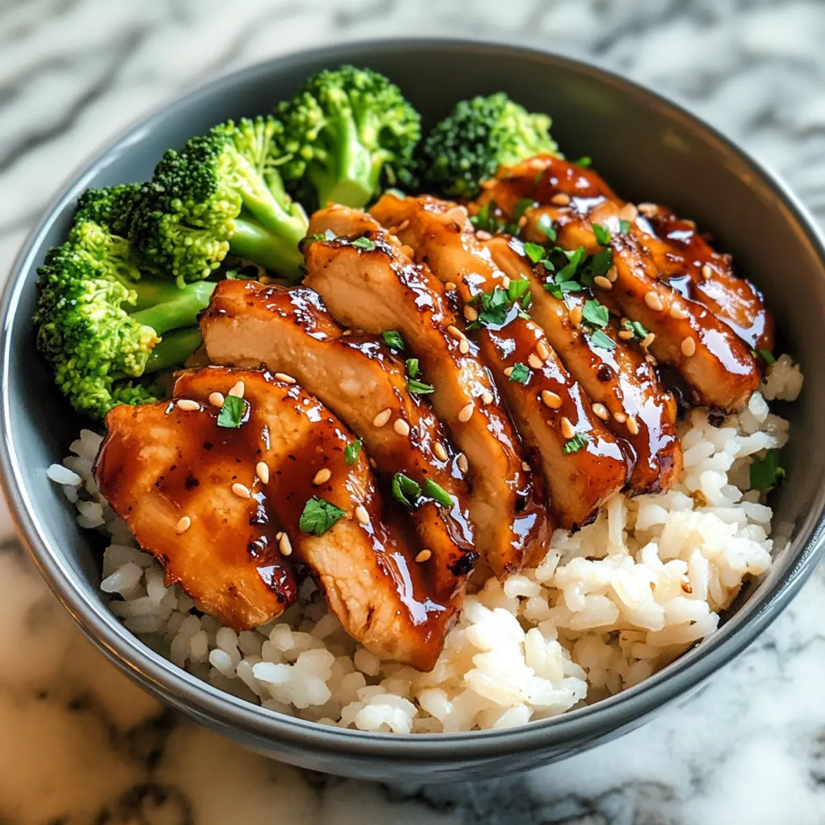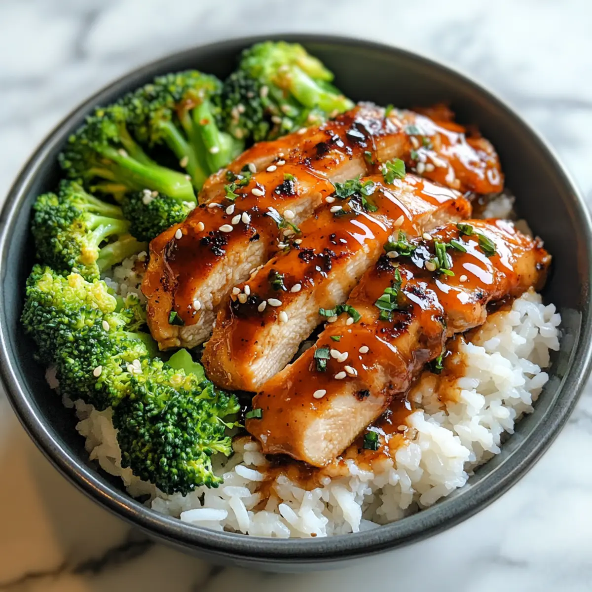 Eines der besten Gefühle, die ich beim Kochen habe, ist das Aroma, das durch die Küche weht, während ich all die frischen Zutaten zusammensetze. Diese Klebrigen Hähnchenschalen sind das perfekte Beispiel für ein Gericht, das süß, herzhaft und leicht scharf zugleich ist. Mit zartem Hähnchen, das in einer glänzenden, knoblauchigen Sauce glasiert wird und auf warmem Klebreis sowie ballaststoffreichem Brokkoli serviert wird, ist dieses Rezept nicht nur schnell zubereitet, sondern erfüllt auch alle Ihre Anforderungen an eine ausgewogene Ernährung. Der genussvolle Mix aus Aromen und Texturen wird sowohl Ihre Geschmacksknospen erfreuen als auch Ihre Hebel für den nächsten Wochenend-Mahlzeitenplan anregen. Wer kann da schon widerstehen? Neugierig, wie Sie dieses köstliche Gericht zubereiten können? Warum werden Sie dieses Rezept lieben? Einfachheit: Die Zubereitung ist kinderleicht, sodass Sie mit wenigen Handgriffen eine ausgewogene Mahlzeit zaubern können. Herzhafter Geschmack: Die Kombination aus süßem Honig und würzigem Knoblauch verleiht diesem Gericht eine umwerfende Tiefe. Flexibilität: Ob mit Hähnchen oder als vegetarische Variante mit Tofu – dieses Rezept passt sich Ihren Vorlieben an. Nährstoffreich: Dank der ballaststoffreichen Zutaten genießen Sie ein gesundes Essen, das Sie lange sättigt. Schnell zubereitet: Ideal für hektische Tage – nach nur 30 Minuten stehen die Klebrigen Hähnchenschalen auf dem Tisch. Ob für ein schnelles Abendessen oder Meal Prep, diese Schalen werden sicherlich zum neuen Favoriten bei Ihnen und Ihrer Familie! Klebrige Hähnchenschalen Zutaten • Hier sind die leckeren Zutaten, die Sie benötigen, um köstliche Klebrige Hähnchenschalen zu zaubern! Für den Reis Ungekochter Reis – Die Basis für dieses Gericht, die Kohlenhydrate liefert; probieren Sie Jasmin- oder Basmati-Reis für verschiedene Aromen. Für das Gemüse Brokkoli – Bringt Farbe, Nährstoffe und Ballaststoffe; kleine Röschen garen schnell und gleichmäßig. Für das Hähnchen Hähnchenbrust – Die Hauptproteinquelle, die die Mahlzeit sättigend und nahrhaft macht; verwenden Sie alternativ ohne Haut und Knochen für mehr Geschmack. Für das Kochen Olivenöl – Wird zum Braten des Hähnchens verwendet und liefert gesunde Fette; kann durch Raps- oder Avocadoöl ersetzt werden. Salz & Pfeffer – Grundgewürze, die den Geschmack verstärken. Für die Gewürzmischung Chilipulver, Geräuchertes Paprika, Zwiebelpulver, Oregano – Würzmischung, die die Geschmacksfülle verbessert; passen Sie die Menge nach Geschmack an, um mehr Schärfe hinzuzufügen. Für die Soße Sojasoße – Liefert Umami und Salzigkeit; für eine glutenfreie Version verwenden Sie Tamari. Honig – Natürlicher Süßstoff für die klebrige Soße; alternativ kann Ahornsirup als vegane Option genutzt werden. Reisessig – Fügt Säure hinzu, um die Aromen auszubalancieren; Apfelessig ist eine mildere Alternative. Knoblauch – Fein gehackt für ein robustes Aroma; frischer Knoblauch sorgt für die besten Ergebnisse. Sriracha – Bringt Würze und Geschmack sowohl in die Soße als auch in die Mayonnaise; nach Belieben anpassen oder ganz weglassen. Sesamöl – Verleiht der klebrigen Soße einen nussigen Geschmack; bei Bedarf kann Pflanzenöl verwendet werden. Gemahlener Ingwer – Fügt der Soße Wärme hinzu; frischer Ingwer kann für einen intensiveren Geschmack verwendet werden. Pfeilwurzelmehl – Verdickungsmittel für die Soße; alternativ kann Maisstärke im gleichen Verhältnis verwendet werden. Für die Mayonnaise Mayonnaise – Basis für die würzige Mayo, die Cremigkeit hinzufügt; verwenden Sie vegane Mayo für eine pflanzliche Variante. Sesamsamen – Zum Garnieren, sorgt für einen knusprigen Biss; optional und nach Geschmack. Step-by-Step Instructions für Klebrige Hähnchenschalen Step 1: Reis zubereiten Kochen Sie den ungekochten Reis gemäß der Packungsanleitung in einem Topf mit leicht gesalzenem Wasser. Dies dauert in der Regel etwa 15-20 Minuten, bis der Reis weich und klebrig ist. Rühren Sie gelegentlich um, um ein Anhaften zu vermeiden. Sobald der Reis gar ist, nehmen Sie ihn vom Herd und lassen Sie ihn abgedeckt ruhen. Step 2: Brokkoli vorbereiten Während der Reis kocht, schneiden Sie den Brokkoli in kleine Röschen. Diese sollten gleichmäßig und nicht zu groß sein, sodass sie schnell garen. Bringen Sie einen Topf mit Wasser zum Kochen und blanchieren Sie den Brokkoli für etwa 3-4 Minuten, bis er hellgrün und zart ist. Anschließend abgießen und beiseite stellen. Step 3: Hähnchen vorbereiten Nehmen Sie die Hähnchenbrust und schneiden Sie sie in gleichmäßige Streifen. Würzen Sie das Hähnchen großzügig mit Salz, Pfeffer, Paprika, Chilipulver, Zwiebelpulver und Oregano, sodass alle Stücke gut bedeckt sind. Lassen Sie es für 5 Minuten ruhen, damit die Gewürze einziehen können. Step 4: Hähnchen anbraten Erhitzen Sie in einer großen Pfanne bei mittlerer Hitze 1-2 Esslöffel Olivenöl. Fügen Sie die Hähnchenstreifen hinzu und braten Sie sie für etwa 6-8 Minuten an, bis sie goldbraun und vollständig durchgegart sind. Achten Sie darauf, die Stücke während des Bratens gelegentlich zu wenden, damit sie gleichmäßig bräunen. Step 5: Brokkoli dämpfen oder anbraten Wenn das Hähnchen fast fertig ist, fügen Sie den blanchierten Brokkoli hinzu und sautieren Sie ihn für weitere 2-3 Minuten, bis er zart ist und leicht angebraten wird. Dies verstärkt den Geschmack und das Aroma des Gemüses. Legen Sie das Hähnchen und Brokkoli danach beiseite. Step 6: Klebrige Soße zubereiten In einer kleinen Schüssel vermischen Sie die Sojasoße, Honig, Reisessig, gehackten Knoblauch, Sriracha, Sesamöl und gemahlenen Ingwer. Mischen Sie alles gut, bis eine homogene Soße entsteht. Gießen Sie die Soße in die Pfanne zum Hähnchen und bringen Sie sie bei niedriger Hitze zum Köcheln. Lassen Sie die Soße für etwa 3-4 Minuten köcheln, bis sie dickflüssig wird und das