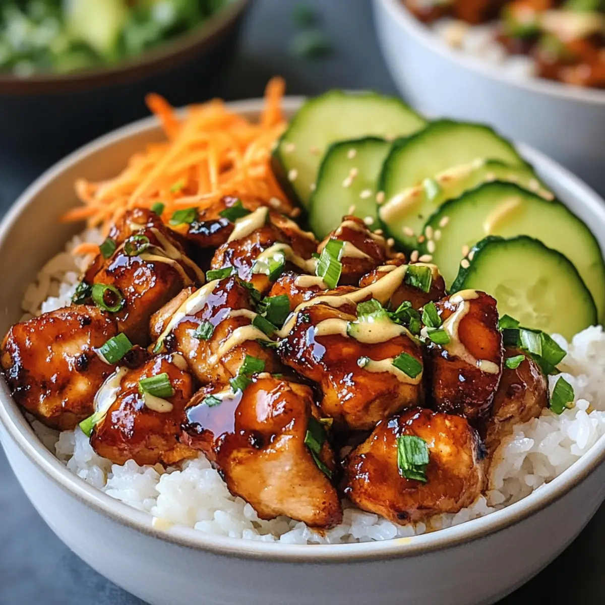 „So, was essen wir heute Abend?“ fragen meine Kinder in perfektem Einvernehmen, und ich sehe in die Gesichter der hungrigen kleinen Menschen. Es gibt Momente, die rufen nach einer unkomplizierten Lösung – genau wie diese Klebrigen Hähnchenreis-Schalen mit scharfer Mayo! Diese Schalen vereinen süßes, herzhaftes und würziges Aroma in einem einzigen Gericht und sind das perfekte Beispiel für ein schnelles und anpassbares Essen, das jeder mag. Mit einer köstlichen Marinade und zartem Hähnchen, serviert auf fluffigem Jasminreis, sind sie nicht nur einfach zuzubereiten, sondern auch für verschiedene Ernährungsvorlieben geeignet. Und das Beste? Sie können mit beliebigen Toppings personalisiert werden, sodass jeder den perfekten Bissen findet. Wer kann da schon widerstehen? Finden wir heraus, wie einfach es ist, diese köstliche Mischung zu zaubern! Warum werden diese Schalen Ihre Familie begeistern? Einfachheit: Die Zubereitung dieser Klebrigen Hähnchenreis-Schalen könnte nicht einfacher sein! Mit nur wenigen Grundzutaten und klaren Schritten sind Sie in kürzester Zeit am Ziel. Vielseitigkeit: Egal, ob Sie Vegetarier sind oder glutenfrei leben, dieses Rezept lässt sich leicht anpassen! Nutzen Sie Tofu oder Blumenkohlreis, um Ihren Bedürfnissen gerecht zu werden, und kreieren Sie eine köstliche Variante. Aromen zum Verlieben: Die Kombination aus süßer Sojasauce, scharfem Sriracha und frischen Gewürzen erzeugt ein Geschmackserlebnis, das den Gaumen verzaubert und garantiert für Begeisterung sorgt. Familienfreundlich: Eltern werden es lieben, dass dieses Gericht bei Kindern gut ankommt – einfach, nahrhaft und lecker! Helfen Sie Ihren Kleinen, beim Zusammenstellen ihrer eigenen Schalen mit verschiedenen Toppings, sodass jeder seinen perfekten Genuss findet. Schnell zubereitet: Ideal für geschäftige Wochentage, da Sie die Zutaten vorbereiten und die Schalen in weniger als 30 Minuten auf den Tisch bringen können. Klicken Sie hier für weitere schnelle Rezepte und inspirieren Sie Ihren Speiseplan! Klebrige Hähnchenreis-Schalen Zutaten Für das Hähnchen • Hähnchenschenkel oder -brust – Saftige Proteinquelle; Schenkel sind saftiger, während Brüste magerer sind. • Sojasauce – Sorgt für tiefen Umami-Geschmack und Salzigkeit; für eine glutenfreie Option Tamari verwenden. • Honig & Brauner Zucker – Zusammen kreieren sie eine klebrige, karamelisierte Glasur; Süße nach Geschmack anpassen. • Reisessig – Bringt die Marinade mit Säure in Balance; kann durch Apfelessig ersetzt werden. • Sesamöl – Fügt einen nussigen, gerösteten Geschmack hinzu; optional für eine leichtere Version. • Knoblauch & Ingwer – Frische Aromastoffe, die die Geschmacksfülle der Glasur verstärken. • Maisstärke – Umhüllt das Hähnchen für Knusprigkeit; wichtig für die Textur, daher nicht weglassen. • Pflanzenöl – Zum Anbraten des Hähnchens. Hoch erhitzbare Öle wie Raps- oder Traubenkernöl wählen. • Jasmin- oder Rundkornreis – Bietet eine klebrige Basis, die ideal ist, um die Aromen aufzunehmen. Für die scharfe Mayo • Mayonnaise – Bildet die Basis der scharfen Mayo; griechischer Joghurt kann für eine leichtere Variante verwendet werden. • Sriracha – Fügt der Mayo eine würzige, knoblauchige Note hinzu; nach gewünschtem Schärfegrad anpassen. • Zitronen- oder Limettensaft – Frischt die Reichhaltigkeit der Mayo auf; frisch ist am besten. Optionale Toppings • Gehobelte Gurken – Für Knackigkeit und Frische; passen gut zu den Aromen. • Geriebene Karotten – Fügen Farbe und weitere Nährstoffe hinzu. • Avocado – Cremige Komponente für einen geschmeidigen Biss. • Puten-Speckstücke – Für einen herzhaften Crunch. • Nori-Streifen – Für eine zusätzliche Umami-Note und Struktur. Diese Klebrigen Hähnchenreis-Schalen mit scharfer Mayo bieten Ihnen die Möglichkeit, ein schnelles und köstliches Abendessen zu kreieren, das sicher in Ihrer Familie beliebt sein wird! Schritt-für-Schritt-Anleitung für Klebrige Hähnchenreis-Schalen mit scharmer Mayo Step 1: Hähnchen marinieren Mischen Sie in einer großen Schüssel die Sojasauce, den Honig, den braunen Zucker, den Reisessig, das Sesamöl, den gehackten Knoblauch und den Ingwer. Fügen Sie die Hähnchenteile hinzu und stellen Sie sicher, dass sie gut bedeckt sind. Lassen Sie das Hähnchen mindestens 30 Minuten im Kühlschrank marinieren, um die Aromen zu intensivieren. Für einen intensiveren Geschmack können Sie es auch über Nacht marinieren. Step 2: Hähnchen für das Kochen vorbereiten Nachdem die Marinierzeit abgelaufen ist, nehmen Sie das Hähnchen aus der Marinade und lassen Sie die überschüssige Flüssigkeit abtropfen. Bestäuben Sie das marinierte Hähnchen leicht mit Maisstärke, bis es gleichmäßig beschichtet ist. Diese Beschichtung sorgt dafür, dass das Hähnchen beim Braten schön knusprig wird und die klebrige Glasur gut haftet. Step 3: Hähnchen braten Erhitzen Sie in einer großen Pfanne bei mittlerer bis hoher Hitze etwas Pflanzenöl, bis es schimmert. Fügen Sie das Hähnchen in die Pfanne hinzu und braten Sie es 6-8 Minuten lang, bis es goldbraun und durchgegart ist. Wenden Sie das Hähnchen regelmäßig, um eine gleichmäßige Bräunung zu gewährleisten und die Aromen der Klebrigen Hähnchenreis-Schalen optimal zu integrieren. Step 4: Glasur herstellen Gießen Sie die zurückbehaltene Marinade in die Pfanne, nachdem das Hähnchen gar ist. Lassen Sie die Mischung aufkochen und dann bei niedrigerer Hitze köcheln, bis sie eindickt und eine sirupartige Konsistenz erreicht. Rühren Sie die gehackten Frühlingszwiebeln und sesamförmige Samen ein, bevor Sie die Pfanne vom Herd nehmen. Diese Glasur wird dazu beitragen, dass Ihr Gericht seinen charakteristischen Glanz erhält. Step 5: Scharfe Mayo zubereiten In einer kleinen Schüssel kombinieren Sie die Mayonnaise, Sriracha, Zitronen- oder Limettensaft sowie optional Knoblauchpulver. Mischen Sie alles gu
