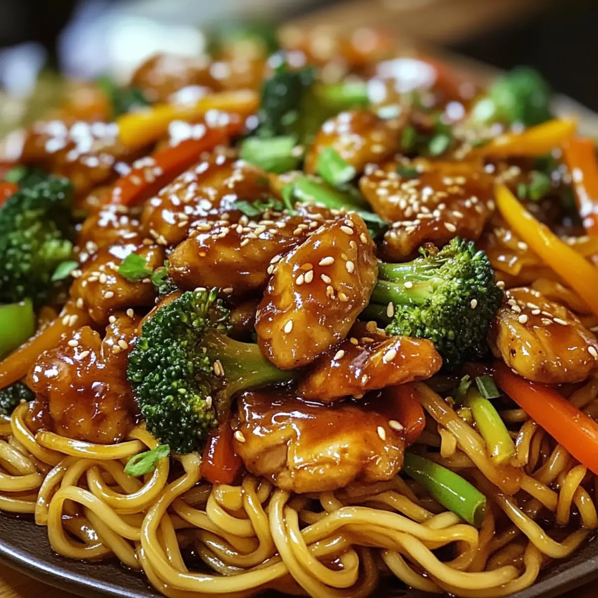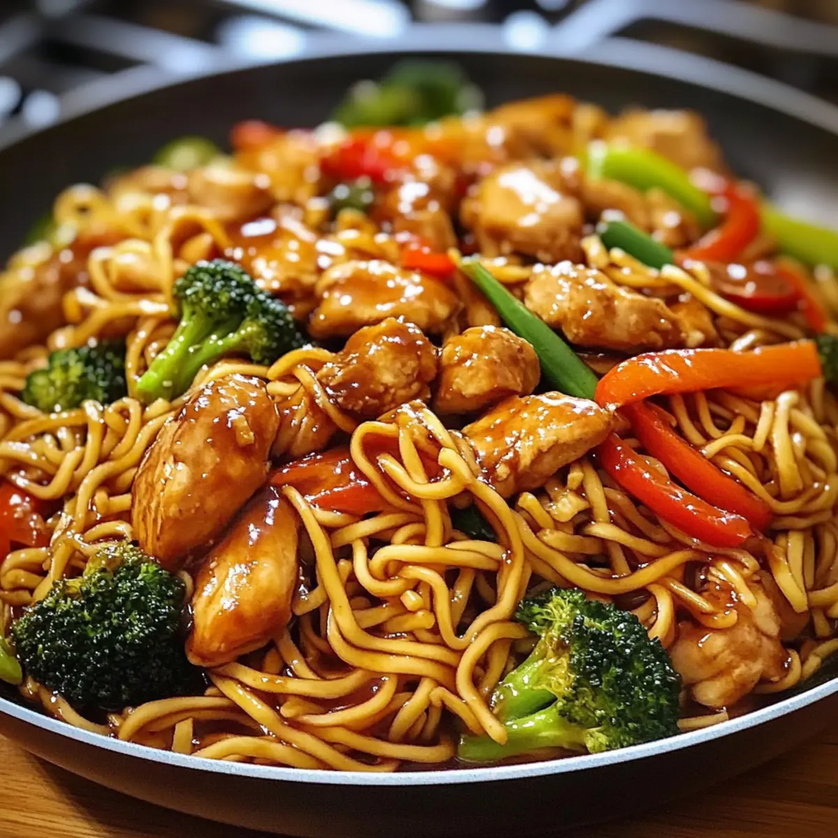 Eines Abends hörte ich, wie meine Nachbarn von einem neuen Lieblingsgericht schwärmten, und ich wusste sofort, dass ich nach ihren Geheimnissen suchen wollte. Die Rede war von Klebrigen Knoblauch-Hühnchen-Nudeln – einem Gericht, das sich perfekt für hektische Wochentage eignet, aber auch Gäste beeindruckt. Diese Kombination aus zartem Hühnchen, bissfesten Nudeln und knackigem Gemüse, umhüllt von einer glänzenden, süß-salzigen Sauce, wird sowohl dich als auch deine Liebsten begeistern. Ein besonderes Highlight dieser Rezeptur ist die Möglichkeit, sie glutenfrei zuzubereiten, was sie für mehr Menschen zugänglich macht. Und das Beste? Du kannst in kürzester Zeit ein köstliches, herzhaftes Essen auf den Tisch bringen! Neugierig, wie einfach es ist, diesen Genuss zu kreieren? Lass uns gleich loslegen! Warum wirst du dieses Rezept lieben? Einfachheit: Die Zubereitung der Klebrigen Knoblauch-Hühnchen-Nudeln ist kinderleicht und benötigt nur wenige Schritte. Selbst Kochanfänger werden ohne Probleme ein köstliches Ergebnis erzielen. Herzhafter Geschmack: Die perfekte Balance zwischen süßen und salzigen Aromen, die durch die Kombination von Honig und Sojasauce entsteht, wird dich überraschen und begeistern. Vielfalt: Ob mit Hühnchen, Tofu oder Garnelen – dieses Rezept lässt sich wunderbar anpassen, sodass jeder es nach seinem Geschmack genießen kann. Schnellige Zubereitung: In weniger als 30 Minuten darfst du dich auf ein schmackhaftes, frisches Gericht freuen, das ideal für hektische Abende ist. Crowd-Pleaser: Egal ob für die Familie oder für Gäste, dieses Gericht wird sicherlich für Begeisterung sorgen, denn es hat das Potenzial zur neuen Lieblingsspeise zu werden. Glutenfrei: Mit der Wahl von Tamari statt normaler Sojasauce kannst du ein glutenfreies Gericht genießen, das alle zufriedenstellt. Schau dir auch unsere anderen schnellen Rezepte an, die ebenfalls für abwechslungsreiche Abende sorgen! Klebrige Knoblauch-Hühnchen-Nudeln Zutaten Für das Hühnchen Hühnchenbrust – die Hauptproteinquelle, zart und saftig; kann für mehr Geschmack durch Hähnchenschenkel ersetzt werden. Sojasauce – sorgt für salzige Umami-Tiefe; verwende Tamari für eine glutenfreie Variante. Honig – verleiht Süße, die die herzhaften Aromen ausgleicht; kann für eine vegane Option durch Ahornsirup ersetzt werden. Knoblauch – liefert den unverzichtbaren aromatischen Geschmack; fein gehackt für schnelle Verarbeitung. Für die Sauce Reisessig – sorgt für die nötige Säure, um die Aromen aufzuhellen; Zitronensaft kann eine gute Alternative sein. Sesamöl – bringt Nussigkeit und hebt den Gesamtschmack hervor; bei Allergien vermeiden. Maisstärke – verdickt die Sauce und sorgt dafür, dass sie an den Nudeln haftet; kann durch Pfeilwurzmehl ersetzt werden. Für das Gemüse Gemüse (Karotte, Paprika, Brokkoli) – fügt Farbe, Crunch und Nährstoffe hinzu; kann nach Vorliebe mit anderen Gemüsesorten variiert werden. Für die Nudeln Nudeln (nach Wahl) – Grundlage des Gerichts; nutze Reisnudeln für eine glutenfreie Variante. Schritt-für-Schritt-Anleitung für Klebrige Knoblauch-Hühnchen-Nudeln Step 1: Zutaten vorbereiten Schneide zuerst das Hühnchen in dünne Streifen. Währenddessen den Knoblauch fein hacken, die Karotten julienne schneiden, die Paprika in dünne Scheiben und den Brokkoli in kleine Röschen schneiden. Koche die Nudeln in einem großen Topf mit kochendem Wasser, bis sie al dente sind, anschließend abgießen und zur Seite stellen. Step 2: Hühnchen marinieren Vermische in einer Schüssel das geschnittene Hühnchen mit Sojasauce, Honig und dem gehackten Knoblauch. Lasse die Marinade mindestens 15 bis 30 Minuten einziehen, damit die Aromen gut durchziehen können. Diese Zeit kannst du nutzen, um die Sauce für die Klebrigen Knoblauch-Hühnchen-Nudeln vorzubereiten. Step 3: Sauce zubereiten In einer separaten Schüssel verrühre Sojasauce, Honig oder Ahornsirup, Reisessig, Sesamöl, den restlichen Knoblauch, Maisstärke und etwas Wasser oder Brühe, bis eine glatte Mischung entsteht. Diese Sauce wird später dafür sorgen, dass die Nudeln glänzend und klebrig werden, also achte darauf, keine Klümpchen zu hinterlassen. Step 4: Hühnchen anbraten Erhitze in einem Wok oder einer großen Pfanne bei mittlerer bis hoher Hitze etwas Öl. Füge das mariniertes Hühnchen hinzu und brate es etwa 4 bis 5 Minuten lang an, bis es goldbraun und durchgegart ist. Entferne das Hühnchen anschließend aus der Pfanne und stelle es beiseite, während du das Gemüse zubereitest. Step 5: Gemüse anbraten Gib zuerst die Karotten und den Brokkoli in die heiße Pfanne und brate sie 1 bis 2 Minuten lang an, bis sie leicht weich, aber noch knackig sind. Füge die Paprika hinzu und gare alles zusammen weiter, bis das Gemüse zart und bunt ist. Überprüfe die Konsistenz der Gemüsemischung und stelle sicher, dass sie vor dem nächsten Schritt frisch aussieht. Step 6: Nudeln und Sauce kombinieren Bringe das angebratene Hühnchen zurück in die Pfanne und füge die gekochten Nudeln hinzu. Gieße die vorbereitete Sauce gleichmäßig über die Mischung und beginne, alles sanft zu vermengen. Koche alles bei mittlerer Hitze für weitere 1 bis 2 Minuten, bis die Sauce dicklich wird und die Nudeln glänzend überzieht. Step 7: Servieren und garnieren Schmecke die Klebrigen Knoblauch-Hühnchen-Nudeln ab und passe das Würzen nach Belieben an. Richte das Gericht heiß auf Tellern an und garniere es unmittelbar vor dem Servieren mit Sesamsamen und geschnittenen Frühlingszwiebeln. Diese einfache Garnierung hebt das Gericht noch weiter hervor und sorgt für einen appetitlichen Anblick. Aufbewahrungstipps für Klebrige Knoblauch-Hühnchen-Nudeln Raumtemperatur:: Vermeide es, die Klebrigen Knoblauch-Hühnchen-Nudeln bei Raumtemperatur aufzubewahren, um das Risiko von Lebensmittelverderb zu verringern. Kühlschrank:: Bewahre die Reste der Nudeln in einem luftdichten Behälter im Kühlschrank a