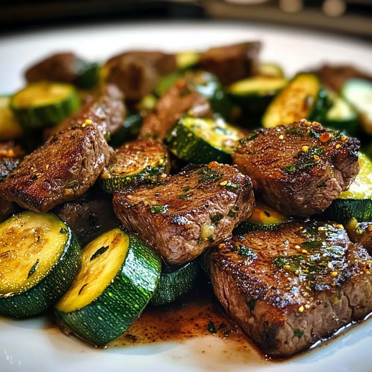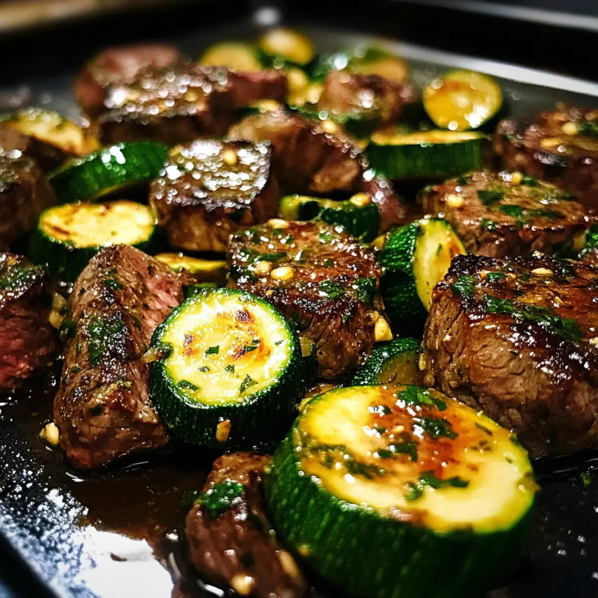 Hast du schon einmal die Magie eines schnellen, köstlichen Abendessens erlebt? Mit unseren Knoblauchbuttersteakbissen mit Zucchini wird dein Alltag zum kulinarischen Abenteuer! In nur 15 Minuten zauberst du ein Gericht, das sowohl gesund als auch voller Geschmack ist – perfekt für die stressigen Wochentage. Dieser low-carb Snack ist ideal für alle, die sich nach einer befriedigenden Mahlzeit sehnen, ohne stundenlang in der Küche zu stehen. Die zarten Steakbissen, umhüllt von einer aromatischen Knoblauchbutter, vereinen sich mit knackigem Zucchini und versprechen ein Geschmackserlebnis, das deine Sinne verführt. Neugierig, wie du diese Gaumenfreude für dich entdecken kannst? Warum werden dich diese Steakbissen begeistern? Schnelligkeit: In nur 15 Minuten bereit, perfekt für hektische Wochentage! Wunderbarer Geschmack: Die Kombination aus butterierter Knoblauchsoße und zartem Steak sorgt für eine Explosion an Aromen. Vielseitigkeit: Ersetze das Zucchini ganz einfach durch deine Lieblingsgemüse wie Brokkoli oder Paprika. Nahrhaft: Low-carb und ideal für eine keto-freundliche Ernährung! Genieße das leckere Essen ohne schlechtes Gewissen. Inspirierende Einflüsse: Die Rezeptur spiegelt die herzliche, unkomplizierte Küche aus Texas wider – für echte Genussmomente. Knoblauchbuttersteakbissen Zutaten Für die Steakbissen: • Steak (Sirloin, Ribeye oder New York Strip) – Die Hauptproteinquelle für einen reichen Geschmack; flank steak ist eine gute Alternative. • Zucchini – Fügt Frische und ein low-carb Element hinzu; kann durch Brokkoli oder Paprika ersetzt werden. • Olivenöl – Wichtig zum Anbraten des Steaks; kann durch Pflanzenöl ersetzt werden. • Butter – Knackiger Geschmacksträger in der Knoblauchbutter; eine Substitution ist nicht empfohlen. • Knoblauch – Aromatischer Geschmack; frisch ist ideal, aber Knoblauchpulver kann eine schnelle Option sein. • Salz und Pfeffer – Grundgewürze, die alle Aromen intensivieren; nach Geschmack anpassen. • Frische Petersilie (optional) – Zum Garnieren, bringt Farbe und Frische; alternative Kräuter wie Schnittlauch sind ebenfalls möglich. Hinweis: Diese Knoblauchbuttersteakbissen sind perfekt für ein schnelles, herzhaftes Abendessen! Schritt-für-Schritt-Anleitung für Knoblauchbuttersteakbissen mit Zucchini Step 1: Steak vorbereiten Patte die Steakwürfel mit einem Küchentuch trocken und würze sie großzügig mit Salz und Pfeffer. Dies hilft, die feuchte Oberfläche zu entfernen und garantiert ein besseres Anbraten. Stelle sicher, dass das Steak gleichmäßig gewürzt ist, damit jede Bissstufe den vollen Geschmack der Knoblauchbuttersteakbissen entfaltet. Step 2: Steak anbraten Erhitze eine große Pfanne bei mittelhoher Hitze und füge 1 Esslöffel Olivenöl hinzu. Wenn das Öl schimmert, gib die Steakbissen hinein und brate sie 1-2 Minuten pro Seite an, bis sie eine goldbraune Kruste entwickeln. Achte darauf, nicht zu viele Stücke auf einmal in die Pfanne zu geben, um das perfekte Anbraten zu gewährleisten. Danach die Steakbissen auf einen Teller legen und beiseite stellen. Step 3: Knoblauchbutter zubereiten Reduziere die Hitze der Pfanne auf mittel-niedrig und füge 2 Esslöffel Butter hinzu. Lass die Butter schmelzen, bevor du den fein gehackten Knoblauch hinzufügst. Rühre die Masse für etwa 30 Sekunden, bis sie aromatisch und leicht goldbraun wird. Achte darauf, den Knoblauch nicht anbrennen zu lassen, da er sonst bitter wird und den Geschmack der Knoblauchbuttersteakbissen beeinträchtigen kann. Step 4: Zucchini kochen Gib die in Scheiben geschnittene Zucchini in die Pfanne und rühre alles gut um, sodass die Zucchini mit der aromatischen Knoblauchbutter überzogen wird. Koche die Zucchini für 3-5 Minuten, bis sie zart und doch noch leicht knackig ist. Dies sorgt dafür, dass die Gemüsekomponente frisch und schmackhaft bleibt. Step 5: Zutaten kombinieren Füge die zuvor angebratenen Steakbissen zurück in die Pfanne zu der Zucchini hinzu. Mische alles vorsichtig in der Pfanne, um sicherzustellen, dass die Steakbissen gleichmäßig mit der Knoblauchbutter und den Zucchini umhüllt sind. Lasse das Gericht für weitere 1-2 Minuten ziehen, damit die Aromen gut verschmelzen und die Steakbissen warm werden. Step 6: Servieren Nehme die Pfanne vom Herd und garniere die Knoblauchbuttersteakbissen mit frisch gehackter Petersilie, falls gewünscht. Serviere die köstlichen Steakbissen sofort direkt aus der Pfanne oder auf einem Teller. Genieße diese einfache und geschmackvolle Mahlzeit, die perfekt für einen schnellen Abendessen ist! Was passt zu Knoblauchbuttersteakbissen mit Zucchini? Genieße diese köstlichen Steakbissen und entdecke die perfekten Begleiter für ein unvergessliches Abendessen. Cremige Blumenkohlpüree: Dieses samtige Püree ist eine hervorragende, low-carb Ergänzung, die den reichen Geschmack des Steaks wunderbar ergänzt. Die Leichtigkeit des Blumenkohlpürees harmoniert perfekt mit der herzhaften Knoblauchbutter. Frischer grüner Salat: Ein knackiger, leichter Salat mit saisonalem Gemüse sorgt für einen erfrischenden Kontrast zu den herzhaften Steakbissen. Ein leichter Vinaigrette-Dressing bringt zusätzliche Säure und Frische ins Spiel. Zitronenbutter-Brokkoli: Gedämpfter Brokkoli, verfeinert mit Zitronenbutter, bietet eine spritzige Note zu den Steakbissen. Ein gesundes, farbenfrohes Gemüse, das die Geschmäcker perfekt abrundet. Geröstete Paprika: Die süße, rauchige Note gerösteter Paprika ergänzt die Aromen der Knoblauchbuttersteakbissen. Sie bringen sowohl Textur als auch geschmackliche Tiefe zu deinem Teller. Keto-freundliche Blumenkohl-„Reis“: Blumenkohlreis bietet die perfekte Grundlage für die steakbissen, ohne viele Kohlenhydrate. Genießen Sie diese kreative und gesunde Alternative als Basisgericht. Kalter Weißwein: Ein trockener Sauvignon Blanc ergänzt die Aromen der Steakbissen und Zucchini hervorragend. Seine frische Säure und die fruchtigen N