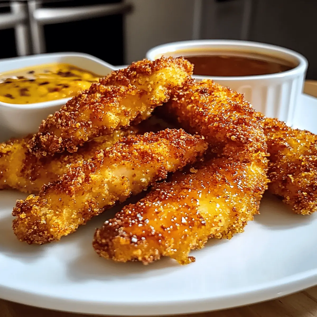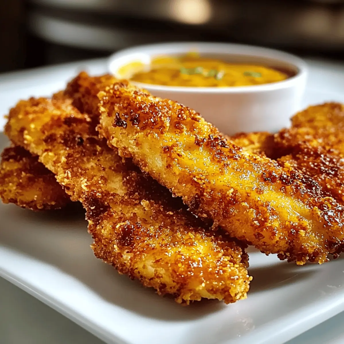 Als ich das erste Mal selbstgemachte knusprige Hähnchenstreifen mit Honig-Senf-Dip zubereitete, war es wie eine kleine Geschmacksexplosion in meiner Küche. Die Kombination aus der goldbraunen, knusprigen Oberfläche und dem süß-sauren Dip brachte nicht nur meine Familie zum Staunen, sondern war auch ein absoluter Publikumsliebling bei unseren Abenden mit Freunden. Diese Rezeptur für crispy chicken strips trägt nicht nur das Versprechen einer schnellen und einfachen Zubereitung in sich, sondern lässt sich auch ganz nach Lust und Laune anpassen – sei es mit verschiedenen Marinaden oder Dips. Perfekt für eine gesellige Runde oder als herzhaftes Abendessen! Neugierig geworden, wie einfach es ist, diese Köstlichkeit selbst zu zaubern? Warum diese Hähnchenstreifen begeistert? Einfachheit: Die Zubereitung ist unkompliziert und benötigt nur grundlegende Kochfähigkeiten, perfekt für jeden, der wenig Zeit hat. Köstlicher Geschmack: Die wundervolle Kombination aus zartem Hähnchen und dem süß-sauren Honig-Senf-Dip wird jeden Gaumen erfreuen. Vielseitigkeit: Anpassungen sind mühelos möglich – experimentiere mit verschiedenen Marinaden oder Dip-Variationen und entdecke neue Geschmacksrichtungen! Familienfreundlich: Ideal für sowohl Kinder als auch Erwachsene; diese Hähnchenstreifen sind ein Hit bei gemeinsamen Abendessen oder Partys mit Freunden. Schnelle Zubereitungszeit: In wenigen Minuten kannst du diese köstlichen Streifen auf den Tisch bringen, perfekt für einen stressfreien Abend. Probier dazu auch mal unseren Gurkensalat Mit Garnelen als erfrischende Beilage! Zutaten für Knusprige Hähnchenstreifen Für das Hähnchen Hähnchenbrustfilets – Hauptproteinsource; verwende frische oder aufgetaute Stücke für besten Geschmack. Eier – Dienen als Bindemittel, damit die Panade am Hähnchen haftet; Zimmertemperatur sorgt für bessere Adhäsion. Gewürze (Salz, Pfeffer, Paprika) – Steigern den Geschmack; passe die Würze nach eigenem Vorlieben an. Für die Panade Paniermehl oder Panko – Sorgt für die Knusprigkeit; Panko bietet eine luftigere Textur, benutze normale Semmelbrösel im Notfall. Für den Dip Honig – Fügt Süßheit hinzu; passe im Verhältnis zum Senf an. Agavendicksaft ist eine vegane Alternative. Dijon-Senf – Verleiht dem Dip Würze und Tiefe; für einen schärferen Geschmack verwende scharfen Senf. Für das Frittieren Pflanzenöl – Zum Frittieren; wähle ein Öl mit hohem Rauchpunkt wie Sonnenblumen- oder Rapsöl. Diese knusprigen Hähnchenstreifen mit Honig-Senf-Dip sind einfach zuzubereiten und werden deine Familie begeistern! Schritt-für-Schritt-Anleitung für Knusprige Hähnchenstreifen mit Honig-Senf-Dip Step 1: Hähnchen vorbereiten Wasche die Hähnchenbrustfilets gründlich und tupfe sie mit Küchenpapier trocken. Schneide die Filets anschließend in gleichmäßige Streifen von etwa 2–3 cm Breite, damit sie gleichmäßig garen. Achte darauf, dass die Stücke nicht zu dick sind, um die Knusprigkeit der Hähnchenstreifen zu gewährleisten. Step 2: Marinieren Gib die Hähnchenstreifen in eine große Schüssel und würze sie mit Salz, Pfeffer und Paprika. Mische alles gut durch, sodass die Gewürze gleichmäßig verteilt sind. Lasse die Marinade mindestens 15 Minuten einwirken, damit die Aromen in das Fleisch einziehen und für ein würziges Ergebnis sorgen. Step 3: Panade vorbereiten In einer separaten Schüssel schlägst du die Eier auf und verquirlst sie gründlich. Nimm nun die marinierten Hähnchenstreifen und tauche jeden Streifen zuerst in das Ei, damit die Panade besser haftet. Danach wälze die Streifen gründlich in Paniermehl oder Panko, bis sie gleichmäßig bedeckt sind. Step 4: Frittieren Erhitze in einer großen Pfanne etwa 1 cm hoch Pflanzenöl bei mittlerer Hitze. Wenn das Öl heiß ist (ideal sind etwa 180 °C), gib die panierten Hähnchenstreifen vorsichtig hinein. Brate die Streifen jeweils 4–5 Minuten pro Seite, bis sie goldbraun und knusprig sind. Achte darauf, die Hähnchenstreifen nicht zu überfüllen, um ein gleichmäßiges Frittieren zu ermöglichen. Step 5: Dip zubereiten Während die Hähnchenstreifen frittieren, bereite den Honig-Senf-Dip vor. Mische in einer kleinen Schüssel den Honig mit Dijon-Senf. Probiere den Dip und passe gegebenenfalls die Süße und Schärfe nach deinem Geschmack an, indem du mehr Honig oder Senf hinzufügst. Step 6: Servieren Sobald die Hähnchenstreifen goldbraun und knusprig sind, nimm sie aus der Pfanne und lasse sie auf Küchenpapier abtropfen, um überschüssiges Öl zu entfernen. Serviere die knusprigen Hähnchenstreifen warm zusammen mit dem Honig-Senf-Dip in kleinen Schalen. Diese Hähnchenstreifen sind ideal zum Teilen und garantieren ein tolles Geschmackserlebnis bei jedem Bissen. Expert Tips für Knusprige Hähnchenstreifen Einheitliche Stücke: Achte darauf, dass du die Hähnchenstreifen gleichmäßig schneidest, damit sie gleichmäßig garen und knusprig werden. Marinierzeit nutzen: Je länger du die Hähnchenstreifen mariniert lässt, desto intensiver dringen die Aromen ein. Mindestens 15 Minuten sind optimal. Öltemperatur beachten: Halte das Öl bei der richtigen Temperatur, damit die Hähnchenstreifen nicht fettig werden. Zu kaltes Öl führt dazu, dass sie zu viel Öl aufsaugen. Krossig halten: Lager die Reste in einem luftdichten Behälter; zum Aufwärmen eignen sich der Ofen bei 180 °C, damit sie wieder schön knusprig werden. Anpassungen vornehmen: Du kannst die Gewürze in der Marinade nach deinem Geschmack variieren oder andere Dips ausprobieren, um deine crispy chicken strips mit honey mustard dip aufzupeppen. Praktische Vorbereitungen für knusprige Hähnchenstreifen mit Honig-Senf-Dip Diese knusprigen Hähnchenstreifen mit Honig-Senf-Dip lassen sich wunderbar im Voraus zubereiten, was euch viel Zeit an hektischen Tagen spart. Ihr könnt die Hähnchenstreifen mariniert und panierte bis zu 24 Stunden im Kühlschrank aufbewahren, um die Aromen bestens einziehe