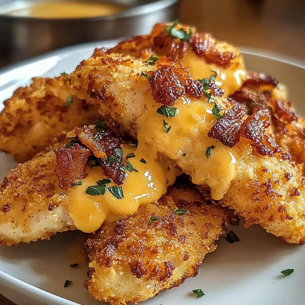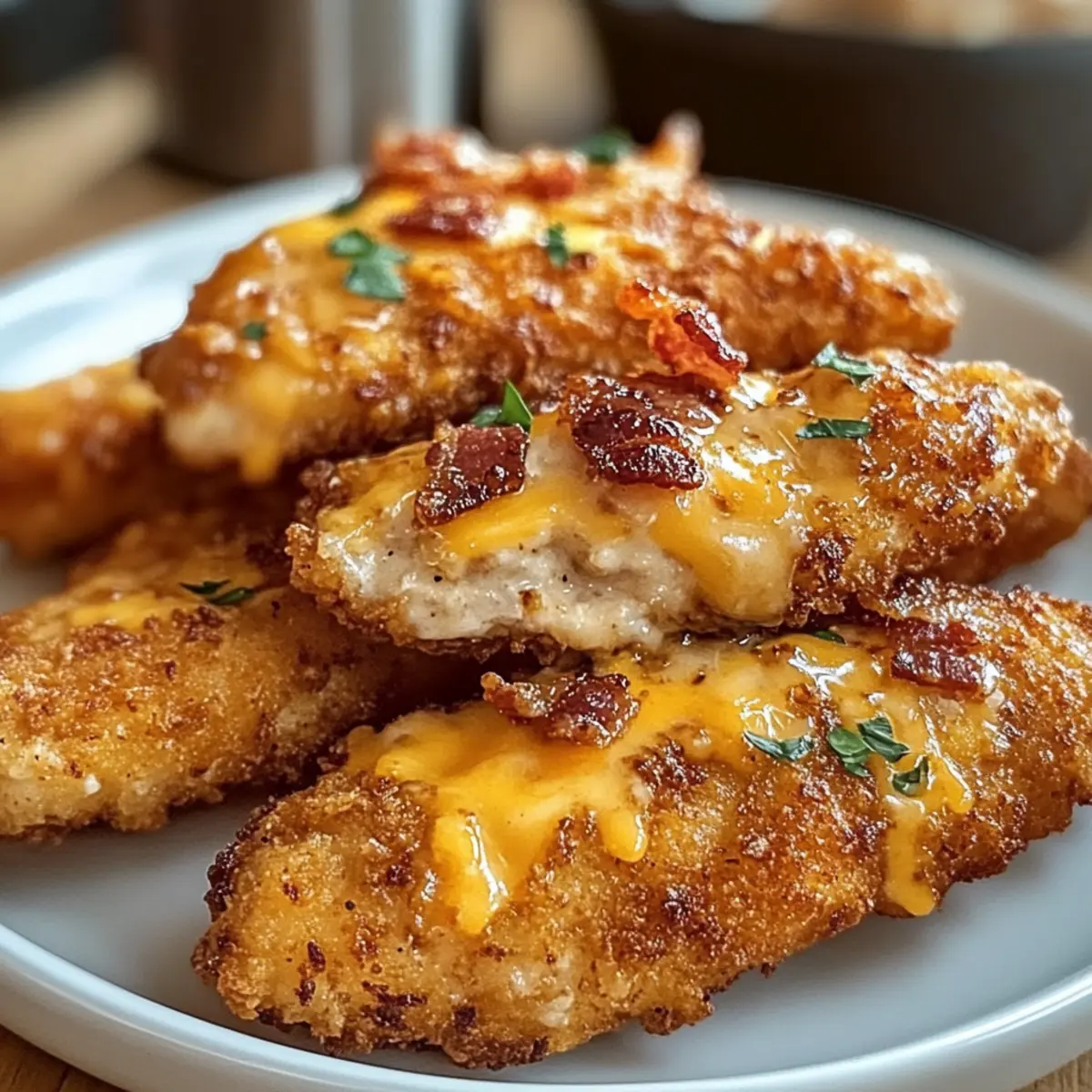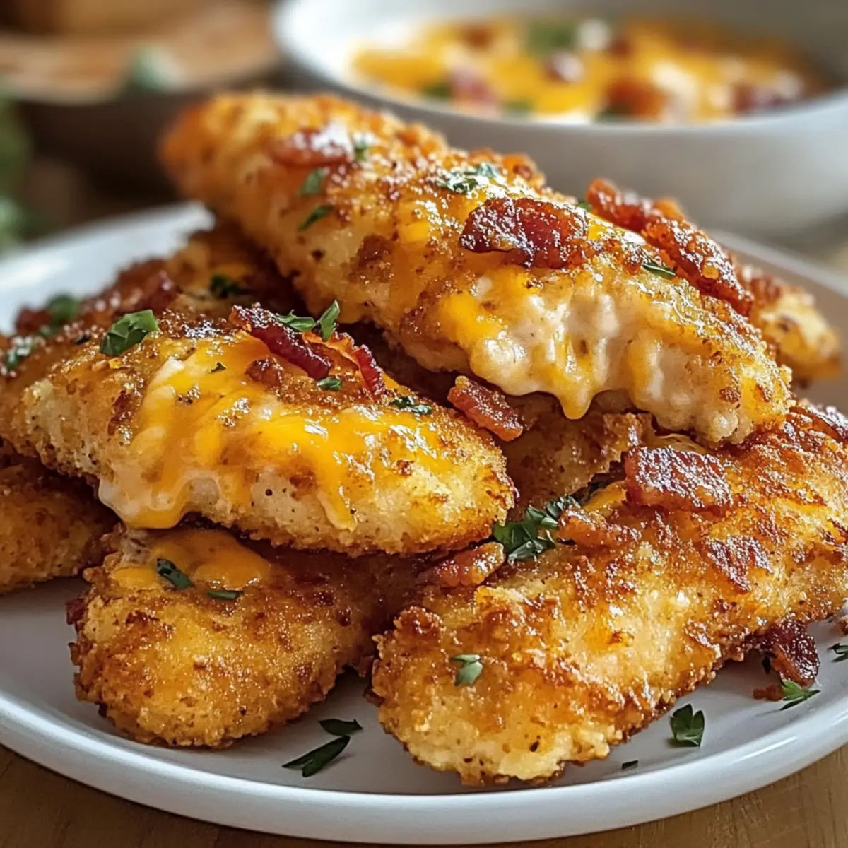 Die Vorfreude auf einen köstlichen Snack kann plötzlich überhandnehmen, besonders wenn der Hunger auf etwas Cremiges und Knuspriges zuschlägt. Heute präsentiere ich euch ein Rezept für knusprige Hähnchenstreifen, die nicht nur ein wahrer Gaumenschmaus sind, sondern auch perfekt in einen gesunden Lebensstil passen. Diese leckeren Crack Chicken Tenders sind schnell zubereitet und machen sich hervorragend als Fingerfood für Partys oder als herzhaftes Abendessen während einer hektischen Woche. Mit einer cremigen Ranch-Mischung, herzhaftem Cheddar-Käse und knusprigem Bacon sind sie außerdem eine großartige Option für alle, die auf Keto oder glutenfreie Ernährung achten. Seid ihr bereit, euer neues Lieblingsrezept zu entdecken? Warum sind diese Hähnchenstreifen besonders? Einfachheit pur: Die Zubereitung dieser knusprigen Hähnchenstreifen erfordert keine komplizierten Techniken oder Zutaten. Vielfältige Optionen: Passen Sie das Rezept einfach an, indem Sie verschiedene Käsesorten oder Gewürze verwenden. Wunderbares Aroma: Eine köstliche Kombination aus cremiger Ranch, zartem Hähnchen und würzigem Bacon sorgt für ein unvergleichliches Geschmackserlebnis. Perfekt für jede Gelegenheit: Ob als Snack beim Sport, als Partyeinladung oder Mittagsgericht – diese Tenders sind stets eine großartige Wahl. Gesund und lecker: Sie sind ideal für eine Keto- oder glutenfreie Ernährung und damit eine hervorragende Ergänzung für ihren Speiseplan. Knusprige Hähnchenstreifen Zutaten • Diese knusprigen Hähnchenstreifen sind nicht nur lecker, sondern auch flexibel anpassbar! Für die Hähnchenstreifen Hähnchenbrustfilets – Die Basis für saftige Tenders, frisch oder aufgetaut sorgt für die beste Textur. Olivenöl oder Kochspray – Hilft beim Bräunen und verhindert Anhaften; Kokosnussöl-Spray verleiht einen zusätzlichen Geschmack. Für die Cremige Mischung Frischkäse – Sorgt für Cremigkeit und Tiefe; kann durch griechischen Joghurt für eine leichtere Variante ersetzt werden. Ranch-Gewürzmischung – Bringt würzigen Geschmack; verwenden Sie selbstgemachte Gewürzmischungen für eine persönliche Note. Knoblauchpulver – Verstärkt das Gesamtaroma; frischer, gehackter Knoblauch kann ebenfalls verwendet werden. Zwiebelpulver – Fügt eine herzhafte Note hinzu; getrocknete Schalotten sind eine gute Alternative. Für die Toppings Geriebener Cheddar-Käse – Für reichhaltigen, schmelzenden Genuss; ersetzen Sie ihn durch Peperoni-Käse für eine würzige Variante. Bacon-Stückchen – Sorgt für einen salzigen Crunch; verwenden Sie Putenbacon oder pflanzlichen Bacon als tolle Alternativen. Gehexte grüne Zwiebeln – Als optionale Garnitur bringt Frische und Farbe. Genießen Sie die Welt der knusprigen Hähnchenstreifen, die nicht nur einfach zuzubereiten sind, sondern auch perfekt in einen gesunden Speiseplan passen! Schritt-für-Schritt-Anleitung für Knusprige Hähnchenstreifen Step 1: Ofen vorheizen Heizen Sie Ihren Ofen auf 190°C (375°F) vor und legen Sie ein Backblech mit Backpapier oder Alufolie aus. Diese Vorarbeit sorgt dafür, dass die knusprigen Hähnchenstreifen gleichmäßig gebacken werden und nicht anhaften. Während der Ofen aufheizt, können Sie die anderen Schritte vorbereiten. Step 2: Cremige Mischung anrühren In einer mittelgroßen Schüssel kombinieren Sie den weichen Frischkäse, die Ranch-Gewürzmischung, das Knoblauchpulver, das Zwiebelpulver und die Hälfte des geriebenen Cheddars. Rühren Sie die Mischung gut um, bis eine homogene und cremige Konsistenz erreicht ist. Diese Mischung wird den Hähnchenstreifen ihren köstlichen Geschmack verleihen. Step 3: Hähnchen vorbereiten Legen Sie die Hähnchenbrustfilets auf das vorbereitete Backblech und sprühen Sie leicht Olivenöl oder Kochspray über die Oberseite. Dies hilft nicht nur bei der Bräunung, sondern macht auch die knusprigen Hähnchenstreifen beim Backen besonders schmackhaft. Stellen Sie sicher, dass die Hähnchenstücke gleichmäßig verteilt sind. Step 4: Mischung auftragen Verteilen Sie die cremige Frischkäsemischung gleichmäßig über die Hähnchenstreifen, sodass sie gründlich bedeckt sind. Nutzen Sie einen Löffel oder einen Spachtel, um die Mischung gleichmäßig auf die Oberfläche der Hähnchen zu bringen. Achten Sie darauf, dass jede Stelle gut eingekleidet ist, um den maximalen Geschmack zu erzielen. Step 5: Toppings hinzufügen Streuen Sie den restlichen geriebenen Cheddar-Käse und die Bacon-Stückchen großzügig über die mit der Frischkäsemischung belegten Hähnchenstreifen. Diese Toppings werden während des Backens schmelzen und eine köstlich knusprige und würzige Kruste bilden. Achten Sie darauf, dass alles gut verteilt ist, damit jeder Biss etwas von allem enthält. Step 6: Backen Schieben Sie das Backblech in den vorgeheizten Ofen und backen Sie die knusprigen Hähnchenstreifen für 20 bis 25 Minuten. Der Geflügel sollte durchgegart sein, wenn es eine Innentemperatur von 74°C (165°F) erreicht hat, und der Käse sollte geschmolzen und sprudelnd aussehen. Achten Sie darauf, dass die Hähnchenstreifen goldbraun und knusprig werden. Step 7: Servieren Nach dem Backen nehmen Sie das Blech aus dem Ofen und lassen die knusprigen Hähnchenstreifen kurz abkühlen. Optional können Sie die Hähnchenstreifen vor dem Servieren mit frischen, gehackten grünen Zwiebeln garnieren, um einen Farbtupfer und zusätzliche Frische hinzuzufügen. Servieren Sie sie heiß und genießen Sie diese köstliche Speise! Tipps für die besten knusprigen Hähnchenstreifen Vorheizen nicht vergessen: Ein gut vorgeheizter Ofen ist entscheidend, um die richtigen Knusprigkeit zu erzielen. Lassen Sie ihn mindestens 10 Minuten vorheizen. Variationen einbauen: Experimentieren Sie mit verschiedenen Käsesorten oder fügen Sie zusätzliches Gemüse wie Jalapeños hinzu, um Ihre knusprigen Hähnchenstreifen kreativ anzupassen. Trocknen ist wichtig: Tupfen Sie die Hähnchenbrustfilets vor der Zubere