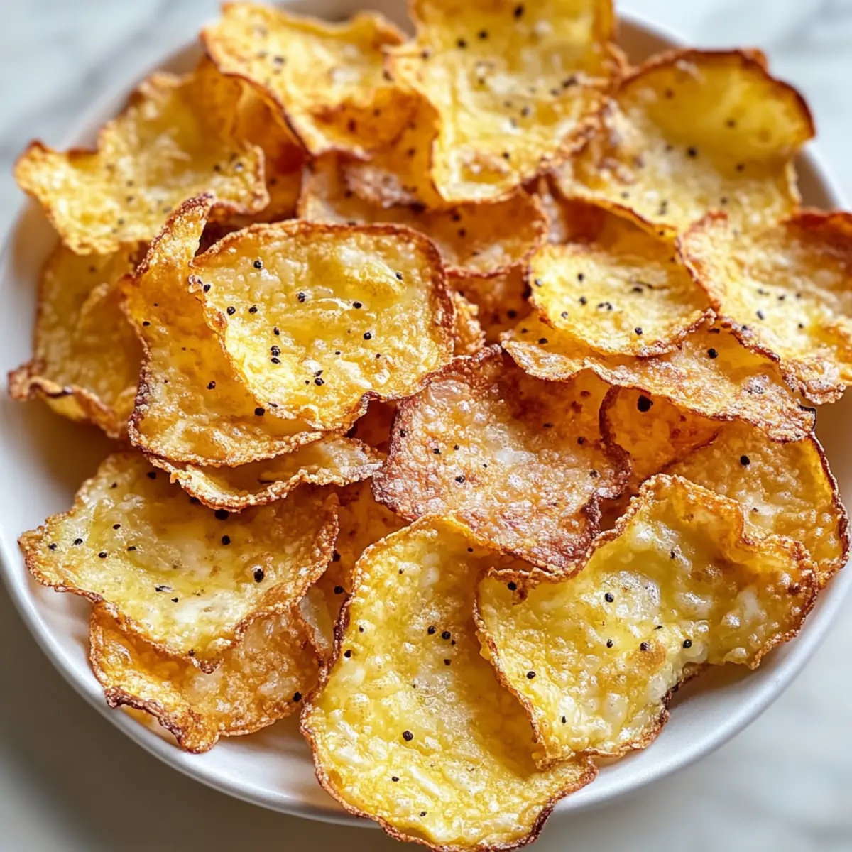 Als ich das erste Mal den verführerischen Duft von frisch gebackenen Knusprigen Low-Carb Hüttenkäse-Chips wahrnahm, war ich sofort begeistert. Diese kleinen Leckerbissen sind nicht nur eine wunderbare Abwechslung zu gewöhnlichen Snacks, sie sind auch perfekt für alle, die auf eine kohlenhydratarme Ernährung setzen und dennoch nicht auf knusprige Texturen verzichten möchten. Die Zubereitung ist kinderleicht und mit nur wenigen gesunden Zutaten kreiert man im Handumdrehen einen proteinreichen Snack, der sowohl satt macht als auch glücklich. Egal, ob als Snack für den Filmabend oder als knusprige Ergänzung zu einem geselligen Abendessen – diese Chips werden sicherlich zum Star auf deinem Tisch. Bist du bereit, deine eigenen gesunden Knabbereien zu zaubern? Warum sind diese Chips so besonders? Knusprigheid: Diese Hüttenkäse-Chips bieten eine unwiderstehlich knusprige Textur, die herkömmliche Snacks in den Schatten stellt. Einfachheit: Die Zubereitung erfordert nur wenige Schritte und grundlegende Kochkenntnisse. Gesundheit: Mit einem hohen Proteingehalt und wenig Kohlenhydraten sind sie ideal für eine ketogene Ernährung. Vielfalt: Du kannst sie nach Belieben mit verschiedenen Kräutern und Gewürzen anpassen, um deine persönliche Note hinzuzufügen. Und das Beste? Sie sind eine großartige Ergänzung zu Dips wie Guacamole oder griechischem Joghurt-Dip. Dieses Rezept bringt Freude und Genuss in jede Snackpause! Knusprige Low-Carb Hüttenkäse-Chips Zutaten • Entdecke die perfekten Zutaten für deine knusprigen Low-Carb Hüttenkäse-Chips! Für den Teig Hüttenkäse – Das Grundnahrungsmittel, das für eine tolle Proteinbasis sorgt; achte darauf, überschüssige Feuchtigkeit zu entfernen, um die Knusprigkeit zu gewährleisten. Parmesan – Fügt Struktur und Knusprigkeit hinzu; ein Verhältnis von viel Parmesan zu Cheddar sorgt für besonders knusprige Chips. Salz – Verstärkt den Geschmack; für eine salzärmere Option kannst du ungesalzenen Hüttenkäse verwenden. Pfeffer – Verleiht Wärme und mehr Geschmacksstärke. Optionale Kräuter/Würze – Passe den Geschmack an mit Optionen wie Rosmarin, Thymian oder Cayenne-Pfeffer. Serviervorschläge Dips – Kombiniere die Chips perfekt mit Dips wie Guacamole, Salsa oder einem griechischen Joghurt-Dip, um das Snack-Erlebnis zu bereichern. Diese knusprigen Low-Carb Hüttenkäse-Chips sind nicht nur ein Genuss, sondern auch einfach zuzubereiten – der gesunde Snack für jeden Anlass! Schritt-für-Schritt-Anleitungen für Knusprige Low-Carb Hüttenkäse-Chips Step 1: Backofen vorheizen Heize den Ofen auf 190°C (375°F) vor und lege ein Backblech mit Backpapier aus. Diese Vorbereitung ist entscheidend, um eine gleichmäßige Hitzeverteilung zu gewährleisten, damit die Knusprigen Low-Carb Hüttenkäse-Chips perfekt backen können. Lass den Ofen vollständig aufheizen, während du die anderen Schritte vorbereitest. Step 2: Hüttenkäse abtropfen Patte den Hüttenkäse mit Küchenpapier trocken, um überschüssige Feuchtigkeit zu entfernen. Das Entfernen der Feuchtigkeit ist entscheidend für die Knusprigkeit der Chips. Wenn der Hüttenkäse noch feucht ist, können die Chips matschig werden und nicht die gewünschte Textur erreichen. Step 3: Mischung herstellen In einer Schüssel vermischt du den Hüttenkäse mit frisch geriebenem Parmesan, Salz, Pfeffer, und optionalen Kräutern oder Gewürzen nach Wahl. Rühre alles gut um, bis eine gleichmäßige Masse entsteht. Diese Mischung sorgt für den herzhaften Geschmack und die Knusprigkeit deiner Knusprigen Low-Carb Hüttenkäse-Chips. Step 4: Portionieren und anordnen Nutze einen Esslöffel, um kleine Portionen der Mischung auf das vorbereitete Backblech zu geben. Lass genügend Platz zwischen den Portionen, damit die Chips beim Backen gleichmäßig ausbreiten können. Achte darauf, dass sie nicht zu dicht beieinander liegen, um gleichmäßiges Garen zu ermöglichen. Step 5: Flachdrücken Drücke jede Portion mit der Rückseite eines Löffels sanft in die Form eines dünnen Kreises. Die Chips müssen gleichmäßig dick sein, damit sie überall gleichmäßig knusprig werden. Achte darauf, dass es keinen hohen Rand gibt, da dies das Backen beeinträchtigen könnte. Step 6: Backen Schiebe das Backblech in den vorgeheizten Ofen und backe die Chips für 15–25 Minuten, bis die Ränder goldbraun und die Mitte knusprig ist. Behalte die Chips im Auge, da die Backzeit je nach Ofen variieren kann. Ein goldener Farbton ist ein Indikator, dass sie bereit sind. Step 7: Abkühlen lassen Lass die Chips nach dem Backen auf dem Blech abkühlen, damit sie ihre Knusprigkeit behalten. Diese Kühlphase ist wichtig, um die perfekte Textur für deine Knusprigen Low-Carb Hüttenkäse-Chips zu erreichen. Wenn die Chips nach dem Abkühlen weich werden, kannst du sie bei 190°C nochmals für 3–5 Minuten in den Ofen zurückstellen. Lagerung und Einfrieren von Knusprigen Low-Carb Hüttenkäse-Chips Aufbewahrung bei Zimmertemperatur: Bewahre die Chips in einem luftdichten Behälter auf; so bleiben sie bis zu 3 Tage knusprig. Lege ein Stück Küchenpapier hinein, um Feuchtigkeit zu absorbieren. Kühlschrank: Alternativ kannst du die Hüttenkäse-Chips bis zu einer Woche im Kühlschrank aufbewahren. Stelle sicher, dass sie luftdicht verpackt sind, um ihre Knusprigkeit zu bewahren. Einfrieren: Für eine längere Lagerung friere die Chips bis zu 2 Monate ein. Lege ein Stück Backpapier zwischen die Schichten, um das Aneinanderkleben zu verhindern. Wiederaufwärmen: Um die Chips wieder knusprig zu machen, erwärme sie bei 190°C (375°F) im Ofen für 5–10 Minuten. So bleiben die Knusprigen Low-Carb Hüttenkäse-Chips frisch und lecker! Expertentipps für Knusprige Low-Carb Hüttenkäse-Chips Feuchtigkeit entfernen: Achte darauf, dass der Hüttenkäse gut trocken ist, um matschige Chips zu vermeiden. Tupfe überschüssige Feuchtigkeit gründlich ab. Gleichmäßige Dicke: Drücke die Chips gleichmäßig flach 