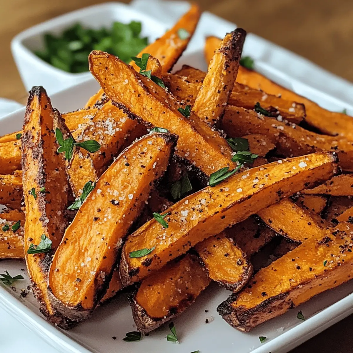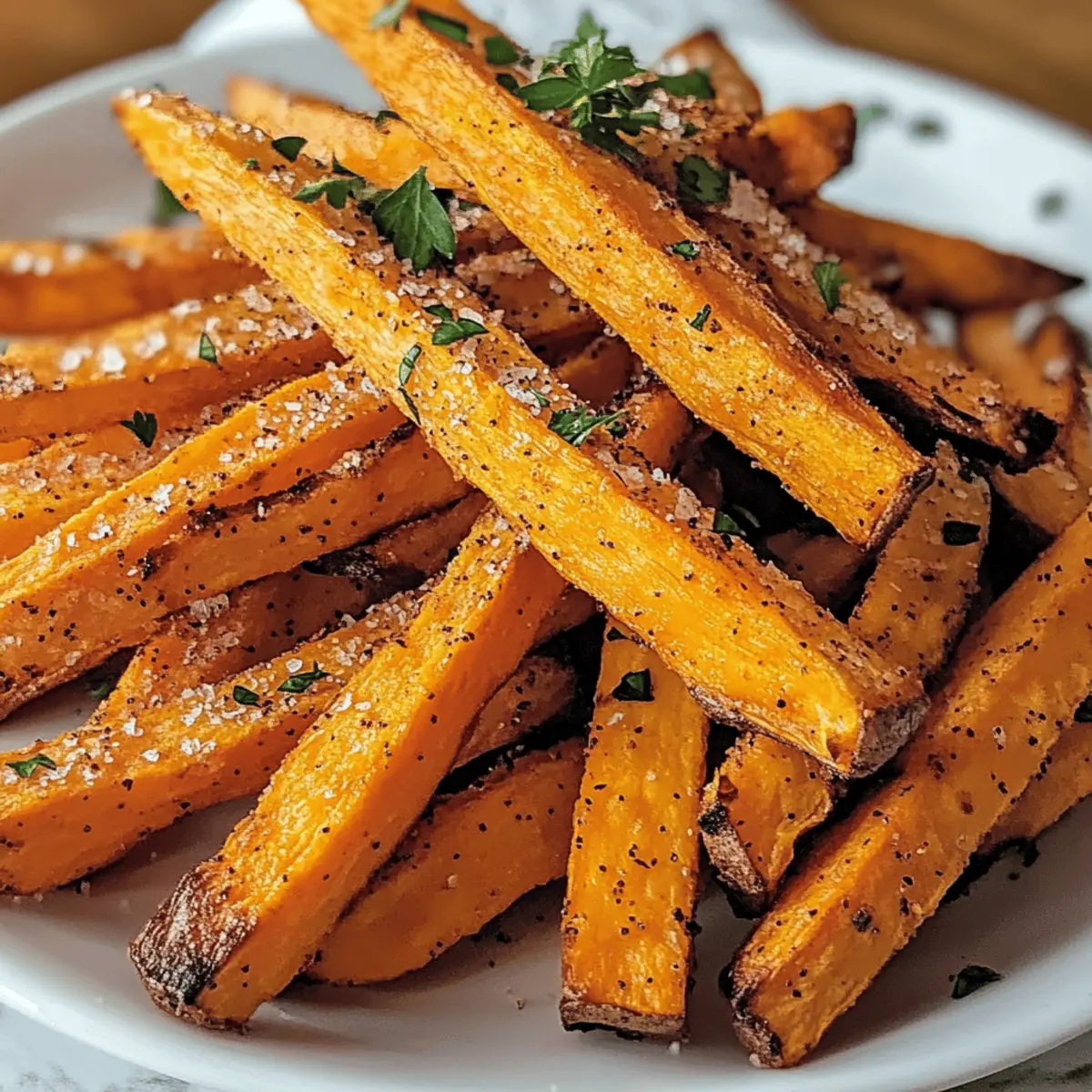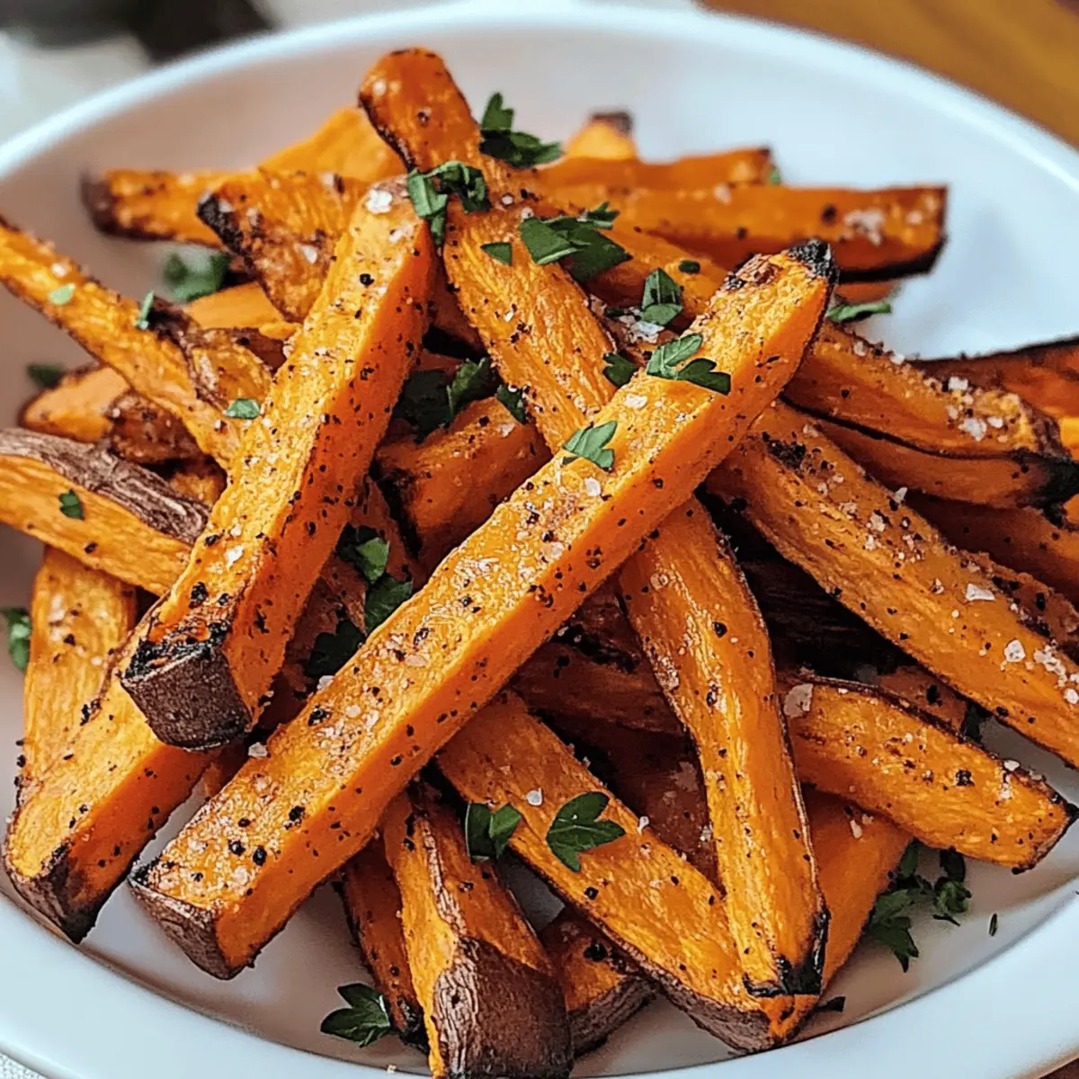 Ich kann kaum den köstlichen Duft von frisch gebackenen Pommes Frites vergessen, der in der Luft liegt und meine Geschmacksknospen zum Tanzen bringt. Wenn ich knusprige Ofen gebackene Süßkartoffel Pommes zubereite, kann ich mich auf einen echten Gaumenschmaus freuen, der nicht nur wunderbar leicht und gesund ist, sondern auch im Handumdrehen fertig ist. Diese Pommes sind eine genussvolle Alternative zu herkömmlichen Frites und bieten die perfekte Kombination aus süß und herzhaft – und das ganz ohne schlechtes Gewissen! Sie sind nicht nur glutenfrei und vegan, sondern lassen sich auch einfach mit ein paar Grundzutaten aus der Vorratskammer zubereiten. Bist du bereit, deine Snackgewohnheiten zu revolutionieren und herauszufinden, wie du diese unwiderstehlichen Pommes selbst zubereiten kannst? Warum sind diese Pommes so besonders? Gesundheitliche Vorteile: Diese knusprigen Ofen gebackenen Süßkartoffel Pommes sind nicht nur glutenfrei und vegan, sondern auch reich an Nährstoffen, die deinem Körper guttun. Einfache Zubereitung: Mit nur wenigen Zutaten zauberst du im Handumdrehen ein köstliches Snack-Highlight. Köstlicher Geschmack: Die Kombination aus süßen Süßkartoffeln und würzigen Gewürzen sorgt für ein Geschmackserlebnis, das alle begeistert. Vielseitig einsetzbar: Ob als Snack oder Beilage zu deinem Lieblingsgericht – diese Pommes passen immer! Und wenn du Lust auf etwas Abwechslung hast, probiere doch auch einmal unser knuspriges Landhaus Huehnchen Rezept dazu! Wunderschöne Textur: Der knackige Biss außen und die zarte Textur innen machen diese Pommes unwiderstehlich. Knusprige Ofen gebackene Süßkartoffel Pommes Zutaten • Für die Pommes Süßkartoffeln – die Hauptzutat, die natürliche Süße und eine leuchtende Farbe liefert. Hinweis: Festfleischige, orangefarbene Süßkartoffeln sind optimal. Maisstärke oder Pfeilwurzstärke – sorgt für die Knusprigkeit, indem sie Feuchtigkeit absorbiert. Hinweis: Unverzichtbar für die richtige Textur; weglassen führt zu weicheren Pommes. Olivenöl – wird zum Beschichten der Pommes verwendet und trägt zur Bräunung und Knusprigkeit bei. Ölfreie Variante ist möglich, könnte aber weniger knusprige Ergebnisse liefern. Knoblauchpulver – fügt eine tiefere Geschmacksnote hinzu. Substitution: Frischer Knoblauch kann für intensiveren Geschmack verwendet werden. Geräuchertes Paprika – sorgt für eine subtile Rauchnote, die das Geschmacksprofil bereichert. Hinweis: Normales Paprika kann ersetzt werden, falls geräuchert nicht verfügbar ist. Salz und schwarzer Pfeffer – essentielle Gewürze zur Geschmacksverstärkung. Nach Geschmack verwenden. Frische Petersilie (optional) – als Garnitur für eine frische Farbe und Geschmacksakzent. Kann weggelassen werden, wenn nicht gewünscht. Step-by-Step Instructions für Knusprige Ofen gebackene Süßkartoffel Pommes Step 1: Ofen vorheizen Heize deinen Ofen auf 220°C (425°F) vor, damit die Pommes beim Backen perfekt knusprig werden. Ein gut vorgeheizter Ofen sorgt dafür, dass die Süßkartoffel Pommes gleichmäßig garen und eine schöne goldene Farbe erhalten. Step 2: Süßkartoffeln vorbereiten Schäle die Süßkartoffeln und schneide sie in dünne Pommes (etwa 0,5 cm dick). Lege die geschnittenen Pommes in eine Schüssel mit kaltem Wasser und lasse sie mindestens 30 Minuten einweichen, um überschüssige Stärke zu entfernen. Dies ist ein wichtiger Schritt, um die Knusprigkeit deiner knusprigen Ofen gebackenen Süßkartoffel Pommes zu erreichen. Step 3: Pommes trocknen Nach dem Einweichen die Süßkartoffel Pommes abgießen und gründlich mit einem Küchentuch abtrocknen. Es ist wichtig, dass sie so trocken wie möglich sind, um eine knusprige Textur zu erzielen. Feuchtigkeit kann dazu führen, dass die Pommes beim Backen eher dampfen als knusprig werden. Step 4: Pommes beschichten Gib die trockenen Süßkartoffel Pommes in eine große Schüssel und mahle etwas Maisstärke darüber, bis sie gleichmäßig damit bedeckt sind. Drizzle anschließend Olivenöl über die Pommes und füge Knoblauchpulver, geräuchertes Paprika, Salz und Pfeffer hinzu. Mische alles gut, damit die Gewürze gleichmäßig verteilt sind. Step 5: Für das Backen anordnen Lege ein Backblech mit Backpapier aus und verteile die Pommes in einer einzigen Schicht darauf. Achte darauf, dass die Pommes nicht überlappen, da dies das Backen beeinträchtigt und sie dadurch weicher werden können. Step 6: Backen Backe die gezogen, glutenfreien Süßkartoffel Pommes 15 Minuten lang. Drehe sie anschließend mit einem Spatel vorsichtig um und backe sie weitere 10-15 Minuten, bis sie goldbraun und knusprig sind. Achte darauf, sie im Auge zu behalten, damit sie nicht verbrennen. Step 7: Servieren Nimm die Pommes aus dem Ofen und lass sie kurz abkühlen. Optional kannst du sie mit etwas zusätzlichem Salz bestreuen und mit frischer Petersilie garnieren. Serviere die knusprigen Ofen gebackenen Süßkartoffel Pommes mit deinem Lieblings-Dip und genieße diesen leckeren Snack oder die perfekte Beilage! Expertentipps für knusprige Ofen gebackene Süßkartoffel Pommes Optimale Dicke: Achte darauf, die Süßkartoffeln gleichmäßig in etwa 0,5 cm dicke Streifen zu schneiden. Uneinheitliche Größen können zu unterschiedlichen Garzeiten führen. Wasserbad: Lass die geschnittenen Pommes mindestens 30 Minuten im kalten Wasser einweichen. Das Entfernen der Stärke ist entscheidend für die Knusprigkeit der knusprigen Ofen gebackenen Süßkartoffel Pommes. Gründliches Trocknen: Patte die Pommes nach dem Einweichen gründlich trocken. Feuchtigkeit ist der Feind von knusprigen Pommes und kann sie dazu bringen, weich zu werden. Nicht Überlappen: Lege die Süßkartoffel Pommes in einer einzigen Schicht auf das Backblech. Wenn sie übereinander liegen, besteht die Gefahr, dass sie dampfen und nicht knusprig werden. Kontrollieren der Backzeit: Beobachte die Pommes während des Backens, um sicherzustellen, dass sie nicht 