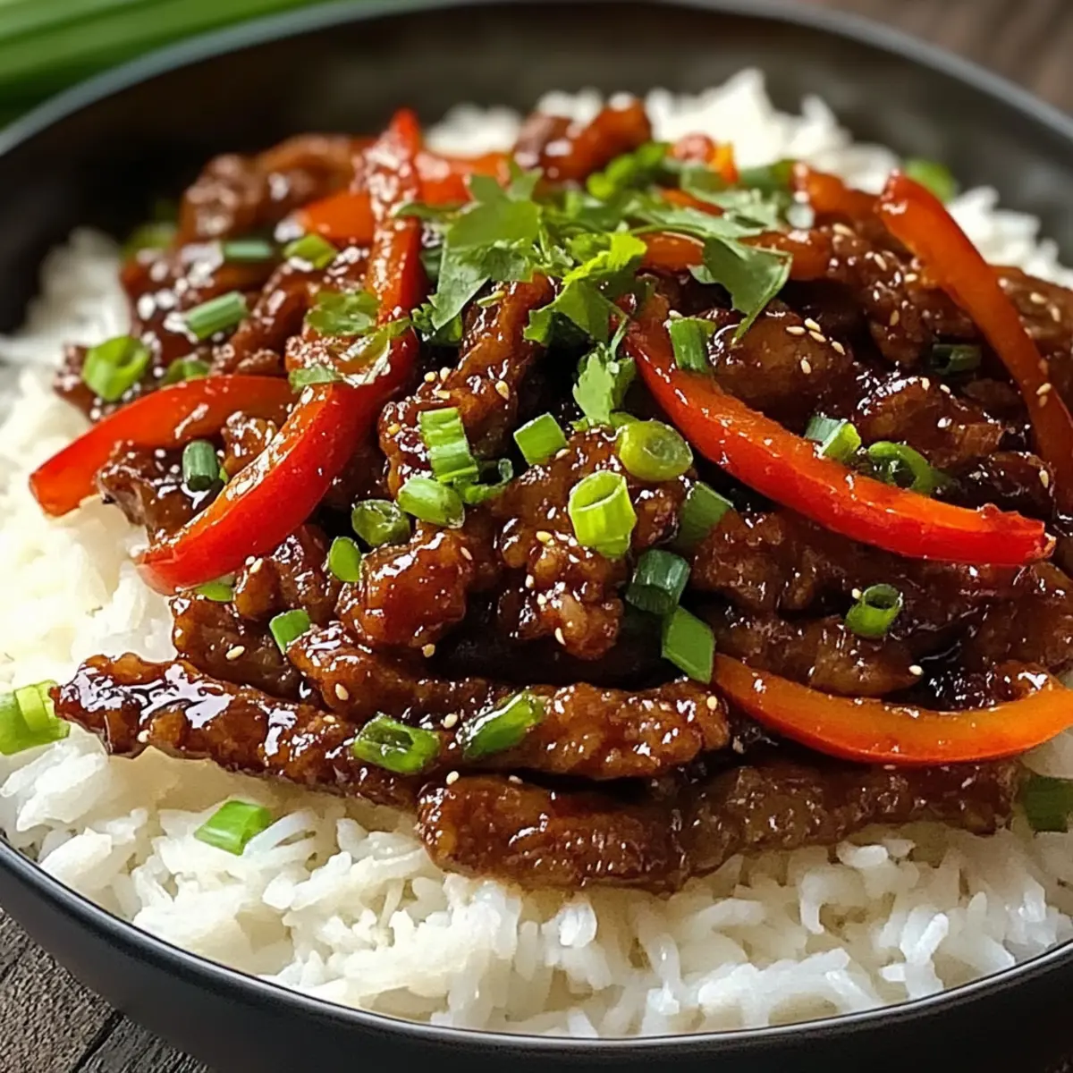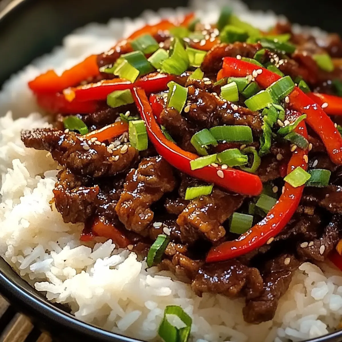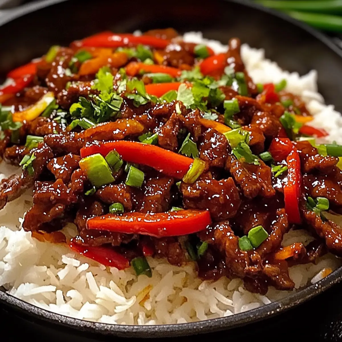 Mit einem herzlichen Knacken von frisch frittiertem Rindfleisch und dem verführerischen Duft von süß-scharfer Soße beginnt mein heutiger kulinarischer Ausflug: Knuspriges Chili-Rindfleisch-Reis. In nur 15 Minuten bereiten wir ein schnelles und proteinreiches Gericht zu, das garantiert nicht nur meine Familie begeistert, sondern auch Kinderaugen zum Strahlen bringt. Diese ausgewogene Kombination aus zartem Fleisch und knackigem Gemüse ist der perfekte Gegenpol zu den oft weniger gesunden Optionen, die man beim Takeout findet. Wenn du also auf der Suche nach einer schmackhaften, schnellen Antwort auf die Frage „Was gibt’s zum Abendessen?“ bist, bist du hier genau richtig. Wirst du es schaffen, die köstlichen Aromen zu widerstehen? Lass uns gemeinsam in die Zubereitung eintauchen! Warum wirst du dieses Rezept lieben? Schnelligkeit: In nur 15 Minuten zauberst du ein vollwertiges Gericht auf den Tisch, ideal für hektische Wochentage. Proteinreich: Mit zartem Rindfleisch ist es eine großartige, sättigende Option für die ganze Familie, insbesondere für sportliche Kinder. Einfachheit: Auch Kochanfänger werden das Rezept problemlos nachkochen können – kein Stress in der Küche! Vielseitigkeit: Du kannst das Gemüse je nach Saison oder Vorlieben variieren und sogar das Rindfleisch durch Hühnchen oder Tofu ersetzen. Probiere auch unser Knuspriges Landhaus Huehnchen für eine leckere Alternative! Aromatische Geschmacksexplosion: Die Mischung aus süß-scharfer Soße und frischen Zutaten wird deine Geschmacksknospen begeistern. Dieses Gericht ist die perfekte Lösung gegen Langeweile beim Abendessen! Knuspriges Chili-Rindfleisch-Reis Zutaten • Lass uns die geschmackvollen Zutaten zusammenstellen, die dieses Rezept so unwiderstehlich machen! Für das Rindfleisch Mageres Rindfleisch: – Wähle Sirloin, Flanke oder Rinderhüfte für den besten Geschmack und eine hohe Proteinquelle. Maisstärke: – Hilft, das Rindfleisch zu ummanteln und eine knusprige Textur beim Frittieren zu erzeugen. Pflanzenöl: – Ideal zum Frittieren des Rindfleischs, um eine gleichmäßige Bräunung zu erreichen. Für die Basis Gekochter Jasminreis: – Serviert als Grundlage, sorgt für die nötigen Kohlenhydrate. Verwende Reste, um Zeit zu sparen! Für die Soße und das Gemüse Rote Paprika: – Bringt Farbe und einen Hauch von Süße ins Gericht; auch gefrorene Paprika sind eine gute Option. Knoblauch: – Fügt ein aromatisches Element hinzu; die Menge kann je nach Vorliebe angepasst werden. Rote Chili: – Fügt die Gewürznote hinzu; die Samen entfernen, um die Schärfe zu mildern. Leichte Sojasoße: – Bringt den herzhaften Umami-Geschmack mit und sorgt für die nötige Salzigkeit. Süße Chilisauce: – Gibt den süßen Kick, der das Gericht besonders macht; mit Honig ausbalancieren. Honig: – Verstärkt die Süße; kann für eine vegane Option mit Agavendicksaft ersetzt werden. Geröstetes Sesamöl: – Sorgt für ein nussiges Aroma; sparsam verwenden, da es sehr intensiv ist. Frühlingszwiebeln: – Perfekt als Garnitur und bringt einen frischen Crunch. Diese Zutaten für das Knusprige Chili-Rindfleisch-Reis sind nicht nur einfach zu finden, sondern verwandeln dein Abendessen in ein köstliches und nährendes Erlebnis, das deine Familie lieben wird! Schritt-für-Schritt-Anleitung für Knuspriges Chili-Rindfleisch-Reis Step 1: Rindfleisch vorbereiten Schneide das mageres Rindfleisch in dünne Streifen und wälze es gleichmäßig in Maisstärke, bis es leicht beschichtet ist. Dies sorgt dafür, dass das Fleisch beim Frittieren knusprig wird. Bereite dich vor, indem du alle anderen Zutaten und dein Wok oder eine große Pfanne bereitlegst. Step 2: Öl erhitzen Erhitze in einem Wok oder einer großen Pfanne bei hoher Temperatur ausreichend Pflanzenöl, bis es heiß ist, aber noch nicht raucht. Ein guter Indikator ist, wenn sich kleine Bläschen am Rand des Woks bilden. Bereite dich auf den nächsten Schritt vor, während das Öl erhitzt. Step 3: Rindfleisch frittieren Füge die Rindfleischstreifen in das heiße Öl hinzu und brate sie 3-4 Minuten lang, bis sie goldbraun und knusprig sind. Achte darauf, das Fleisch gelegentlich zu wenden, um eine gleichmäßige Bräunung zu erreichen. Sobald sie fertig sind, nimm das Rindfleisch aus der Pfanne und lege es zur Seite. Step 4: Gemüse sautieren Gib in dieselbe Pfanne rote Paprika, Knoblauch und rote Chili und brate sie für etwa 2 Minuten an, bis sie weich sind und köstlich duften. Achte darauf, die Hitze hoch zu halten, damit das Gemüse schön anbrät und knackig bleibt. Dies bringt die Aromen zur Geltung und fügt dem Knusprigen Chili-Rindfleisch-Reis viel Geschmack hinzu. Step 5: Soßen hinzufügen Gib das gebratene Rindfleisch zurück in die Pfanne und füge leichte Sojasoße, süße Chilisauce und Honig hinzu. Rühre alles gut durch und lasse die Mischung etwa 1 Minute lang kochen, bis die Soße dick wird und sich gleichmäßig um das Fleisch legt. Sieh zu, wie die Zutaten miteinander verschmelzen! Step 6: Sesamöl und Garnitur hinzufügen Träufele ein wenig geröstetes Sesamöl über das Gericht und mische dann die Frühlingszwiebeln gut unter. Dies verleiht dem Knusprigen Chili-Rindfleisch-Reis einen nussigen Geschmack und eine frische Note. Stelle sicher, dass alles gut vermischt ist, bevor du das Gericht servierst. Step 7: Servieren Serviere das Knusprige Chili-Rindfleisch-Reis direkt aus der Pfanne auf Schalen mit dampfendem Jasminreis. Die Kombination aus knusprigem Fleisch und fluffigem Reis macht dieses Gericht zu einem zufriedenstellenden Abendessen. Optional kannst du noch zusätzliche Frühlingszwiebeln oder Sesamsamen als Garnitur verwenden. Was passt zu Knusprigem Chili-Rindfleisch-Reis? Für ein rundum gelungenes Abendessen kannst du diese Beilagen genießen, die den Geschmack des Hauptgerichts wunderbar ergänzen. Cremiger Gurkensalat: Frische Gurken in Joghurt angerührt sorgen für einen kühlenden Kontrast zu den scharfen Ar