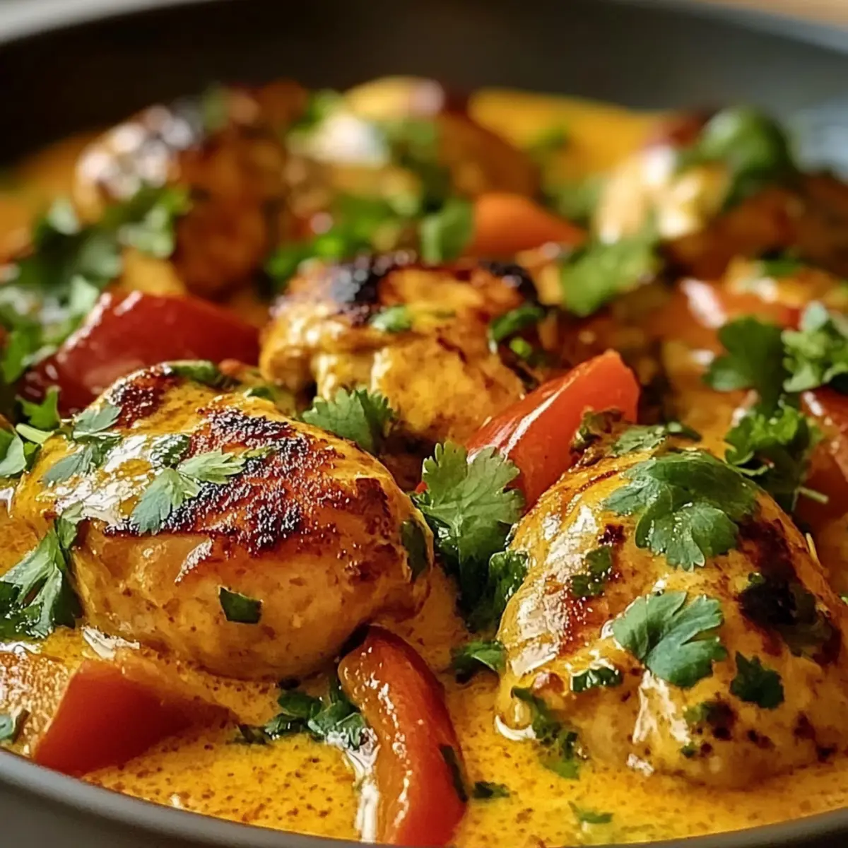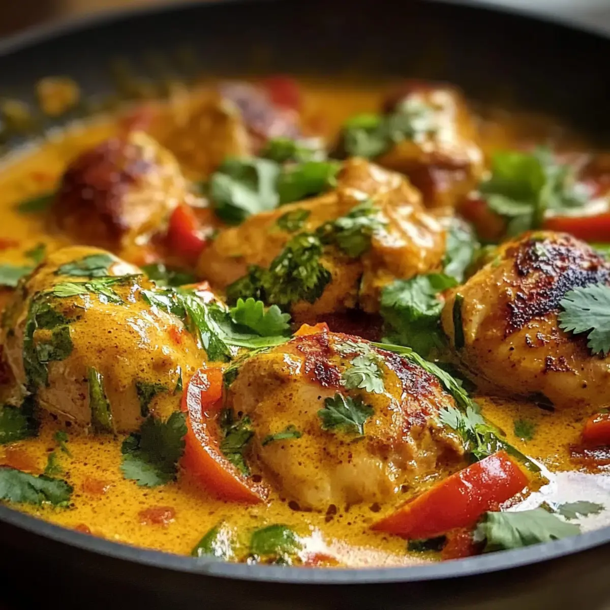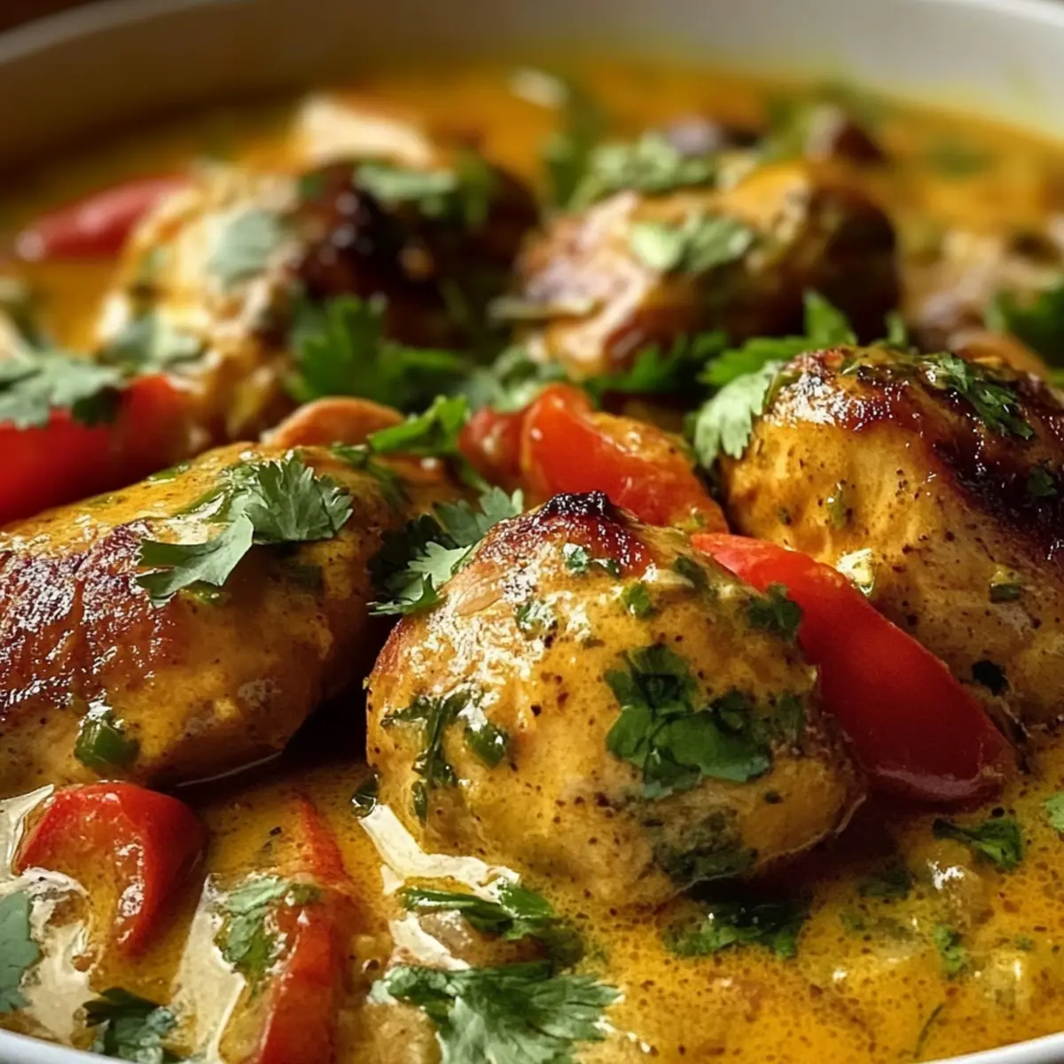In einem kleinen Café am Strand von Ipanema wurde mir das Geheimnis des Brasilianischen Kokosnuss-Hühnchens verraten. Diese exotische Köstlichkeit vereint zartes Hähnchen in einer cremigen Kokosmilchsoße, verfeinert mit bunten Paprika und frisch gehacktem Koriander. Es ist nicht nur ein Festmahl für besondere Anlässe, sondern auch schnell und einfach zuzubereiten – ein wahres Highlight für gesellige Runden oder den alltäglichen Genuss. Mit der Option, das Hähnchen durch nahrhafte Auberginen, Kichererbsen oder Süßkartoffeln zu ersetzen, eröffnet sich zudem eine köstliche vegane Variante. Diese Kreation bringt die Aromen Südamerikas direkt in deine Küche und hebt jede Mahlzeit auf ein neues Niveau. Bist du bereit, deine Geschmacksknospen zu verwöhnen? Warum ist Kokosnuss-Hühnchen so besonders? Exotisch und aromatisch: Dieses Gericht vereint die warmen Aromen Brasiliens in einem köstlichen Paket. Mit cremiger Kokosmilch und bunten Paprika wird jede Mahlzeit zum Erlebnis. Einfach zubereitet: Selbst Kochanfänger können dank der klaren Anleitung schnell Erfolg haben. Vielfalt garantiert: Ob mit Hähnchen oder für eine vegane Variante mit Auberginen – die Möglichkeiten sind endlos! Und als absolutes Plus: Du kannst das Kokosnuss-Hühnchen hervorragend im Voraus zubereiten, was es perfekt für gesellige Abendessen macht. Lass dich von diesem geschmacklichen Highlight begeistern und bring das Urlaubsglück auf deinen Teller! Kokosnuss-Hühnchen Zutaten • Bereite dich auf ein Geschmackserlebnis vor, das die Aromen Brasiliens zu dir bringt! Für das Hähnchen Hähnchenteile – Verwende Hähnchenschenkel für saftigere Ergebnisse oder Hähnchenbrust für eine fettärmere Option. Für die Soße Kokosmilch – Die Basis für die cremige Textur; wähle ungesüßte, reduzierte Fettmilch für eine leichtere Variante. Paprika – Sorgt nicht nur für Farbe, sondern auch für zusätzliche Süße. Zwiebeln – Eine aromatische Grundlage, die dem Gericht Tiefe verleiht. Knoblauch – Bringt würzige Note und verstärkt die Aromen. Tomaten – Frische und Flüssigkeit unterstützen die Soße. Für den Geschmack Limettensaft – Fügt frische Säure hinzu, die das Gericht ausbalanciert. Koriander – Ein frisches Aroma, das als Garnitur dient. Chilipulver oder frische Chili – Für die gewünschte Schärfe, nach Geschmack anpassbar. Olivenöl – Zum Anbraten des Hähnchens und der Zwiebeln. Salz und Pfeffer – Essentielle Gewürze für die Grundwürzung. Genieße die Kreation und lass dich von deinem Kokosnuss-Hühnchen verzaubern! Schritt-für-Schritt-Anleitung für Kokosnuss-Hühnchen Step 1: Hähnchen anbraten Die Hähnchenteile großzügig mit Salz und Pfeffer würzen. Erhitze eine große Pfanne bei mittlerer Hitze und füge einen Schuss Olivenöl hinzu. Die Hähnchenteile in die heiße Pfanne legen und etwa 5-7 Minuten auf jeder Seite goldbraun anbraten, bis sie knusprig und durchgegart sind. Danach das Hähnchen herausnehmen und beiseitestellen. Step 2: Zwiebeln und Knoblauch anschwitzen Im verbliebenen Bratfett die fein gehackten Zwiebeln und den Knoblauch glasig anschwitzen. Dies dauert etwa 3-4 Minuten über mittlerer Hitze. Achte darauf, dass der Knoblauch nicht anbrennt, da dies den Geschmack bitter machen kann. Rühre regelmäßig um, um eine gleichmäßige Garung zu erreichen. Step 3: Paprika und Chili hinzufügen Füge die gewürfelte Paprika und, falls gewünscht, frische Chili oder Chilipulver zu den Zwiebeln in der Pfanne hinzu. Brate alles für weitere 2-3 Minuten an, bis die Paprika leicht weich wird und ihre Farben schön intensiv sind. Diese Schritte bringen zusätzliches Aroma in dein Kokosnuss-Hühnchen. Step 4: Tomaten und Kokosmilch einrühren Jetzt kommen die gewürfelten Tomaten in die Pfanne. Lass alles für etwa 5 Minuten köcheln, bis die Tomaten weich sind und die Aromen verschmelzen. Danach gieße die Kokosmilch hinzu und erhöhe die Hitze, um die Mischung zum Kochen zu bringen. Das ist der Moment, in dem das Kokosnuss-Hühnchen seine cremige Textur entwickelt. Step 5: Hähnchen zurück in die Pfanne legen Lege die angebratenen Hähnchenteile zurück in die Pfanne und reduziere die Hitze auf niedrig. Decke die Pfanne ab und lasse das Ganze für 20-25 Minuten sanft schmoren. Dies sorgt dafür, dass das Hähnchen zart bleibt und die Aromen gut einziehen können. Achte darauf, dass die Soße leicht köchelt. Step 6: Mit Limettensaft und Koriander abschmecken Nachdem das Hähnchen gar ist, nimm die Pfanne vom Herd. Gib frisch gepressten Limettensaft und gehackten Koriander dazu. Rühre gut um, um alles zu vermischen, und schmecke nach Belieben mit Salz und Pfeffer ab. Dein Kokosnuss-Hühnchen ist nun bereit zum Servieren. Kokosnuss-Hühnchen Variationen Entdecke die vielen Möglichkeiten, dein Kokosnuss-Hühnchen nach deinem Geschmack anzupassen und zu verfeinern! Vegan: Ersetze das Hähnchen durch gebratene Auberginen oder Kichererbsen für eine köstliche, pflanzliche Variante. Diese Optionen bringen eine herzliche Textur und zusätzliche Nährstoffe in dein Gericht. Fettarm: Verwende fettreduzierte Kokosmilch, um die Kalorien zu senken, ohne auf die cremige Konsistenz zu verzichten. Perfekt für eine leichtere, aber immer noch exquisite Geschmacksrichtung. Rauchige Note: Füge geräuchertes Paprikapulver hinzu, um eine tiefere, rauchige Geschmacksdimension zu erreichen. Dieser Twist verleiht deinem Gericht ein einzigartiges Aroma, das beim Verkosten überraschen wird. Exotisch-fruchtig: Ergänze dein Gericht mit Ananasstücken oder Mango für eine fruchtige Süße, die perfekt mit der Kokosmilch harmoniert. Es bringt einen Hauch von Tropen in jede Biss. Schärfe erhöhen: Für die Scharfen unter euch: füge frische Chilis oder zusätzliches Chilipulver hinzu. Diese Schärfe bringt aufregende Energie in das Kuddelmuddel! Nuss-Twist: Streue gehackte Cashews oder Mandeln über das fertige Gericht für eine knusprige Textur und zusätzlichen Geschmack