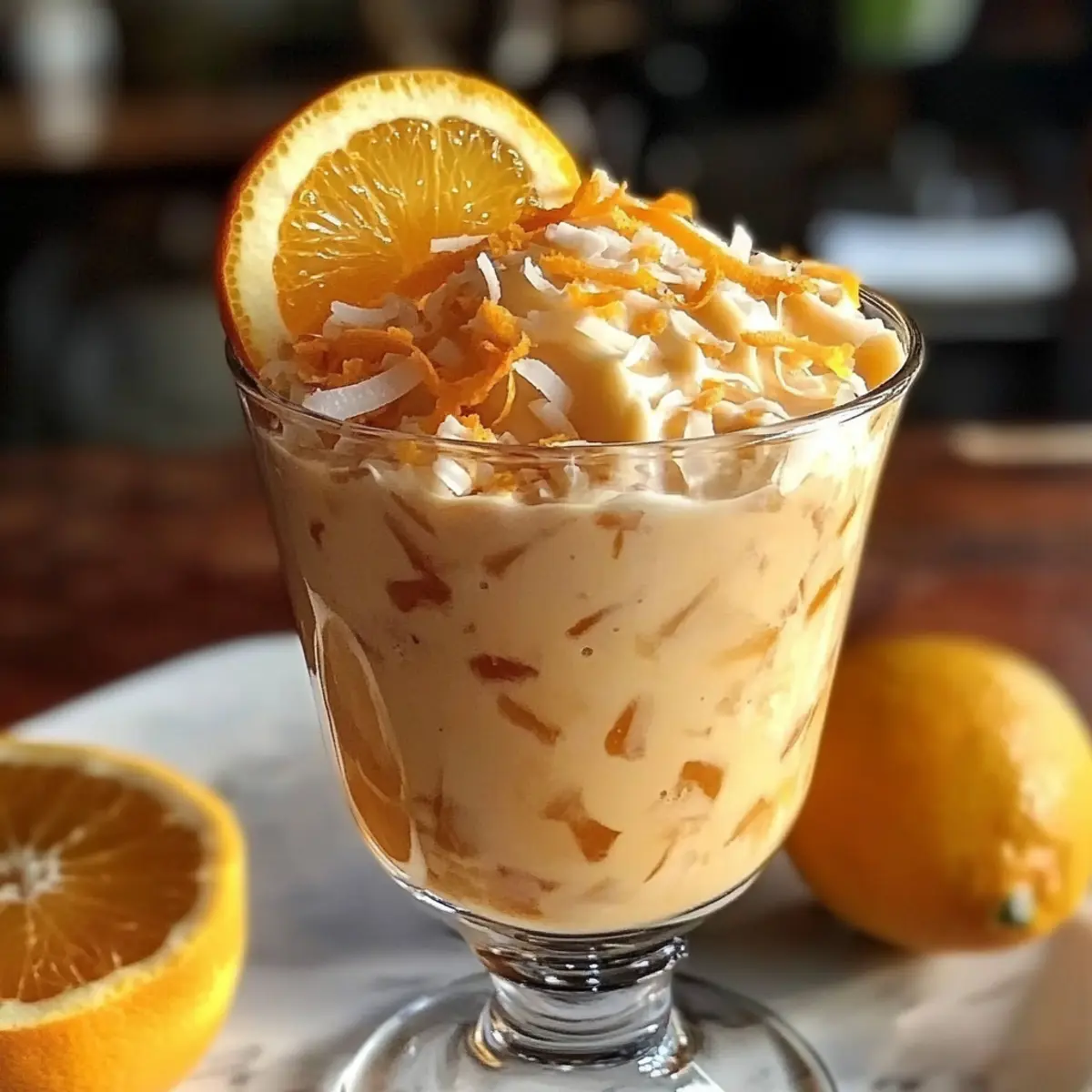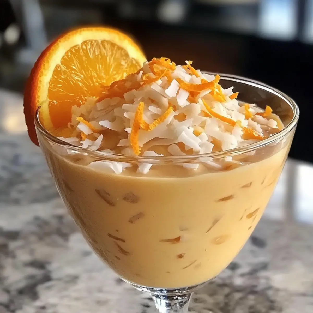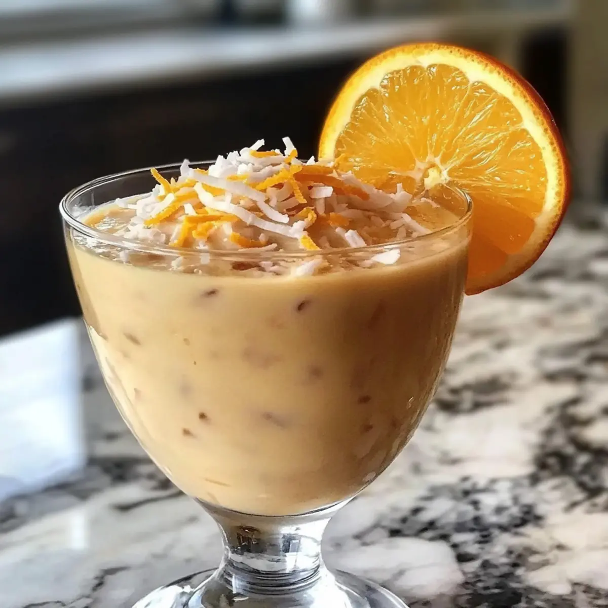 Wie oft sehnt man sich nach einem kleinen Stückchen Urlaub auf dem Teller? Mit dem Kokosnuss-Orangen-Glühen entführe ich euch in die tropische Welt der Aromen und Texturen! Diese cremige, vegane Nachspeise bringt nicht nur den Schwung der Zitrusfrüchte, sondern auch die samtige Weichheit der Kokosnuss in jeden Löffel. Sie ist nicht nur einfach zuzubereiten, sondern auch der perfekte, leichte Genuss für warme Sommerabende oder gesellige Runden mit Freunden. Ein wahrer Publikumsliebling, der Freude auf jedem Tisch bringt – könnt ihr euch schon vorstellen, wie die frischen Aromen eure Gäste begeistern werden? Lasst uns gemeinsam dieses erfrischende Dessert kreieren! Warum ist dieses Dessert so besonders? Exotik pur: Das Kokosnuss-Orangen-Glühen vereint den frischen Geschmack von Zitrusfrüchten mit der cremigen Konsistenz von Kokosnuss – ein wahres Erlebnis für die Geschmacksknospen! Einfachheit: Mit nur wenigen Zutaten und minimalem Aufwand zaubert ihr im Handumdrehen ein beeindruckendes Dessert, ideal für ungezwungene Sommerabende. Vegan & Lecker: Diese Rezeptur ist nicht nur vegan, sondern auch so köstlich, dass sie selbst Skeptiker überzeugt. Vielfältig: Variieren Sie das Rezept nach Lust und Laune – frische Minze oder eine Portion Schokolade passen hervorragend dazu! Zeitloser Genuss: Bereiten Sie das Dessert am Vortag vor, um die Aromen perfekt verschmelzen zu lassen – einfacher kann Genuss nicht sein! Zutaten für das Kokosnuss-Orangen-Glühen ** Hinweis:** Die Zutaten für das Kokosnuss-Orangen-Glühen sind einfach und leicht zu finden, ideal für ein köstliches, tropisches Dessert. Für die Basis Kokoscreme – sorgt für eine samtige Basis und ein cremiges Mundgefühl; verwenden Sie Vollfett-Kokoscreme für beste Ergebnisse. Frisch gepresster Orangensaft – fungiert als heller, zitrusartiger Grundton; frisch gepresster Saft bietet das beste Aroma. Orangenschale – konzentriert die ätherischen Öle der Orange und verleiht zusätzlichen Geschmack sowie eine schöne Farbe. Honig oder Agavendicksaft – balanciert die Säure der Zitrusfrüchte; verwenden Sie Agavendicksaft für eine vegane Option. Vanilleextrakt – fügt warme, abgerundete Noten hinzu, die das Gesamtgeschmackserlebnis verbessern. Eine Prise Salz – verbessert und balanciert die Aromen. Für die Garnitur (optional) Geröstete Kokosflocken – als dekorativer Abschluss, der einen tropischen Touch hinzufügt; ideal für die Präsentation. Schreiten wir nun weiter in die Zubereitung und erleben die Freude, diese exotische Nachspeise zu kreieren! Schritt-für-Schritt-Anleitung für Kokosnuss-Orangen-Glühen Step 1: Kokoscreme und Gläser kühlen Stellen Sie vorab sicher, dass die Kokoscreme gut gekühlt ist. Legen Sie die Kokoscreme und die Serviergläser für etwa 20 Minuten in den Kühlschrank. Dies sorgt für eine optimale Konsistenz des Kokosnuss-Orangen-Glühens und eine ansprechende Präsentation. Die kalten Gläser helfen, die Cremigkeit des Desserts länger zu bewahren. Step 2: Orange zesten Reiben Sie vorsichtig die Schale einer Orange mit einer Zesterreibe ab und stellen Sie die Orangenschale beiseite. Achten Sie darauf, nur die oberste, farbige Schicht abzureiben, um die bitteren weißen Teile zu vermeiden. Diese Zesten verleihen dem Kokosnuss-Orangen-Glühen ein intensives Aroma und eine schöne Farbe. Step 3: Orange auspressen Schneiden Sie die Orange auf und pressen Sie den Saft in eine Schüssel. Messen Sie 120 ml frisch gepressten Orangensaft für das Rezept ab. Der frische Saft ist entscheidend für die spritzige Zitrusnote des Desserts und bietet den besten Geschmack. Step 4: Zutaten im Mixer kombinieren Geben Sie die gekühlte Kokoscreme, den frisch gepressten Orangensaft, den Honig oder Agavendicksaft, den Vanilleextrakt und eine Prise Salz in einen Mixer. Lassen Sie diese Zutaten für eine cremige Basis des Kokosnuss-Orangen-Glühens perfekt miteinander verschmelzen. Step 5: Mixtur pürieren Mixen Sie die Zutaten auf hoher Stufe für etwa 2-3 Minuten, bis die Mischung schön cremig und glatt ist. Schaben Sie gelegentlich die Seiten des Mixbehälters ab, um sicherzustellen, dass alles gut vermischt wird. Die Konsistenz sollte seidig sein und keine Klumpen enthalten, um das optimale Mundgefühl zu erreichen. Step 6: Süße anpassen Probieren Sie die pürierte Mischung und passen Sie die Süße nach Ihrem Geschmack an. Fügen Sie bei Bedarf mehr Honig oder Agavendicksaft hinzu, um die gewünschte Balance zwischen Süße und Säure zu erreichen. Dieser Schritt ist wichtig, um das perfekte Geschmacksprofil für Ihr Kokosnuss-Orangen-Glühen zu erzielen. Step 7: Dessert einfüllen und kühlen Gießen Sie die Mischung vorsichtig in die vorbereiteten und gekühlten Serviergläser. Stellen Sie sicher, dass die Gläser gleichmäßig gefüllt sind. Kühlen Sie die Gläser im Kühlschrank für mindestens eine Stunde, damit das Dessert fest wird und die Aromen gut durchziehen. Step 8: Garnitur vorbereiten Vor dem Servieren können Sie die oberste Schicht des Kokosnuss-Orangen-Glühens mit gerösteten Kokosflocken und einer Prise der Orangenschale garnieren. Dies verleiht dem Dessert nicht nur einen schönen Anblick, sondern auch eine zusätzliche Geschmacksdimension. Vorbereiten des Kokosnuss-Orangen-Glühens für stressfreie Tage Das Kokosnuss-Orangen-Glühen eignet sich hervorragend für die Vorbereitung im Voraus! Sie können die Mischung bis 24 Stunden vorher zubereiten; dabei profitieren die Aromen, da sie Zeit haben, um sich optimal zu entfalten. Beginnen Sie, indem Sie die Kokoscreme, den frisch gepressten Orangensaft, den Honig oder Agavendicksaft, den Vanilleextrakt und eine Prise Salz bereits im Mixer kombinieren. Bewahren Sie die fertige Mischung in einem gut verschlossenen Behälter im Kühlschrank auf, um die Frische zu erhalten. Zum Servieren gießen Sie das Dessert einfach in die gekühlten Gläser und lassen es für mindestens eine Stunde im Kühlschrank. Fügen Sie vor d