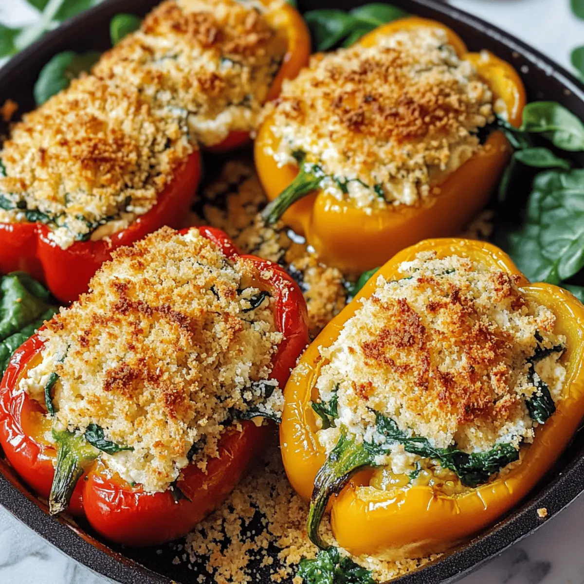 Diese Kräuter-Ricotta gefüllten Paprika sind perfekt für die Vorbereitung im Voraus! Du kannst die Paprikahälften bis 24 Stunden vorher backen und einfrieren, um Zeit zu sparen. Bereite zudem die Füllung aus Ricotta, Spinat, Käse und Gewürzen bis 3 Tage vorher vor und bewahre sie in einem luftdichten Behälter im Kühlschrank auf. Beim Servieren fülle einfach die vorgebackenen Paprika mit der Füllung, streue die Semmelbrösel darüber und backe sie bei 176 °C für etwa 30 Minuten, bis sie durchgewärmt sind. Achte darauf, das überschüssige Wasser nach dem Backen der Paprikahälften abtropfen zu lassen, um eine matschige Konsistenz zu vermeiden. So behältst du die Qualität und erfreust dich trotzdem an diesem köstlichen, zeitsparenden Gericht!