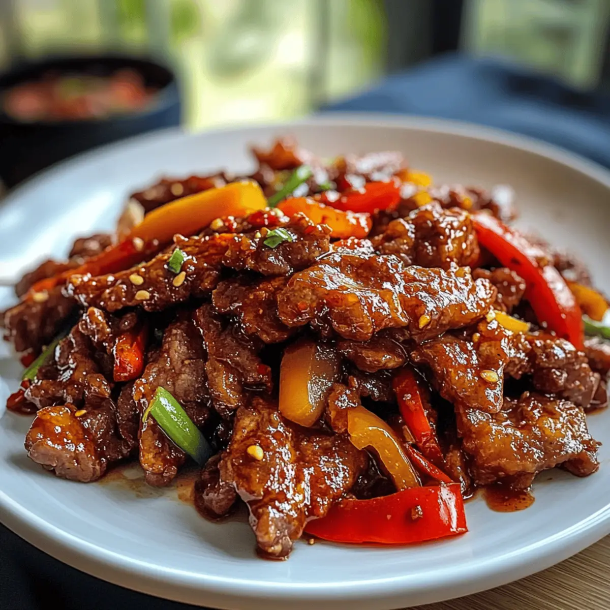 Der Duft von knusprigem Rindfleisch mit einer unwiderstehlichen süß-scharfen Sauce zieht mich immer wieder in die Küche. Heute lade ich euch ein, meine Lieblingsversion von Krossem Chili-Rindfleisch auszuprobieren, die nicht nur in unter 30 Minuten auf dem Tisch steht, sondern auch vollgepackt ist mit abwechslungsreichen Aromen. Dieses Rezept ist perfekt für hektische Abende oder wenn ihr eure Gäste mit etwas Besonderem überraschen möchtet. Und das Beste daran? Ihr könnt die Schärfe ganz nach eurem Geschmack anpassen und sogar verschiedene Gemüse hinzufügen! Neugierig, wie einfach es ist, ein Restaurant-Feeling nach Hause zu holen? Lasst uns gemeinsam kochen! Warum wirst du dieses Rezept lieben? Einfachheit: Die Zubereitung ist unkompliziert und benötigt nur grundlegende Kochfähigkeiten, perfekt für den Feierabend. Vielseitigkeit: Du kannst die Schärfe individuell anpassen und an dein Geschmack anpassen oder sogar eine Vielzahl von Gemüse einfügen, wie in unseren Mediterranen Rindfleisch Bowls oder dem Rindfleisch Paprika Reis. Schnelligkeit: In weniger als 30 Minuten ist dieses Gericht fertig, sodass du stressfrei genießen kannst. Vielfältiger Genuss: Egal ob für ein schnelles Abendessen unter der Woche oder eine kleine Feier, dieses Rezept kommt bei jedem gut an! Einzigartiger Geschmack: Die Kombination aus knusprigem Rindfleisch und einer süß-scharfen Sauce bietet ein Geschmackserlebnis, das an Restaurant-Küche erinnert. Zum Garnieren empfehle ich frische Kräuter oder Avocado – ein leckerer Abschluss! Krosse Chili-Rindfleisch Zutaten Für das Rindfleisch Flank Steak (250g) – Hauptprotein, zart und ideal zum schnellen Braten. Substitution: Sirloin kann eine ähnliche Textur bieten. Maisstärke (1/2 Tasse) – Beschichtung, die dem Rindfleisch Knusprigkeit verleiht. Substitution: Kartoffelstärke ist eine gute Alternative. Gemüseöl (zum Frittieren) – Gewährleistet eine knusprige Textur. Hinweis: Achte darauf, die Pfanne nicht zu überfüllen, um die Öltemperatur zu halten. Für die Sauce Sojasauce (1/4 Tasse) – Basis für die Sauce und sorgt für umami Geschmack. Hinweis: Niedriger Natriumgehalt kann für eine gesündere Option verwendet werden. Chili-Paste (2 EL) – Verleiht dem Gericht Schärfe; anpassbar nach Geschmack. Substitution: Süße Chili-Sauce eignet sich für eine mildere Version. Brauner Zucker (2 EL) – Balanciert die Schärfe mit Süße. Substitution: Weißer Zucker kann verwendet werden, könnte aber den Geschmack beeinflussen. Für das Gemüse Paprika (1) – Fügt Farbe, Geschmack und Nährstoffe hinzu. Substitution: Andere Gemüse wie Zuckerschoten oder Brokkoli können ebenfalls verwendet werden. Dieses Krosse Chili-Rindfleisch ist nicht nur schnell zubereitet, sondern lässt sich auch ganz nach deinen Vorlieben anpassen! Schritt-für-Schritt-Anleitung für Krosse Chili-Rindfleisch Step 1: Zutaten vorbereiten Schneide das Flank Steak gegen die Faser in dünne Streifen. Dies sorgt dafür, dass das Fleisch zart bleibt und die Marinade gut einzieht. Lege die geschnittenen Stücke in eine Schüssel und halte sie bereit, während du die restlichen Zutaten vorbereitest. Step 2: Rindfleisch panieren Wälze die Fleischstreifen gründlich in der Maisstärke, sodass sie gleichmäßig bedeckt sind. Dies gibt dem Rindfleisch die gewünschte Knusprigkeit. Achte darauf, überschüssige Stärke abzuschütteln, um die richtige Textur beim Frittieren zu gewährleisten. Step 3: Öl erhitzen Erhitze in einer großen Pfanne ausreichend Gemüseöl bei mittlerer bis hoher Hitze, bis es zu schimmern beginnt. Dies deutet darauf hin, dass das Öl heiß genug ist, um die Rindfleischstreifen knusprig zu frittieren. Überfülle die Pfanne nicht, um ein perfektes Ergebnis zu erzielen. Step 4: Rindfleisch frittieren Füge die panierten Rindfleischstreifen in kleinen Portionen in das heiße Öl hinzu. Brate sie für 3-4 Minuten, bis sie goldbraun und knusprig sind. Drehe die Stücke gegebenenfalls um, um eine gleichmäßige Bräunung zu erreichen. Lasse das fertige Fleisch auf Küchenpapier abtropfen. Step 5: Sauce zubereiten Reduziere die Hitze in derselben Pfanne und füge die gewürfelte Paprika hinzu. Sauté die Paprika für etwa 2 Minuten, bis sie weich wird. Füge dann die Sojasauce, Chili-Paste und den braunen Zucker hinzu. Rühre alles gut um, sodass die Aromen sich verbinden. Step 6: Rindfleisch kombinieren Gib das knusprige Rindfleisch zurück in die Pfanne und vermische es sorgfältig mit der Sauce und den Paprika. Erhitze alles für weitere 2-3 Minuten, bis das Fleisch gut durchzogen und heiß ist. Die Sauce sollte die Rindfleischstreifen gleichmäßig umhüllen. Step 7: Servieren Richte das Krosse Chili-Rindfleisch auf einem Teller an und genieße es sofort. Serviere es am besten mit duftendem Jasminreis oder Wokgemüse, um das perfekte asiatische Erlebnis zu kreieren. Achte darauf, garnierte frische Kräuter für zusätzlichen Geschmack hinzuzufügen! Aufbewahrungstipps für Krosses Chili-Rindfleisch Zimmertemperatur:: Krosses Chili-Rindfleisch sollte idealerweise sofort serviert werden, da es bei Raumtemperatur schnell seine Knusprigkeit verliert. Kühlschrank:: Reste können bis zu 3 Tage im Kühlschrank aufbewahrt werden. Stelle sicher, dass sie in einem luftdichten Behälter gelagert werden, um die Frische zu bewahren. Gefrierer:: Für eine längere Haltbarkeit kannst du das Krosse Chili-Rindfleisch bis zu 2 Monate einfrieren. Achte darauf, es gut einzupacken, um Gefrierbrand zu vermeiden. Wiedererhitzen:: Zum Wiedererhitzen sollte das Rindfleisch im Ofen oder in der Pfanne bei mittlerer Hitze erhitzt werden, um die Knusprigkeit wiederherzustellen. Expert Tips für Krosse Chili-Rindfleisch Frische Zutaten: Verwende frische Zutaten für den besten Geschmack; gerade das Rindfleisch bringt den einzigartigen Charakter des Krossen Chili-Rindfleischs zur Geltung. Richtige Temperatur: Achte darauf, das Öl auf die richtige Temperatur zu bringen; zu