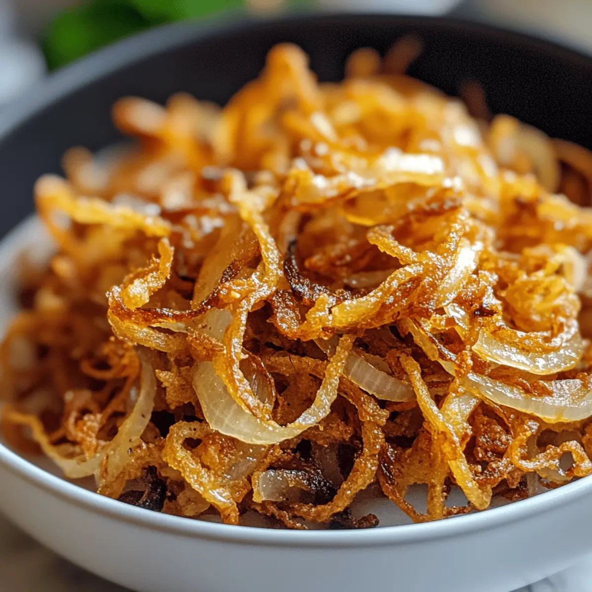 Während ich in der Küche stehe, entfaltet sich der verlockende Duft von frisch gebratenen Zwiebeln – ein beruhigender Klassiker. Doch wissen Sie, dass wir diese köstliche Erfahrung jetzt in eine gesunde Form bringen können? Mit meinem Rezept für Luftfritteuse knusprige Zwiebeln genießen Sie den vollen Geschmack ohne schlechtes Gewissen. Diese knusprigen Zwiebeln sind perfekt für das Topping von Burgern und Salaten oder einfach als Snack, und das Beste daran: Sie sind deutlich fettärmer als die herkömmlich frittierten Varianten. In nur wenigen Minuten zaubern Sie eine köstliche, leichte Beilage, die jeder liebt. Neugierig auf das Rezept? Lassen Sie uns gemeinsam in die Welt der gesunden Delikatessen eintauchen! Warum knusprige Zwiebeln lieben? Gesundheitlich vorteilhaft: Diese Luftfritteuse knusprige Zwiebeln sind die perfekte Möglichkeit, unbesorgt zu snacken – ohne den zusätzlichen Öl- und Fettgehalt traditioneller Frittiermethoden. Unkompliziert: Der zubereitende Prozess ist einfach und benötigt nur grundlegende Kochkünste. Vielseitig verwendbar: Ob als Topping für Salate und Burger oder als süchtig machender Snack – sie passen zu jeder Gelegenheit. Schmackhafte Textur: Wer könnte dem knusprigen Biss widerstehen? Diese Zwiebeln bieten den perfekten Crunch ohne das schwere Gefühl von Frittieröl. Kinderfreundlich: Auch die Kleinsten werden diese gesunden Leckerbissen lieben, sodass sie sich hervorragend als Familienessen eignen. Weitere kreative Varianten können Sie mit verschiedenen Gewürzen ausprobieren, um Ihre eigenen Lieblingsgeschmäcker zu kreieren! Luftfritteuse knusprige Zwiebeln Zutaten Für den Teig 1 große Zwiebel – Hauptzutat, die für Geschmack und Crunch sorgt. 1/2 Tasse Allzweckmehl – Bildet die Basisbeschichtung für die Zwiebelringe. 1 Ei – Dient als Bindemittel für die Semmelbrösel. Für die Panade 1/2 Tasse Panko-Semmelbrösel – Sorgt für eine extra knusprige äußere Schicht. 1/2 Teelöffel Knoblauchpulver – Fügt Geschmack hinzu; frischer, gehackter Knoblauch kann verwendet werden für ein intensiveres Aroma. 1/2 Teelöffel Paprika – Verstärkt den Geschmack und sorgt für Farbe; geräucherte Paprika kann für eine interessante Geschmacksnote genutzt werden. Salz und Pfeffer nach Geschmack – Für die Würze; die abschmeckung kann nach persönlicher Vorliebe angepasst werden. Sonstiges Olivenöl-Spray – Fördert eine goldbraune und knusprige Textur ohne übermäßigen Ölgebrauch. Mit diesen Zutaten sind Ihre Luftfritteuse knusprige Zwiebeln im Handumdrehen zubereitet! Schritt-für-Schritt-Anleitung für Luftfritteuse knusprige Zwiebeln Step 1: Zwiebeln vorbereiten Schälen Sie die große Zwiebel und schneiden Sie sie in gleichmäßig dünne Ringe. Achten Sie darauf, dass die Ringe nicht dicker als 0,5 cm sind, um ein gleichmäßiges Garen zu gewährleisten. Legen Sie die Zwiebelringe auf einen Teller und stellen Sie sicher, dass sie bereit für den nächsten Schritt sind. Step 2: Panierstation einrichten Bereiten Sie drei separate Schüsseln vor: Füllen Sie die erste mit dem Allzweckmehl, die zweite mit dem geschlagenen Ei und die dritte mit einer Mischung aus Panko-Semmelbröseln, Knoblauchpulver, Paprika, Salz und Pfeffer. Diese Struktur hilft Ihnen, die Zwiebelringe effektiv zu panieren und sorgt für einen perfekten Crunch bei Ihren Luftfritteuse knusprigen Zwiebeln. Step 3: Zwiebeln panieren Nehmen Sie einen Zwiebelring und tauchen Sie ihn zuerst in das Mehl, dann in das geschlagene Ei und schließlich in die Semmelbrösel-Mischung. Achten Sie darauf, dass jeder Ring gut mit der Panade bedeckt ist. Wiederholen Sie diesen Vorgang für alle Zwiebelringe und legen Sie sie auf einen sauberen Teller, während Sie den Air Fryer vorbereiten. Step 4: Luftfritteuse vorheizen Heizen Sie Ihre Luftfritteuse auf 190 °C (375 °F) für etwa 3-5 Minuten vor. Dies stellt sicher, dass die Zwiebeln gleichmäßig und schnell garen, wodurch sie schön knusprig werden. Nutzen Sie die Zeit, um sicherzustellen, dass alle Zwiebelringe bereit sind. Step 5: Zwiebeln frittieren Sprayen Sie den Korb der Luftfritteuse leicht mit Olivenöl-Spray, um ein Ankleben zu verhindern. Legen Sie die panierten Zwiebelringe in einer einzigen Schicht in den Korb, ohne sie zu überladen. Airfryen Sie die Zwiebeln für 8-10 Minuten, und wenden Sie sie nach der Hälfte der Zeit, bis sie goldbraun und knusprig sind. Step 6: Servieren Nehmen Sie die luftfrittierten Zwiebeln vorsichtig aus der Fritteuse und lassen Sie sie für einige Sekunden auf einem mit Küchenpapier ausgelegten Teller abtropfen. Servieren Sie die Luftfritteuse knusprigen Zwiebeln sofort als köstliches Topping für Burger, Salate oder einfach als schmackhaften Snack. Expert Tips für Luftfritteuse knusprige Zwiebeln • Gut beschichtet: Achten Sie darauf, dass die Zwiebelringe gleichmäßig mit der Panade bedeckt sind, um den besten Crunch zu erzielen. • Nicht überladen: Vermeiden Sie es, zu viele Zwiebelringe gleichzeitig in die Luftfritteuse zu legen, um eine gleichmäßige Garung zu gewährleisten. • Frisch servieren: Diese luftfrittierten Zwiebeln schmecken am besten frisch zubereitet; lagern Sie sie nicht länger als einen Tag in einem luftdichten Behälter. • Re-krossen: Falls Sie Reste haben, können Sie die Zwiebeln einige Minuten in der Luftfritteuse aufwärmen, um die Knusprigkeit zurückzugewinnen. • Variationen ausprobieren: Experimentieren Sie mit verschiedenen Zwiebelarten und Gewürzen, um Ihre persönliche Lieblingsversion der Luftfritteuse knusprige Zwiebeln zu kreieren. Aufbewahrungstipps für Luftfritteuse knusprige Zwiebeln Raumtemperatur: Lagern Sie die knusprigen Zwiebeln nicht länger als eine Stunde bei Raumtemperatur, um ihre Frische zu bewahren und ein Verweichen zu vermeiden. Kühlschrank: Bewahren Sie die Reste in einem luftdichten Behälter im Kühlschrank auf, wo sie bis zu einem Tag frisch bleiben. Gefrierer: Für längere Aufbewahrung können Sie di