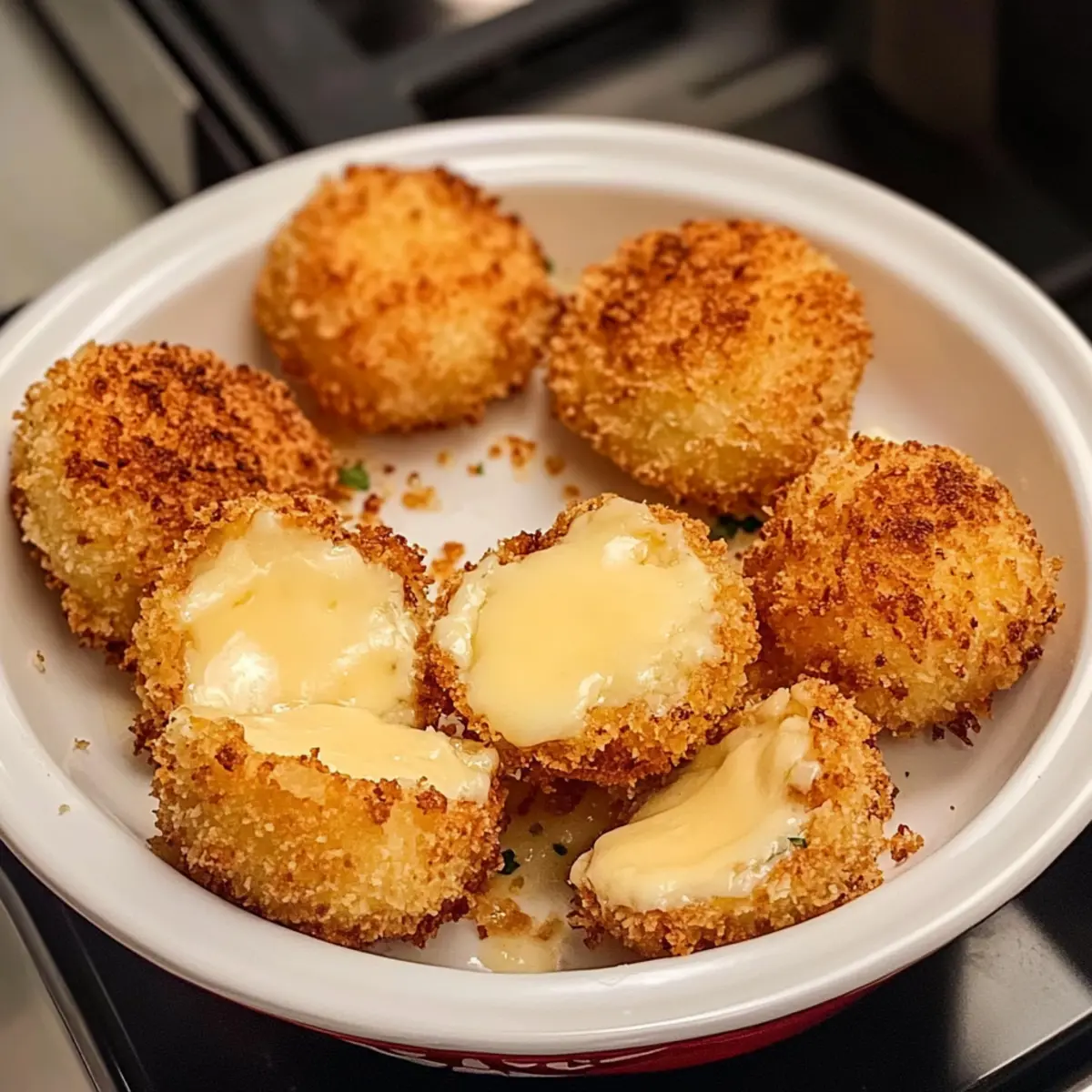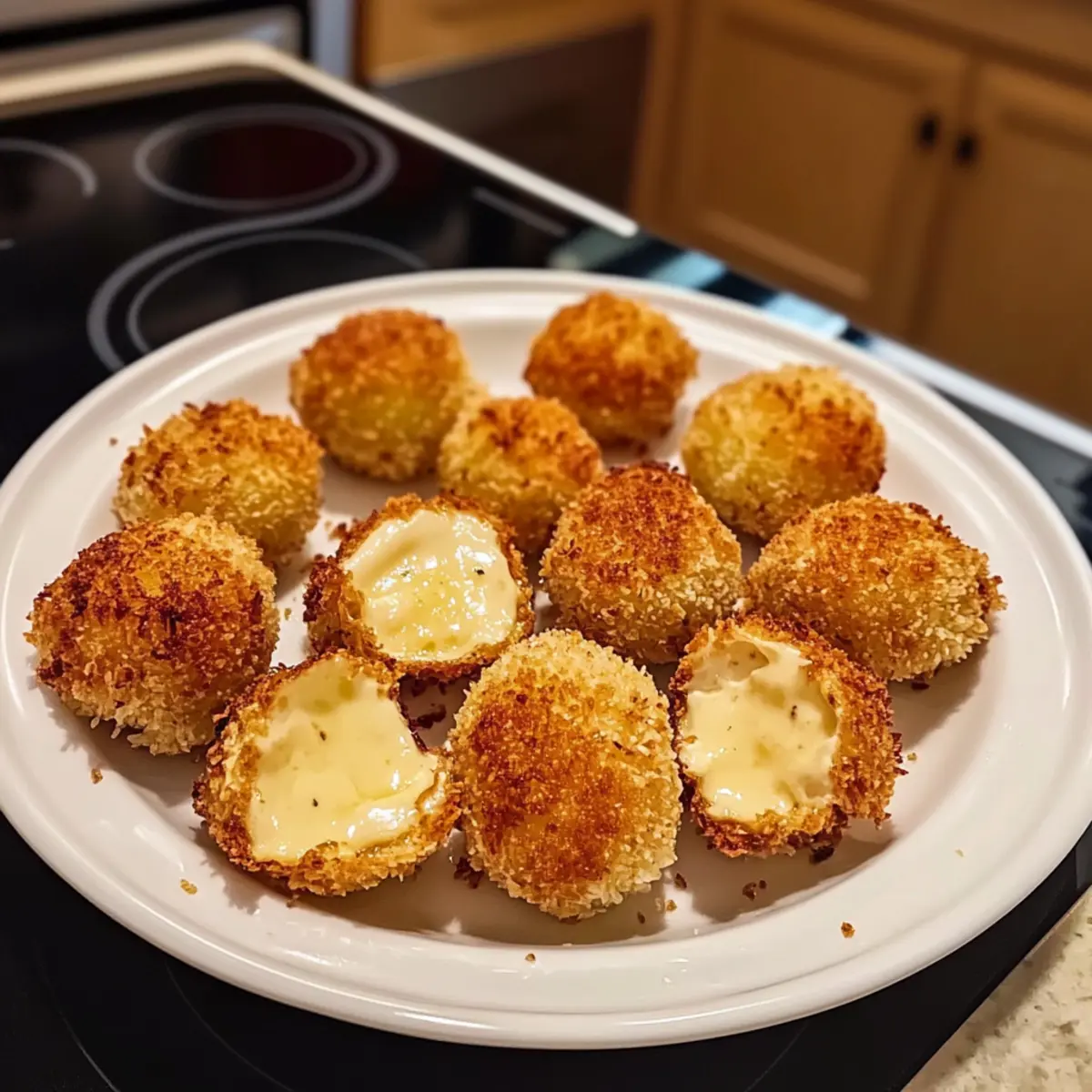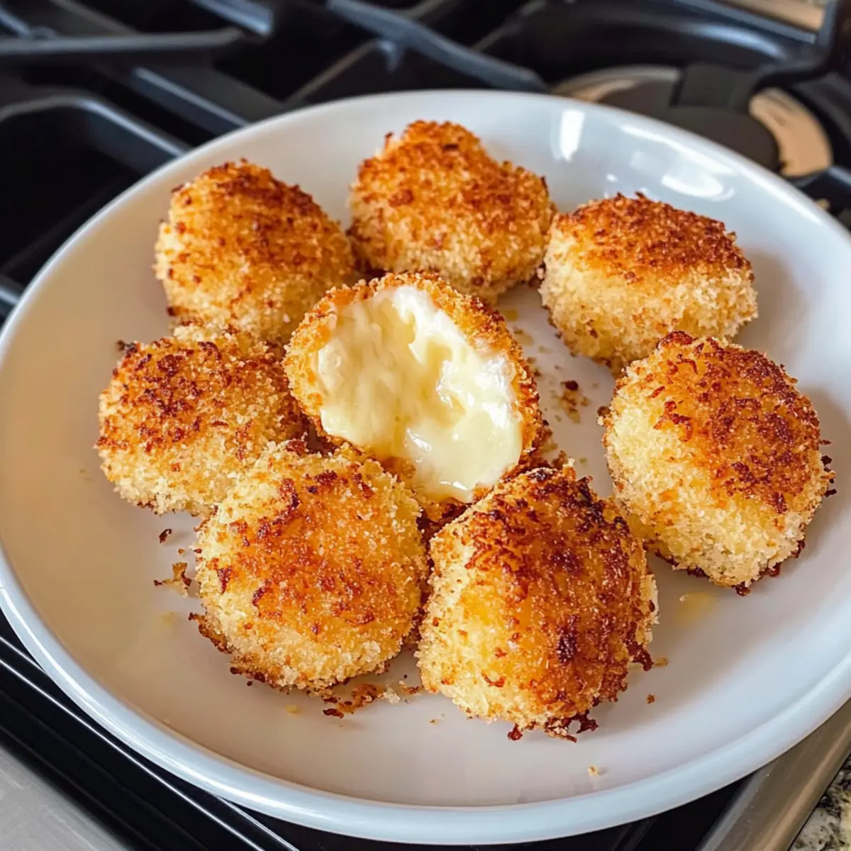 Wenn ich an gemütliche Abende mit Freunden denke, fällt mir oft der Moment ein, als ich das erste Mal luftgebackenen Babybel Käse zubereitet habe. Der knackige, goldene Überzug umschließt den warmen, schmelzenden Käse und sorgt für einen unwiderstehlichen Genuss, der jeden Snackabend verwandelt. Diese luftgebackenen Babybel Käsebissen sind nicht nur ein Hit bei großen und kleinen Käseliebhabern, sondern auch eine gesündere Alternative zu traditionellen, frittieren Snacks. In weniger als 15 Minuten sind sie bereit zum Servieren, perfekt für Partys oder einfach zum Snacken zwischendurch. Neugierig, wie du dieses köstliche Rezept in deiner Küche umsetzen kannst? Lass uns gemeinsam eintauchen! Warum wirst du dieses Rezept lieben? Einfachheit pur: Die Zubereitung ist unkompliziert und erfordert nur grundlegende Kochfähigkeiten. Knuspriger Biss: Der goldene Pankoteig bietet einen perfekten Crunch, der mit dem cremigen, schmelzenden Käse kombiniert wird. Gesunde Alternative: Diese luftgebackenen Käsebissen sind deutlich kalorienbewusster als ihre frittierten Pendants und dennoch voller Geschmack. Vielseitiger Genuss: Du kannst verschiedene Käsevarianten ausprobieren, sei es Gouda, Cheddar oder andere Sorten – perfekt für jeden Geschmack! Schnell zubereitet: In weniger als 15 Minuten sind diese Leckereien fertig, ideal für spontane Snack-Momente oder gemütliche Abende mit Freunden. Party-Hit: Egal, ob als Appetizer oder Snack für die Kinder, diese Käsebissen werden immer ein Highlight sein. Probiere sie mit verschiedenen Dips wie Marinara oder würzigem Aioli für noch mehr Genuss! Luftgebackener Babybel Käse Zutaten • Um vielseitige und köstliche luftgebackene Babybel Käse Bites zuzubereiten, sind die folgenden Zutaten erforderlich: Für den Käse Babybel Käserunden – Hauptbestandteil, sorgt für ein cremiges, schmelzendes Innere; du kannst auch andere Käse wie Mozzarella oder Gouda verwenden. Für die Panade Weizenmehl – Hilft der Panade, am Käse zu haften; für eine glutenfreie Option verwende glutenfreies Mehl. Eier – Binden die Panade am Käse; für eine vegane Variante sind Flax-Eier oder commercial egg replacer eine gute Wahl. Milch – Vereinfacht das Eiemischung für bessere Haftung; optional, kann weggelassen werden. Panko-Semmelbrösel – Sorgt für eine leichte, knusprige Textur; reguläre Semmelbrösel können ebenfalls verwendet werden. Knoblauchpulver, Zwiebelpulver, geräuchertes Paprika – Verbessert das Geschmacksprofil der Panade; nach Geschmack anpassen. Salz und Pfeffer – Grundlegende Gewürze zur Geschmacksverstärkung. Olivenölspray – Unterstützt beim Knusprigen im Air Fryer; kann mit Avocado-Ölspray ersetzt werden. Für die Garnitur Frisch gehackte Petersilie (optional) – Eine optionale Garnitur, die das Gericht ansprechend ergänzt. Mit diesen Zutaten wird dein luftgebackener Babybel Käse zum wunderbaren Genuss – einfach zuzubereiten und unwiderstehlich köstlich! Schritt-für-Schritt-Anleitung für Luftgebackener Babybel Käse Step 1: Vorbereitende Schüsseln Richte drei flache Schüsseln ein: Eine mit Weizenmehl, das mit Salz und Pfeffer gewürzt ist, eine mit geschlagenen Eiern (optional mit etwas Milch), und eine dritte mit Panko-Semmelbröseln, die mit Knoblauchpulver, Zwiebelpulver, geräuchertem Paprika sowie Salz und Pfeffer gewürzt sind. Stelle sicher, dass alles gut vermischt ist, um den Geschmack zu intensivieren. Step 2: Käse vorbereiten Wickele die Babybel Käserunden aus und tupfe sie mit einem Papiertuch trocken. Durch das Trocknen hält die Panade besser am Käse, was für den luftgebackenen Babybel Käse entscheidend ist. Achte darauf, dass sie vollständig trocken sind, damit die Kruste knusprig wird. Step 3: Käse panieren Tauche jede Käserunde nacheinander zuerst in das gewürzte Mehl, dann in die Eiermischung, und schließlich in die Panko-Semmelbrösel. Für einen extra knusprigen luftgebackenen Babybel Käse kannst du diesen Schritt mit Ei und Semmelbröseln wiederholen, um eine doppelte Panade zu erzeugen. Achte darauf, dass jede Runde gleichmäßig bedeckt ist. Step 4: Käse kühlen Lege die panierten Käserunden auf ein mit Backpapier ausgelegtes Blech und stelle sie für 10–15 Minuten in das Gefrierfach. Diese Kühlzeit hilft, die Panade zu festigen und verhindert, dass der Käse während des Air Fryens ausläuft. Step 5: Air Fryer vorheizen Heize den Air Fryer auf 193°C (380°F) für etwa 3–5 Minuten vor und sprühe den Korb leicht mit Olivenölspray ein. Dies sorgt dafür, dass der luftgebackene Babybel Käse schön knusprig wird. Bereite alles vor, während der Air Fryer aufheizt. Step 6: Luftfrittieren Lege die Käsebissen in einer einzigen Schicht in den Korb des Air Fryers. Sprühe die Oberseite der Käserunden leicht mit Olivenölspray ein und frittiere sie für 5–7 Minuten. Wende die Käsebissen nach der Hälfte der Zeit, bis sie goldbraun und knusprig sind und das Innere warm und schmelzend wird. Step 7: Servieren Lasse die luftgebackenen Babybel Käsebissen 1–2 Minuten ruhen, bevor du sie anrichtest. Garniere sie optional mit frisch gehackter Petersilie und serviere sie sofort mit köstlichen Dips wie Marinara oder würzigen Aioli. Genieße diese herzhafte Delikatesse! Was passt zu Luftgebackenem Babybel Käse? Der luftgebackene Babybel Käse ist nicht nur ein Genuss für sich, sondern kann auch durch die richtigen Beilagen zu einem unvergesslichen Erlebnis werden. Knoblauchbrot: Das knusprige, aromatische Brot ergänzt den schmelzenden Käse perfekt und sorgt für eine köstliche Kombination. Es bietet die ideale Grundlage, um die Käsebissen zu genießen. Frischer Salat: Ein leichter, erfrischender Salat mit knackigen grünen Blättern und einem spritzigen Dressing bringt eine frische Note ins Spiel und balanciert die warme, cremige Textur des Käse. Dips: Eine Auswahl an Dips wie marinara, würzige Aioli oder sogar Honig senkt den Genussfaktor noch weiter. Diese Beila