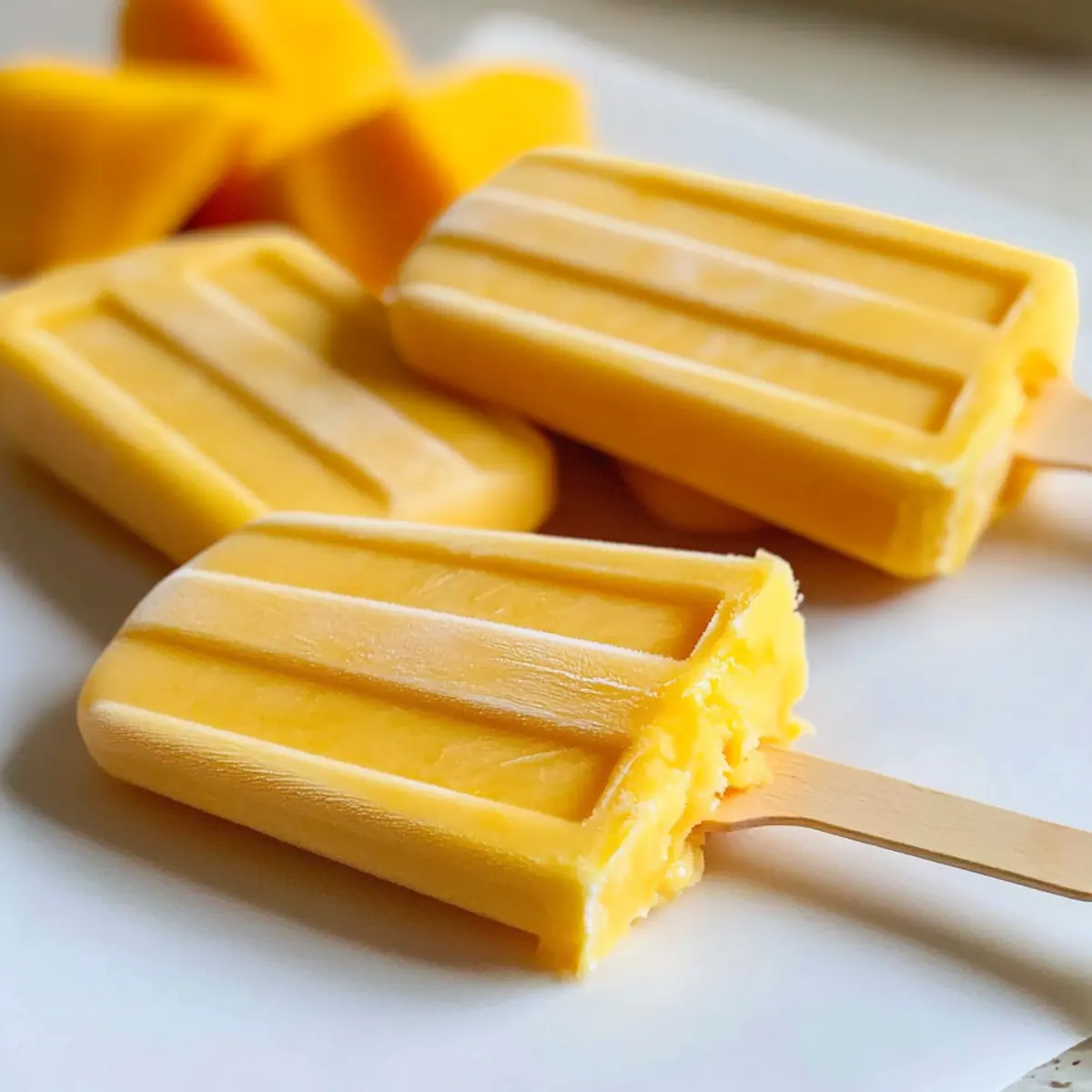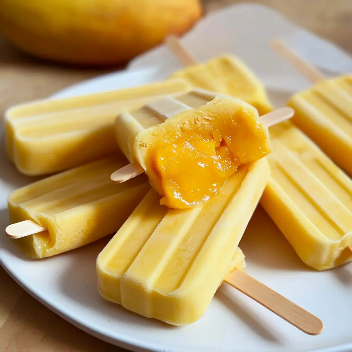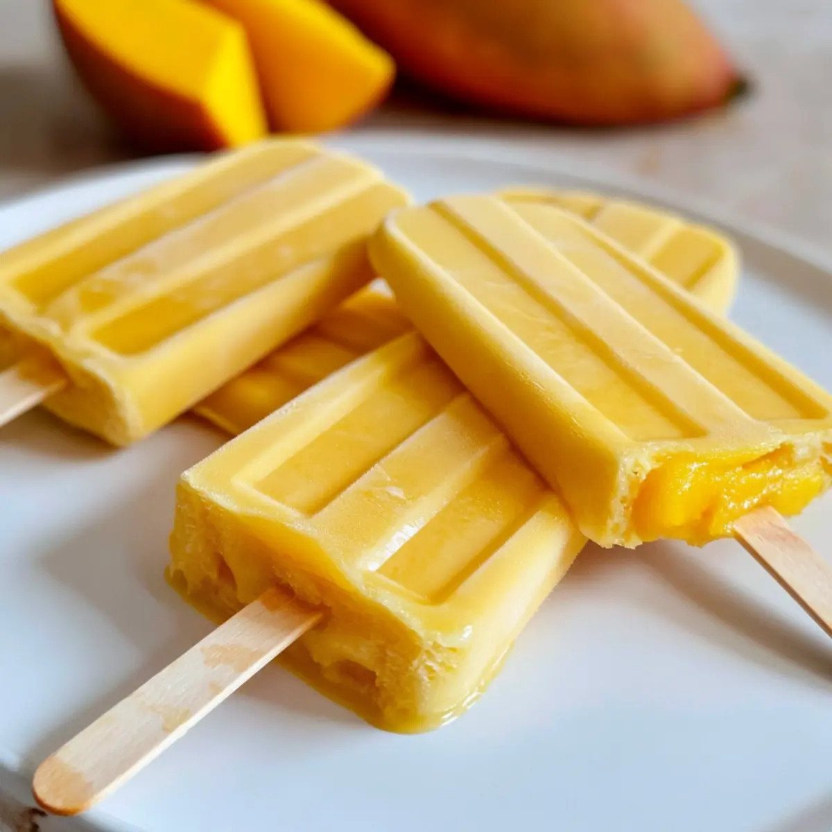 Selbstgemachtes Mango-Eis am Stiel mit nur drei Zutaten: erfrischend, gesund und perfekt für heiße Tage.