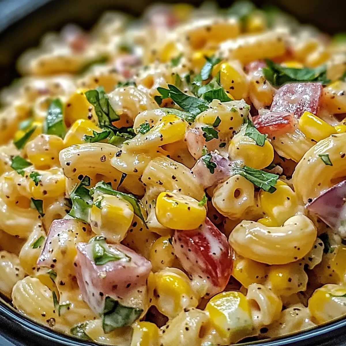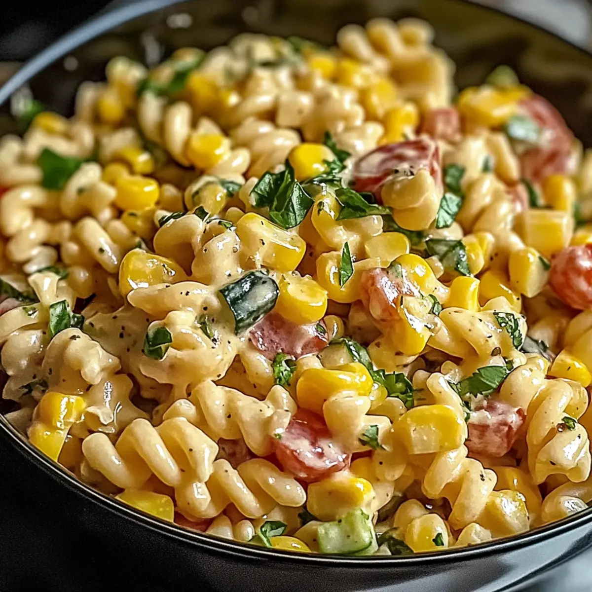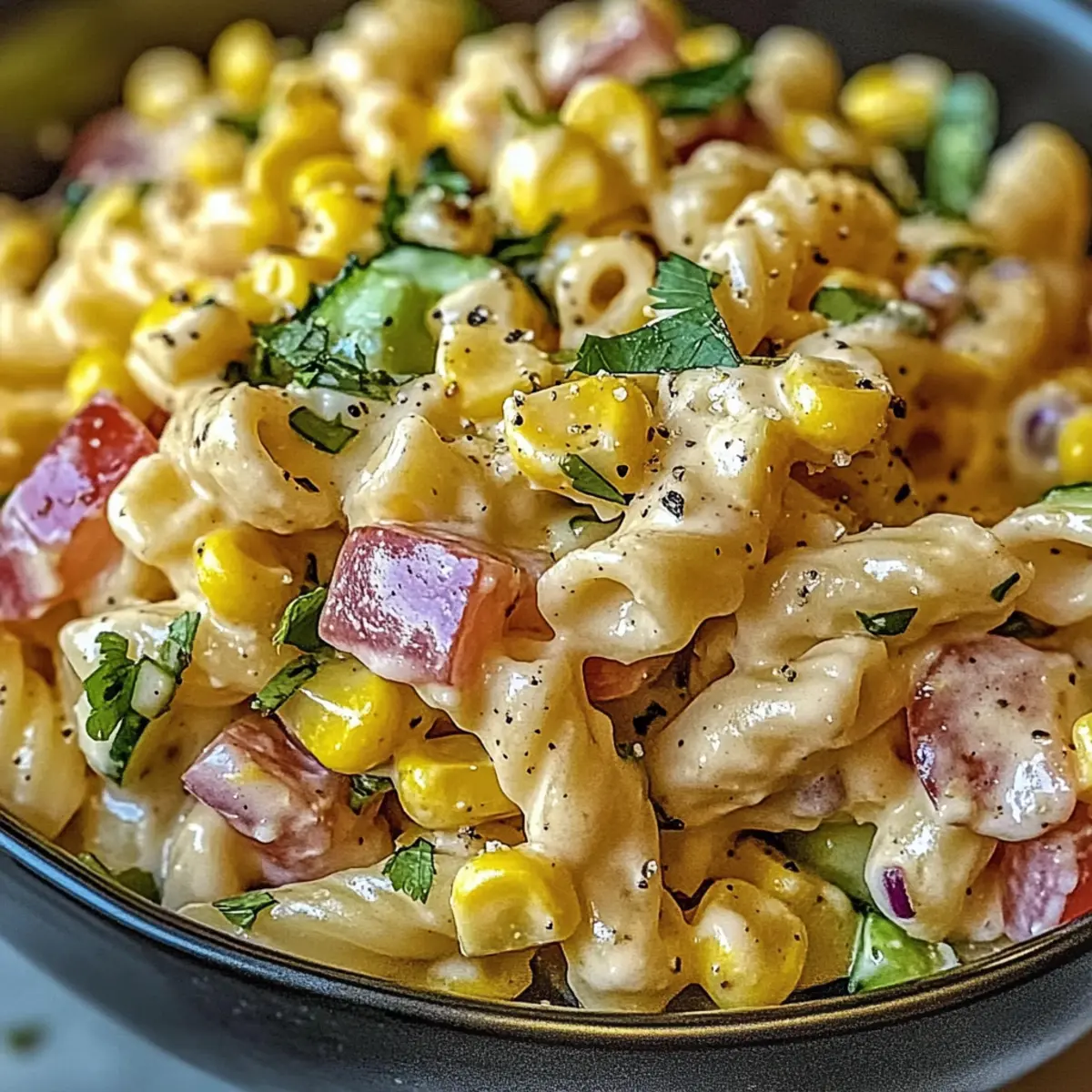 Dieses Rezept für Mexikanische Straßenmais-Pasta kombiniert süßen Mais, cremiges Dressing und frisches Gemüse für einen erfrischenden Sommergenuss.