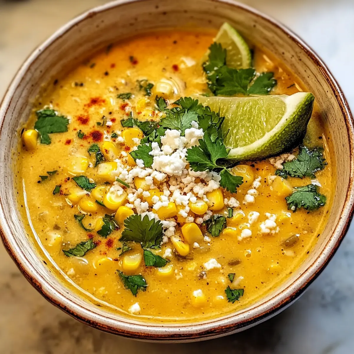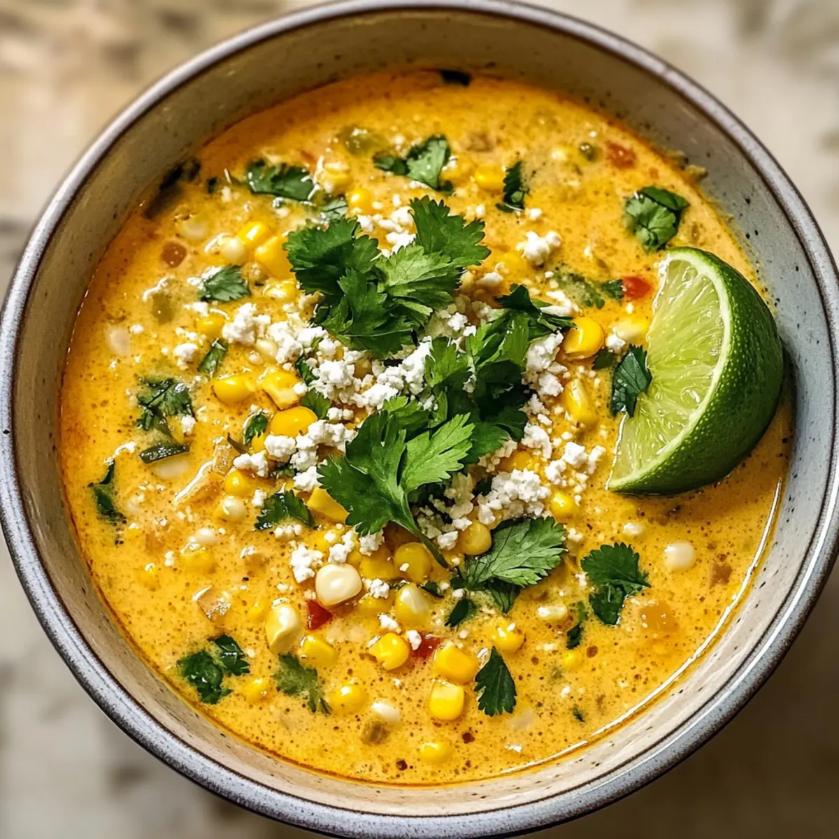 Die Aromen von Mexiko erwecken in mir eine unbändige Sehnsucht nach Straßenessen! Wenn ich an meine letzte Reise nach Mexiko City denke, spüre ich immer noch die Hitze der Sonne und die Freude der lebhaften Märkte. Heute lade ich dich ein, diese Erinnerungen mit einer köstlichen Mexikanischen Straßenmais-Suppe wieder aufleben zu lassen. Dieses Rezept kombiniert eine cremige Textur mit süßem Mais, rauchigen Gewürzen und einem spritzigen Limettenkick – perfekt für jede Jahreszeit. Die Zubereitung ist schnell und einfach, sodass du für dein nächstes Treffen mit Freunden ein echtes Highlight zaubern kannst. Und das Beste daran? Du kannst es ganz nach deinem Geschmack anpassen und sogar vegan genießen. Bist du bereit, dich in diese Geschmäcker zu verlieben? Warum ist diese Suppe ein Muss? Einfache Zubereitung: Mit nur wenigen Zutaten und unkomplizierten Schritten gelingt diese Mexikanische Straßenmais-Suppe im Handumdrehen. Vielseitig anpassbar: Ob mit Sahne oder einer veganen Variante, jeder kann seinen eigenen Twist hinzufügen. Herzhafter Geschmack: Die Kombination aus süßlichem Mais, rauchiger Paprika und frischem Limettensaft kreiert ein intensives Geschmackserlebnis. Familienfreundlich: Perfekt für gesellige Abende, wird diese Suppe bestimmt alle begeistern. Lässt sich gut vorbereiten: Bereite sie im Voraus zu und genieße die Aromen, die sich über Nacht noch vertiefen! Lass dich inspirieren und entdecke auch unsere gesundheitliche Aspekte dieser köstlichen Suppe! Mexikanische Straßenmais-Suppe Zutaten Hinweis: Hier sind alle Zutaten, die du für die Zubereitung der leckeren Mexikanischen Straßenmais-Suppe benötigst. Für die Basis Olivenöl – sorgt für eine aromatische Grundlage beim Anbraten. Ersetze es durch Avocadoöl für einen leichten Geschmack. Zwiebel (1, gewürfelt) – verleiht Süße und Tiefe. Du kannst auch Schalotten verwenden, wenn du es milder magst. Knoblauch (1 Teelöffel, gehackt) – verbessert den Gesamtgeschmack. Im Notfall kann auch Knoblauchpulver verwendet werden. Jalapeño (½, gewürfelt) – bringt Wärme und einen kleinen Kick. Verwende grüne Paprika für weniger Schärfe oder andere milde Paprika. Für die Suppe Maiskörner (4 Tassen) – die Hauptzutat, die süßlich ist. Frischer, gefrorener oder auch Konservenmais sind akzeptabel. Gemahlener Kreuzkümmel (1 Teelöffel) – bringt Erdigkeit und Wärme. Keine Substitution nötig, aber Koriander könnte einen anderen Geschmacksprofil hinzufügen. Geräuchertes Paprikapulver (1 Teelöffel) – sorgt für eine rauchige Tiefe. Regulares Paprikapulver bringt nicht die gleiche Note. Salz (½ Teelöffel) – verbessert die Aromen insgesamt. Nach Geschmack anpassen. Schwarzer Pfeffer (1 Teelöffel, frisch gemahlen) – fügt subtile Schärfe hinzu. Anpassungen nach persönlicher Vorliebe möglich. Hühner- oder Gemüsebrühe (4 Tassen) – dient als Basis der Suppe. Wähle natriumarme Varianten für gesunde Optionen. Für die Cremigkeit Schlagsahne oder Halbfett-Sahne (1 Tasse) – bringt Reichhaltigkeit und Cremigkeit. Ersetze sie durch Kokoscreme für eine milchfreie Option. Cotija-Käse (½ Tasse, zerbröckelt) – liefert einen salzigen und leicht säuerlichen Geschmack. Feta-Käse kann als ähnliche Alternative verwendet werden. Koriander (¼ Tasse, gehackt) – fügt Frische und Helligkeit hinzu. Kann weggelassen werden, wenn du es nicht magst. Limettensaft (von 1 Limette) – intensiviert die Aromen und fügt Säure hinzu. Zitronensaft kann als Ersatz dienen. Schritt-für-Schritt-Anleitung für die Mexikanische Straßenmais-Suppe Step 1: Zwiebel anbraten Erhitze ein großes Topf bei mittlerer Hitze und füge einen Esslöffel Olivenöl hinzu. Lasse das Öl 1 Minute warm werden, bevor du die gewürfelte Zwiebel hinzufügst. Sauté die Zwiebel für etwa 5 Minuten, bis sie weich und durchsichtig ist. Der Duft sollte die Küche erfüllen und dich auf die köstliche Suppe vorbereiten. Step 2: Knoblauch und Jalapeño hinzufügen Gib den gehackten Knoblauch und die gewürfelte Jalapeño in den Topf. Rühre die Mischung gut um und brate sie für weitere 2 Minuten an, bis sie aromatisch sind. Achte darauf, dass der Knoblauch nicht anbrennt, da er sonst bitter schmeckt. Diese Kombination wird die Grundlage der Mexikanischen Straßenmais-Suppe köstlich würzen. Step 3: Mais und Gewürze einrühren Füge die Maiskörner in den Topf und rühre gründlich um, damit sie mit den Aromen des Knoblauchs und der Zwiebel bedeckt sind. Streue dann den gemahlenen Kreuzkümmel, das geräucherte Paprikapulver, Salz und frisch gemahlenen schwarzen Pfeffer darüber. Brate alles für 2-3 Minuten an, bis die Maiskörner leicht warm und duftend sind. Step 4: Brühe hinzufügen und köcheln lassen Gieße die Hühner- oder Gemüsebrühe in den Topf und bringe die Mischung zum Köcheln. Lass die Suppe zum sanften Kochen kommen, reduziere die Hitze und lasse sie 15 Minuten leicht köcheln. Achte darauf, dass die Suppe nicht zu heftig kocht; sie sollte sanft blubbern, um die Aromen gut zu vereinen. Step 5: Suppe pürieren Nutze einen Pürierstab, um die Suppe teilweise zu pürieren. Mische gründlich, bis eine cremige Konsistenz entsteht, aber lasse einige Maisstücke für Textur darin. Dies verleiht der Mexikanischen Straßenmais-Suppe ihren charakteristischen Biss und Aroma. Wenn du keinen Pürierstab hast, kannst du auch eine normale Küchenmaschine verwenden. Step 6: Sahne und Käse einrühren Gib die Schlagsahne oder Halbfett-Sahne in die Suppe und rühre sie gut ein, bis sie vollständig integriert ist. Füge nun den zerbröckelten Cotija-Käse hinzu, die gehackten Korianderblätter und den Limettensaft. Erwärme alles zusammen für weitere 5 Minuten, bis die Suppe heiß ist und die Aromen miteinander verschmelzen. Step 7: Anrichten und Servieren Serviere die Mexikanische Straßenmais-Suppe heiß in Schalen und garniere sie nach Belieben mit frischen Korianderblättern, Limettenscheiben oder zusätzlichem