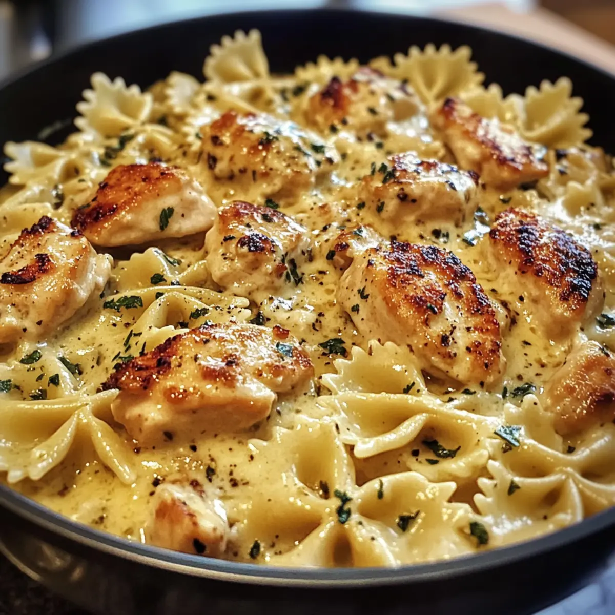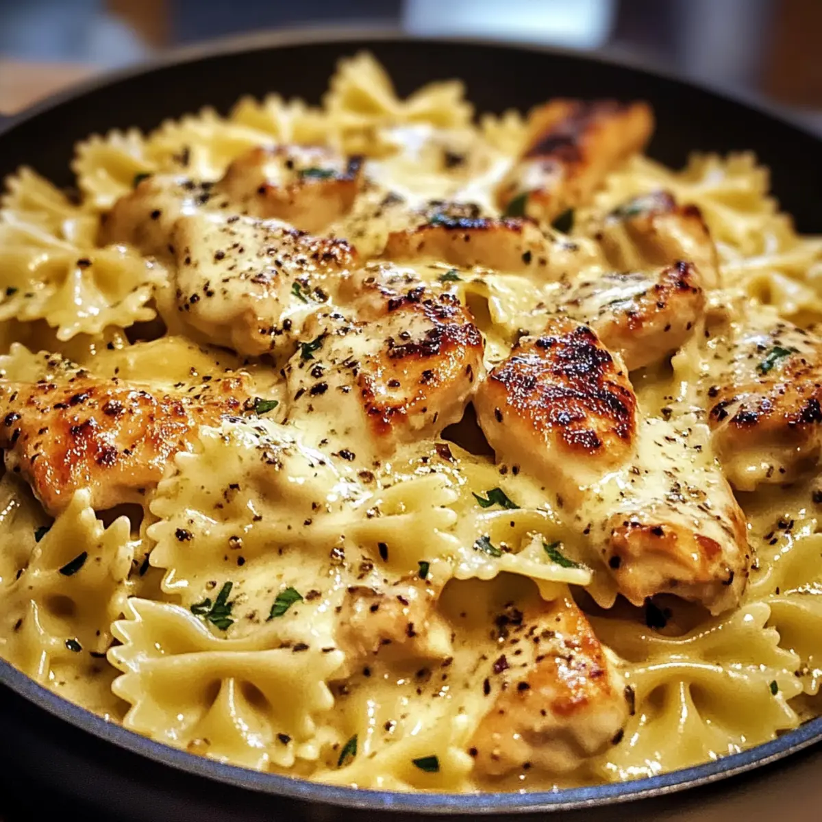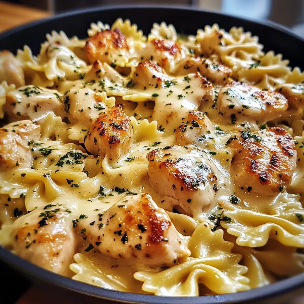 „Wie oft ertappe ich mich dabei, nach einem langen Tag einfach auf die nächste Pizza zuzugreifen, nur um dann ein schlechtes Gewissen zu haben? Mit diesem Rezept für die Mozzarella Knoblauchbutter Hähnchen Schleifen in cremiger Sauce kann ich endlich beides haben: eine schnelle Zubereitung und den unvergleichlichen Genuss von hausgemachter, herzlicher Kost. In nur 30 Minuten verwandelt sich ein hektischer Abend in ein wahres Geschmackserlebnis, das die gesamte Familie vereint. Die Kombination aus zartem Hähnchen, würzigem Knoblauch und schmelzender Mozzarella sorgt nicht nur für ein himmlisches Aroma, sondern auch für ein unvergessliches Esserlebnis – perfekt, um noch mehr Gemüse hinzuzufügen und so ganz nach eigenen Vorlieben zu variieren. Neugierig, wie du dieses Gericht nach deinem Geschmack anpassen kannst?“ Warum sollte ich dieses Rezept lieben? Schnelle Zubereitung: In nur 30 Minuten zauberst du ein köstliches Mahl, das ideal für hektische Wochentage ist. Cremige Verführung: Die Kombination aus heavy cream und Käse macht jede Portion besonders schmackhaft und gehaltvoll. Vielseitig anpassbar: Egal, ob du Gemüse hinzufügen oder eine vegetarische Variante mit Tofu wählen möchtest, dieses Rezept lässt sich nach deinem Geschmack gestalten. Herzliche Familienmahlzeit: Die Aromen von Knoblauch und Mozzarella schaffen ein Gefühl von Geborgenheit, das die ganze Familie anspricht. Schnell und weniger Abfall: Reste? Kein Problem! Diese Mozzarella Knoblauchbutter Hähnchen Schleifen lassen sich wunderbar im Kühlschrank aufbewahren und ergeben am nächsten Tag ein schnelles Mittagessen. Mozzarella Knoblauchbutter Hähnchen Zutaten • Möchtest du deine Küche mit verlockenden Aromen erfüllen? Hier sind die Zutaten, die du benötigst! Für die Pasta Schleifen-Pasta – Die perfekte Basis für das Gericht, Alternativen sind Penne oder Fusilli. Für das Hähnchen Olivenöl – Sorgt für eine reichhaltige Note und hilft, das Hähnchen anzubraten. Hähnchenbrust – Der Hauptbestandteil; für eine vegetarische Variante kannst du Kichererbsen oder Tofu verwenden. Italienische Gewürzmischung – Erhöht den Geschmack; je nach Vorliebe anpassen. Salz und Pfeffer – Unverzichtbar zur Würzung des Hähnchens; sie sorgen für ein rundes Geschmackserlebnis. Für die cremige Sauce Butter – Fügt der Sauce Cremigkeit und Tiefe hinzu. Gehackter Knoblauch – Ein unverzichtbares Aroma; frischer Knoblauch wird für den besten Geschmack empfohlen. Hühnerbrühe – Bringt Geschmack in die Sauce; vegetarische Brühe ist eine gute Alternative. Schlagsahne – Sorgt für die cremige Konsistenz der Sauce; für eine leichtere Version kann auch Halbfettcreme verwendet werden. Parmesankäse – Verleiht einen herzhaften, käsigen Geschmack; frisch gerieben ist am besten für das Schmelzen. Für das Topping Geriebener Mozzarella – Schmilzt zu einer köstlichen Perfektion; frischer Mozzarella sorgt für eine cremigere Textur. Gehackte Petersilie – Zum Garnieren und um das Gericht visuell ansprechender zu machen. Lass uns diesen schmackhaften Genuss kreieren! Step-by-Step Instructions für Mozzarella Knoblauchbutter Hähnchen Schleifen Step 1: Pasta kochen Bringe einen großen Topf mit Salzwasser zum Kochen. Füge die Schleifen-Pasta hinzu und koche sie für 8-10 Minuten, bis sie al dente sind. Sobald die Pasta fertig ist, gieße sie in ein Sieb ab und stelle sie beiseite. Vermeide es, die Pasta abzuspülen, um die Stärke zu erhalten, die hilft, die Sauce zu binden. Step 2: Hähnchen anbraten In einer großen Pfanne erhitze 2 Esslöffel Olivenöl bei mittlerer Hitze. Würze die Hähnchenbruststücke mit italienischen Gewürzen, Salz und Pfeffer. Brate das Hähnchen für 5-7 Minuten, bis es goldbraun und durchgegart ist. Nimm das Hähnchen aus der Pfanne und lege es auf einen Teller, sodass es etwas abkühlen kann. Step 3: Knoblauch anbraten In derselben Pfanne, in der das Hähnchen gebraten wurde, füge 2 Esslöffel Butter hinzu und lasse sie bei mittlerer Hitze schmelzen. Sobald die Butter vollständig geschmolzen ist, füge den gehackten Knoblauch hinzu und brate ihn für etwa 1 Minute, bis er aromatisch ist. Achte darauf, dass er nicht verbrennt, da dies den Geschmack beeinträchtigen würde. Step 4: Sauce zubereiten Gieße 250 ml Hühnerbrühe und 200 ml Schlagsahne in die Pfanne mit dem Knoblauch. Lasse die Mischung für 3-4 Minuten köcheln, bis sie leicht eindickt. Rühre regelmäßig um, damit nichts am Boden der Pfanne ansetzt. Diese cremige Sauce wird die Basis für die Mozzarella Knoblauchbutter Hähnchen Schleifen bilden. Step 5: Käse hinzufügen Jetzt ist es Zeit, 100 g frisch geriebenen Parmesan in die Sauce zu geben und gut umzurühren. Lass den Käse schmelzen, bis die Sauce schön cremig und glatt ist. Danach kannst du das gebratene Hähnchen in die Pfanne zurückgeben und alles gut vermischen, sodass die Hähnchenstücke gleichmäßig mit der Sauce bedeckt sind. Step 6: Pasta einmengen Füge die gekochte Schleifen-Pasta in die Pfanne hinzu und vermische alles gründlich, sodass die Pasta schön mit der cremigen Sauce ummantelt wird. Wenn die Mischung zu dick erscheint, kannst du etwas von dem aufbewahrten Nudelwasser hinzufügen, um die gewünschte Konsistenz zu erreichen. Step 7: Mozzarella hinzufügen Verteile 150 g geriebenen Mozzarella gleichmäßig über die Pasta. Decke die Pfanne mit einem Deckel ab und lasse sie bei niedriger Hitze für 2-3 Minuten stehen, bis der Käse schmilzt und eine köstliche, cremige Schicht auf der Pasta bildet. Achte darauf, die Hitze nicht zu hoch zu drehen, damit nichts anbrennt. Step 8: Garnieren und servieren Nehme die Pfanne vom Herd und garniere die Mozzarella Knoblauchbutter Hähnchen Schleifen mit frisch gehackter Petersilie. Dies bringt nicht nur Farbe ins Spiel, sondern verstärkt auch das Aroma. Serviere das Gericht heiß und genieße das Zusammenspiel aus zartem Hähnchen, cremiger Sauce und geschmolzenem Käse, das die