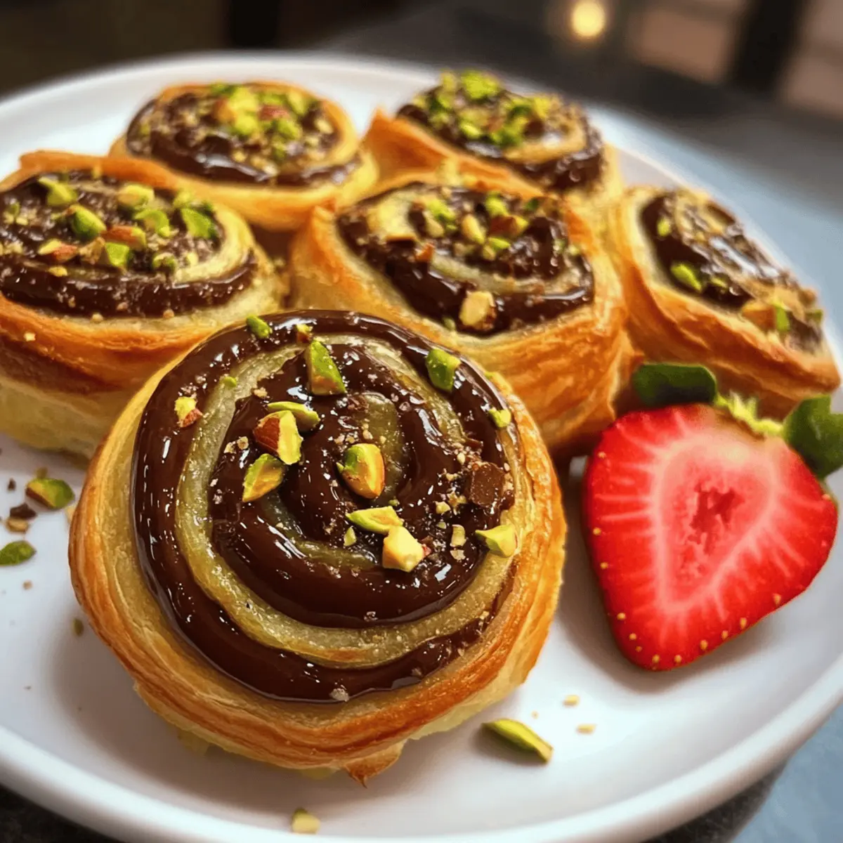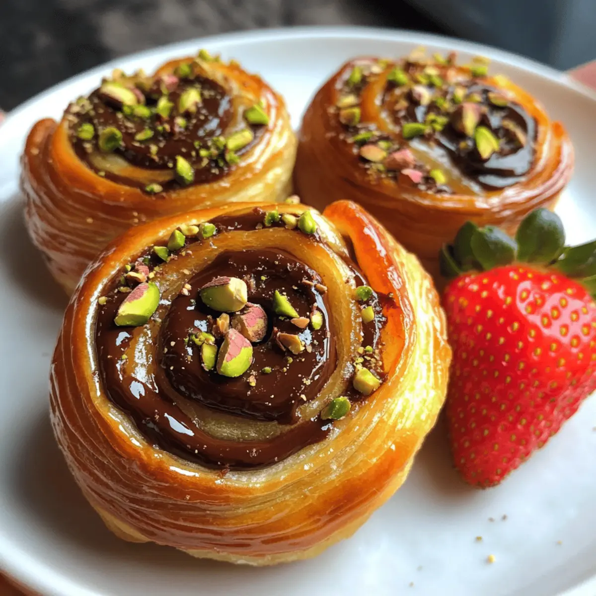 Eines der besten Dinge an der Küche ist die Möglichkeit, mit einfachen Zutaten Meisterwerke zu schaffen. Mein neues Lieblingsrezept, die New Yorker Rollen aus Blätterteig, bringt genau das auf den Punkt. Diese kleinen, aber feinen Gebäckstücke sind schnell zubereitet und benötigen nur 25 Minuten von der ersten Idee bis zum Genuss. Gefüllt mit cremiger Schokolade und verfeinert mit knackigen Pistazien, sind sie nicht nur ein Augenschmaus, sondern auch ein atemberaubender Gaumengenuss. Du wirst sehen, wie beeindruckt deine Gäste sein werden, wenn du diese köstlichen Rollen servierst! Welche kreativen Toppings würdest du ausprobieren? Warum wirst du diese Rollen lieben? Einfachheit: Die Zubereitung ist denkbar einfach und benötigt nur wenige Zutaten, was die New Yorker Rollen zu einem idealen Rezept für schnelle Backen macht. Vielseitigkeit: Du kannst mit verschiedenen Füllungen experimentieren – von Nutella bis hin zu frischen Früchten, deine Kreativität kennt keine Grenzen! Große Begeisterung: Jeder Biss wird deine Gäste begeistern und für strahlende Gesichter sorgen, perfekt für Partys oder als süßer Snack. Schnelle Zubereitung: In nur 25 Minuten sind diese Rollen fertig, sodass du auch mal unverhofft Gäste bewirten kannst. Wunderbare Textur: Die Kombination aus knusprigem Blätterteig und cremiger Schokolade sorgt für einen unwiderstehlichen Genuss, der die perfekte Balance bietet. Probier unbedingt auch andere leckere Desserts mit Blätterteig aus – nachdem du diese zauberhaften Rollen gemacht hast, wird der Zauber des Backens für dich erst richtig beginnen! New Yorker Rollen Rezept aus Blätterteig • Für alle, die sich für dieses köstliche Dessert interessieren! Für den Teig Blätterteig – sorgt für die fluffige Struktur der Rollen; tiefgefrorener oder gekühlter Blätterteig eignet sich hervorragend. Für die Füllung Vollmilchschokolade – bringt Süße und Cremigkeit; du kannst je nach Vorliebe auch Zartbitter- oder weiße Schokolade verwenden. Gehackte Pistazien – verleihen eine knackige Textur und nussigen Geschmack; auch Mandeln oder Walnüsse sind tolle Alternativen. Für die Glasur Eigelb – sorgt für eine reichhaltige, goldene Oberfläche; alternativ kannst du auch Milch verwenden, um eine neutralere Glasur zu erreichen. Für die Garnitur Erdbeeren – bringen Frische und Süße; können durch Himbeeren oder andere Beeren ersetzt werden, falls gewünscht. Diese New Yorker Rollen aus Blätterteig sind nicht nur schnell zubereitet, sondern auch unglaublich vielseitig – experimentiere mit verschiedenen Füllungen und Toppings! Schritt-für-Schritt-Anleitung für New Yorker Rollen Rezept aus Blätterteig Step 1: Ofen vorheizen Heize deinen Ofen auf 160 °C (320 °F) für Heißluft vor. Dies ist wichtig, um die perfekte Hitze für das Backen deiner New Yorker Rollen zu gewährleisten, sodass der Blätterteig gut aufgeht und knusprig wird. Während der Ofen aufheizt, kannst du die weiteren Vorbereitungen treffen. Step 2: Blätterteig vorbereiten Schneide den Blätterteig mit einem Pizzaschneider in 12 gleichmäßige Streifen. Achte darauf, gleichmäßige Breiten zu wählen, damit die Rollen gleichmäßig garen. Diese Streifen werden die Grundlage deiner köstlichen Füllung aus Schokolade und Pistazien bilden. Step 3: Rollen formen Nimm jeweils 4 Streifen und rolle sie von unten nach oben zu einer Spirale. Achte darauf, die Streifen gut übereinander zu legen, um eine stabile Form zu bilden. Das Rollen sorgt dafür, dass die Füllung gut eingeschlossen wird und die Rollen beim Backen schön aufgeht. Step 4: Anrichten Lege die gerollten Blätterteigstücke in eine runde Backform oder in individuelle Tassen, wie z. B. Kaffeetassen. Die Form hilft, die New Yorker Rollen zu stabilisieren und sorgt dafür, dass sie die richtige Form während des Backens behalten. Platziere sie so, dass genügend Platz zwischen den Rollen bleibt. Step 5: Glasur auftragen Pinsel die Oberseite der Rollen mit Eigelb ein, um ihnen eine glänzende, goldene Oberfläche zu verleihen. Alternativ kannst du auch Milch verwenden, wenn du eine neutralere Glasur bevorzugst. Dieser Schritt ist essenziell für die ansprechende Optik deiner New Yorker Rollen. Step 6: Backen Backe die Rollen für etwa 60 Minuten oder bis sie goldbraun sind und knusprig wirken. Überwache den Backvorgang regelmäßig, da die Backzeiten je nach Ofen variieren können. Die perfekte Farbe und Konsistenz zeigen an, dass deine köstlichen New Yorker Rollen fertig sind. Step 7: Abkühlen und garnieren Lass die Rollen etwas abkühlen, bevor du geschmolzene Schokolade darüber träufelst und mit gehackten Pistazien sowie einer halben Erdbeere garnierst. Dieser Schritt fügt nicht nur einen tollen Geschmack hinzu, sondern macht die Rollen auch optisch ansprechend, perfekt für deine Gäste! Lagerungstipps für New Yorker Rollen Rezept aus Blätterteig Raumtemperatur: Bewahre übrig gebliebene New Yorker Rollen in einem luftdichten Behälter bei Raumtemperatur für bis zu zwei Tage auf, damit sie ihre Knusprigkeit behalten. Kühlschrank: Im Kühlschrank sollten die Rollen in einem luftdichten Behälter aufbewahrt werden, um Feuchtigkeit zu vermeiden. Sie sind dort bis zu einer Woche haltbar, verlieren jedoch etwas von ihrer Frische. Einfrieren: Für eine längere Haltbarkeit kannst du die New Yorker Rollen einfrieren. Stelle sicher, dass sie einzeln verpackt sind oder in einem gefrierfesten Behälter liegen. Sie halten sich bis zu drei Monate. Aufwärmen: Um die Rollen wieder zuzubereiten, kannst du sie im Ofen bei 160 °C (320 °F) für etwa 10 Minuten aufwärmen, damit sie wieder knusprig werden. New Yorker Rollen Rezept aus Blätterteig Variationen Lass deiner Kreativität freien Lauf, während du dieses köstliche Rezept nach deinem Geschmack anpasst und variierst! Dairy-Free: Ersetze die Milchschokolade durch vegane Schokolade für eine pflanzliche Variante. So kannst du jedem Genuss ermöglichen, de