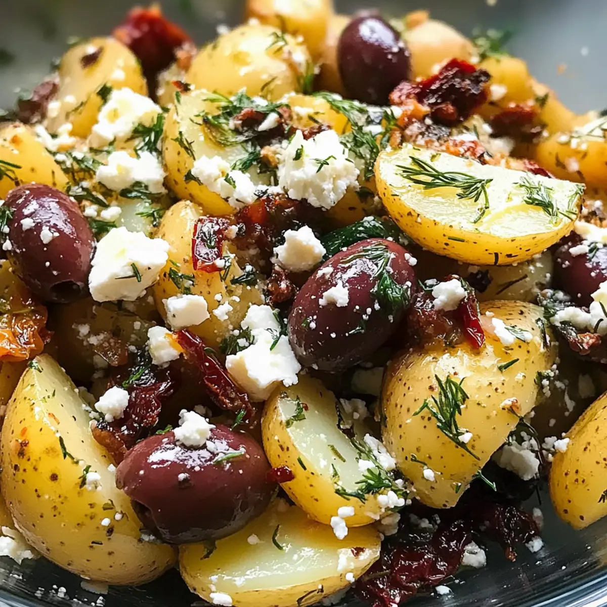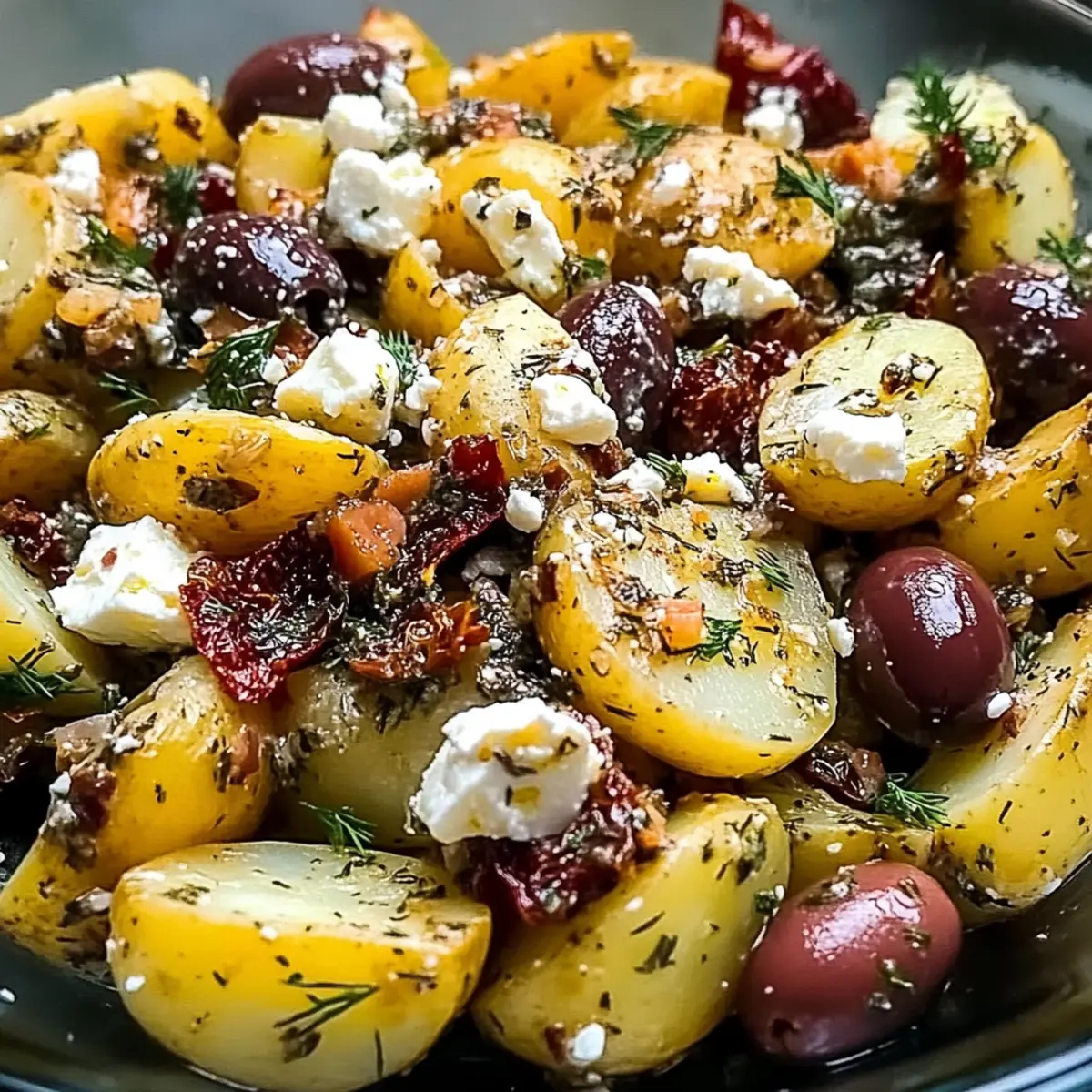 Irgendwann im Urlaub auf einer griechischen Insel saß ich in einem kleinen, rustikalen Restaurant, als ein bunter oliven griechischer Kartoffelsalat auf dem Tisch landete. Sofort stieg der verlockende Duft von frischen Kräutern und leckerem Olivenöl in die Nase. Diese einfache, aber köstliche Kreation hat mein Herz gewonnen und ist seither ein fester Bestandteil meiner Küche. Ob beim Grillen im Sommer oder als leichtes Abendessen an einem kühlen Abend – dieser Salat bringt mediterranes Flair direkt auf den Teller. Mit seiner Fähigkeit, durch frische Zutaten zu glänzen und dabei zu sättigen, ist er nicht nur ein Genuss, sondern auch eine tolle, gesunde Option. Neugierig, wie du dieses sommerliche Gericht selbst zubereiten kannst? Lass uns gemeinsam in die Welt des griechischen Kartoffelsalats eintauchen! Warum ist dieser Kartoffelsalat ein Muss? Einfache Zubereitung: Der Oliven griechische Kartoffelsalat kombiniert frische Zutaten, die mühelos zubereitet sind, und benötigt dabei nur basale Kochkenntnisse. Erfrischender Geschmack: Durch die harmonische Verbindung von Feta, Oliven und Kräutern wird jeder Bissen zu einem Geschmackserlebnis, das Urlaubserinnerungen hervorruft. Vielseitig einsetzbar: Ob als Beilage zu gegrilltem Fleisch oder als Teil eines Mezze-Platters – dieser Salat ist immer ein Hit und lässt sich wunderbar anpassen. Gesunde Wahl: Mit seinen gesunden Zutaten ist dieser Salat nicht nur köstlich, sondern auch nahrhaft. Ideal für alle, die gesunde, hausgemachte Gerichte lieben! Tolle Vorbereitungsoption: Da er sich hervorragend zum Vorkochen eignet, kannst du ihn ganz stressfrei für Grillpartys oder entspannte Abende vorbereiten. Hummus und Tzatziki passen perfekt dazu! Oliven griechischer Kartoffelsalat Zutaten • Hier sind die unverzichtbaren Zutaten für deinen Oliven griechischen Kartoffelsalat. Für den Salat Petite weiße oder rote Kartoffeln – Die Basis des Salats; entweder kleine oder in Stücke geschnittene normale Kartoffeln sorgen für die gewünschte Cremigkeit. Koscheres Salz (zum Kochen) – Verstärkt den Geschmack der Kartoffeln während des Kochens. Pittige Kalamata-Oliven – Bringen eine salzige, würzige Note in den Salat. Sonnengetrocknete Tomaten (abgetropft und gehackt) – Fügen süße und kauende Texturen hinzu; ölhaltige Varianten sind geschmacklich die beste Wahl. Dünn geschnittene rote Zwiebel – Sorgt für eine knackige Textur und einen scharfen Geschmack. Frisch gehackter Dill – Bringt ein frisches Kraut-Aroma, das den mediterranen Charakter unterstreicht. Krümeliger Feta-Käse – Ein cremiger, salziger Topping, der den Salat abrundet. Tipp: Feta erst kurz vor dem Servieren hinzufügen, um Matschen zu vermeiden. Für das Dressing Extra-natives Olivenöl – Die Geschmacksbasis des Dressings; für den besten Geschmack unbedingt hochwertig verwenden. Rotweinessig – Verleiht dem Dressing eine ausgewogene Säure. Knoblauch (gehackt oder gepresst) – Fügt Tiefe und Aroma hinzu. Trockener Senf – Gibt dem Dressing einen leichten Biss. Getrockneter Thymian & Oregano – Klassische Kräuter, die die mediterrane Note unterstützen. Schwarzer Pfeffer (gemahlen) – Würzt das Ganze und hebt alle Geschmäcker hervor. Kapern – Bieten eine spezielle pikante Note; bewahre die Lake für das Dressing auf. Mit diesen Zutaten bist du bestens gerüstet, um deinen eigenen Oliven griechischen Kartoffelsalat zuzubereiten und das mediterrane Flair direkt in deine Küche zu bringen! Schritt-für-Schritt-Anleitung für Oliven griechischer Kartoffelsalat Step 1: Kartoffeln kochen Die kleinen weißen oder roten Kartoffeln in einen großen Topf geben und mit kaltem Wasser bedecken. Koscheres Salz hinzufügen und das Wasser zum Kochen bringen. Die Kartoffeln circa 15 Minuten lang kochen, bis sie mit einer Gabel leicht durchstochen werden können. Anschließend die Kartoffeln abgießen und kurz abkühlen lassen. Step 2: Dressing vorbereiten In einem Schraubglas das extra-native Olivenöl, den Rotweinessig, den gehackten Knoblauch, den trockenen Senf, den getrockneten Thymian, Oregano, Salz und gemahlenen schwarzen Pfeffer vermengen. Das Glas fest verschließen und kräftig schütteln, bis die Zutaten gut emulgiert sind und eine cremige Konsistenz erreicht haben. Step 3: Kartoffeln abkühlen Die abgekühlten Kartoffeln in mundgerechte Stücke schneiden. Während die Kartoffeln noch leicht warm sind, die Kapernlake darüber träufeln. Dies hilft, den Geschmack der Kartoffeln zu intensivieren und bereitet sie auf die weiteren Zutaten vor. Achte darauf, dass die Kartoffeln nicht zu heiß sind, um eine matschige Textur zu vermeiden. Step 4: Aromen hinzufügen Die geschnittenen Kartoffeln vorsichtig mit den pittigen Kalamata-Oliven, der dünn geschnittenen roten Zwiebel, den gehackten sonnengetrockneten Tomaten, den Kapern und dem frisch gehackten Dill vermengen. Dabei darauf achten, die Kartoffeln nicht zu zerdrücken, sondern behutsam zu mischen, um die knusprigen Texturen zu erhalten. Step 5: Salat anrichten Das zuvor zubereitete Dressing gleichmäßig über die Kartoffelmischung geben und alles gut miteinander vermengen. Anschließend nach Geschmack mit zusätzlichem Salz und Pfeffer würzen. Der Oliven griechische Kartoffelsalat ist jetzt bereit, aber lass ihn am besten für etwa 30 Minuten ruhen, damit sich die Aromen entfalten können. Step 6: Servieren Kurz vor dem Servieren die krümelige Feta-Käse darüber streuen, um eine cremige Komponente hinzuzufügen. Fertig zubereitet, verleiht der Oliven griechische Kartoffelsalat jedem Essen einen Hauch von Mediterranität. Lass ihn einige Minuten bei Raumtemperatur stehen, damit sich die Aromen optimal verbinden können. Oliven griechischer Kartoffelsalat Variationen Es macht Spaß, mit deinem oliven griechischen Kartoffelsalat zu experimentieren und ihn nach deinem Geschmack zu gestalten! Vegetarisch: Ersetze den Feta durch cremigen Ziegenkäse für einen neuen, aber gleichwohl köstlichen 