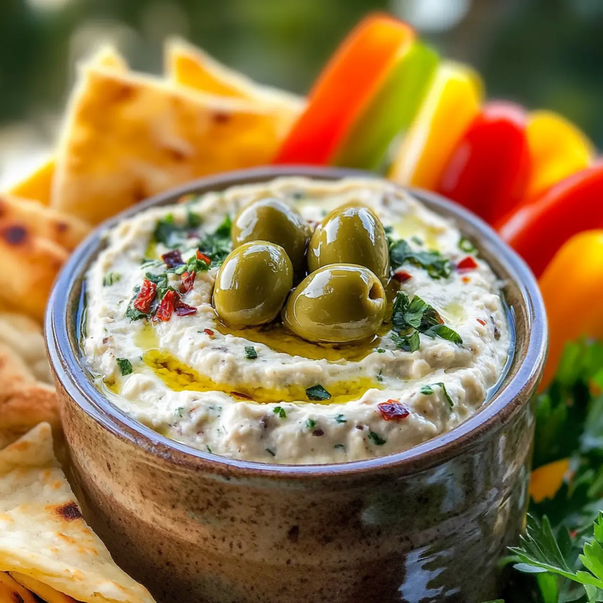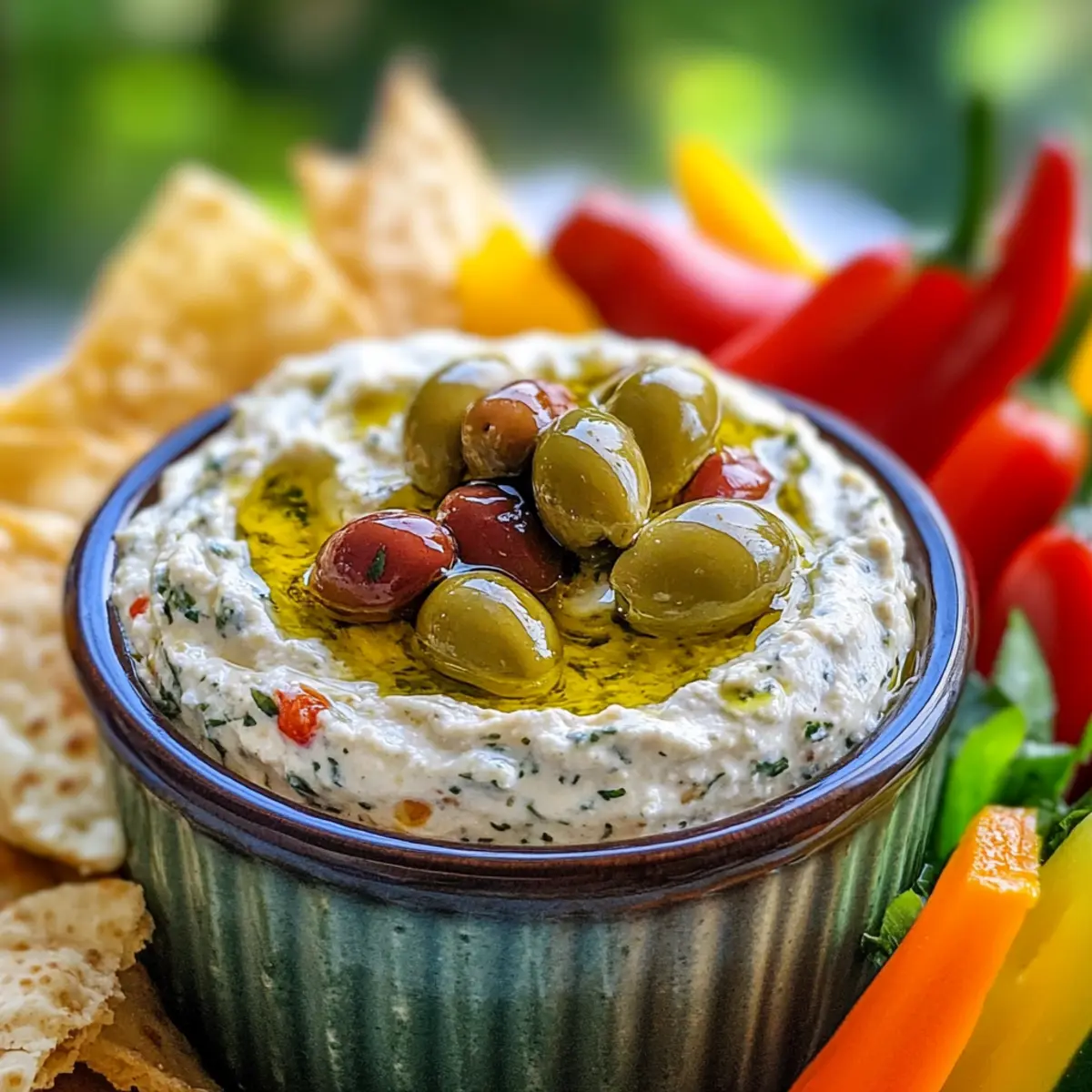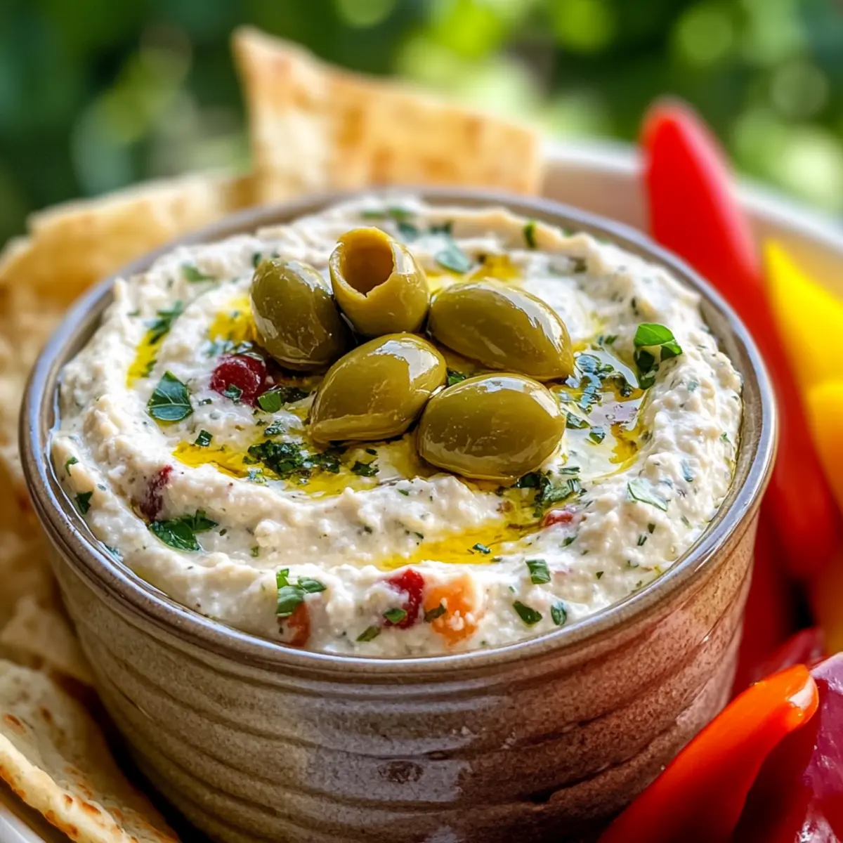 Kaum etwas bringt ein Stück Mediterranien so auf den Tisch wie ein unwiderstehlicher Dip! Heute präsentiere ich euch den Olivenliebhaber-Dream-Dip – eine cremige Köstlichkeit, die den salzigen Geschmack von grünen Oliven mit der spritzigen Frische von Zitrone kombiniert. Die Zubereitung könnte einfacher nicht sein: Dieser Dip ist nicht nur in wenigen Minuten gemacht, sondern auch unglaublich vielseitig. Ob als dip, Aufstrich für euer nächstes Sandwich oder sogar als sämige Sauce, wenn ihr ihn leicht erwärmt – er bringt überall Freude. Zudem ist er eine wunderbare Möglichkeit, gesunde Fette in eure Ernährung einzuschleusen. Seid ihr bereit, diesen köstlichen mediterranen Genuss auszuprobieren? Warum ist dieser Dip so besonders? Cremig und köstlich: Der Olivenliebhaber-Dream-Dip bietet eine perfekte Textur, die auf der Zunge zergeht. Einfach zuzubereiten: Mit nur wenigen Zutaten ist dieser Dip im Handumdrehen fertig, ideal für spontane Fernsehabende oder lustige Zusammenkünfte. Vielseitig einsetzbar: Genießt ihn als Dip, Aufstrich oder erwärmt als köstliche Sauce – er passt zu jedem Anlass! Nährstoffreich: Die gesunden Fette aus Oliven und Olivenöl machen diesen Dip nicht nur lecker, sondern auch nahrhaft! Crowd-Pleaser: Egal, ob bei Freunden oder Familie, dieser Dip wird alle begeistern und zum Gesprächsthema der Party! Olivenliebhaber-Dream-Dip Zutaten • Diese köstlichen Zutaten machen den Olivenliebhaber-Dream-Dip zu einer wahren mediterranen Freude! Für die Basis Frischkäse – sorgt für eine cremige und reichhaltige Grundlage; alternativ kann griechischer Joghurt verwendet werden, um die Kalorien zu reduzieren. Grüne Oliven – der Star des Dips, der eine salzige Note hinzufügt; verschiedene Olivensorten können gemischt werden, um mehr Komplexität zu erzielen. Zitronensaft – bringt Frische und Ausgewogenheit; die Menge kann je nach Belieben angepasst werden. Olivenöl – verstärkt den Geschmack und die Cremigkeit; benutze hochwertiges Olivenöl extra vergine für das beste Aroma. Knoblauchpulver – fügt Tiefe und Aroma hinzu; frischer, gehackter Knoblauch ist eine gute Alternative, kann aber die Textur verändern. Für das Servieren Pita-Chips – ideal zum Dippen und bringen eine angenehme Knusprigkeit. Frisches Gemüse – Karotten, Sellerie oder Paprika harmonieren wunderbar mit dieser cremigen Mischung. Toasts – grillgebackenes Brot ist der perfekte Begleiter für diesen Dip und verwandelt ihn in einen herzhaften Aufstrich. Der Olivenliebhaber-Dream-Dip ist ein Muss für alle Freunde der mediterranen Küche! Schritt-für-Schritt-Anleitung für den Olivenliebhaber-Dream-Dip Step 1: Frischkäse und Olivenöl vermengen Beginne mit 200 g weichgemachtem Frischkäse, den du in einer Rührschüssel mit 3 Esslöffeln hochwertigem Olivenöl kombinierst. Mit einem Handrührgerät auf niedriger Stufe mischen, bis die Mischung cremig und glatt ist. Achte darauf, dass der Frischkäse gut weich ist, um Klumpen zu vermeiden. Dies dauert etwa 1-2 Minuten. Step 2: Grüne Oliven hinzufügen Nehme 100 g grüne Oliven, die du gut abtropfen lässt, und hacke sie fein. Füge die Oliven zur Frischkäse-Mischung in der Rührschüssel hinzu und falte sie vorsichtig unter, bis sie gleichmäßig verteilt sind. Diese Schritte sorgen dafür, dass der Olivenliebhaber-Dream-Dip einen köstlichen Salzkick erhält. Step 3: Zitronensaft und Knoblauchpulver einrühren Gebe den Saft einer halben Zitrone und 1 Teelöffel Knoblauchpulver in die Mischung. Rühre alles gründlich um, bis der Zitronensaft und das Knoblauchpulver gut eingearbeitet sind. Dies bringt eine erfrischende Note in den Dip und sorgt für ein ausgewogenes Geschmacksprofil. Step 4: Abschmecken und anpassen Jetzt ist der perfekte Zeitpunkt, um deinen Olivenliebhaber-Dream-Dip zu probieren. Je nach Geschmack kannst du weiteres Olivenöl, Knoblauchpulver oder etwas Salz hinzufügen. Die Mischung sollte cremig und geschmacklich intensiv sein, ohne jedoch überladen zu wirken. Step 5: Kühlen und Servieren Gib den Dip in eine dekorative Schüssel und lasse ihn für mindestens 30 Minuten im Kühlschrank ruhen. Dies hilft, die Aromen besser zur Geltung zu bringen. Serviere den Dip anschließend mit knusprigen Pita-Chips, frischem Gemüse oder auf geröstetem Brot für ein tolles Geschmackserlebnis. Olivenliebhaber-Dream-Dip Variationen Fühlt euch frei, diesen köstlichen Dip nach euren Vorlieben zu variieren und ihm eine persönliche Note zu verleihen! Schwarze Oliven: Tauscht die grünen Oliven gegen schwarze aus, um einen intensiveren und süßeren Geschmack zu erzielen. Geröstete Paprika: Fügt gewürfelte, geröstete rote Paprika hinzu, um eine süße und farbenfrohe Note zu bringen. Feta-Käse: Mischen Sie zerbröckelten Feta unter, um dem Dip eine salzige und cremige Abwechslung zu geben. Kräuter-Boost: Frische Kräuter wie Basilikum oder Dill verleihen dem Dip eine aromatische Frische – probiert es aus! Würzige Variante: Gebt einen Löffel eingelegten Chili oder Cayennepfeffer hinzu, um eine scharfe Note hinzuzufügen, die für einen Kick sorgt. Nussige Textur: Ruft gehackte Mandeln oder Walnüsse ins Spiel; sie bringen knusprige Textur und einen nussigen Geschmack. Zitronenschale: Die Zugabe von frischer Zitronenschale verstärkt die Zitrustöne und bringt mehr Frische in den Dip. Joghurt-Option: Verwendet griechischen Joghurt anstelle von Frischkäse für eine leichtere und trotzdem cremige Variante. Mit diesen Variationen könnt ihr den Olivenliebhaber-Dream-Dip ganz nach eurem Geschmack anpassen und alle eure Gäste beeindrucken! Was passt zum Olivenliebhaber-Dream-Dip? Kaum etwas rundet einen Abend mit Freunden besser ab als einige köstliche Beilagen, die den Olivenliebhaber-Dream-Dip ergänzen! Pita-Chips: Knusprig und leicht salzig, bringen sie die perfekte Textur zu diesem cremigen Dip. Der herzhaft-süße Geschmack führt zu einem köstlichen Kontrast. Frisches Gemüse: Karotten, Paprika