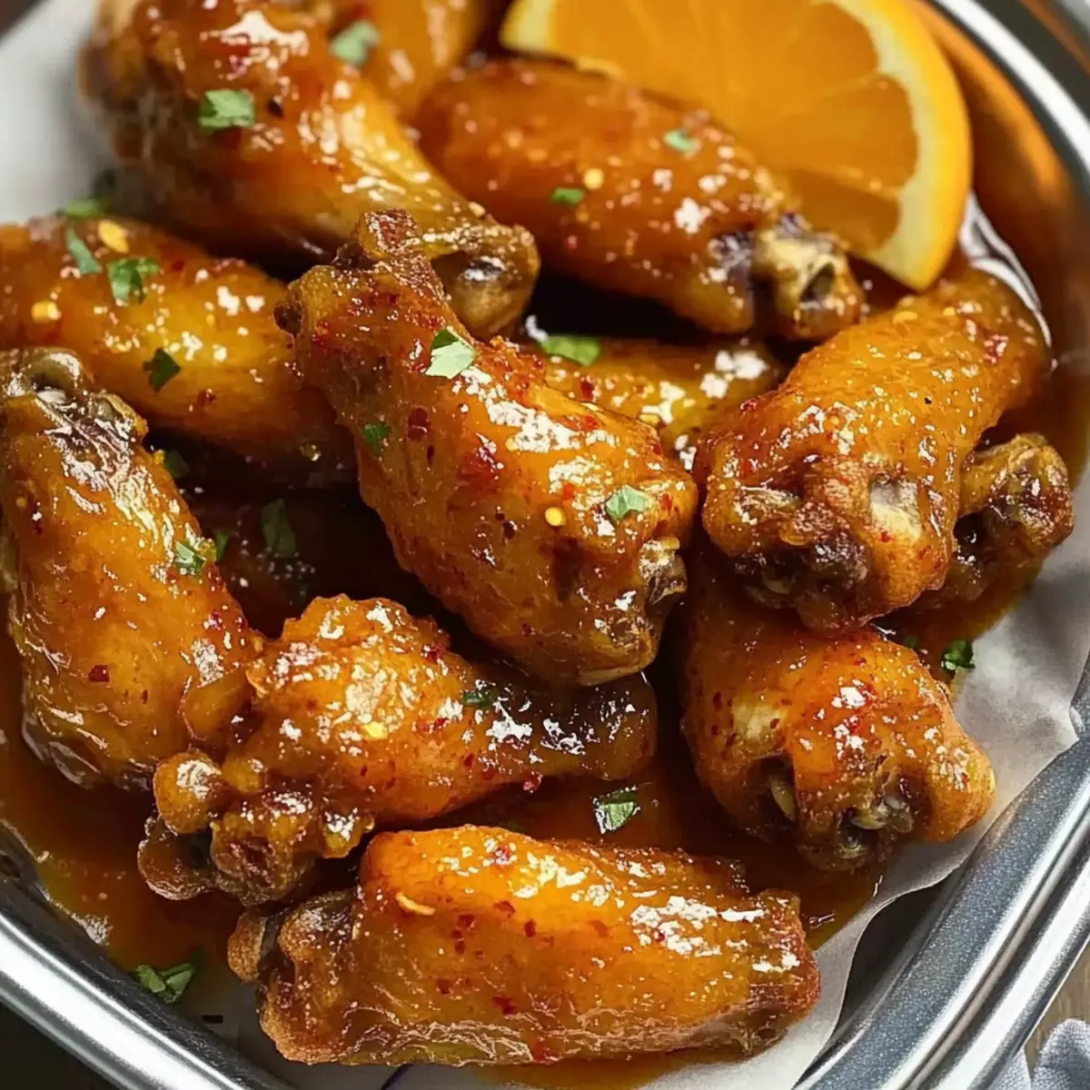Eines Abends, während ich in meiner Küche stand, durchdrang der verführerische Duft von frisch gebratenen Hähnchenflügeln den Raum. Es ist kaum zu glauben, wie schnell sich einfache Zutaten in ein köstliches Gericht verwandeln können! Diese Orange Pfeffer Hähnchenflügel sind der perfekte Begleiter fürgesellige Abende oder ein entspanntes Abendessen unter der Woche. Mit einem harmonischen Mix aus süßem Honig, spritziger Orange und einem würzigen Kick bringen diese Flügel nicht nur Freude auf den Tisch, sondern sind auch glutenfrei. Die Zubereitung ist zudem ein Kinderspiel, egal ob im Ofen oder in der Heißluftfritteuse – für jeden Geschmack ist etwas dabei. Neugierig, wie du diese Geschmacksexplosion selbst zaubern kannst? Lass uns loslegen! Warum wirst du diese Flügel lieben? Süßes und Pikantes: Diese Orange Pfeffer Hähnchenflügel bieten eine faszinierende Kombination aus köstlichem Honig und spritziger Orangenfrische, ergänzt durch einen spannenden Schärfekick. Sie sind dadurch perfekt, um deine Gäste zu beeindrucken! Vielseitige Zubereitung: Egal, ob du den Ofen oder die Heißluftfritteuse nutzt, diese Flügel sind einfach zuzubereiten und garantieren in beiden Fällen perfekten Genuss. Gesundheit und Genuss: Sie sind glutenfrei und das macht sie ideal für alle, die auf ihre Ernährung achten, ohne auf Geschmack verzichten zu wollen. Perfekte Textur: Außen knusprig und innen saftig – dieses Gericht hat die ideale Konsistenz, die für jeden Gaumen ein Erlebnis ist. Ein Hit bei jeder Gelegenheit: Sei es ein entspanntes Abendessen oder eine Feier mit Freunden, diese Flügel bringen Freude und Geselligkeit auf den Tisch. Du kannst auch deinen Gästen diesen bunten Kinder Nudelsalat mit Frischkäse als Beilage servieren, um das Erlebnis abzurunden! Orange Pfeffer Hähnchenflügel Zutaten • Diese leckeren Hähnchenflügel sind einfach zuzubereiten und bringen einen fruchtigen Twist in deine Küche! Für die Hähnchenflügel • Hähnchenflügel – Wähle Drumettes und Flats, um verschiedene Texturen zu genießen. • Backpulver – Sorgt für eine knusprige Haut; kann weggelassen werden, wenn du es weniger knusprig magst. • Salz – Verstärkt den Gesamteindruck. Passen Sie die Menge an die diätetischen Bedürfnisse an. • Schwarzer Pfeffer – Fügt Würze hinzu; frisch gemahlener Pfeffer bringt den besten Geschmack. Für die Sauce • Butter (ungesalzen/gesalzen) – Basis für die Sauce. Ungesalzene Butter ermöglicht eine bessere Kontrolle der Würze. • Honig – Süßt die Sauce und balanciert die Schärfe aus; Sirup aus Ahorn könnte für einen anderen Geschmack verwendet werden. • Zerkleinerte rote Pfefferflocken – Sorgt für die Schärfe; frisch gemahlener schwarzer Pfeffer kann als Alternative genutzt werden. • Sojasauce – Fügt einen umami Geschmack hinzu; glutenfreie Sojasauce kann ebenfalls verwendet werden. • Orangenschale & -saft – Schlüsselbestandteil für den zitrusartigen Geschmack; kann mit Zitronenschale und -saft für eine andere Zitrusnote ersetzt werden. • Orangenstücke – Optional als Garnitur zum Servieren. Für die Garnitur • Karotten- und Selleriesticks – Serviere sie für einen netten Crunch und Kontrast. • Dipsaucen – Eine Kombination aus Ranch oder Blauschimmelkäse passt hervorragend dazu! Schritt-für-Schritt-Anleitung für Orange Pfeffer Hähnchenflügel Step 1: Hähnchenflügel vorbereiten Mische in einer Schüssel das Backpulver, Salz und frisch gemahlenen schwarzen Pfeffer. Wende die Hähnchenflügel in der Mischung, bis sie gleichmäßig bedeckt sind. Lege die Flügel auf einen großen Teller und stelle sie unbedeckt für mindestens eine Stunde in den Kühlschrank, um die Knusprigkeit zu verbessern. Step 2: Ofen vorheizen und Flügel rösten Heize deinen Ofen auf 230 °C (450 °F) vor. Lege ein Backblech mit Backpapier aus und platziere ein Kühlregal darauf, um die Luftzirkulation zu verbessern. Verteile die Hähnchenflügel gleichmäßig auf dem Kühlregal und röste sie für 40 bis 50 Minuten. Wende die Flügel nach der Hälfte der Zeit, bis sie goldbraun und knusprig sind. Step 3: Heißluftfritteuse nutzen Wenn du die Heißluftfritteuse verwendest, heize sie auf 200 °C (400 °F) vor. Besprühe den Korb leicht mit Öl und lege die Hähnchenflügel in einer einzigen Lage hinein. Gare die Flügel für etwa 30 Minuten, wobei du sie nach der Hälfte der Zeit wendest, bis sie schön knusprig sind. Step 4: Sauce zubereiten In einem kleinen Topf erhitze bei mittlerer Hitze die ungesalzene Butter und den Honig, bis die Butter vollständig geschmolzen ist. Rühre die zerkleinerten roten Pfefferflocken und die Sojasauce ein und lasse die Sauce 2 bis 3 Minuten köcheln, bis sie leicht eingedickt ist. Nimm die Pfanne vom Herd und rühre dann die Orangenschale und den Orangensaft ein. Step 5: Flügel mit Sauce vermengen Sobald die Hähnchenflügel aus dem Ofen oder der Heißluftfritteuse kommen, gib sie in eine große Schüssel. Gieße die vorbereitete Sauce über die heißen Flügel und werfe sie vorsichtig, bis sie gleichmäßig bedeckt sind. Stelle sicher, dass die Orange Pfeffer Hähnchenflügel schön glänzend und fettig sind. Step 6: Servieren und genießen Serviere die Hähnchenflügel sofort, garniert mit frischen Orangenschnitzen, um den zitrusartigen Geschmack zu intensivieren. Du kannst dazu Karotten- und Selleriesticks reichen, um einen angenehmen Crunch zu bieten. Tauche die Flügel nach Belieben in deine Lieblingssauce für zusätzlichen Geschmack! Was passt zu Orange Pfeffer Hähnchenflügeln? Diese köstlichen Hähnchenflügel sind ein wahrer Genuss, und sie verlangen nach einigen passenden Beilagen, die die Aromen perfekt ergänzen! Cremige Kartoffelbrei: Die Buttrigkeit und Cremigkeit dieser Beilage schaffen einen perfekten Kontrast zur würzigen Knusprigkeit der Flügel. Ein Löffel Kartoffelbrei mit einer Gabel Hähnchenflügel – ein himmlisches Duo! Frische Karotten- und Seller
