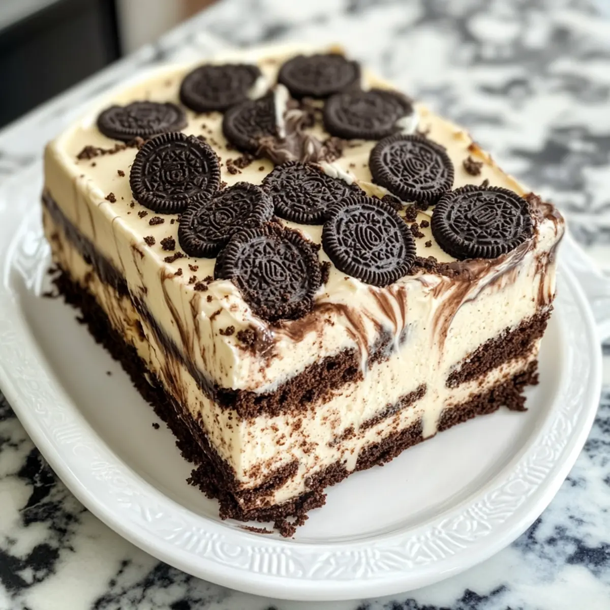 Ein köstliches Geheimnis aus meiner Küche hat sich zu einem Lieblingsdessert entwickelt: das No-Bake Oreo Tiramisu. An einem stressigen Tag, als ich etwas Süßes zum Entspannen suchte, wurde mir klar, dass ich eine kreative Abwandlung des klassischen Tiramisus brauchte – und voilà! Diese einfache und dennoch beeindruckende Schichtdessert kombiniert die bekannte Cremigkeit von Mascarpone mit dem unwiderstehlichen Geschmack von Oreo-Keksen. Es ist nicht nur schnell zuzubereiten, sondern auch ein echter Hingucker auf jeder Kaffeetafel. Abgerundet mit einer dunklen Schokoladenganache ist es ein Genuss, der sowohl Kinder als auch Erwachsene begeistert und gleichzeitig die Suche nach gesunder Ernährung schlägt. Wer hätte gedacht, dass so viel Freude in einem Dessert stecken kann? Bereitet euch darauf vor, ein neues Lieblingsrezept zu entdecken, das euch bestimmt begeistern wird! Warum wird dieses Oreo Tiramisu geliebt? Einfachheit: Das No-Bake Oreo Tiramisu erfordert kaum Backfähigkeiten und lässt sich mühelos zubereiten. Vielfalt: Ihr könnt es nach eurem Geschmack anpassen, zum Beispiel mit aromatisiertem Kaffee oder anderen Keksvarianten. Unwiderstehlicher Geschmack: Die Kombination aus cremigem Mascarpone und knusprigen Oreo-Keksen schafft ein genussvolles Erlebnis, das begeistert! Zeitersparnis: Schnell zusammenzubauen, ideal für unerwartete Gäste oder gemütliche Abende zu Hause. Crowd-Pleasing: Dieses Dessert zieht alle Blicke auf sich und ist perfekt für Partys oder Familienfeiern. Lasst euch nicht entgehen, dieses Rezept zu probieren – ein echtes Täuschungsmanöver für alle Naschkatzen! Oreo Tiramisu Zutaten Hinweis: Diese Zutaten sorgen für ein köstliches Oreo Tiramisu, das einfach zuzubereiten ist und jeden Glücklich macht! Für die Kekse • Oreo-Kekse – Diese bringen Geschmack, Textur und die perfekte Knusprigkeit; traditionell können sie durch Löffelbiskuits ersetzt werden. • Brewed Coffee – Sorgt dafür, dass die Kekse intensiv schmecken; verwenden Sie Espresso für einen kräftigeren Kaffeegeschmack. Für die Füllung • Schlagsahne – Trägt zur Cremigkeit bei; ideal ist kalte Sahne für das beste Steigergebnis. • Mascarpone-Käse – Verleiht dem Dessert die gewünschte Reichhaltigkeit; kann bei Bedarf durch Frischkäse ersetzt werden. • Vanilleextrakt – Verstärkt den Geschmack; weglassen oder durch Mandelaroma ersetzen, wenn Allergien bestehen. • Kristallzucker – Süßt die Sahne-Mascarpone-Mischung; Puderzucker kann für eine glattere Textur benutzt werden. Für die Dekoration • Dunkle Schokolade – Sorgt für eine reiche, verführerische Optik; bei Vorliebe kann auch Halbbitterschokolade verwendet werden. • Weiße Schokolade – Dient der dekorativen Gestaltung; kann weggelassen werden, wenn es einfacher sein soll. • Öl – Unterstützt das Schmelzen der weißen Schokolade; jedes neutrale Öl wie Pflanzen- oder Rapsöl ist geeignet. Schritt-für-Schritt-Anleitung für Oreo Tiramisu Schritt 1: Schlagsahne vorbereiten Schlage die kalte Schlagsahne mit dem Kristallzucker in einer großen Schüssel kräftig, bis sich steife Spitzen bilden. Dies dauert etwa 3-5 Minuten mit einem Handmixer auf mittlerer Geschwindigkeit. Wenn die Sahne gut aufgeschlagen ist, stelle sie zur Seite, während du die Mascarpone-Mischung zubereitest. Schritt 2: Mascarpone-Mischung anrühren In einer separaten Schüssel den Mascarpone-Käse mit dem Vanilleextrakt kräftig mit einem Löffel oder Schneebesen vermischen, bis die Masse schön glatt ist. Achte darauf, dass keine Klumpen mehr vorhanden sind. Dies sorgt dafür, dass das Oreo Tiramisu die perfekte cremige Konsistenz hat. Schritt 3: Mascarpone und Sahne kombinieren Falte die aufgeschlagene Sahne vorsichtig in die Mascarpone-Mischung. Teile die Schlagsahne in drei Portionen auf und arbeite sie sanft unter die Mascarpone, um die luftige Konsistenz zu bewahren. Breche dann einige Oreo-Kekse in kleine Stücke und füge sie hinzu, um den Oreo-Geschmack in der Füllung zu verstärken. Schritt 4: Oreos in Kaffee tauchen Bereite eine Schüssel mit dem gebrühten Kaffee vor und tauche die ganzen Oreo-Kekse schnell für etwa 1-2 Sekunden hinein, damit sie leicht durchweichen, aber nicht matschig werden. Lege die getauchten Kekse anschließend nebeneinander in eine ovale Auflaufform, um die erste Schicht deines Oreo Tiramisu zu erstellen. Schritt 5: Erste Füllung auftragen Verteile die Hälfte der vorbereiteten Mascarpone-Füllung gleichmäßig über die Schicht der getauchten Oreos. Achte darauf, dass die Füllung die Kekse komplett abdeckt. Dies wird deinem Tiramisu eine reichhaltige und cremige Textur verleihen und das Geschmackserlebnis perfekt abrunden. Schritt 6: Zweite Schicht erstellen Wiederhole den Vorgang und lege eine weitere Schicht getauchter Oreo-Kekse auf die Mascarpone-Füllung. Danach kommt die restliche Mascarpone-Füllung darauf. Verteile sie gleichmäßig und glätte die Oberfläche mit einem Spatel oder Löffel, um ein ansprechendes Finish zu erzielen. Schritt 7: Tiramisu kühlen Decke das Oreo Tiramisu mit Frischhaltefolie ab und stelle es für mindestens 6 Stunden in den Kühlschrank. Dies ermöglicht es den Aromen sich zu verbinden und festigt die Struktur, sodass das Dessert beim Schneiden schön zusammenhält. Für beste Ergebnisse lässt du es über Nacht ruhen. Schritt 8: Dunkle Schokoladenganache zubereiten In einem kleinen Topf die dunkle Schokolade mit der Sahne bei niedriger Hitze schmelzen. Rühre regelmäßig um, bis die Mischung glatt und glänzend ist. Lass die Ganache anschließend leicht abkühlen, bevor du sie über das gekühlte Oreo Tiramisu gießt und eine wundervolle Schokoladenschicht obenauf bildest. Schritt 9: Weiße Schokolade schmelzen In einem weiteren kleinen Topf schmelze die weiße Schokolade zusammen mit etwas neutralem Öl, bis sie vollständig weich ist. Lass die Mischung kurz abkühlen, bevor du sie in einen Spritzbeutel füllst, um dekorative Linie